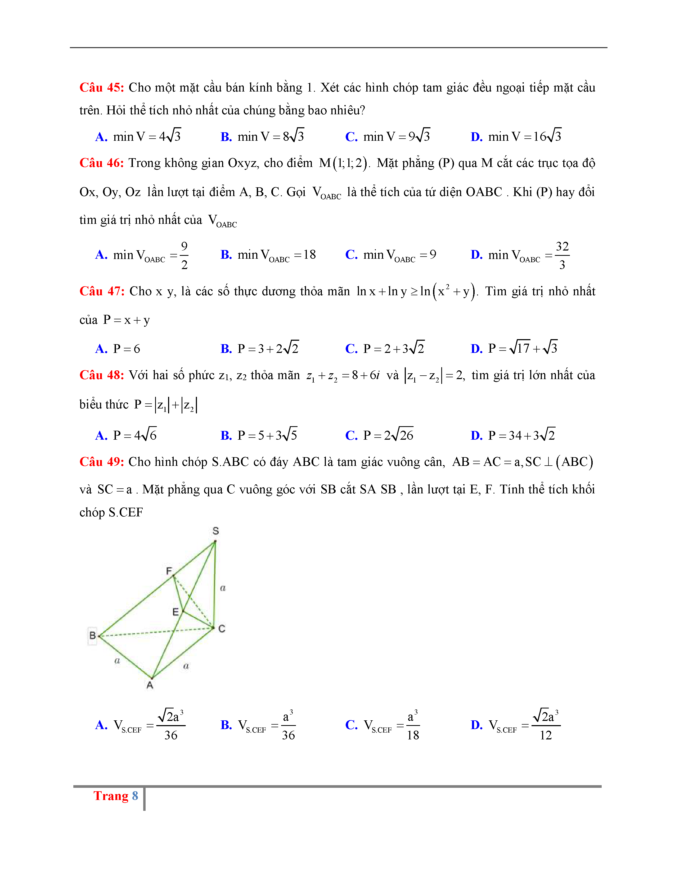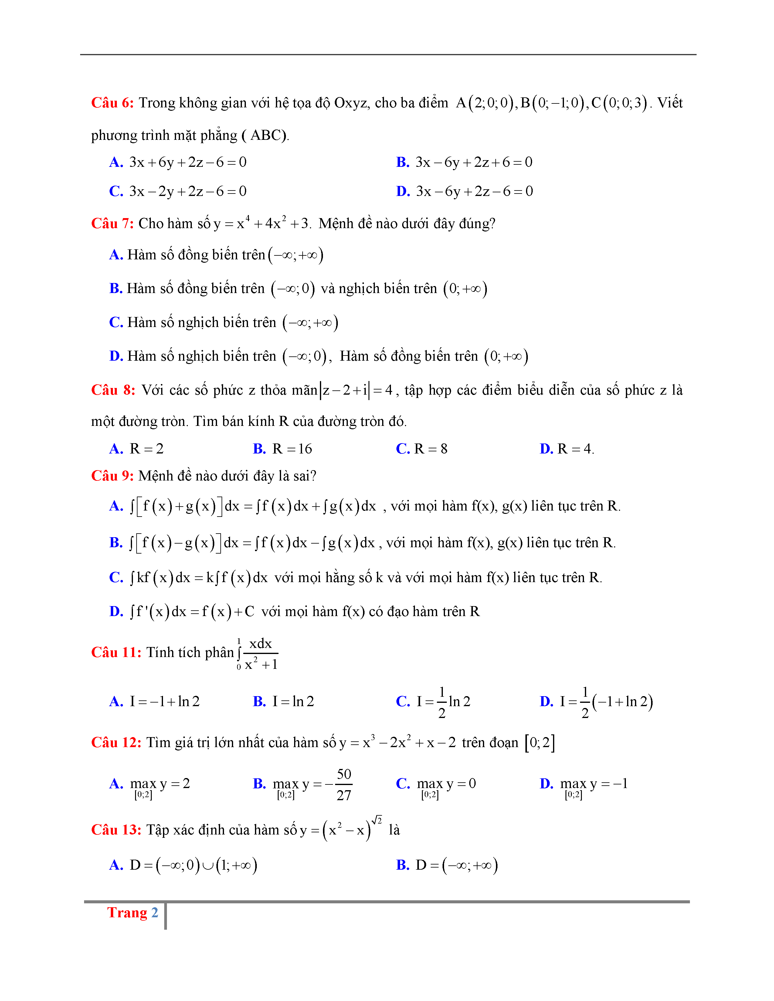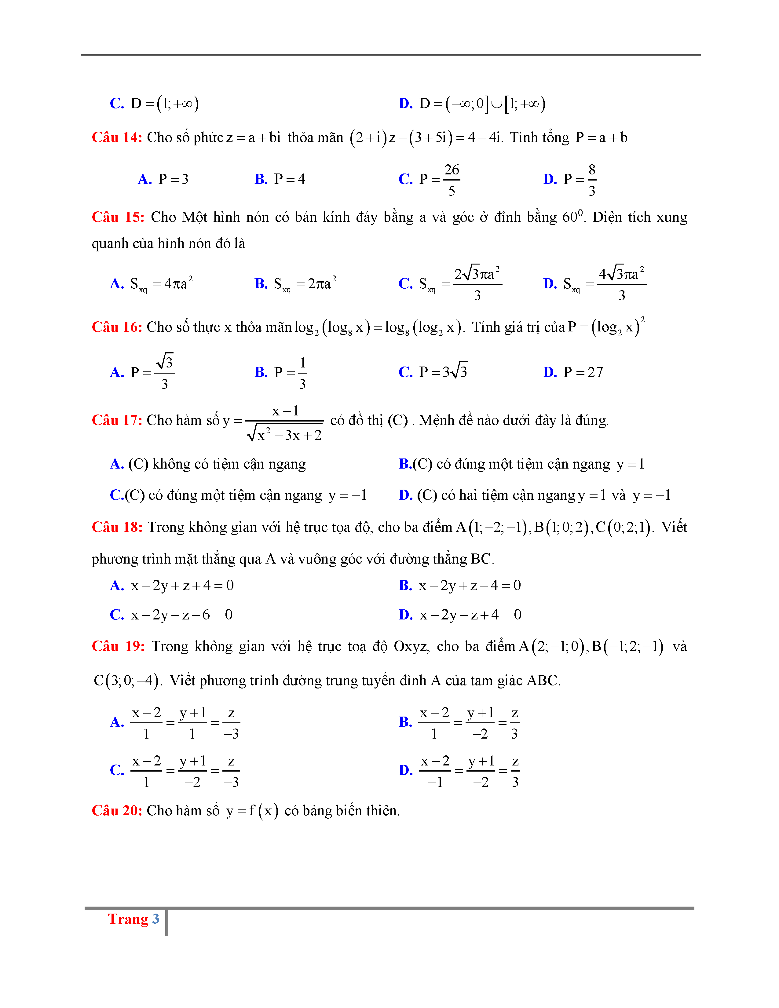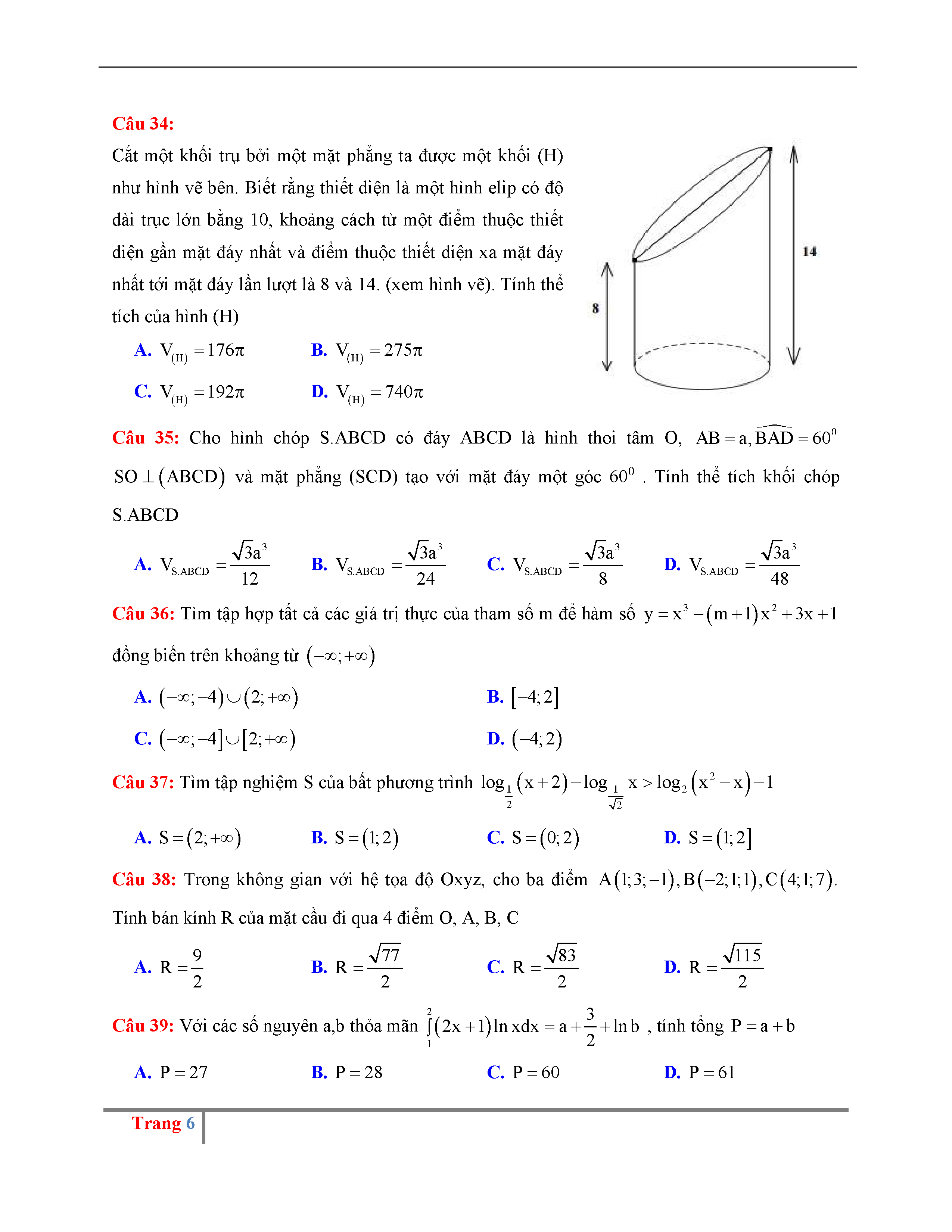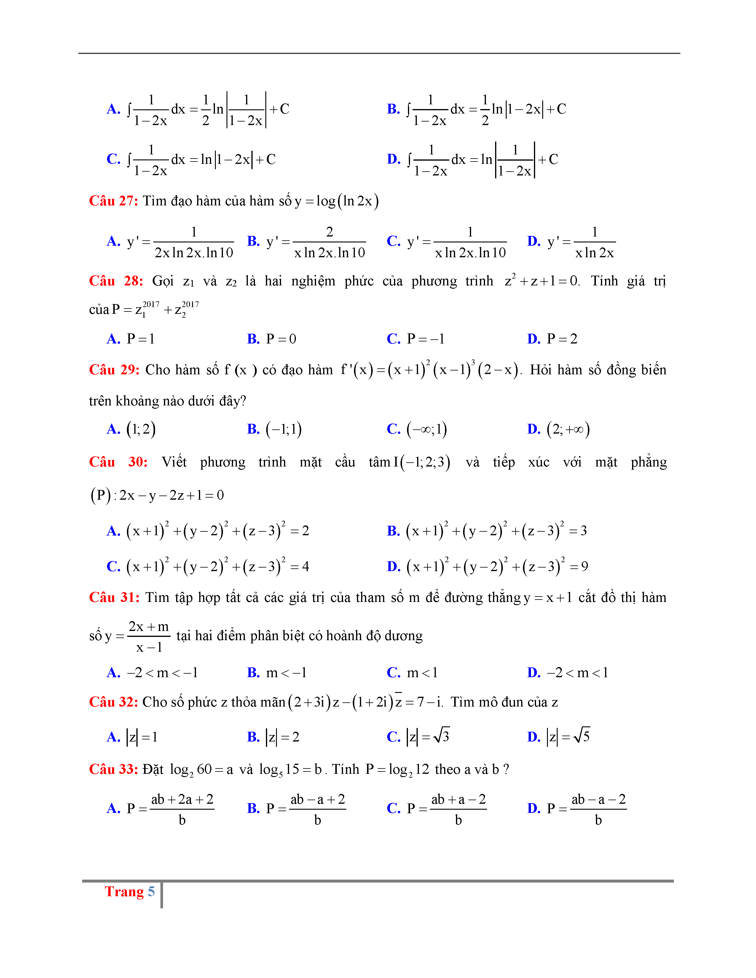 Đề thi thử THPTQG môn Toán năm 2017 Chuyên Khoa học Tự Nhiên