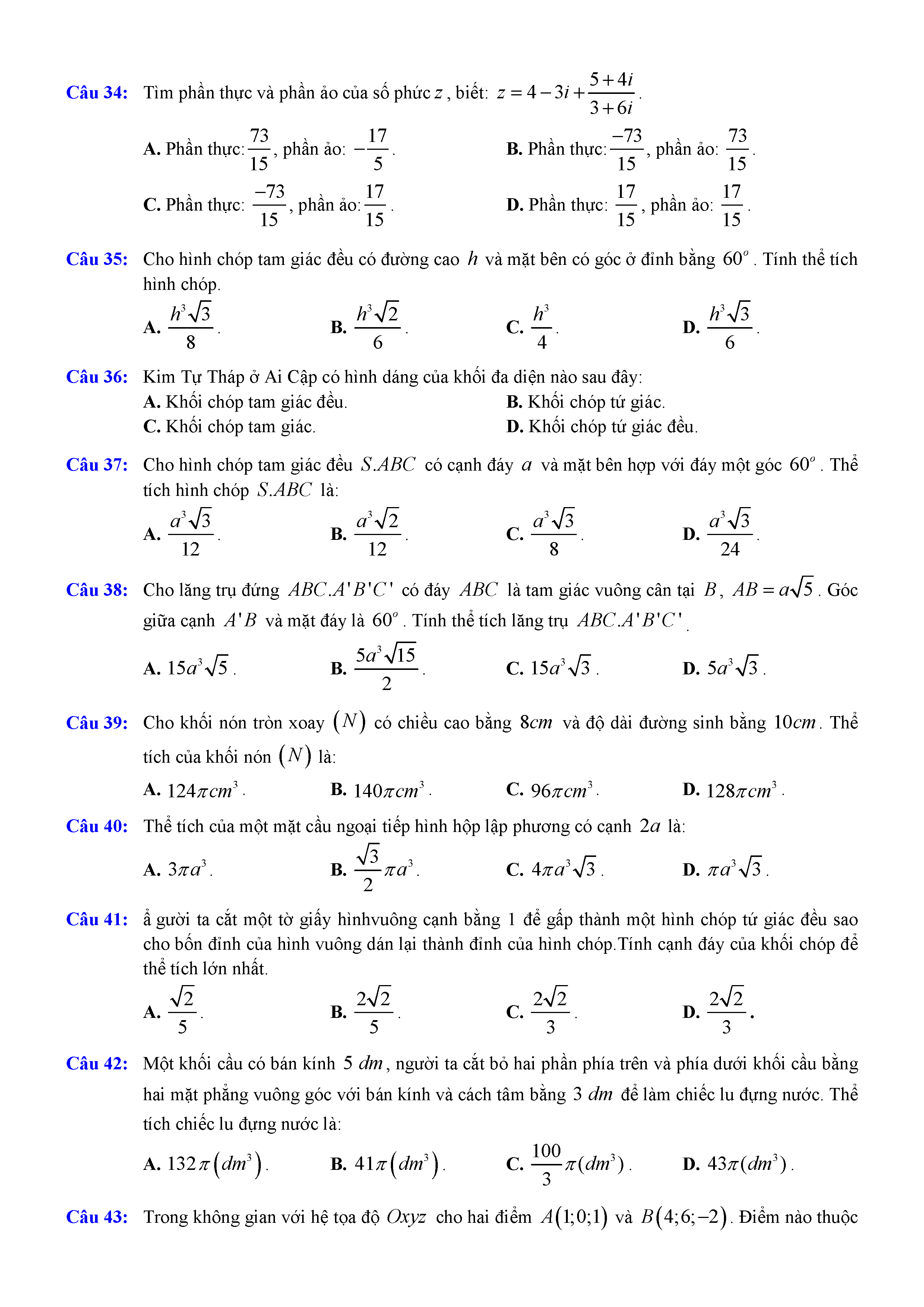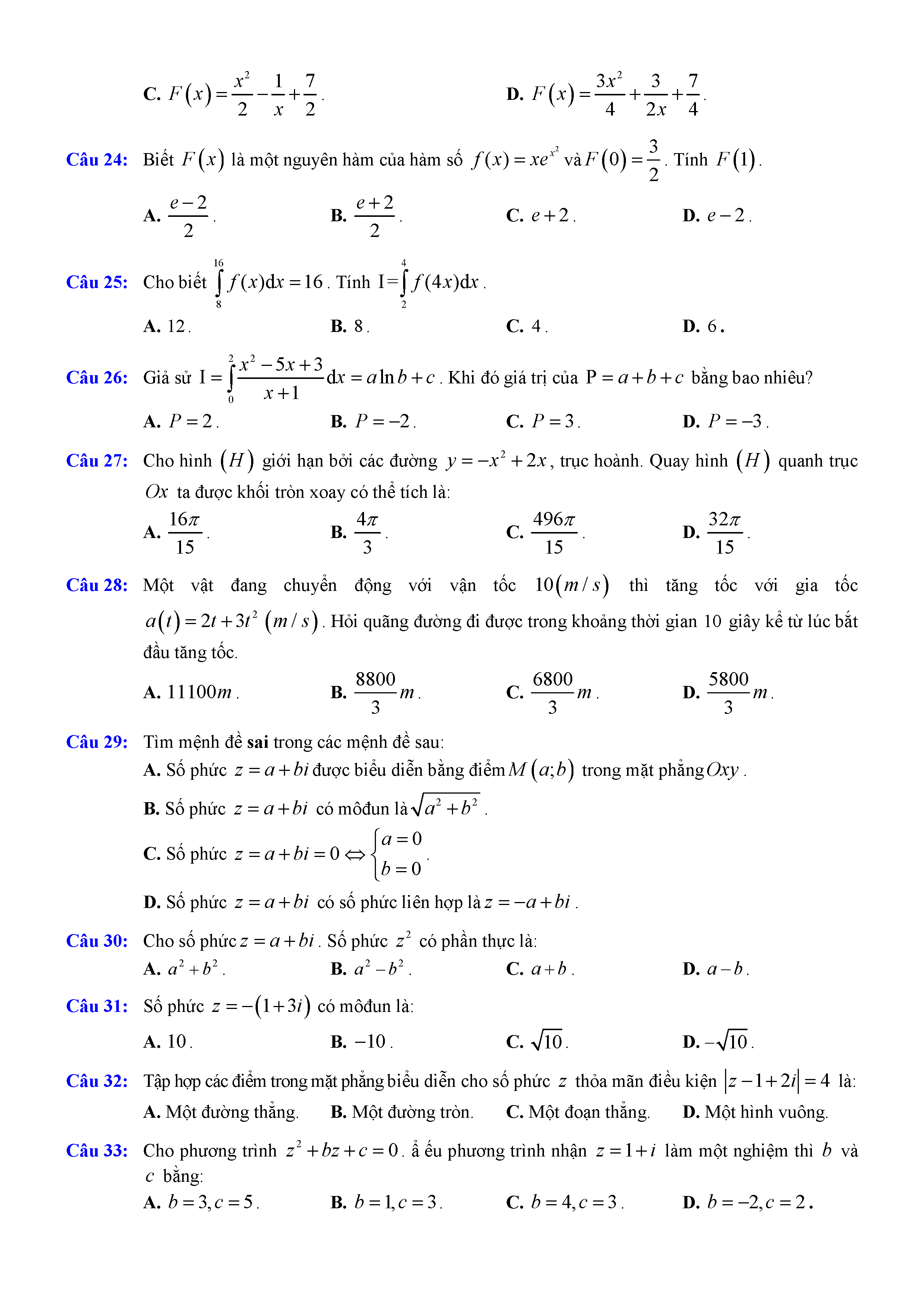 Đề thi thử THPTQG môn Toán năm 2017 GDTX Cam Ranh