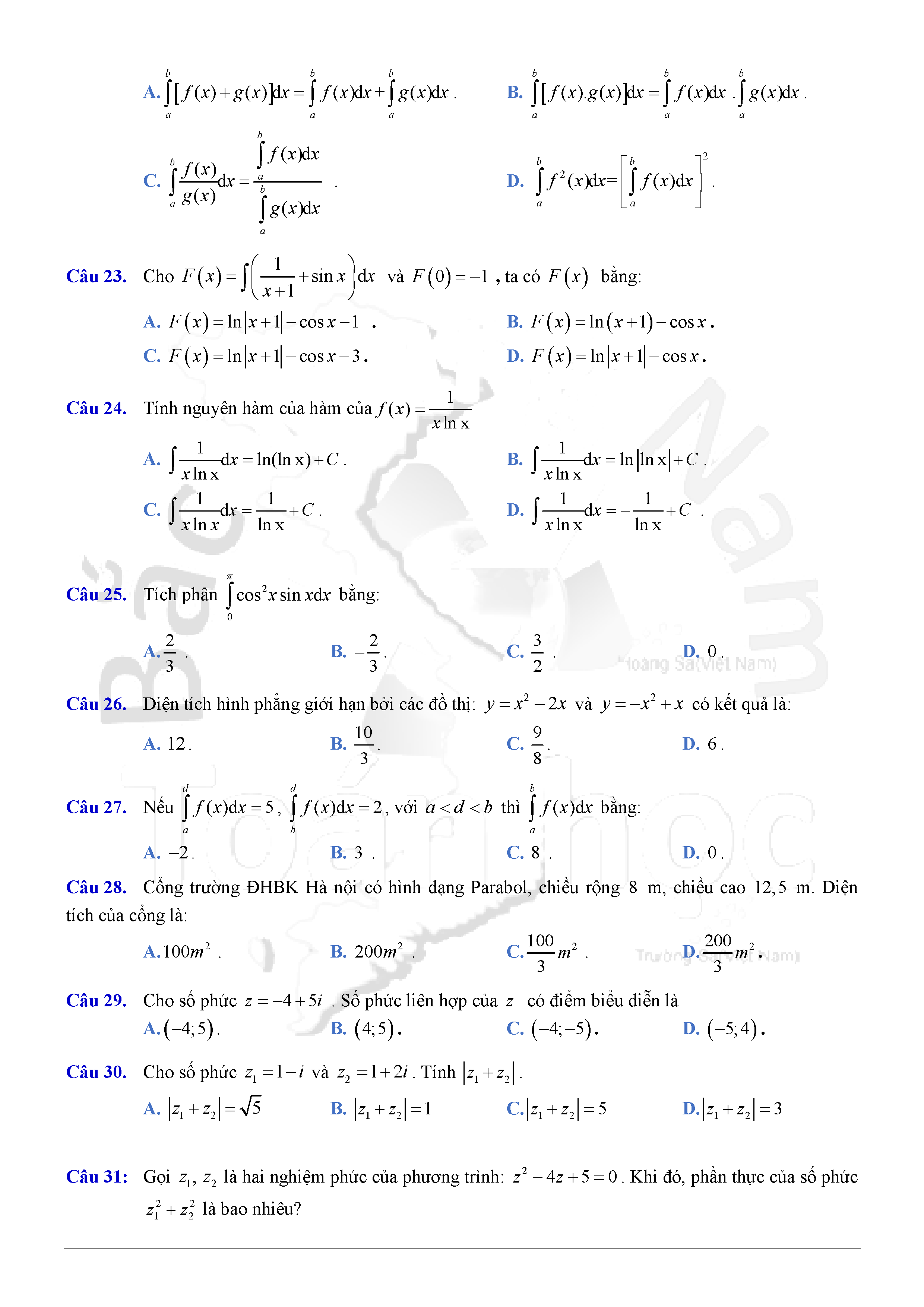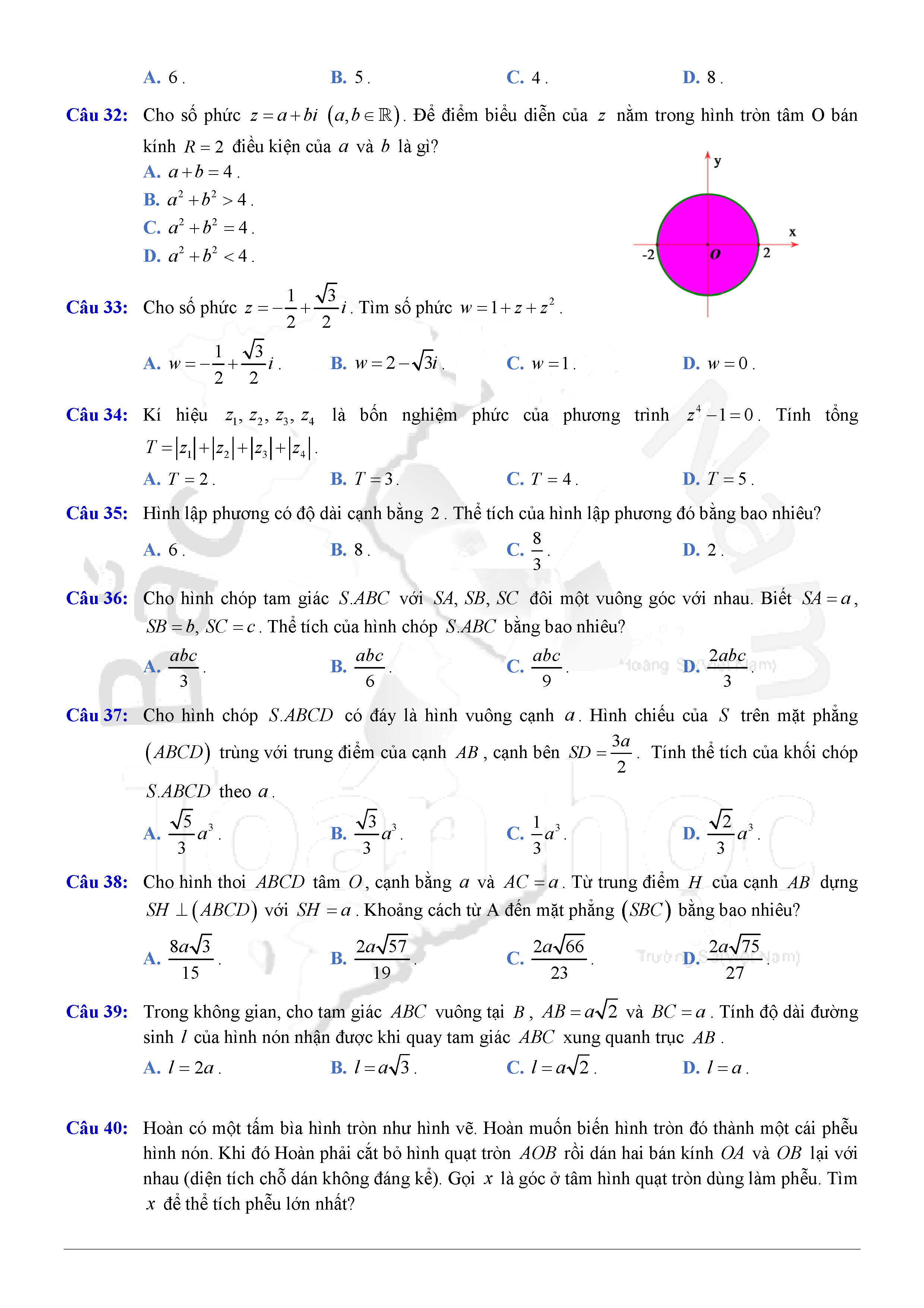 Đề thi thử THPTQG môn Toán năm 2017 Sở Hà Tĩnh S5