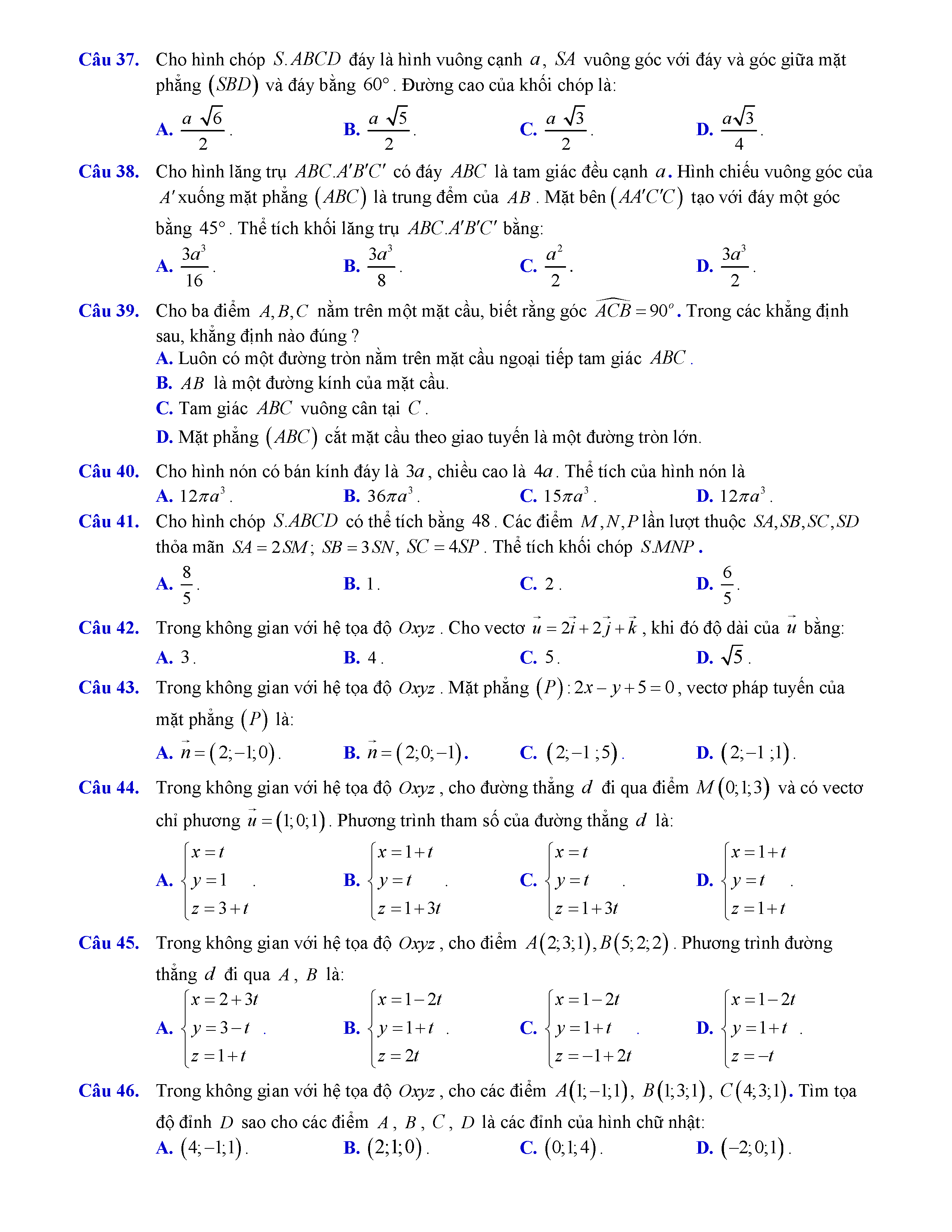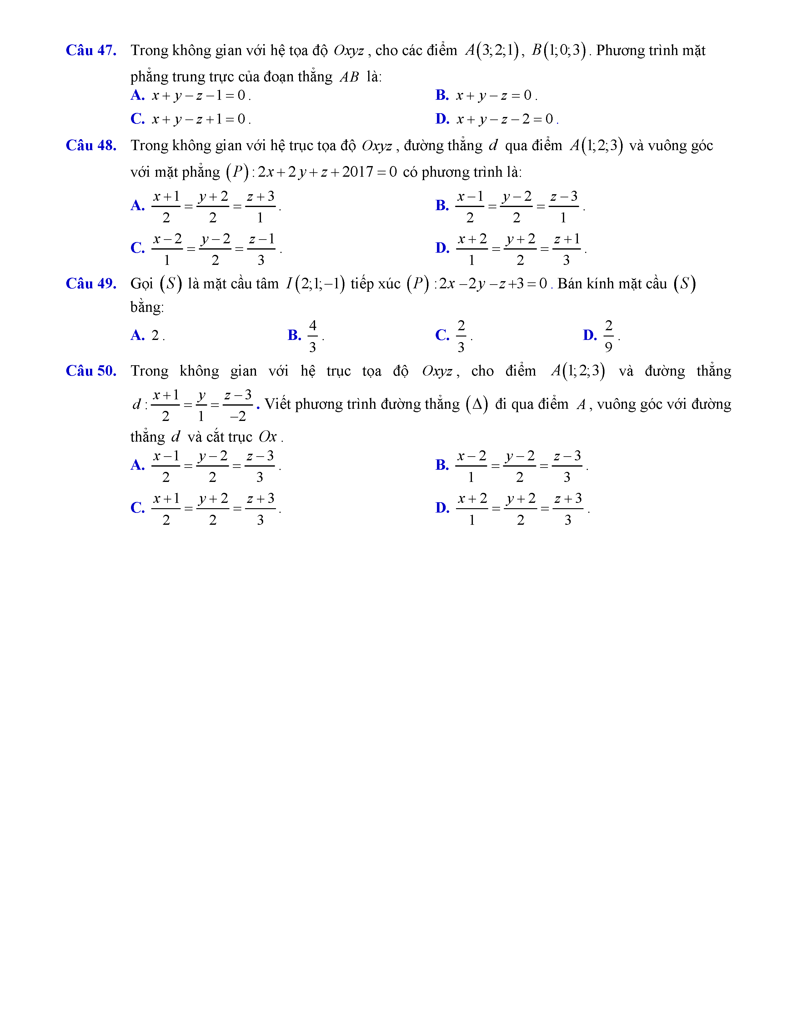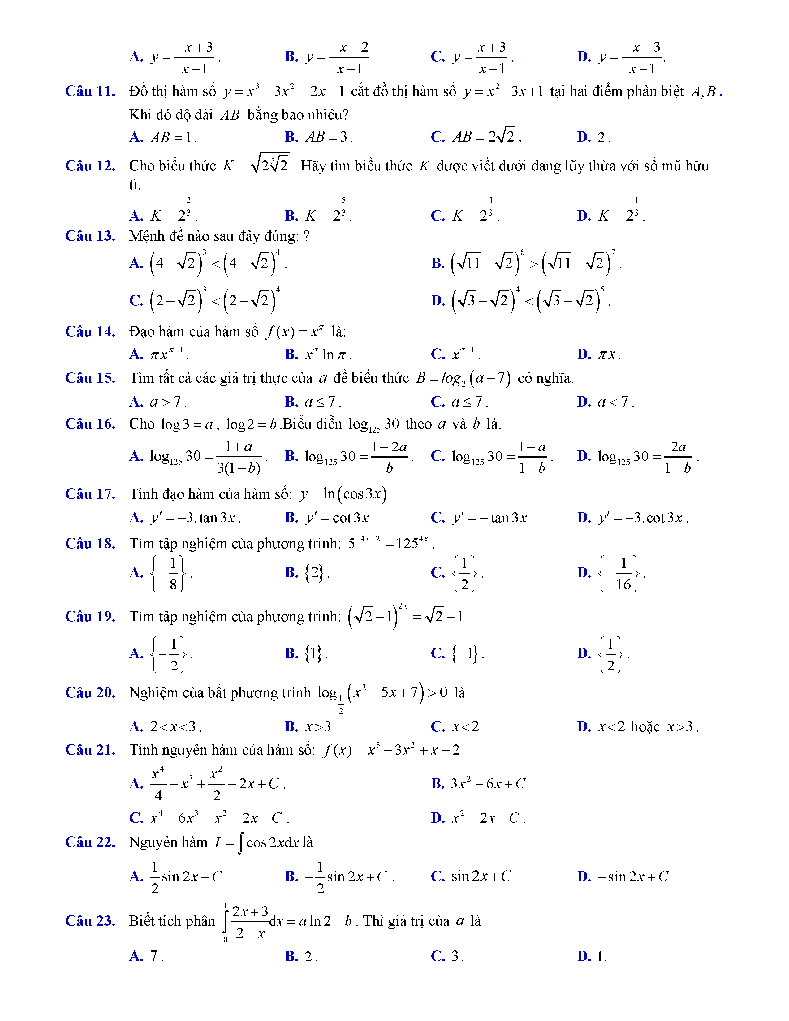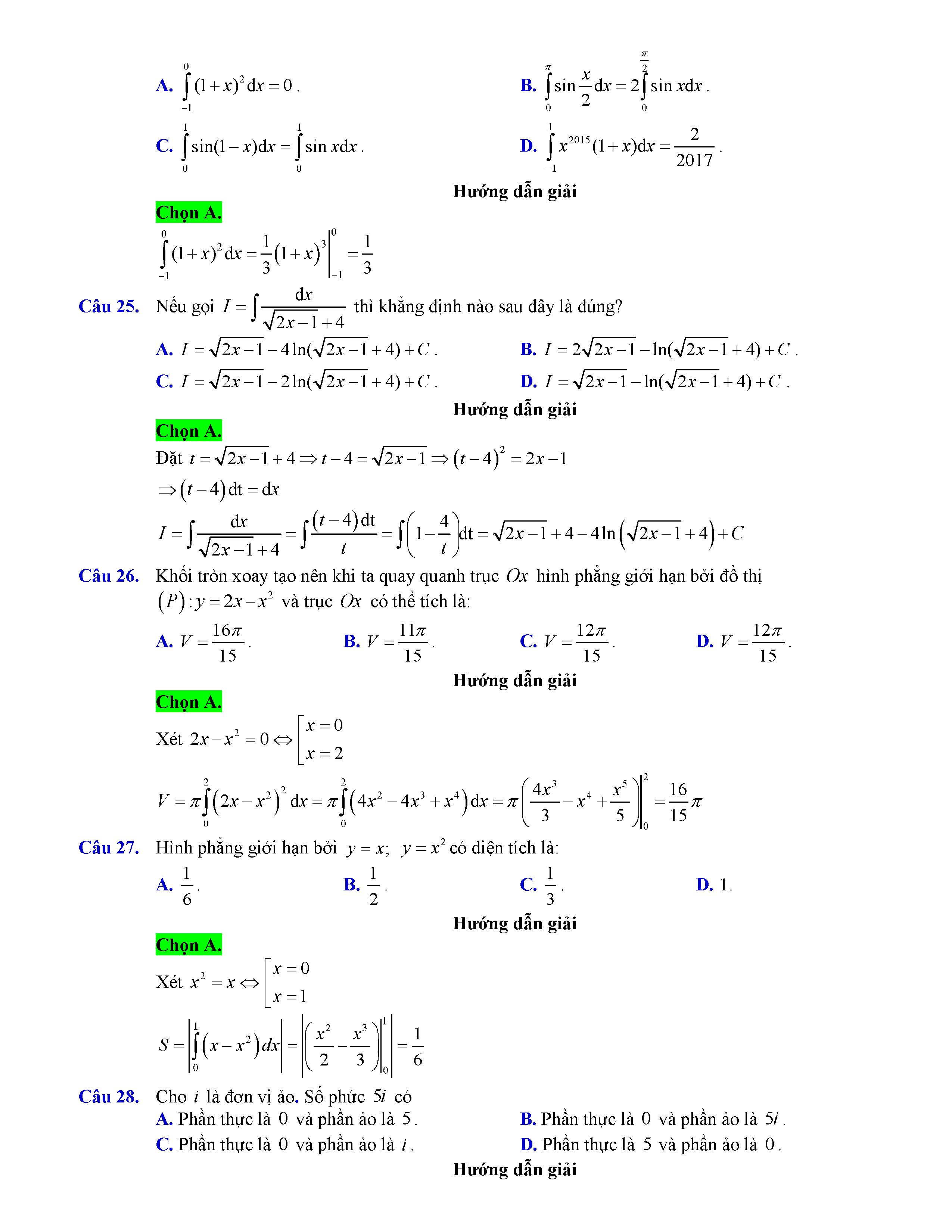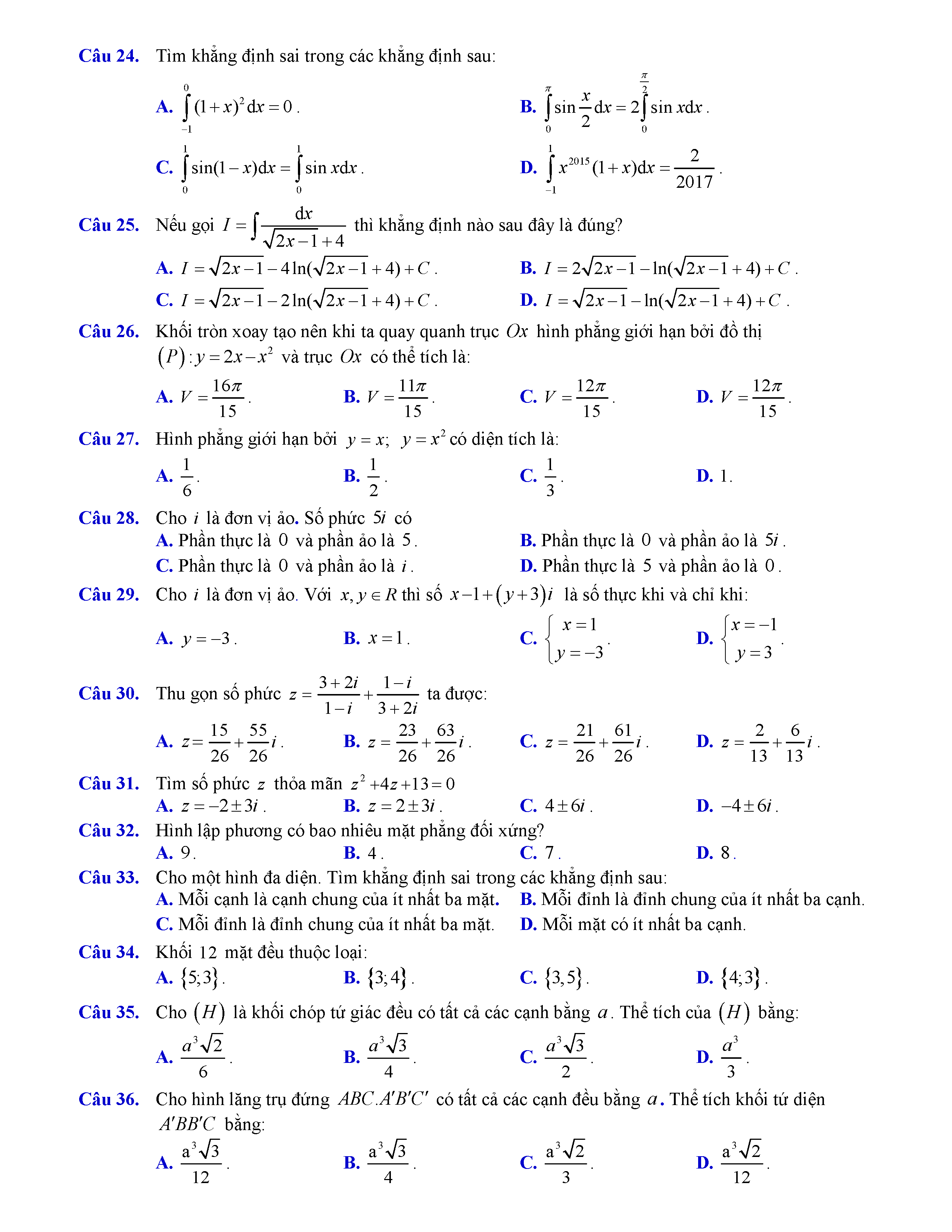 Đề thi thử THPTQG môn Toán năm 2017 trường DTNT Khánh Hóa