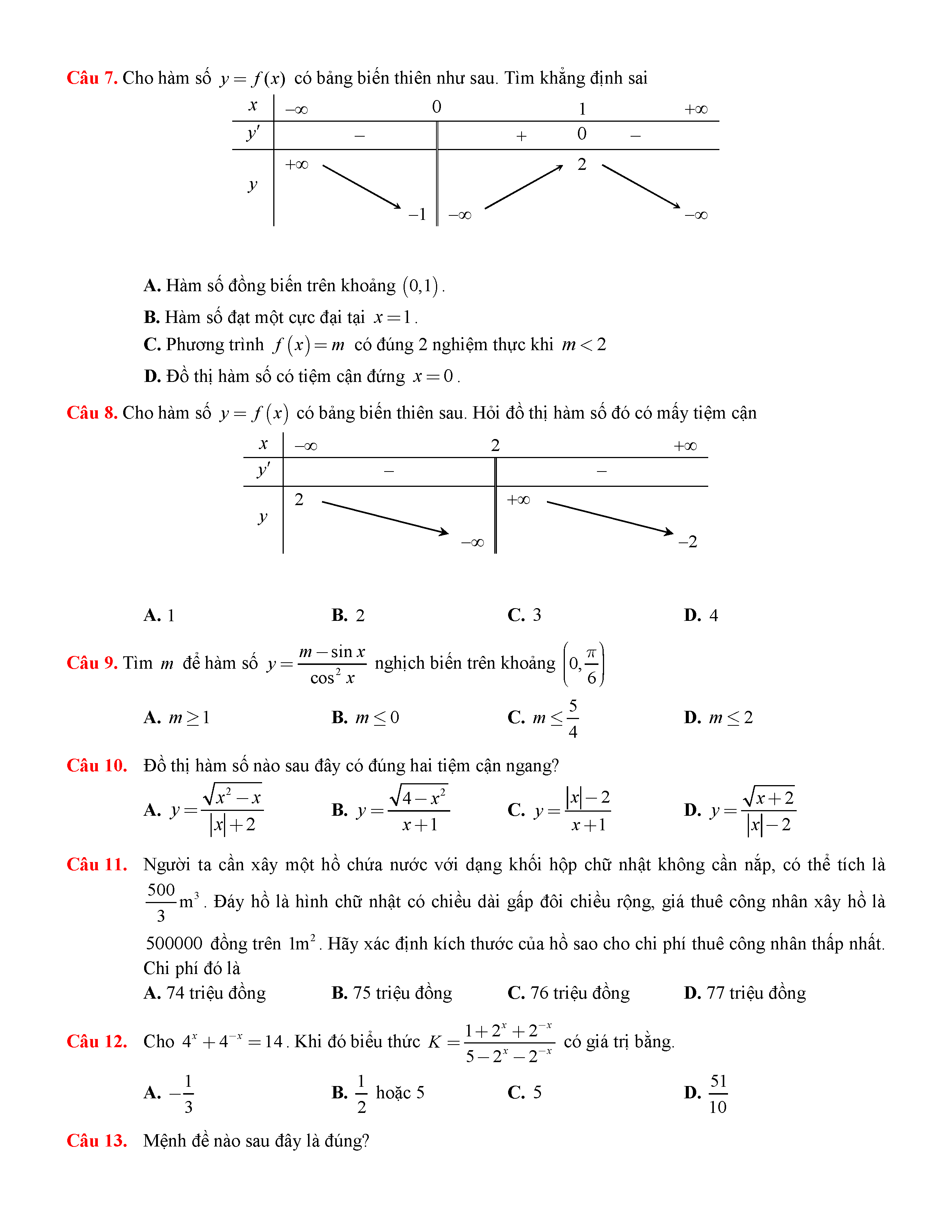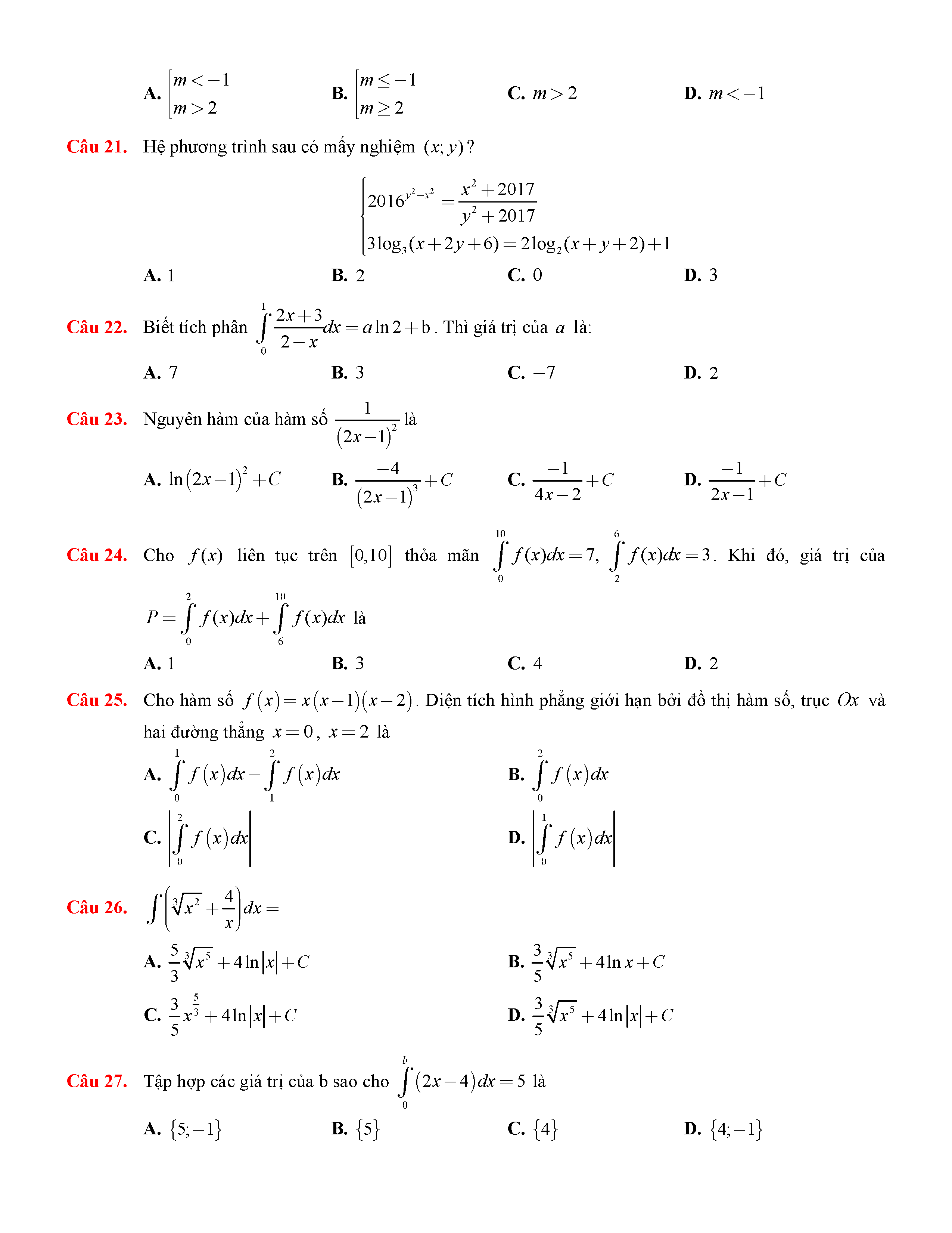 Đề thi thử THPTQG môn Toán năm 2017 trường GDTX Cam Lâm