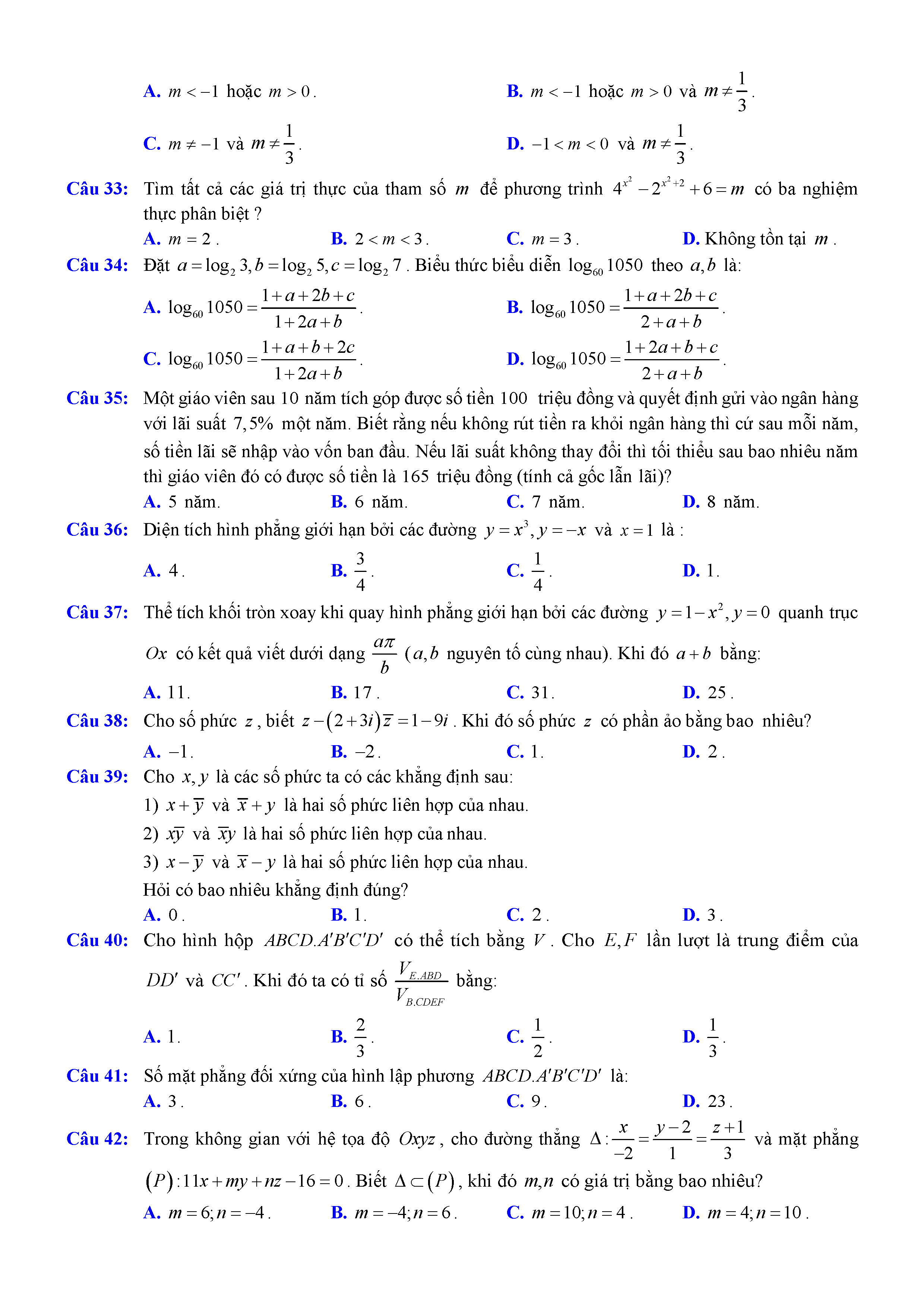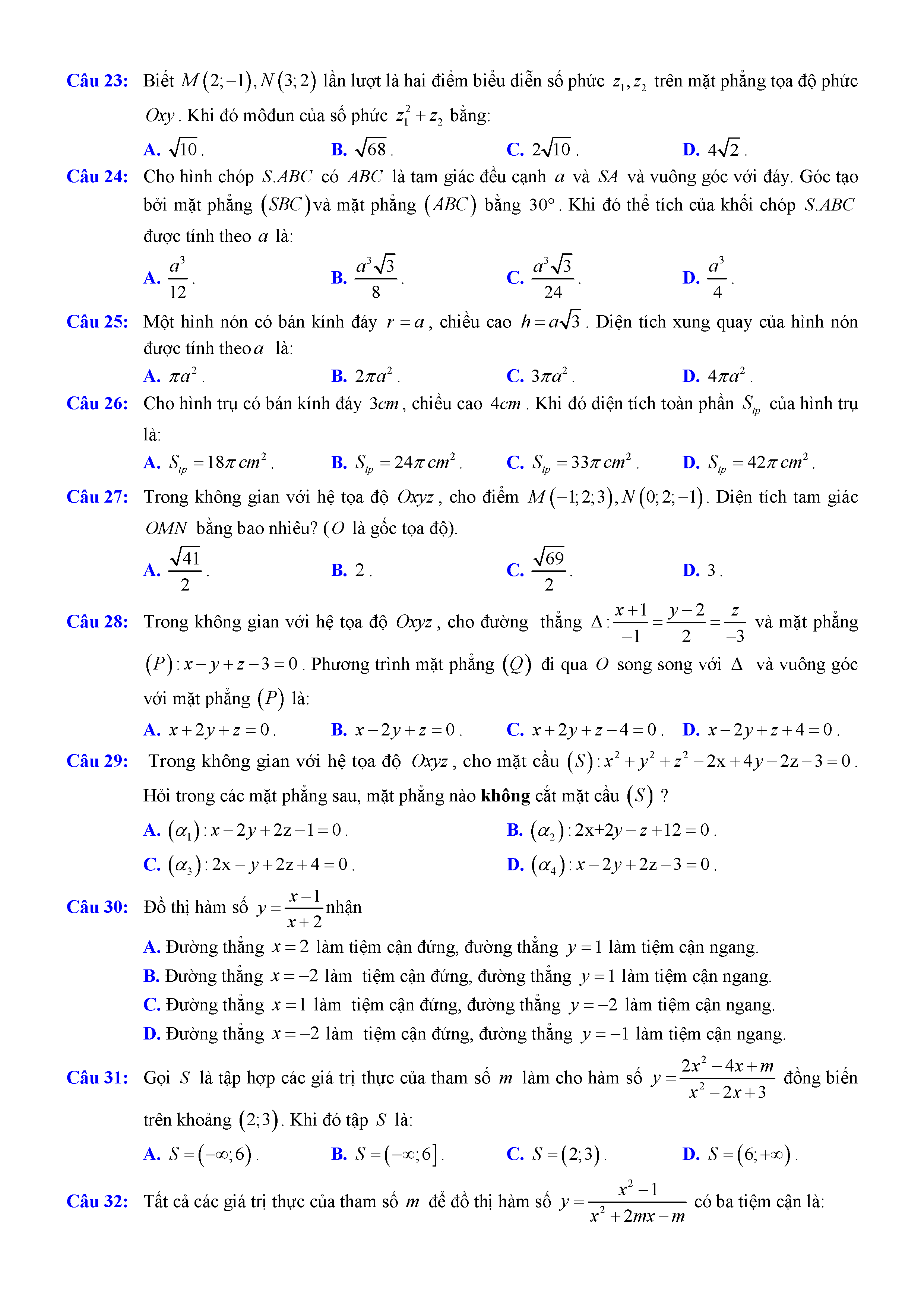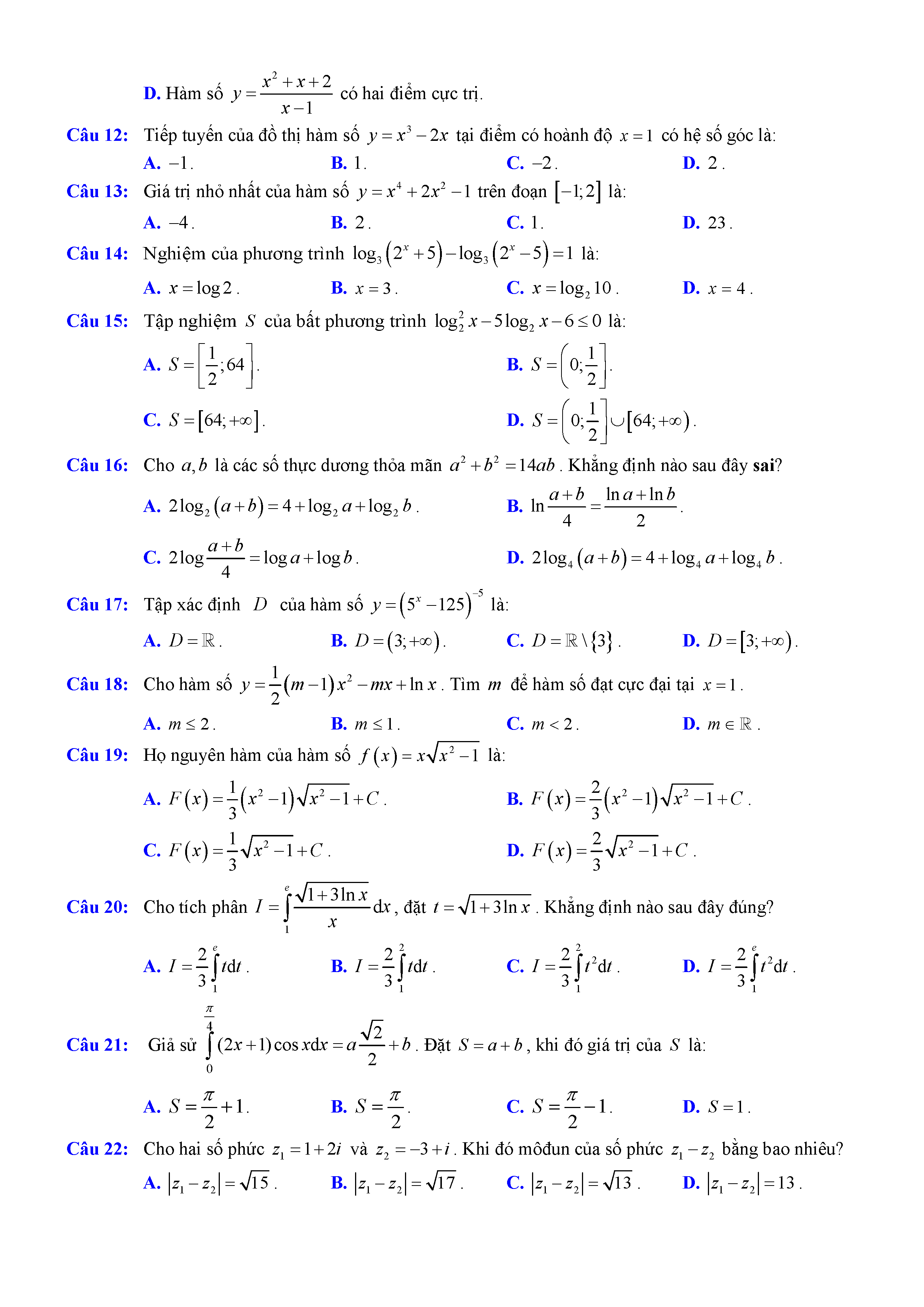 Đề thi thử THPTQG môn Toán năm 2017 trường Huỳnh Thúc Kháng