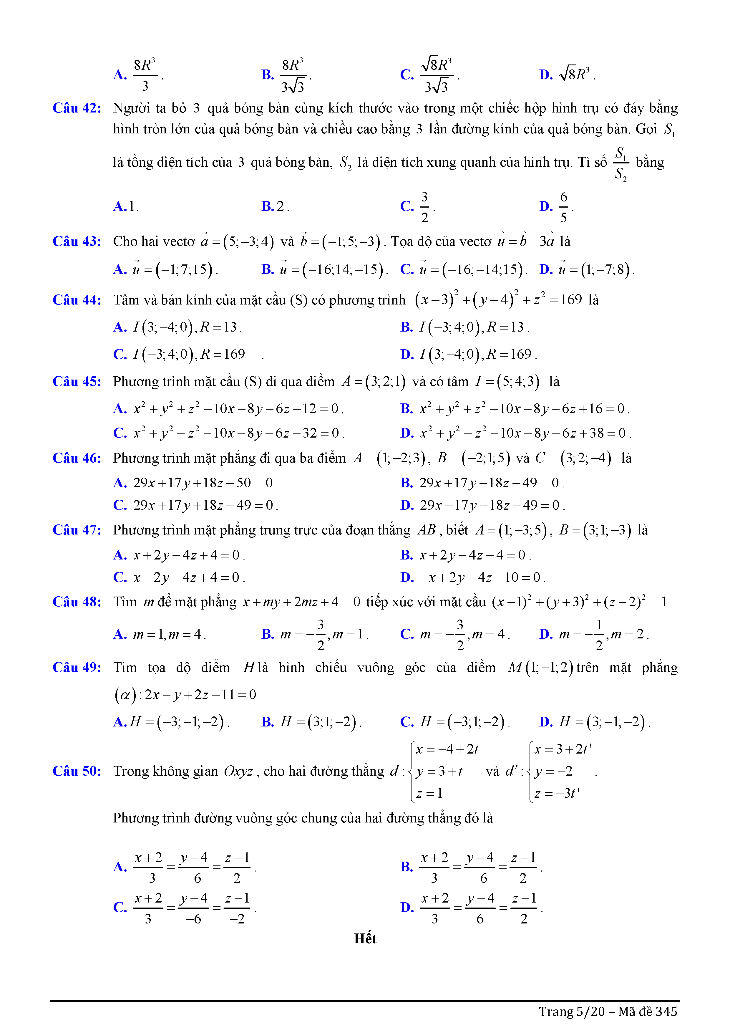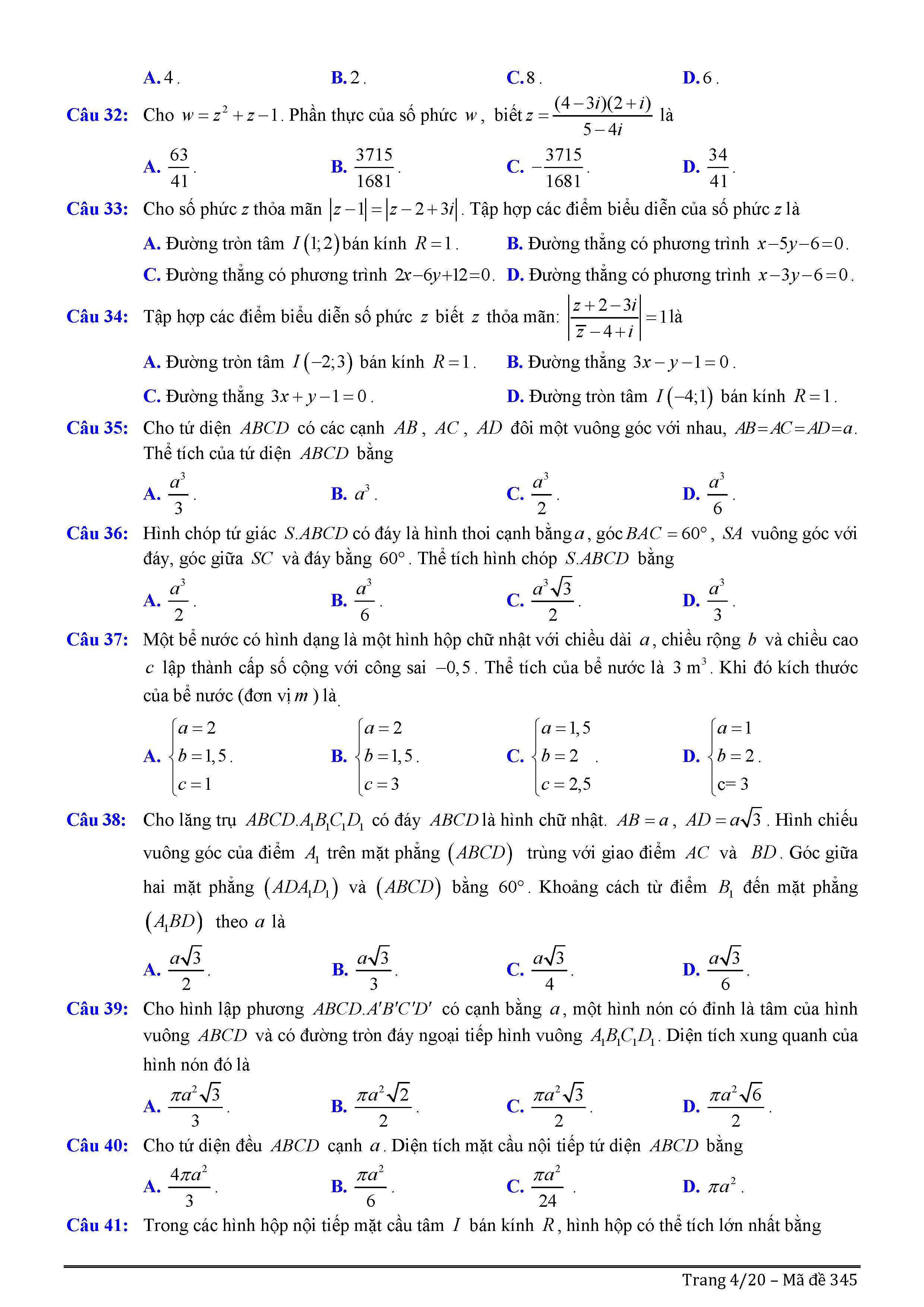 Đề thi thử THPTQG môn Toán năm 2017 trường Lê Khánh Hòa