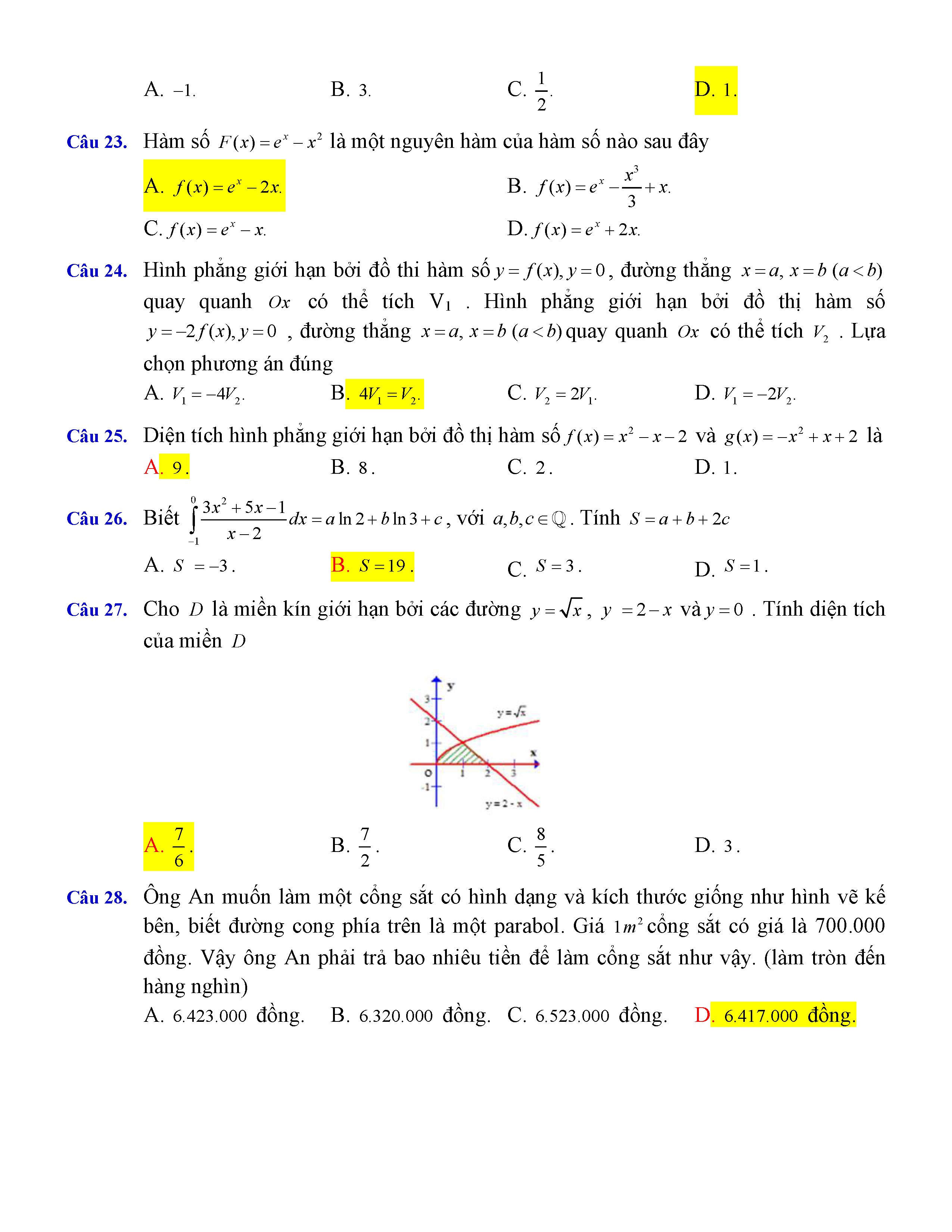 Đề thi thử THPTQG môn Toán năm 2017 trường Trần Hưng Đạo 1