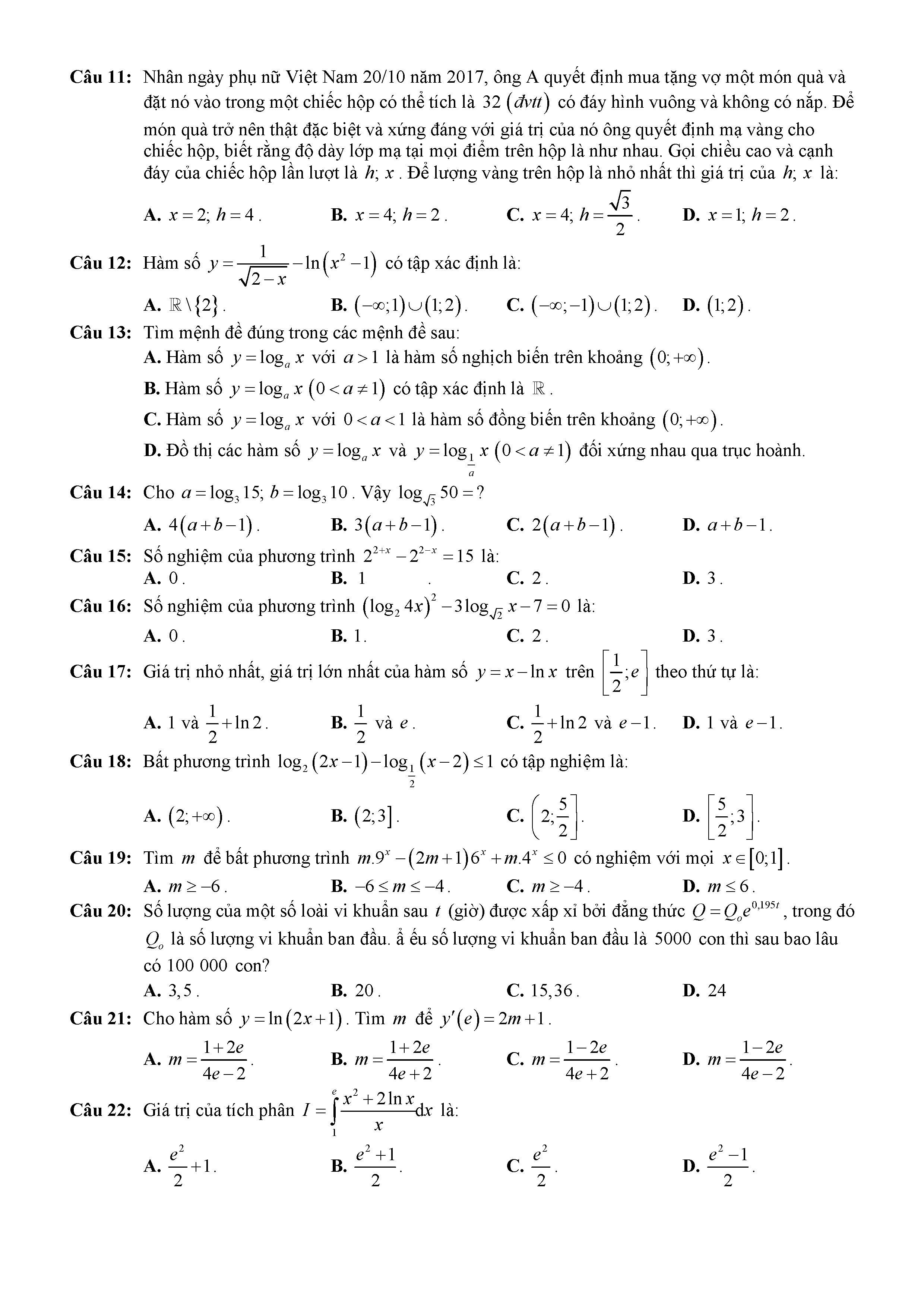 Đề thi thử THPTQG môn Toán năm 2017 trường Trần Quý Cáp