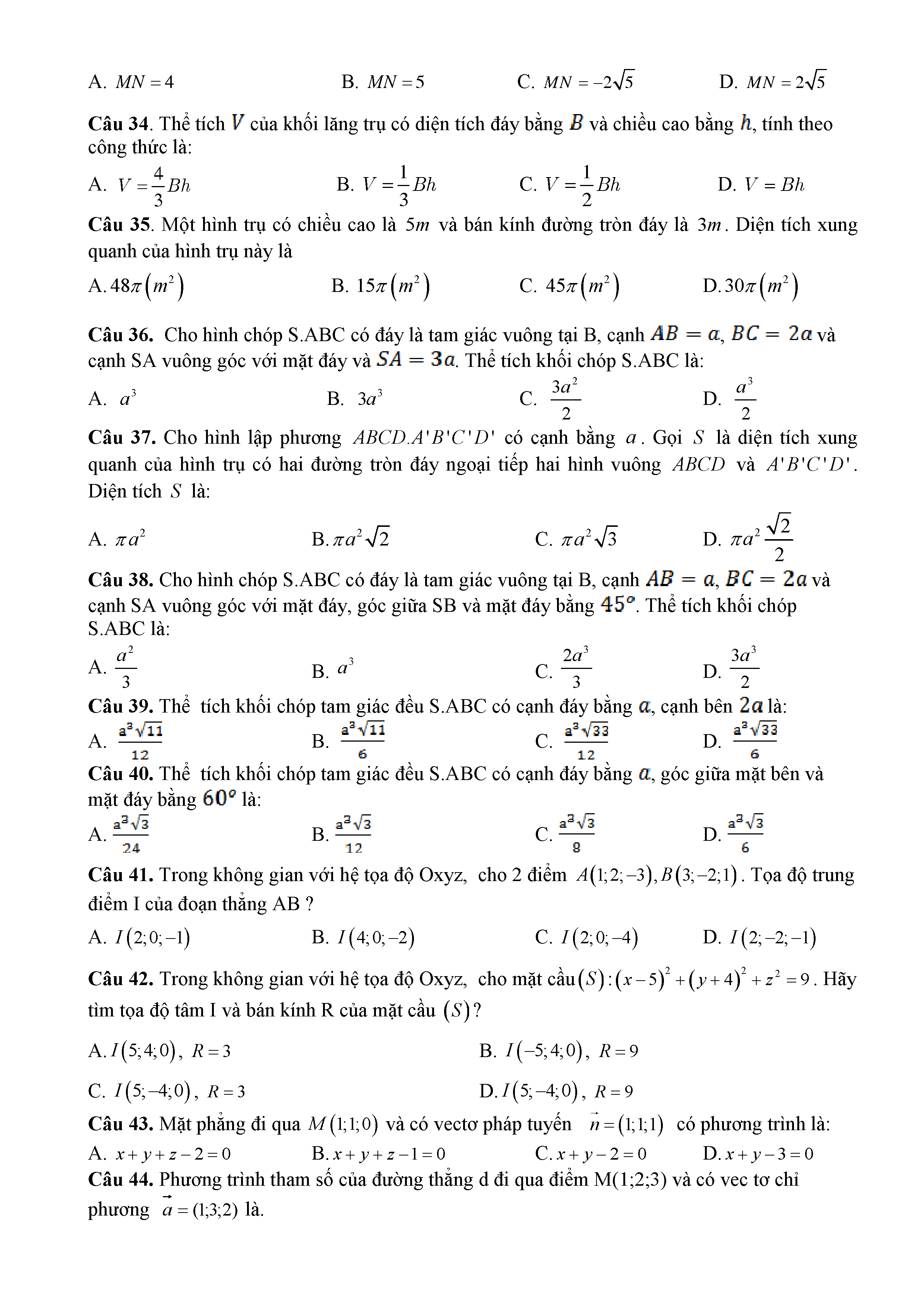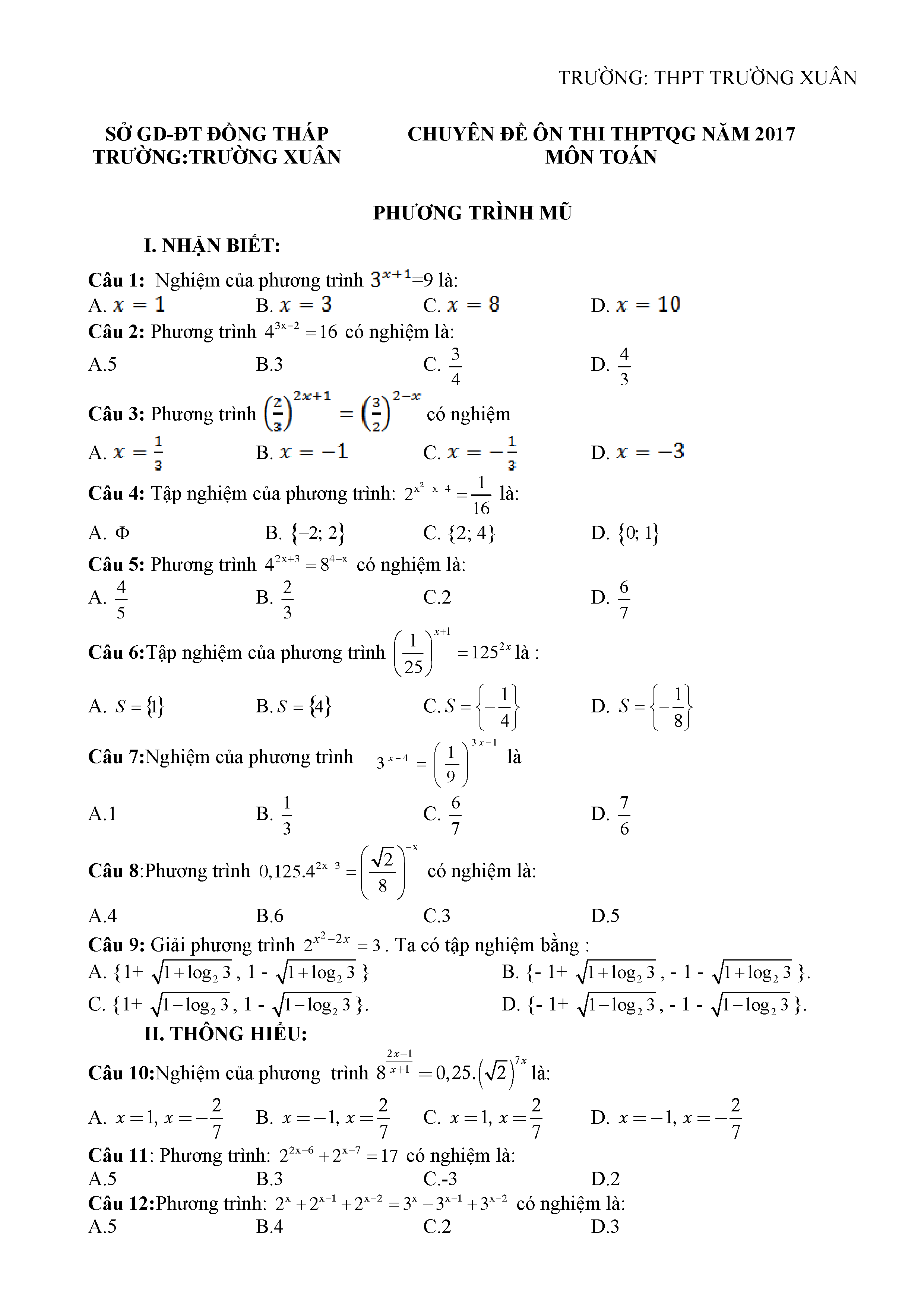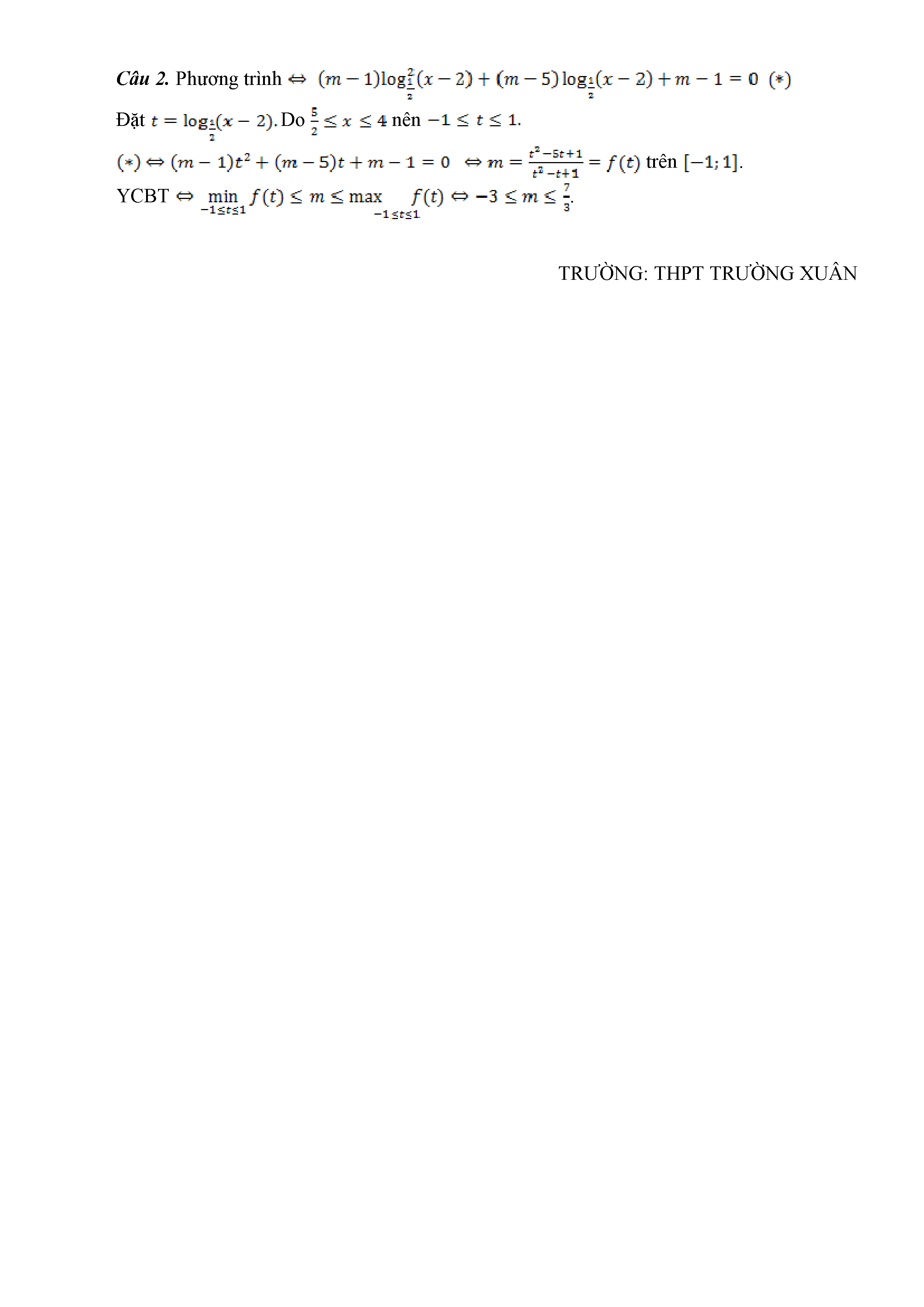 Đề thi thử THPTQG môn Toán năm 2017 trường Trường Xuân