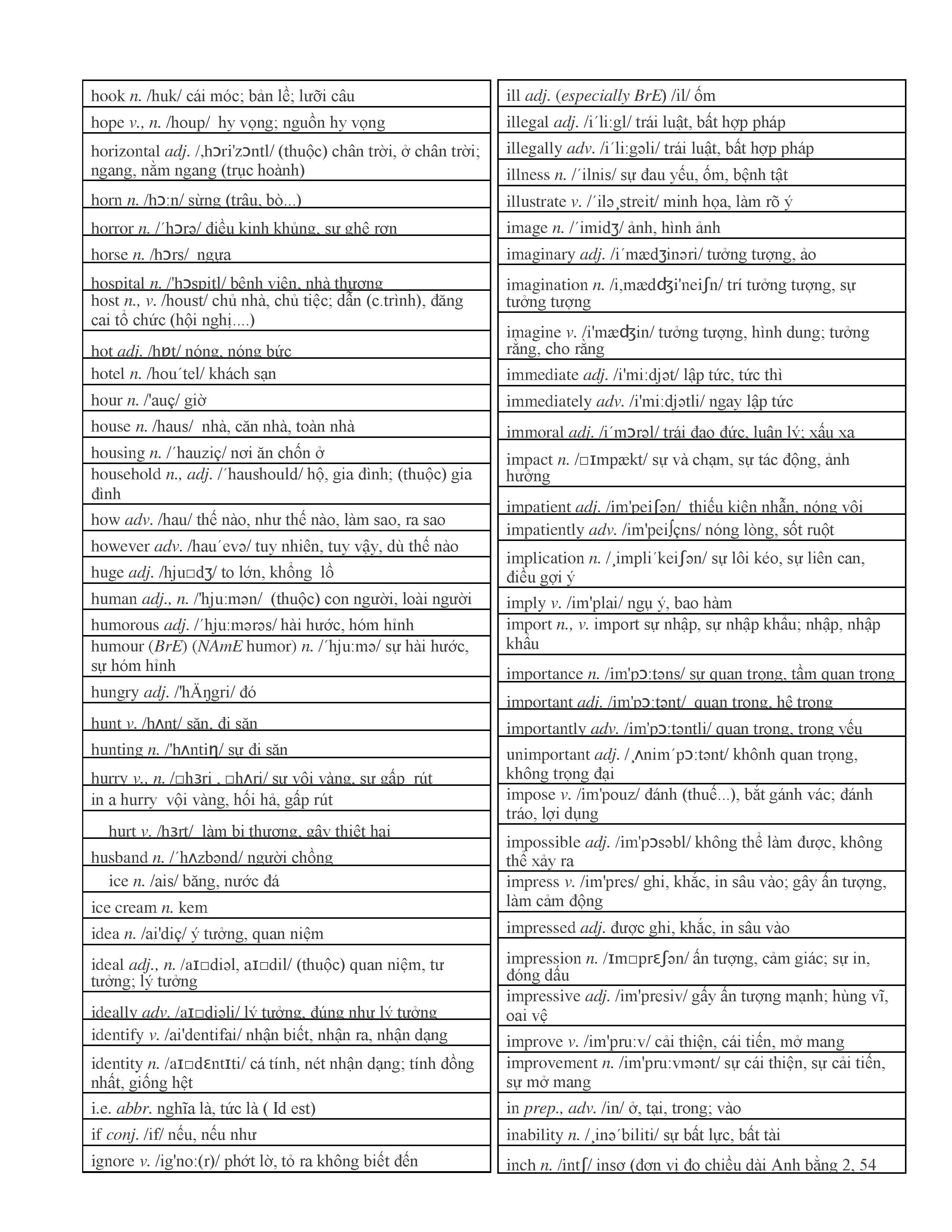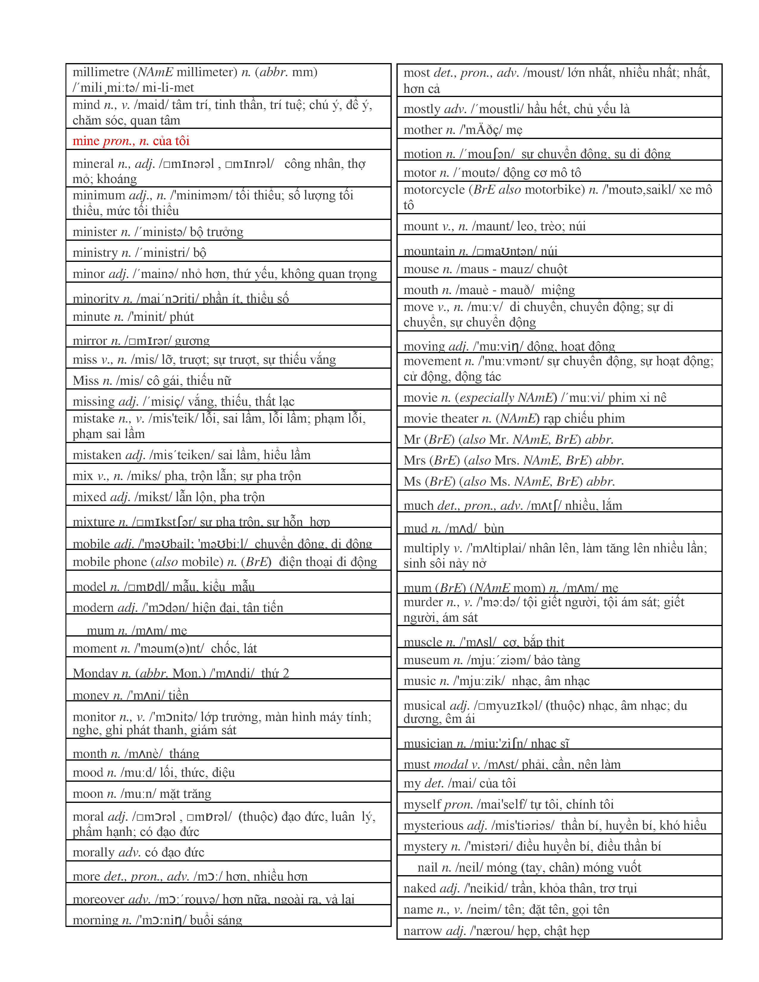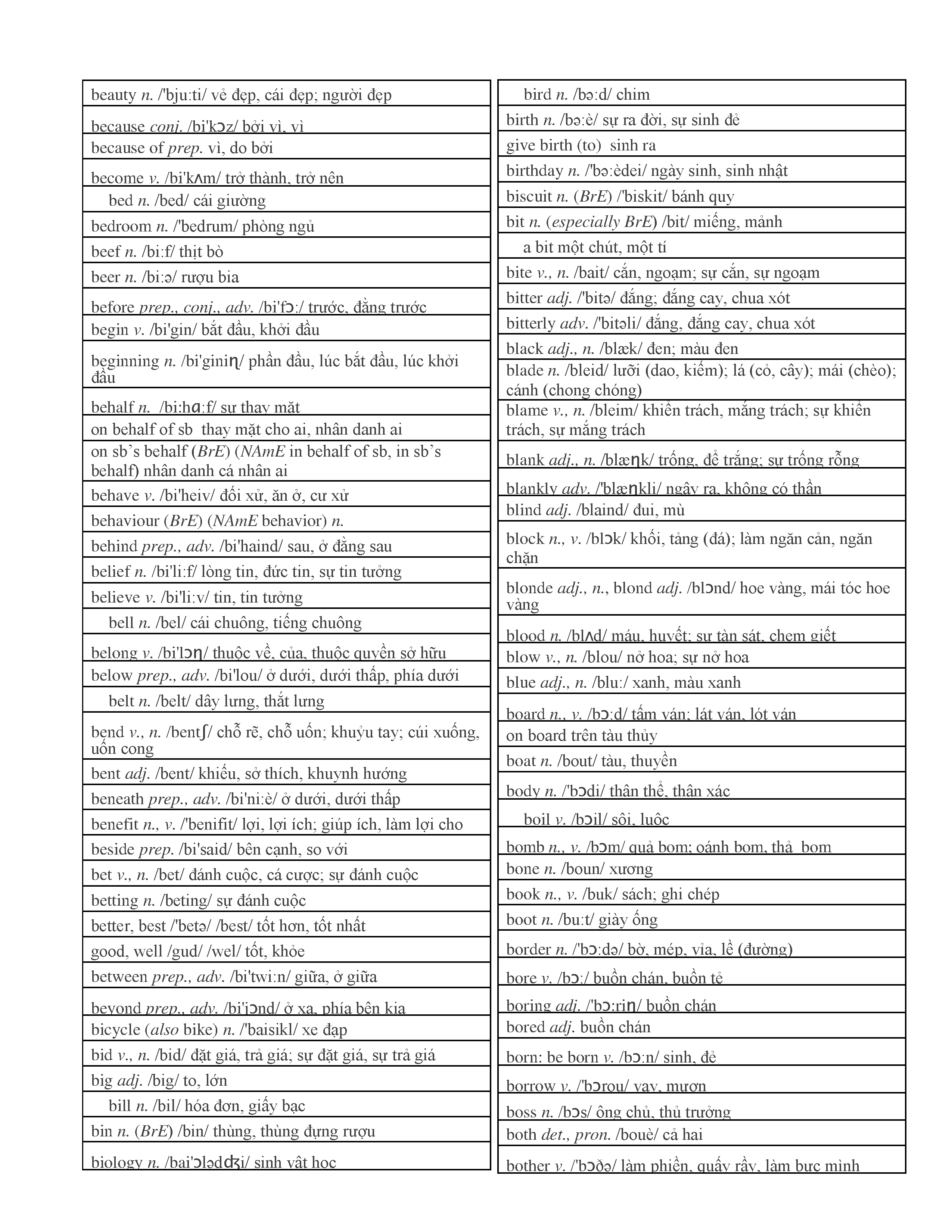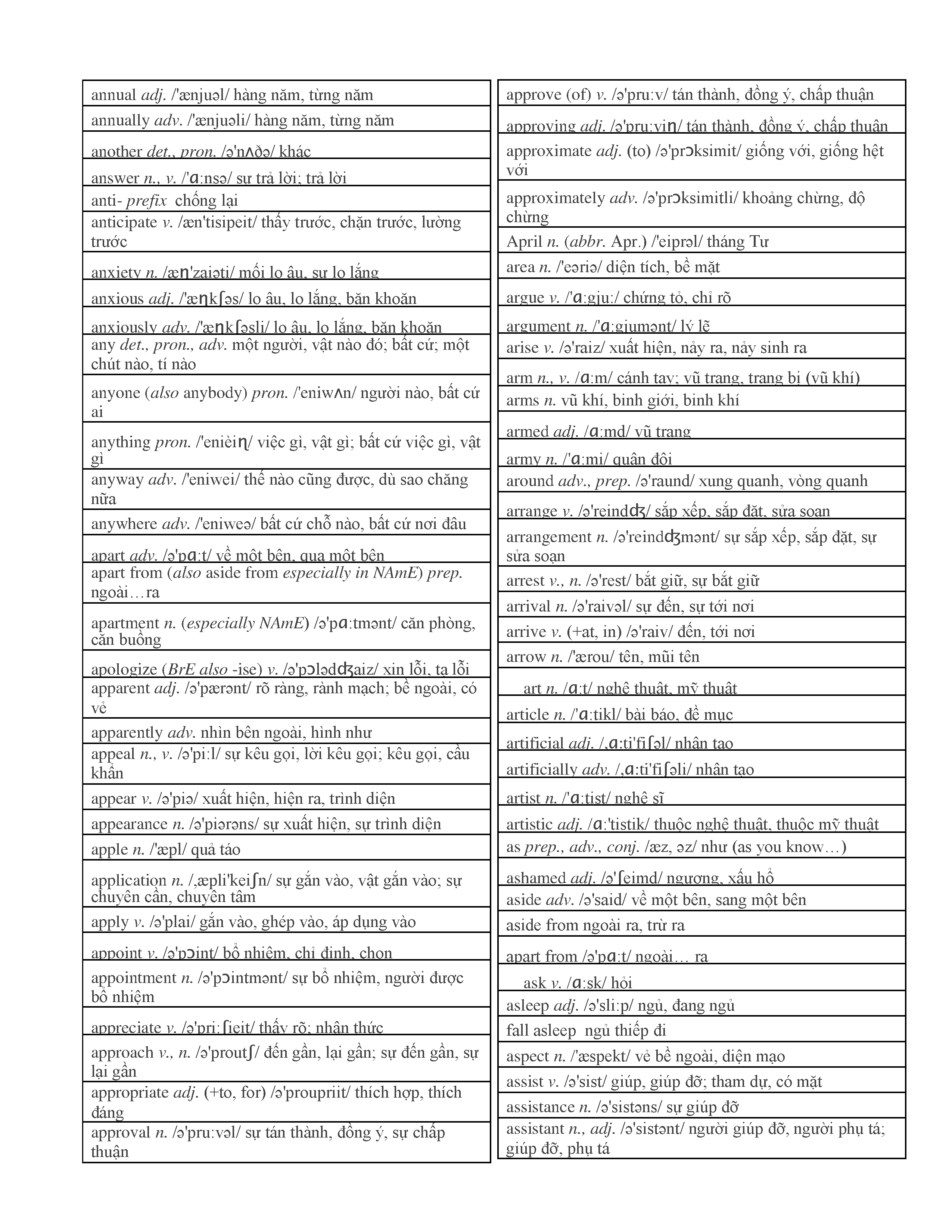 3000 từ vựng Tiếng Anh thông dụng