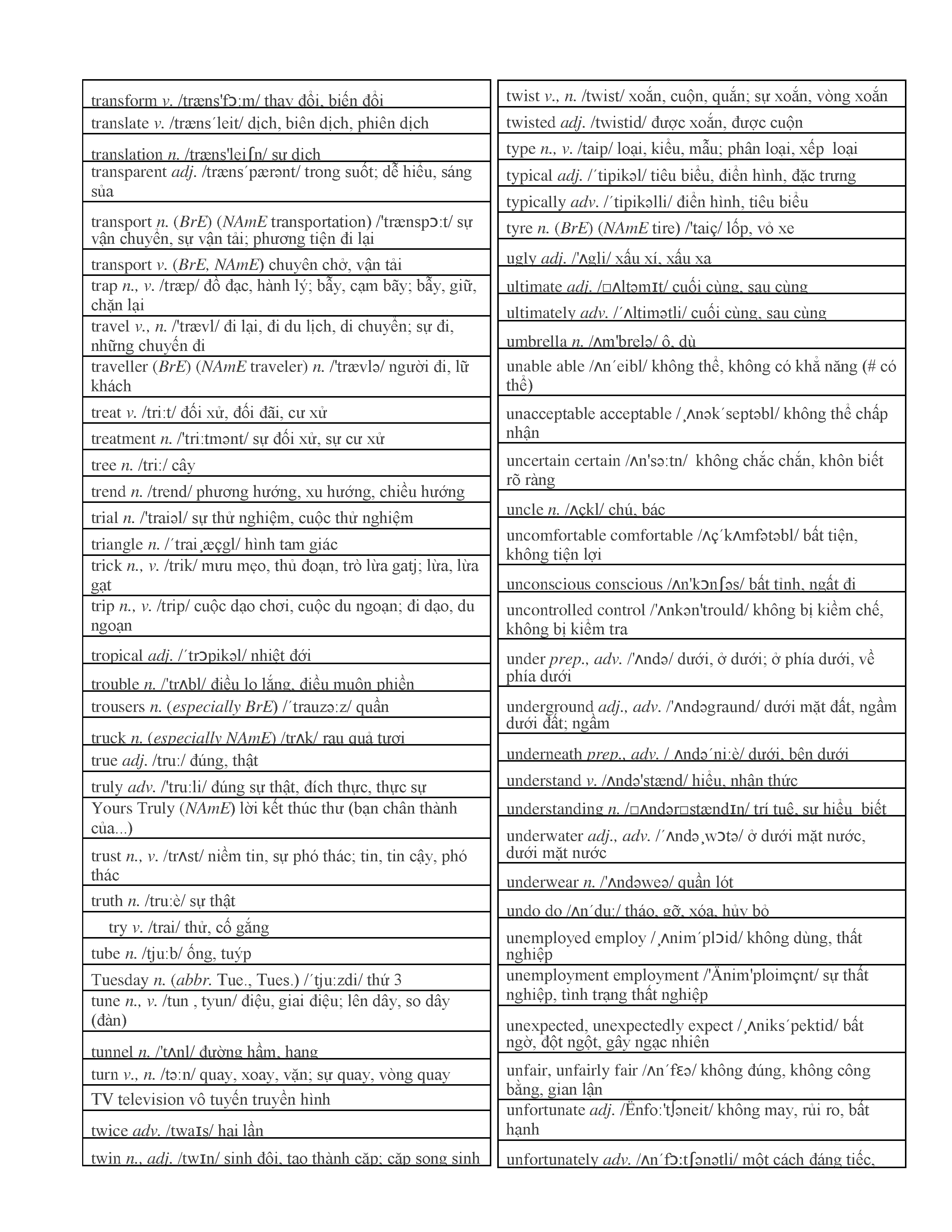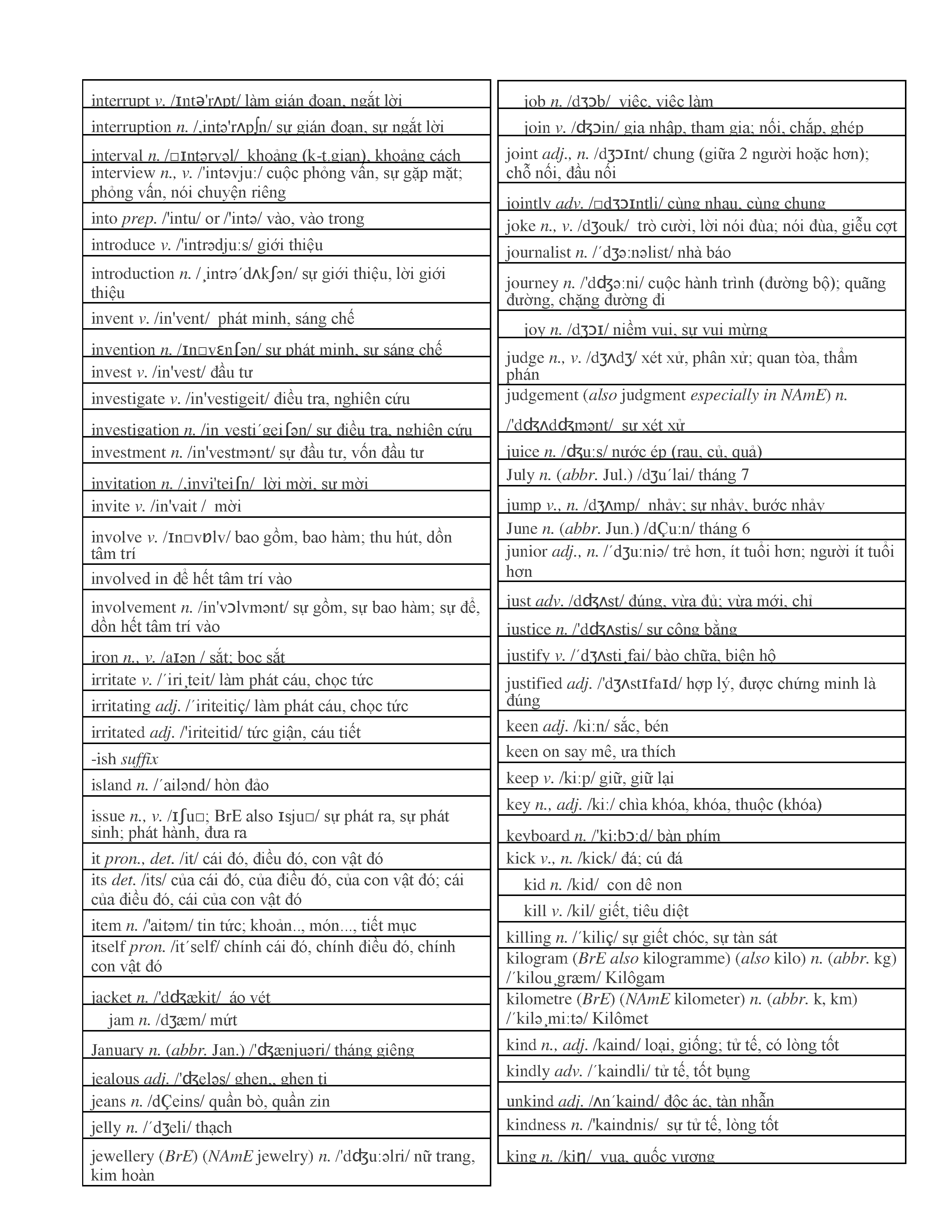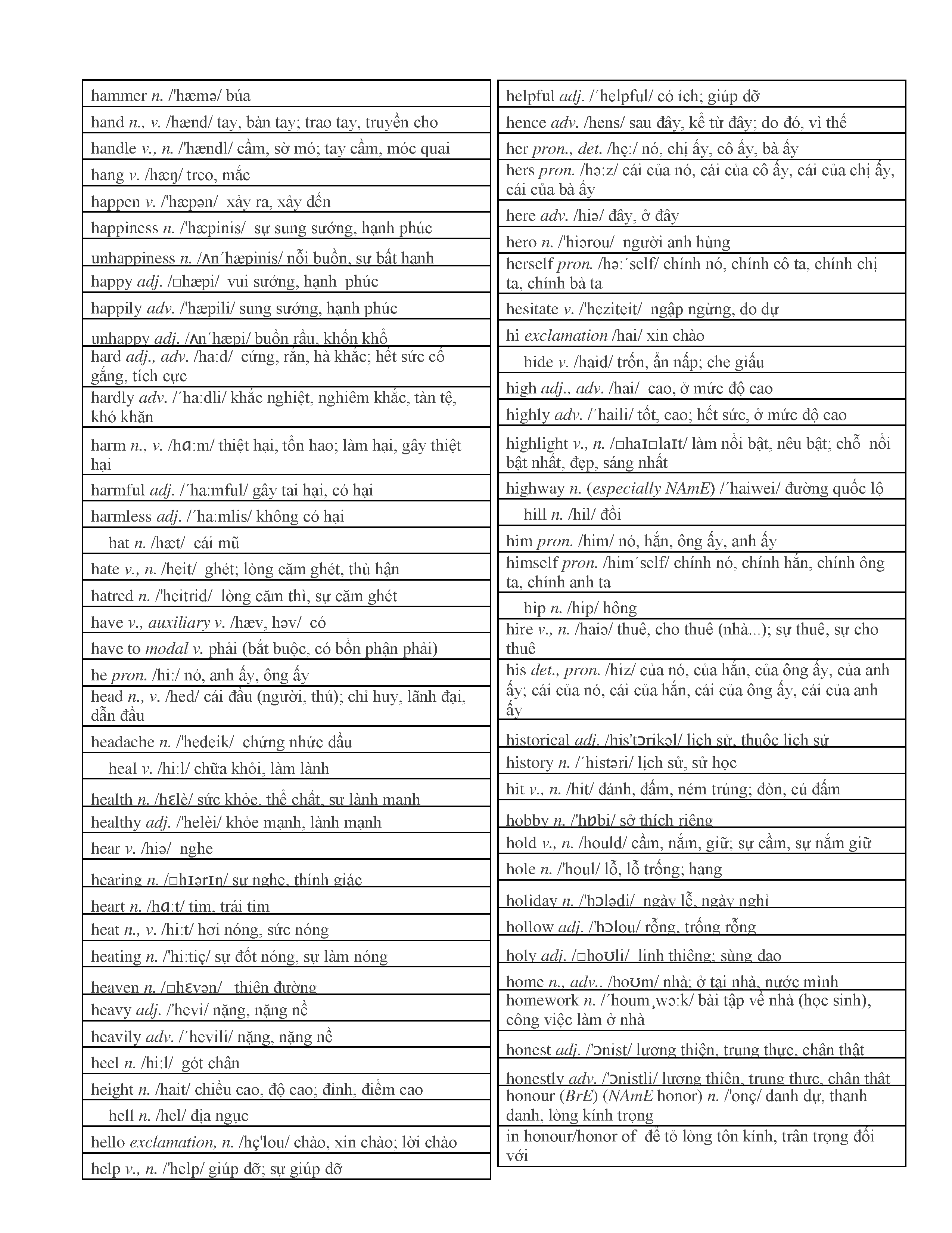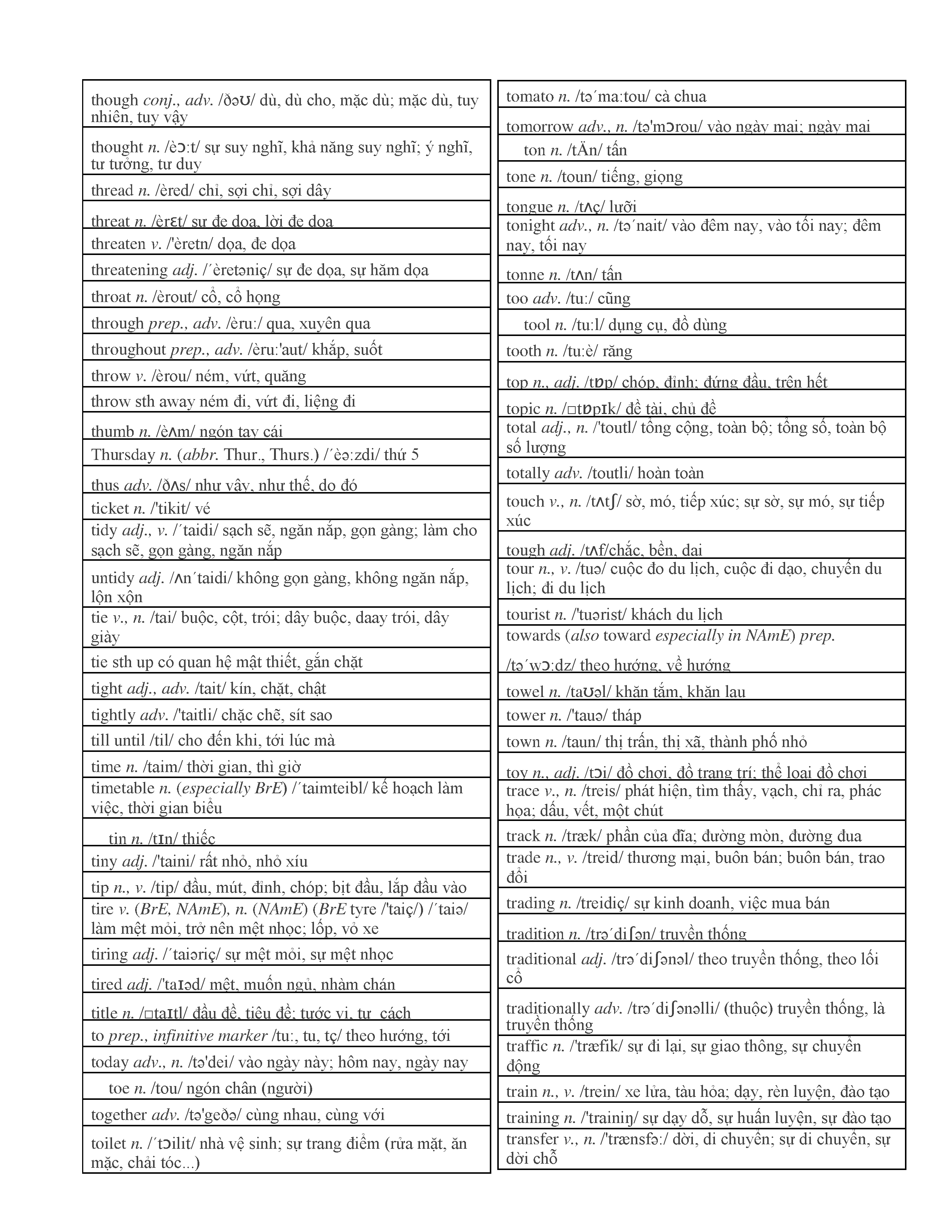 3000 từ vựng Tiếng Anh thông dụng