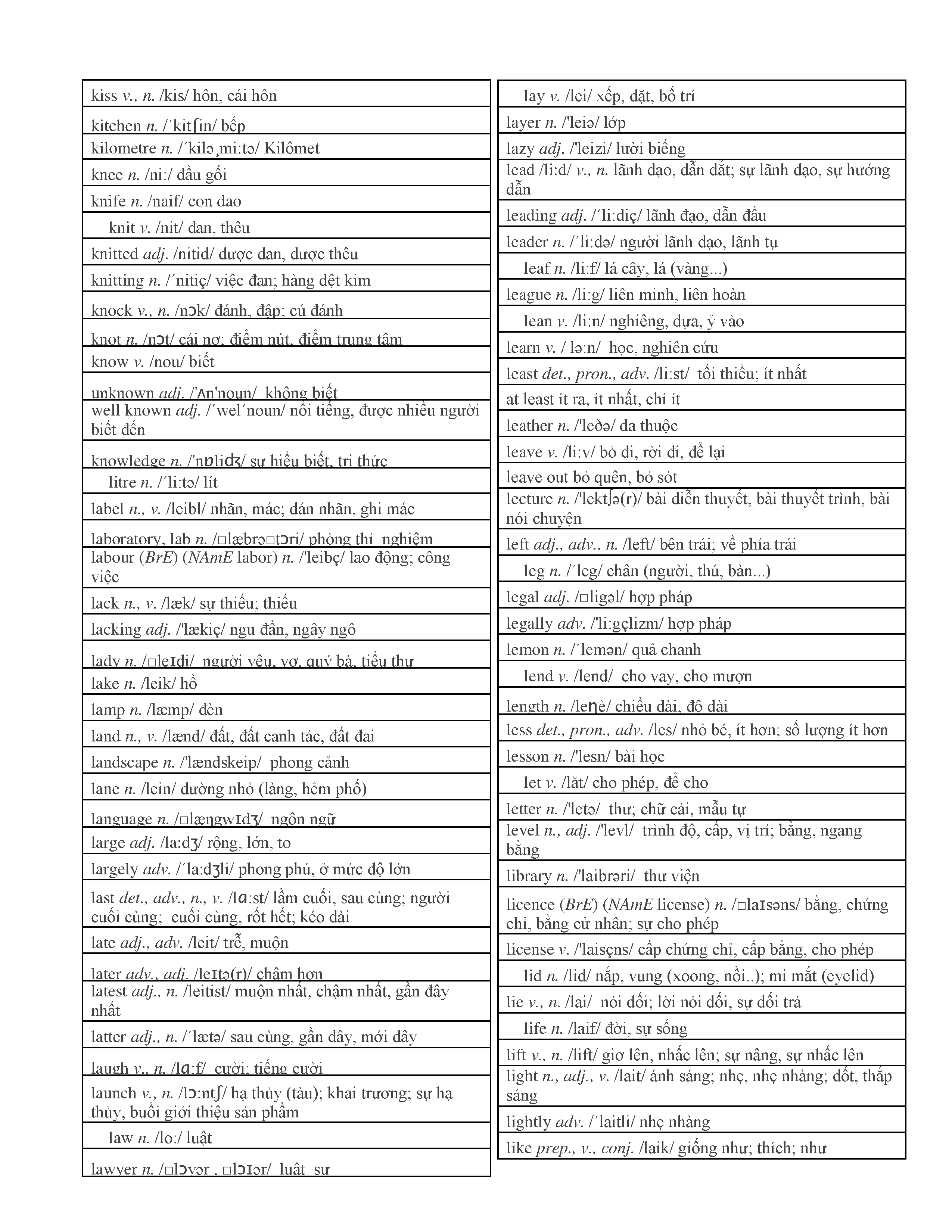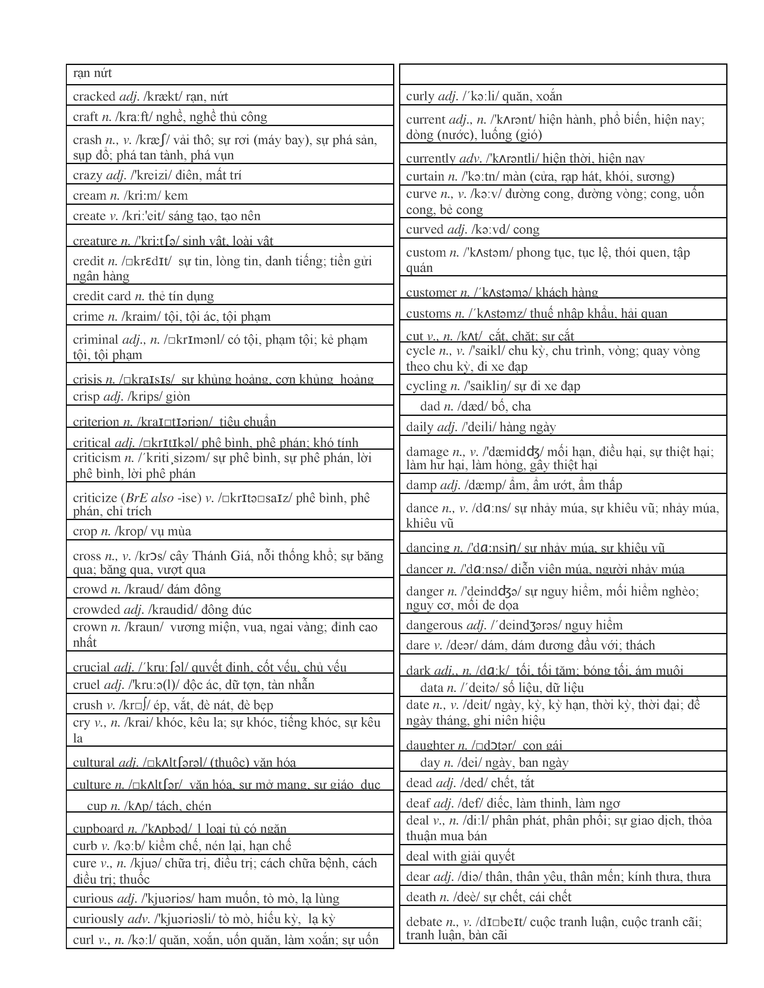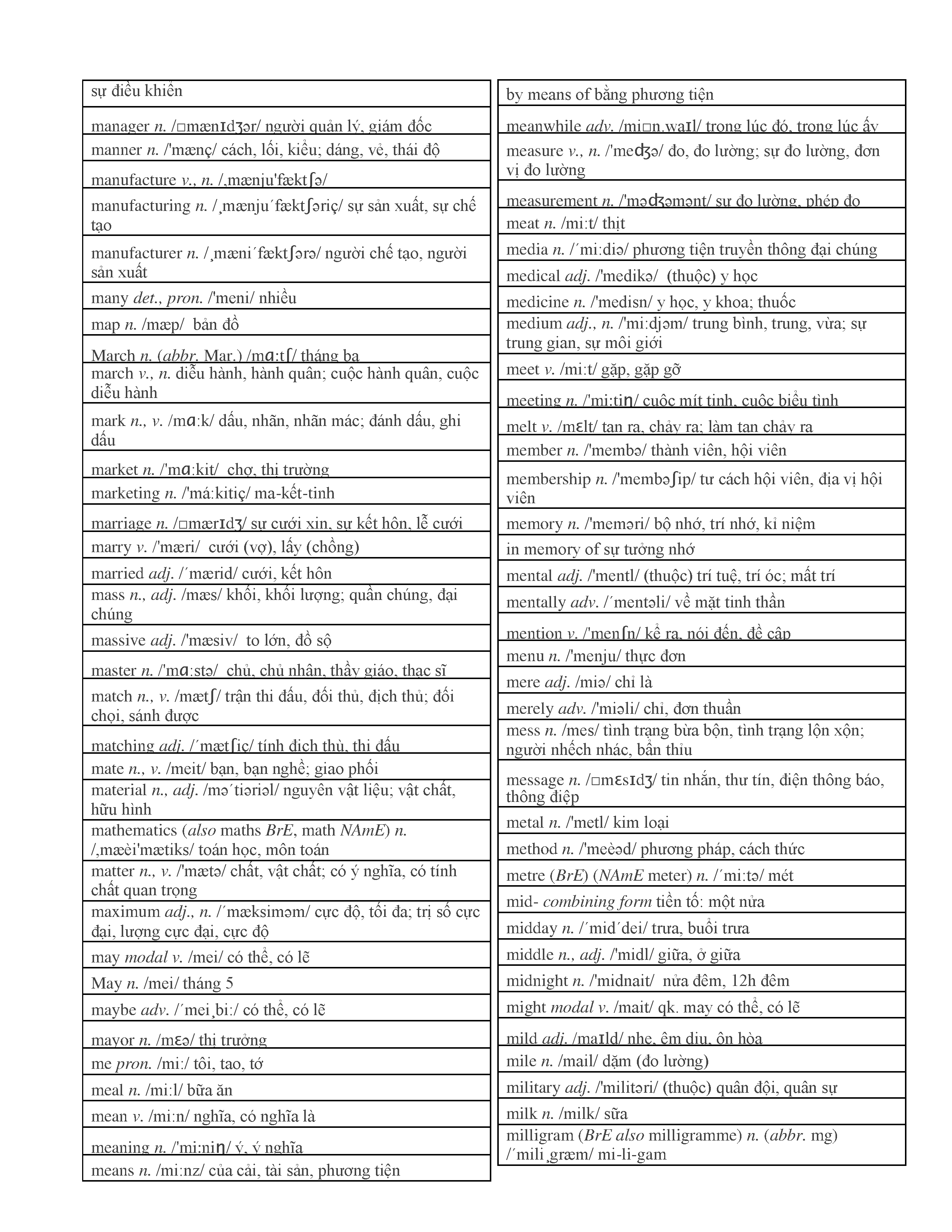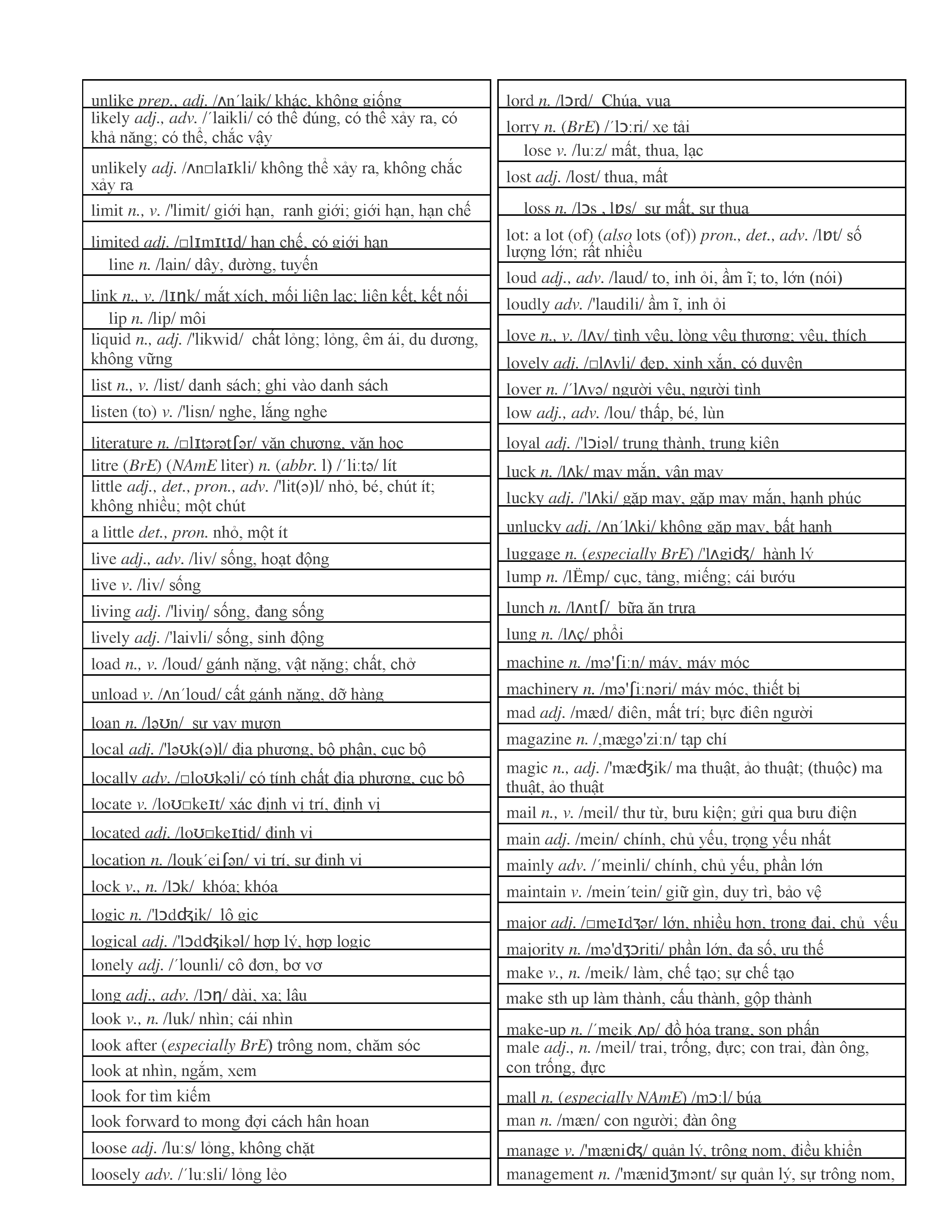 3000 từ vựng Tiếng Anh thông dụng