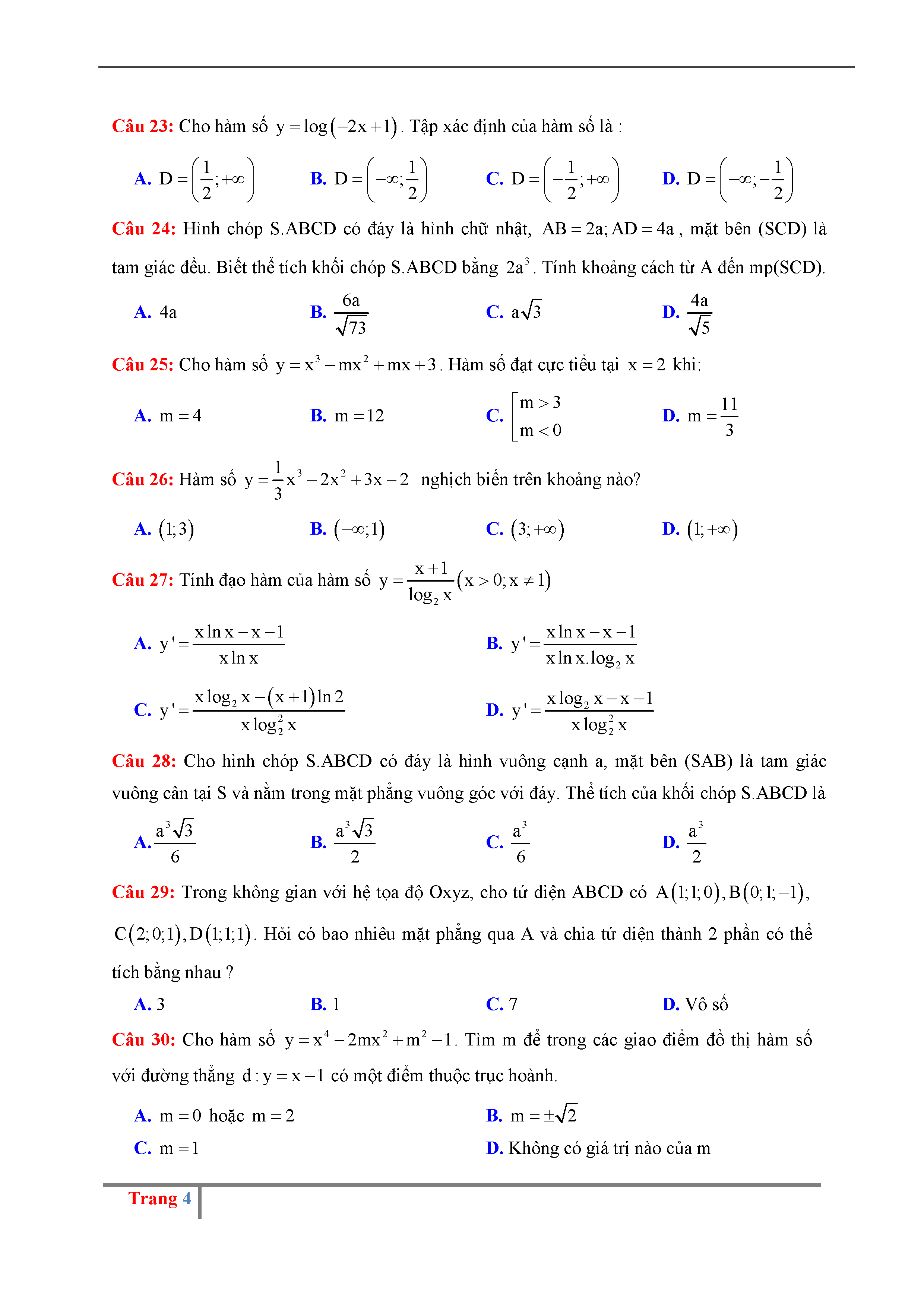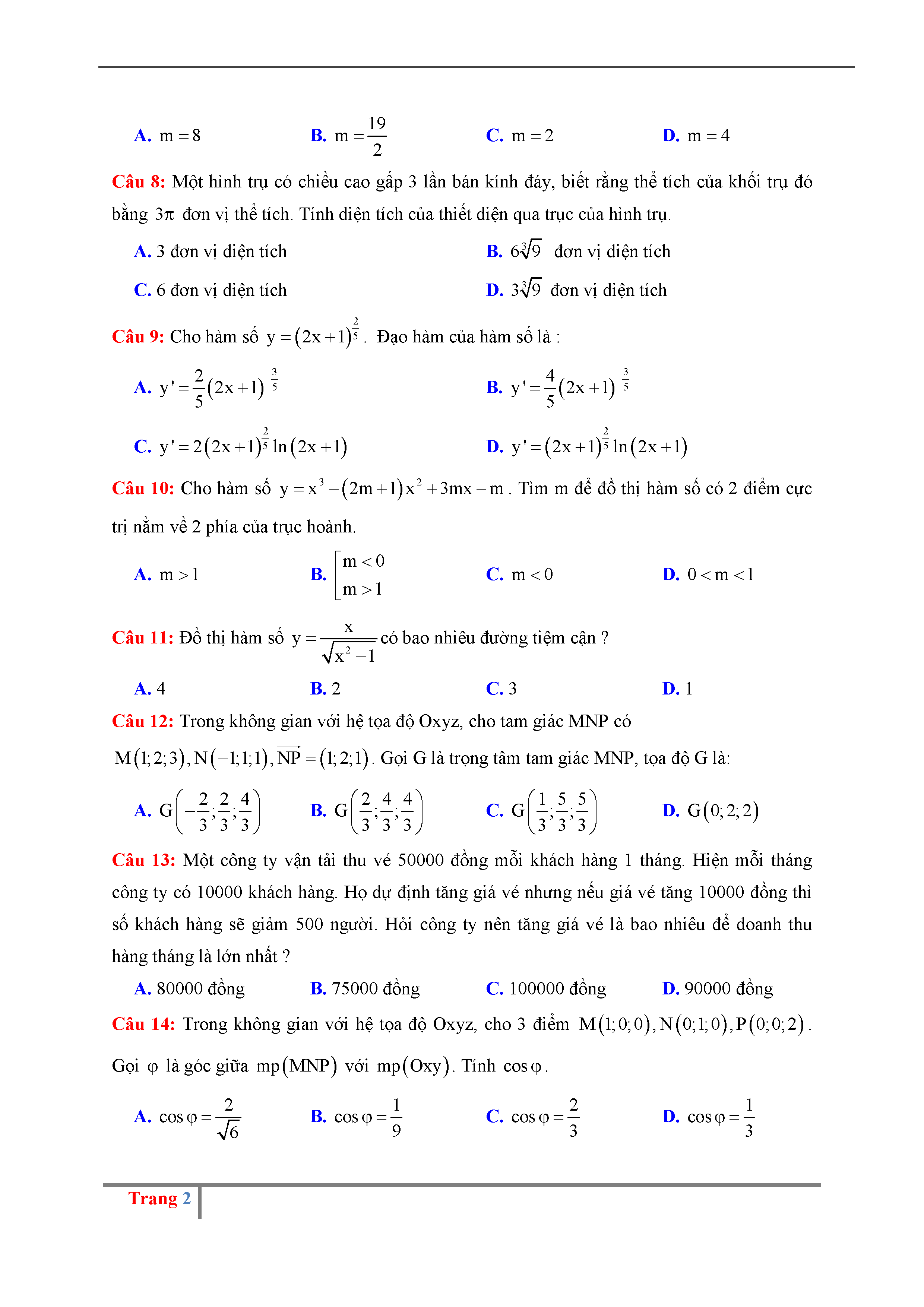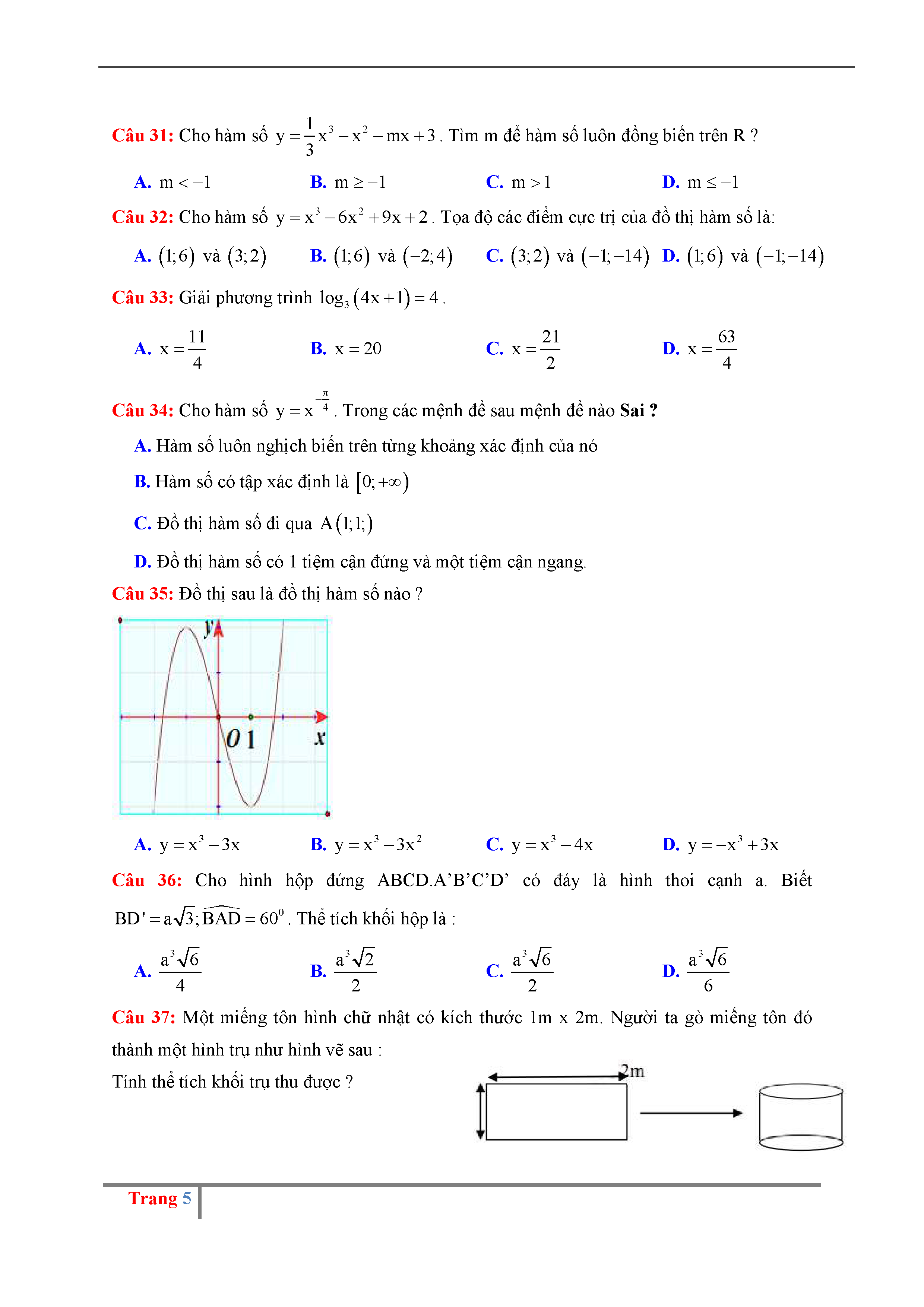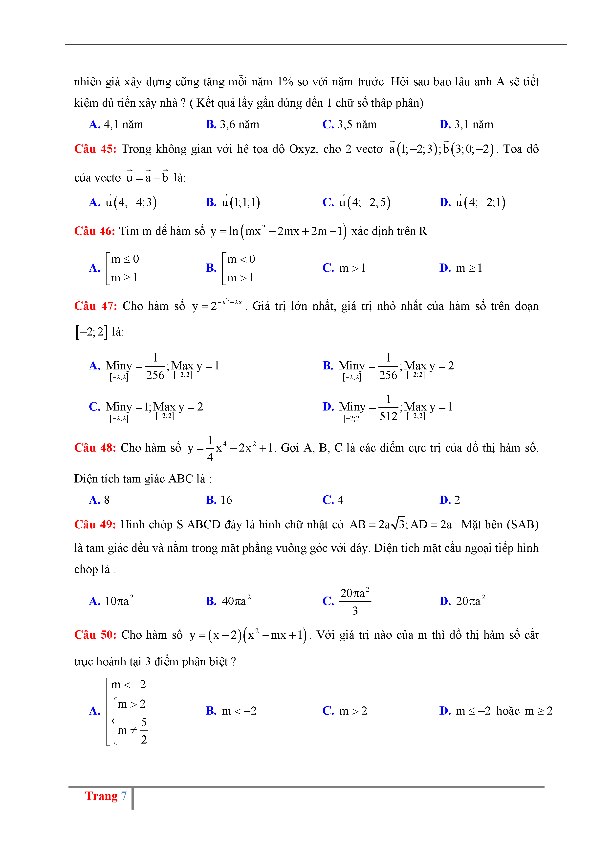 Đề thi thử THPTQG môn Toán năm 2017 trường Nguyễn Đăng Đạo