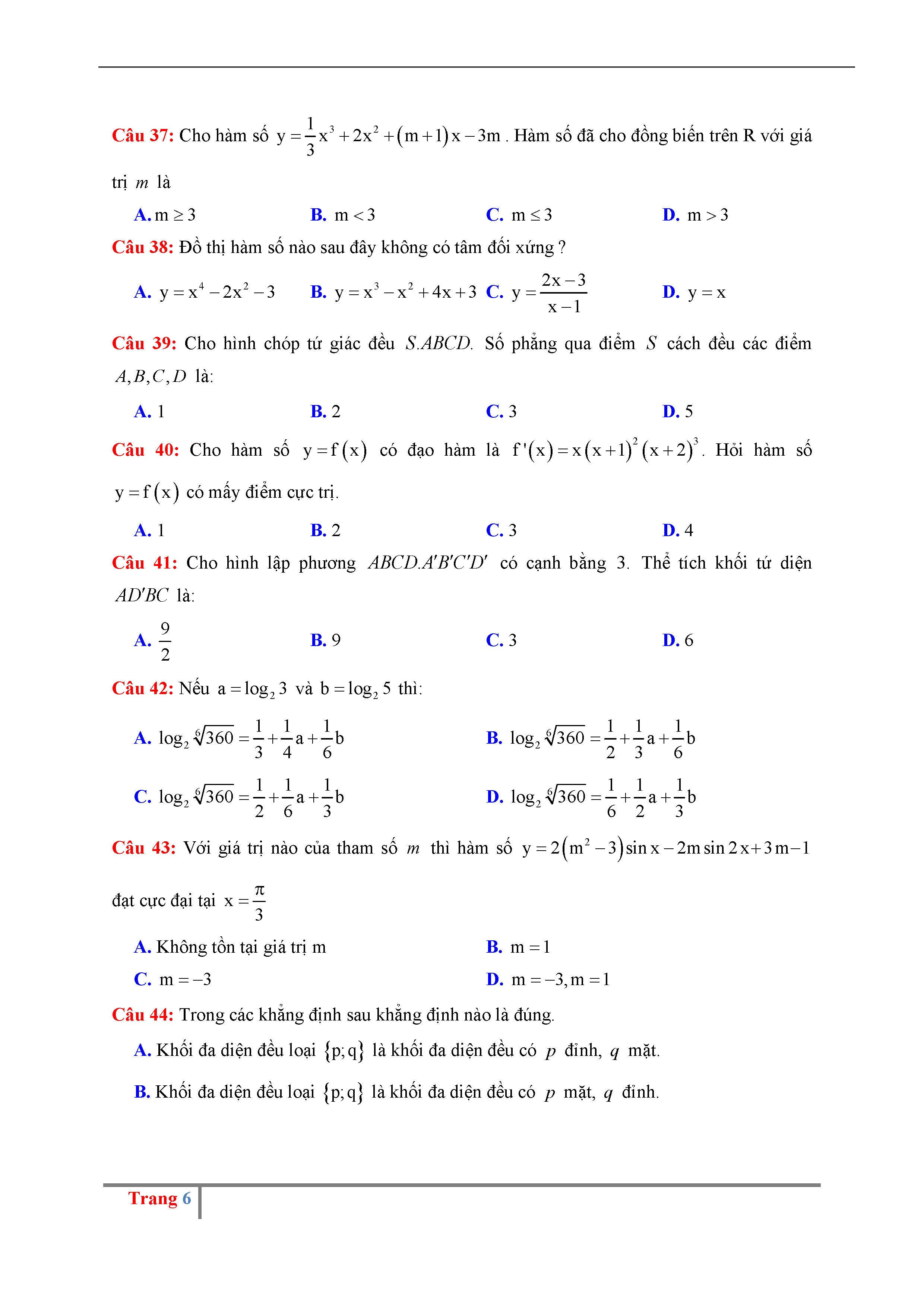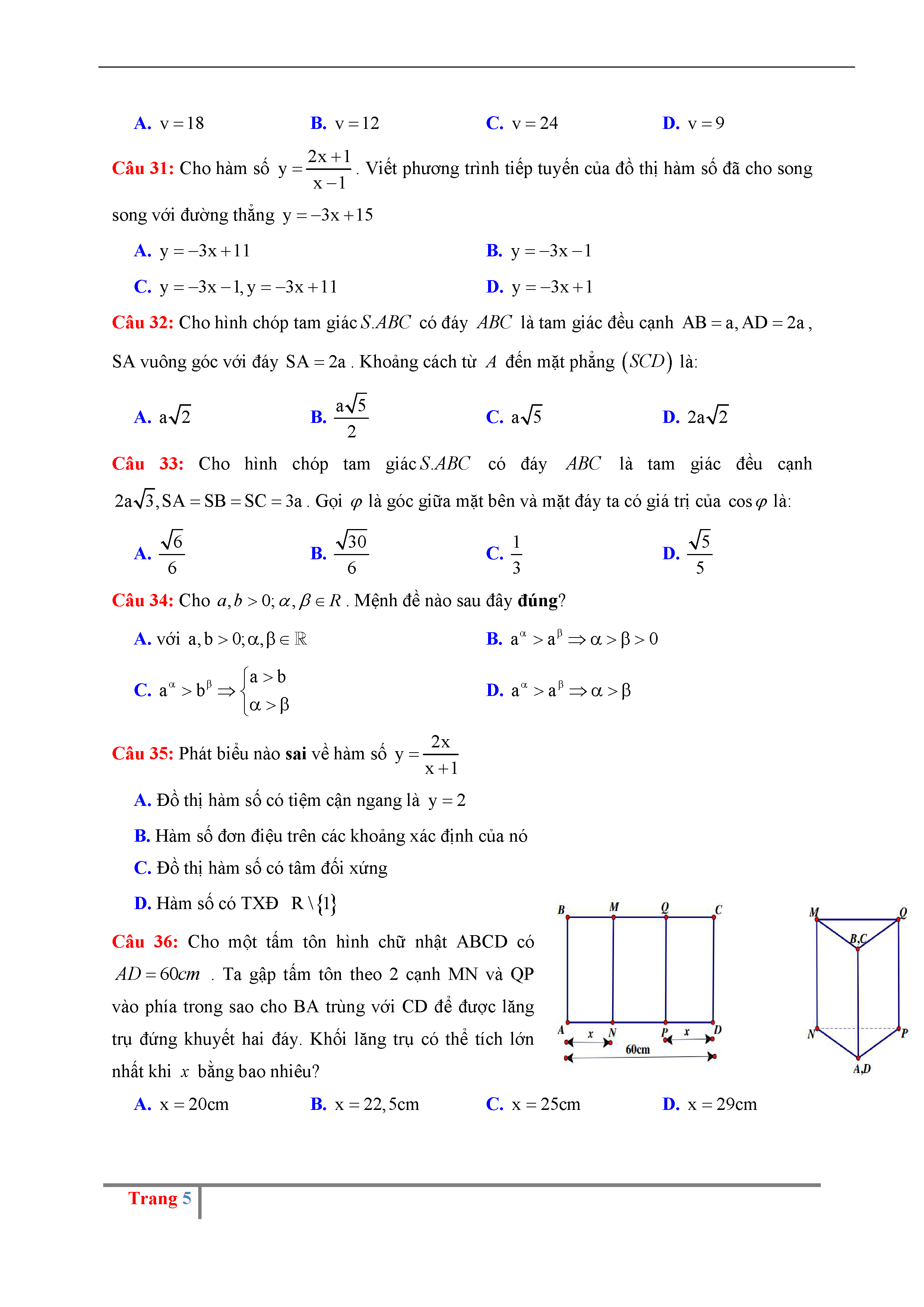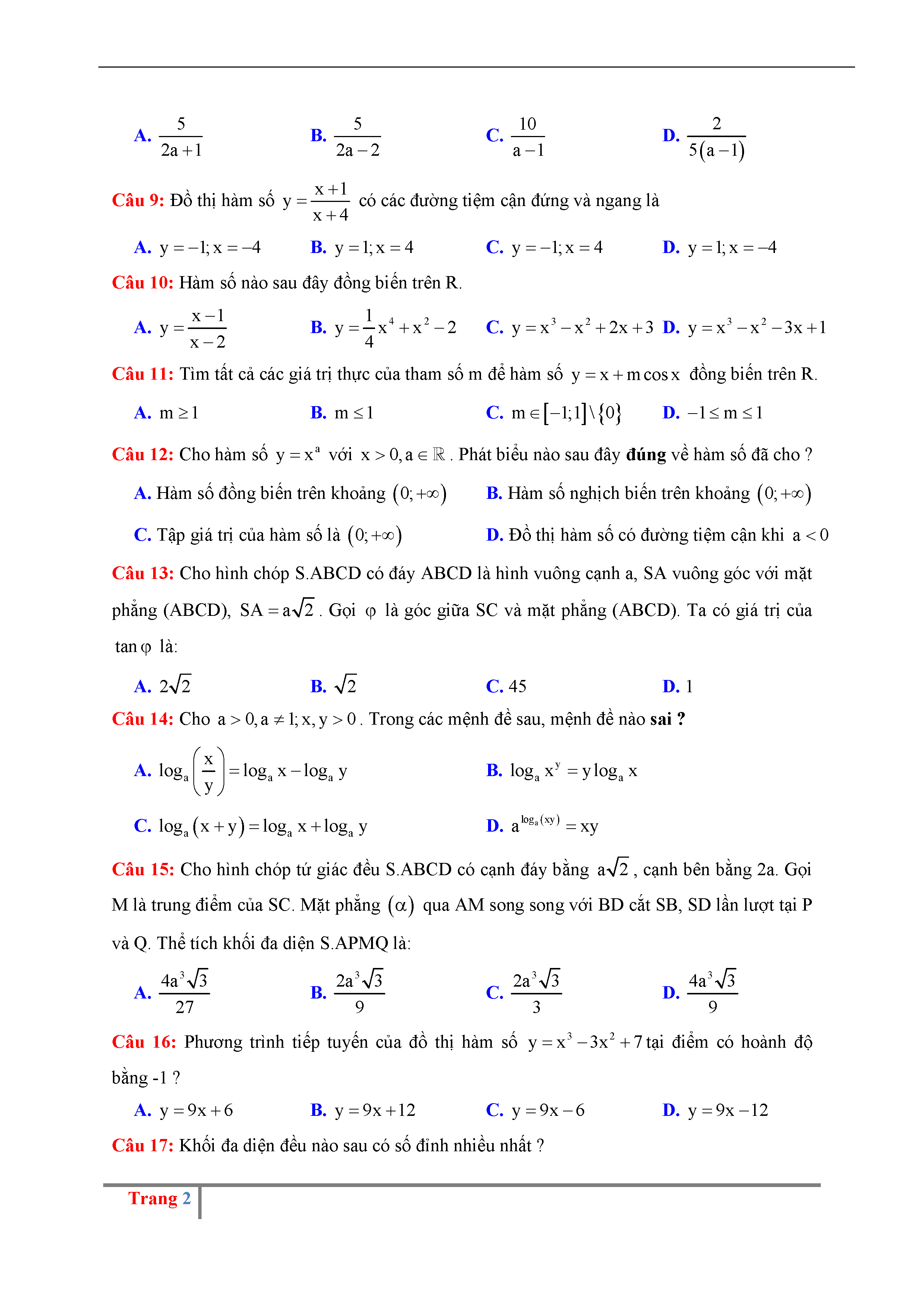 Đề thi thử THPTQG môn Toán năm 2017 trường Ngô Gia Tự