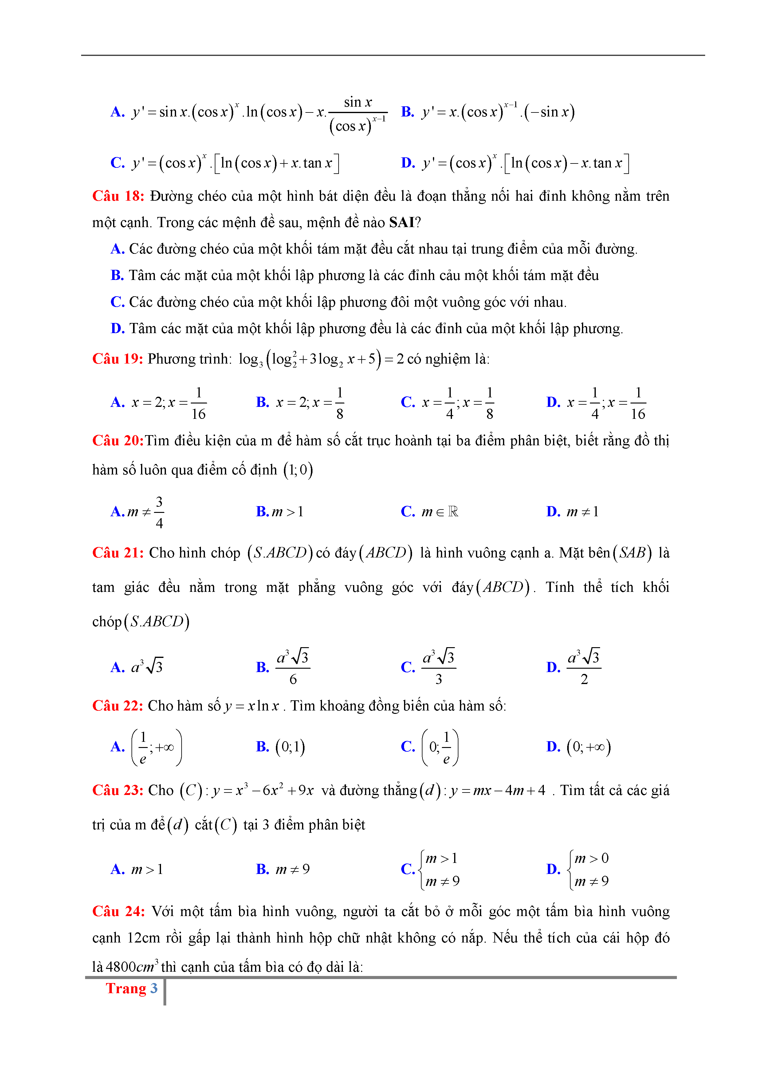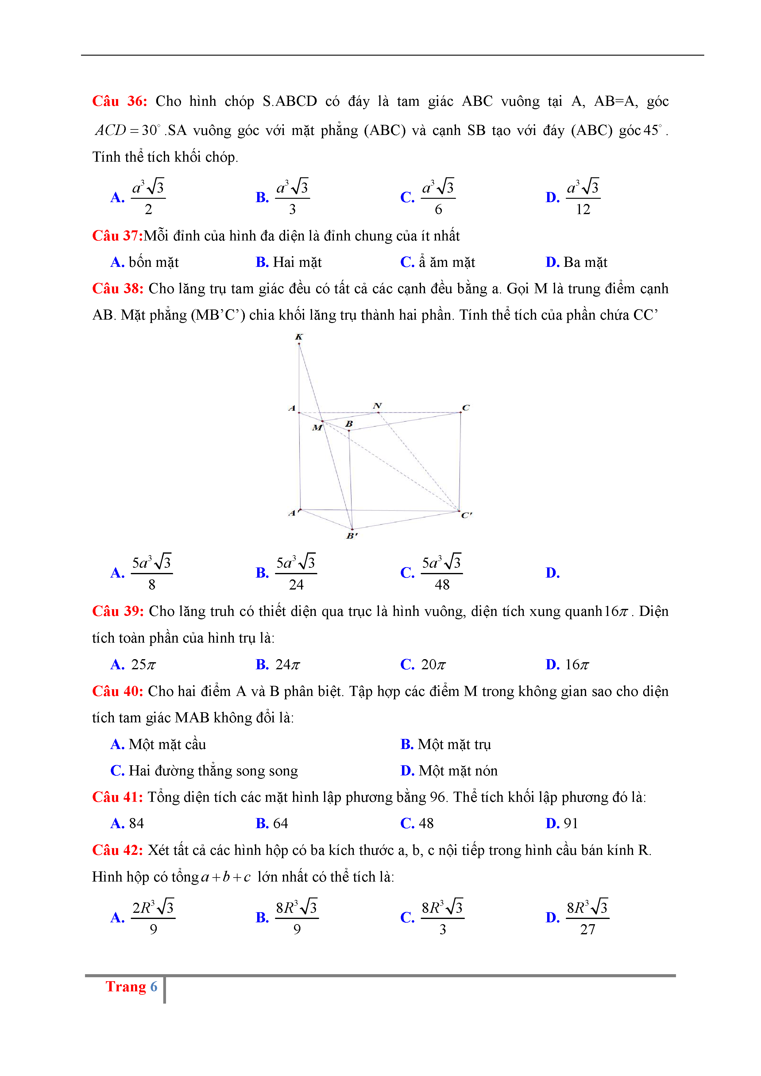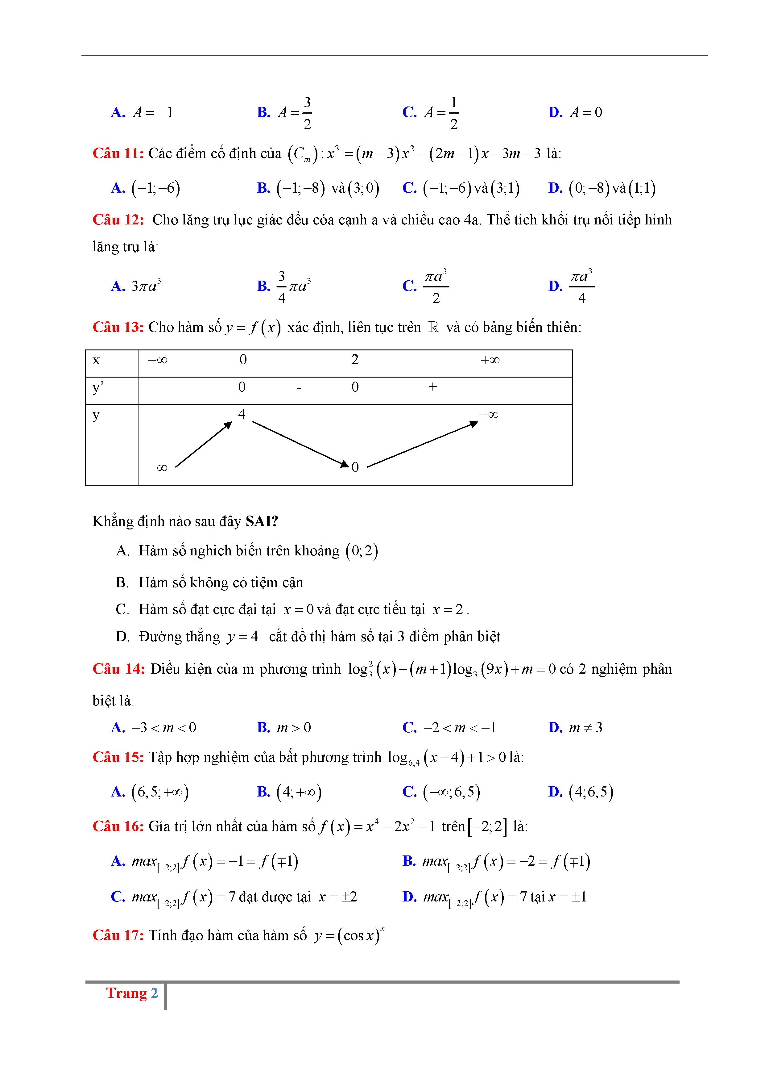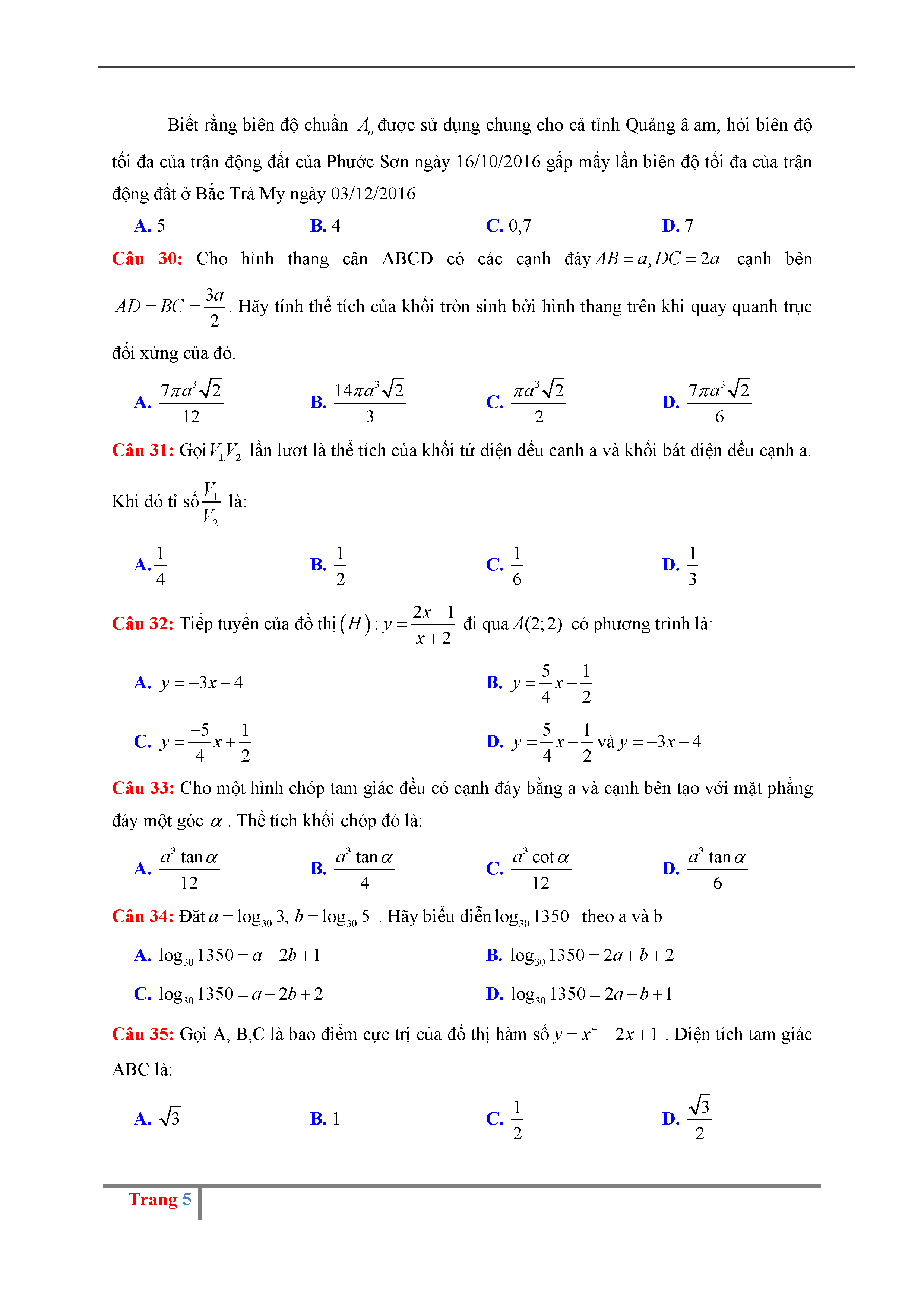 Đề thi thử THPTQG môn Toán năm 2017 trường Năng khiếu HCM