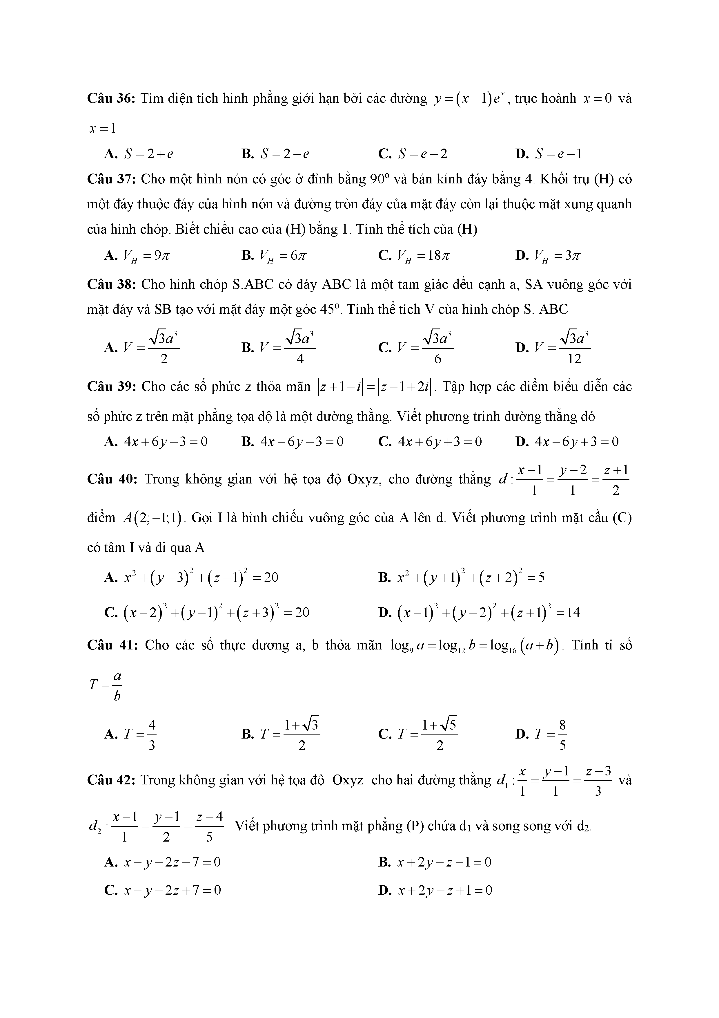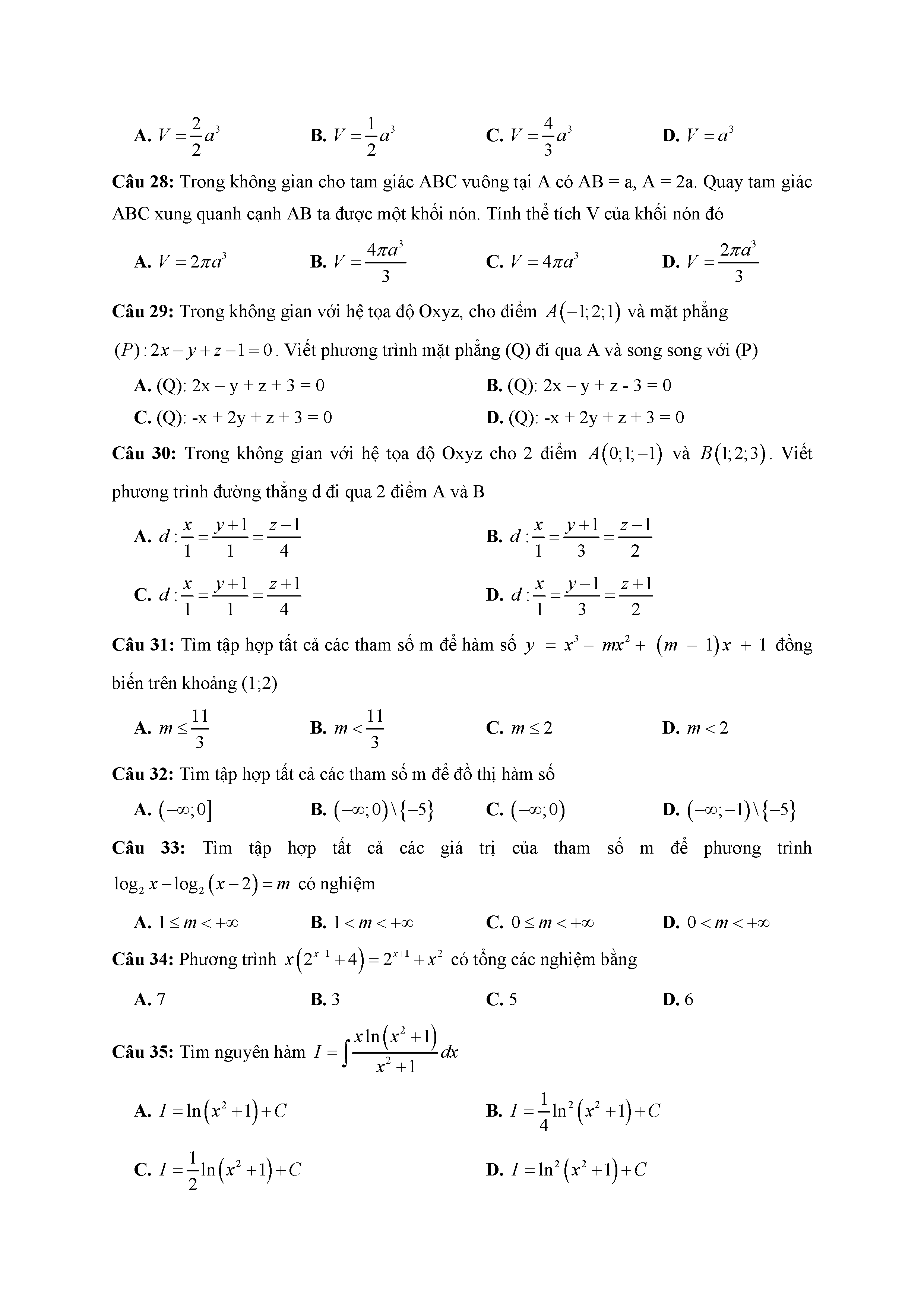 Đề thi thử THPTQG môn Toán năm 2017 trường Khoa học tự nhiên
