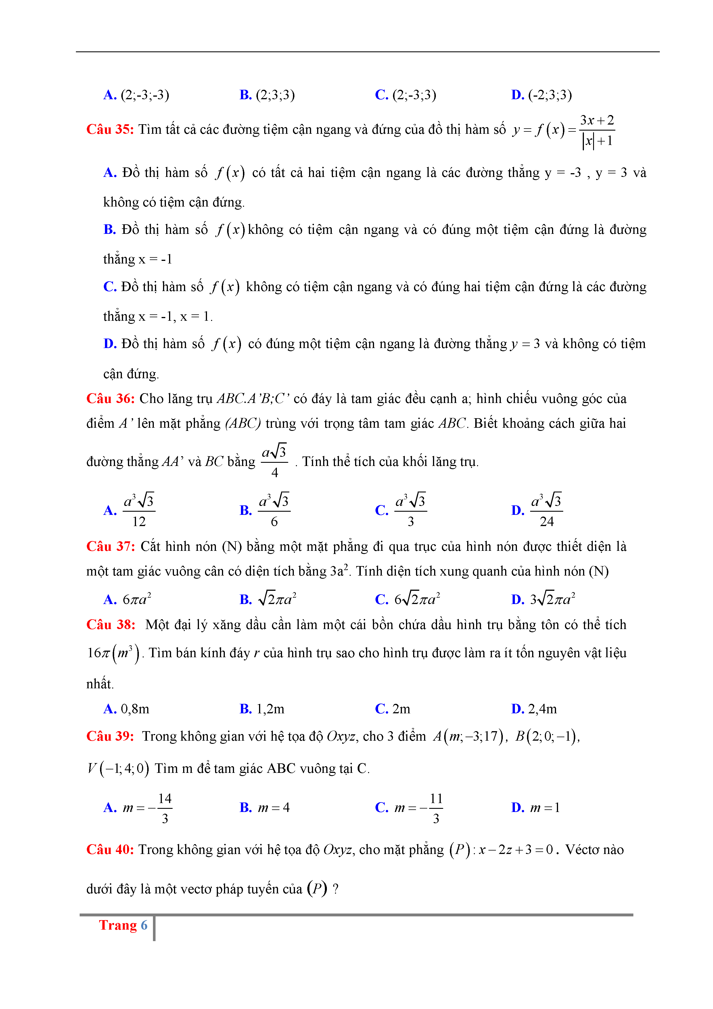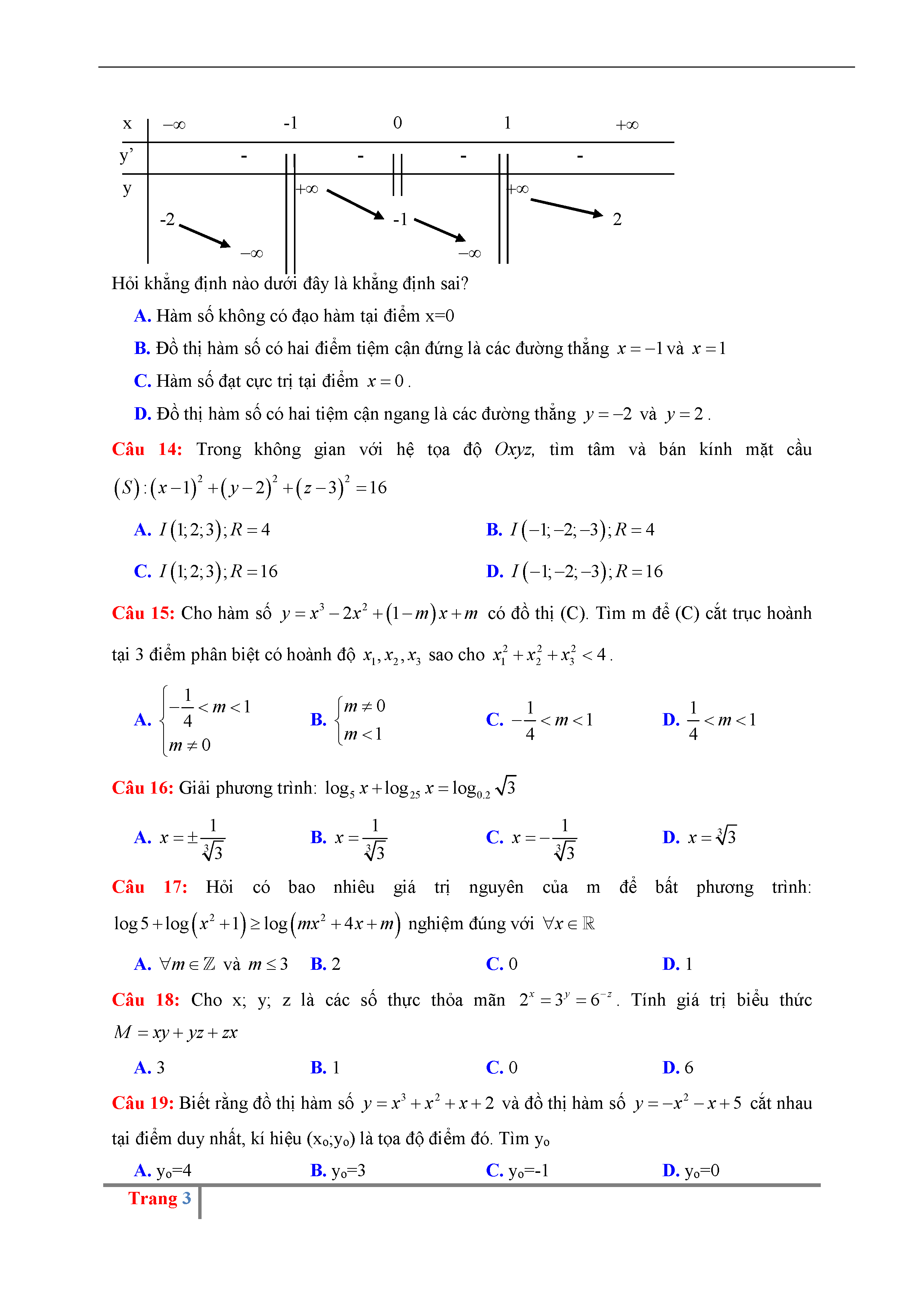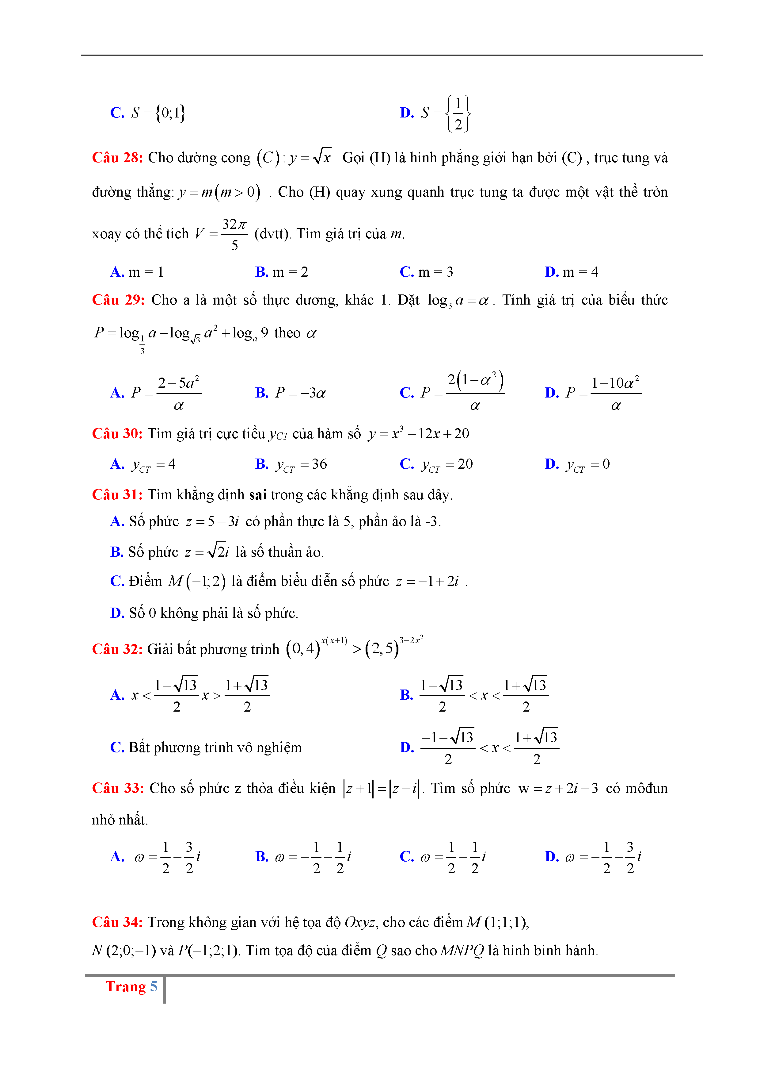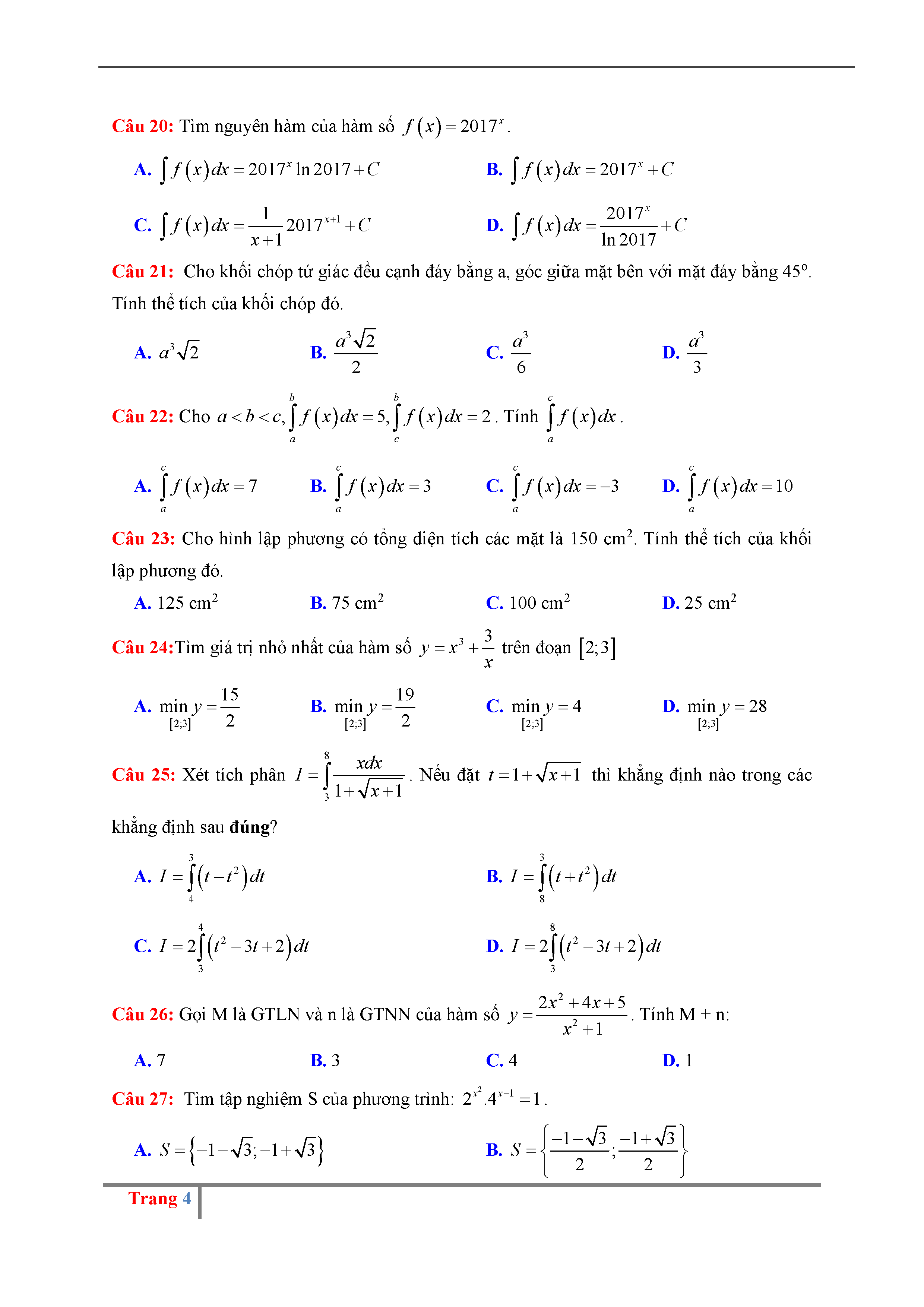 Đề thi thử THPTQG môn Toán năm 2017 trường Hoàng Hóa