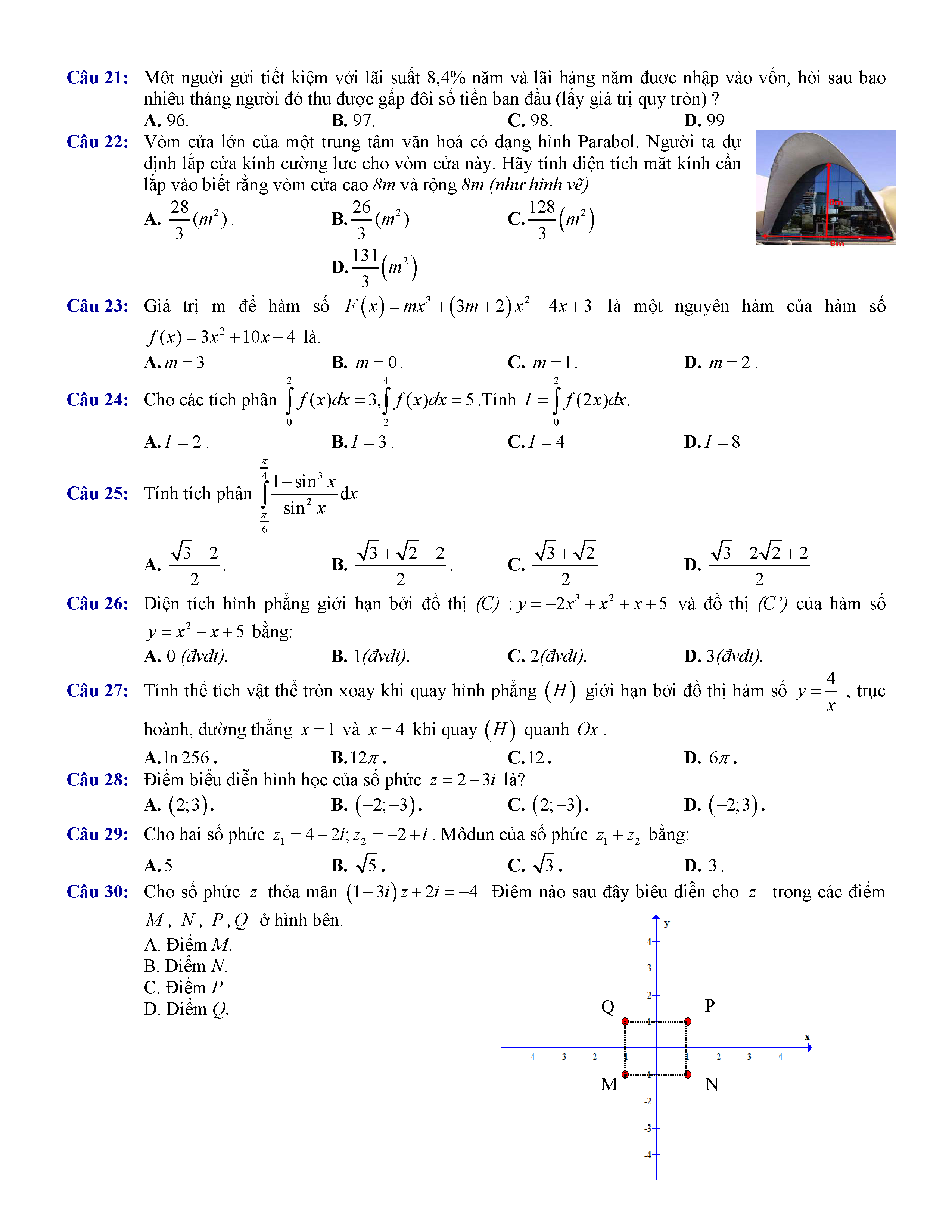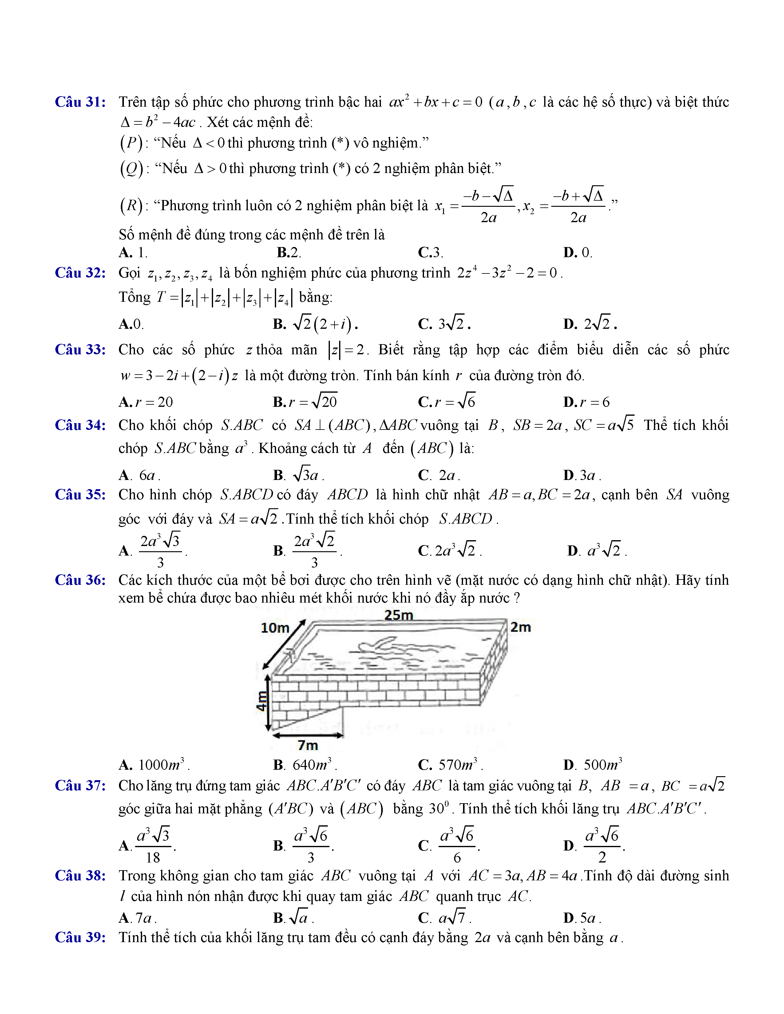 Đề thi thử THPTQG môn Toán năm 2017 trường GDTX Vạn Ninh