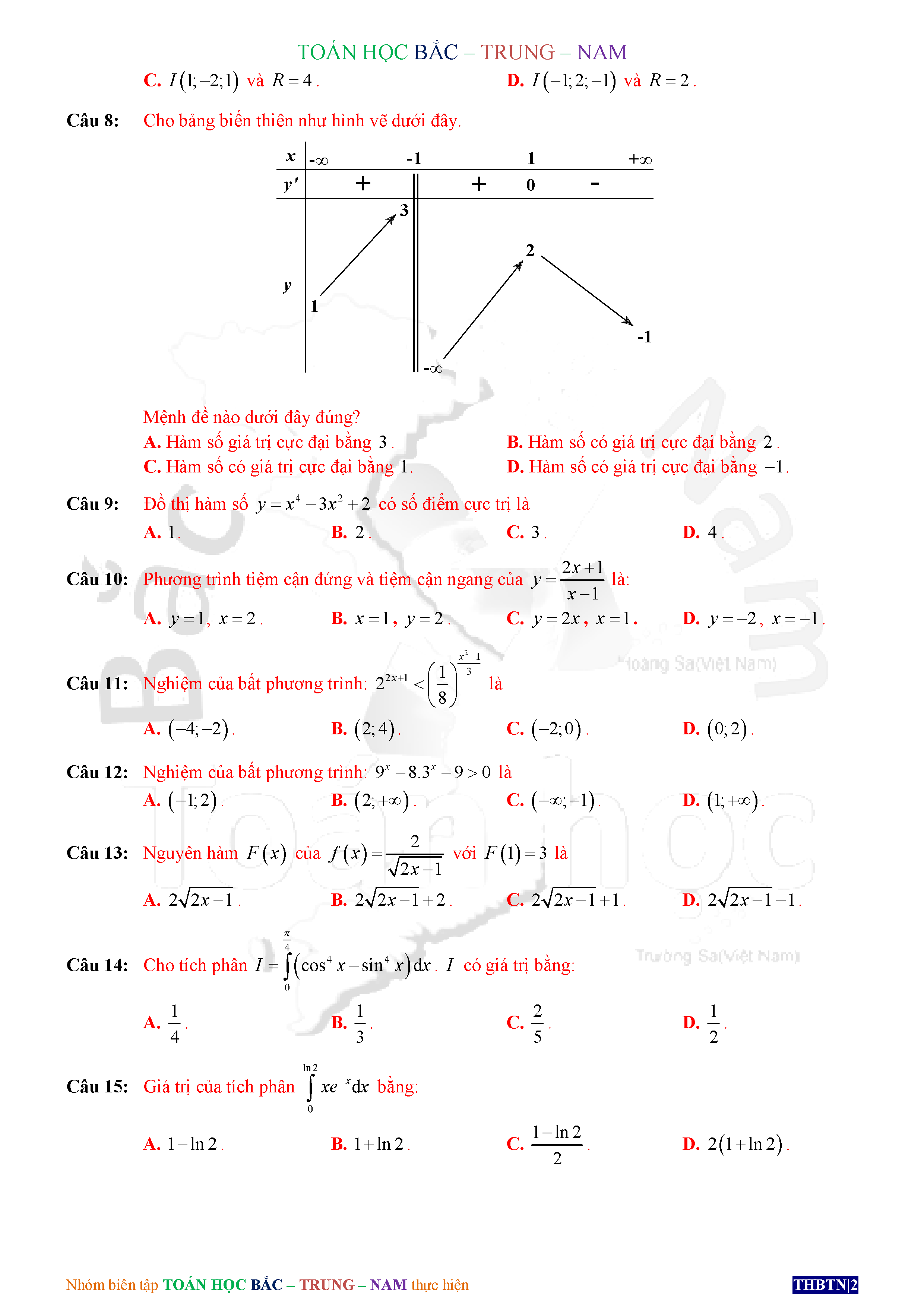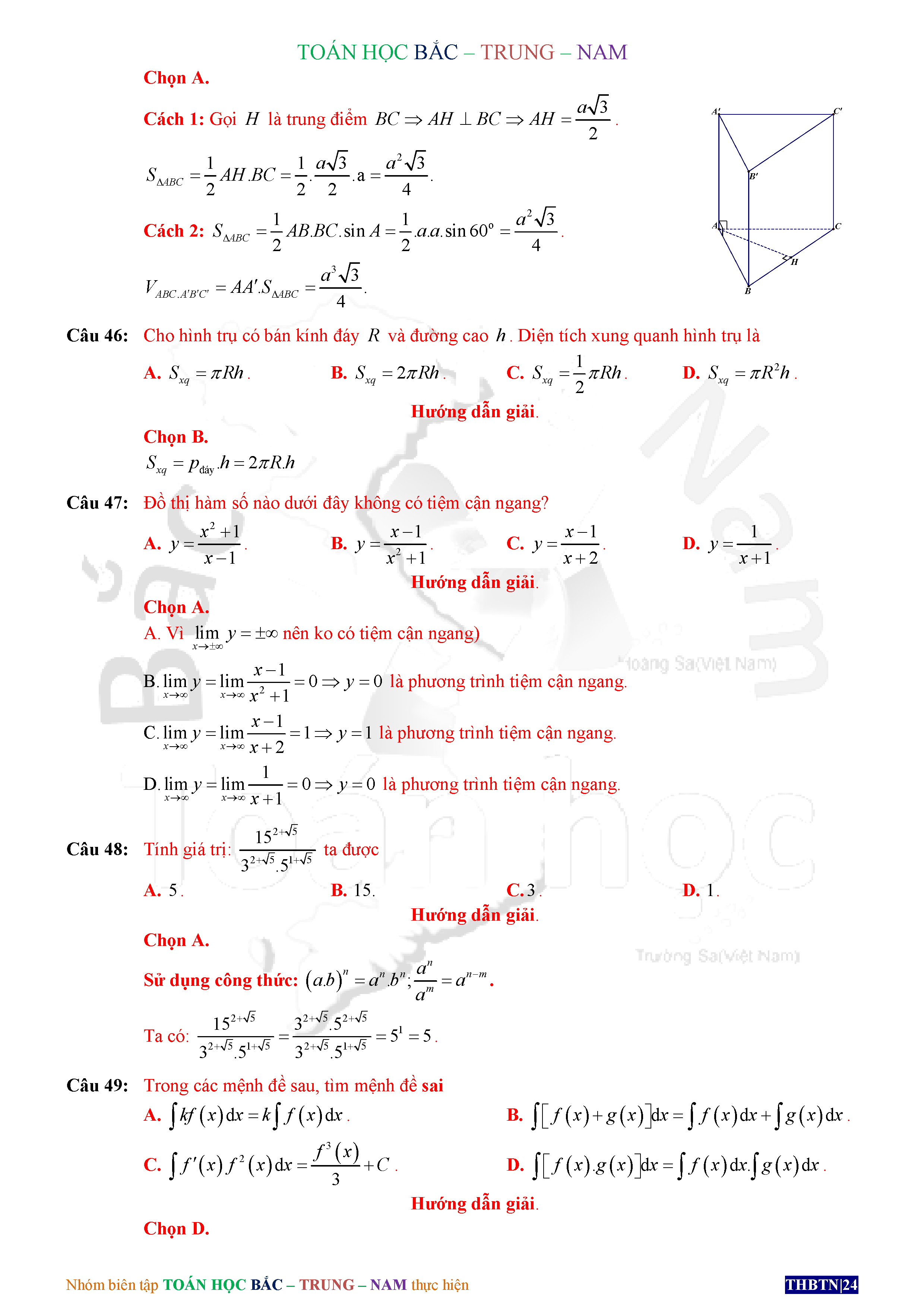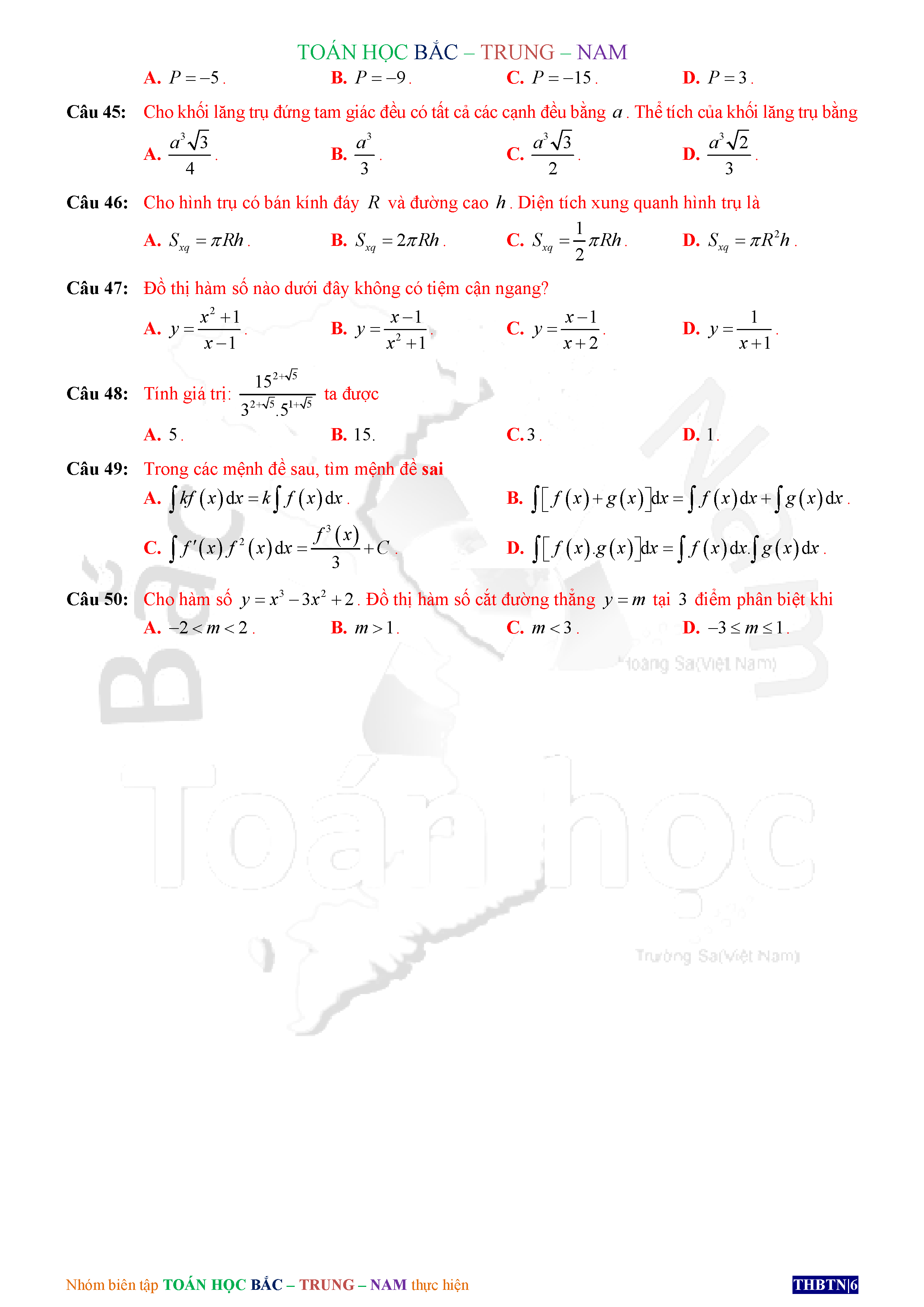 Đề thi thử THPTQG môn Toán năm 2017 trường GDTX Ninh Hoa