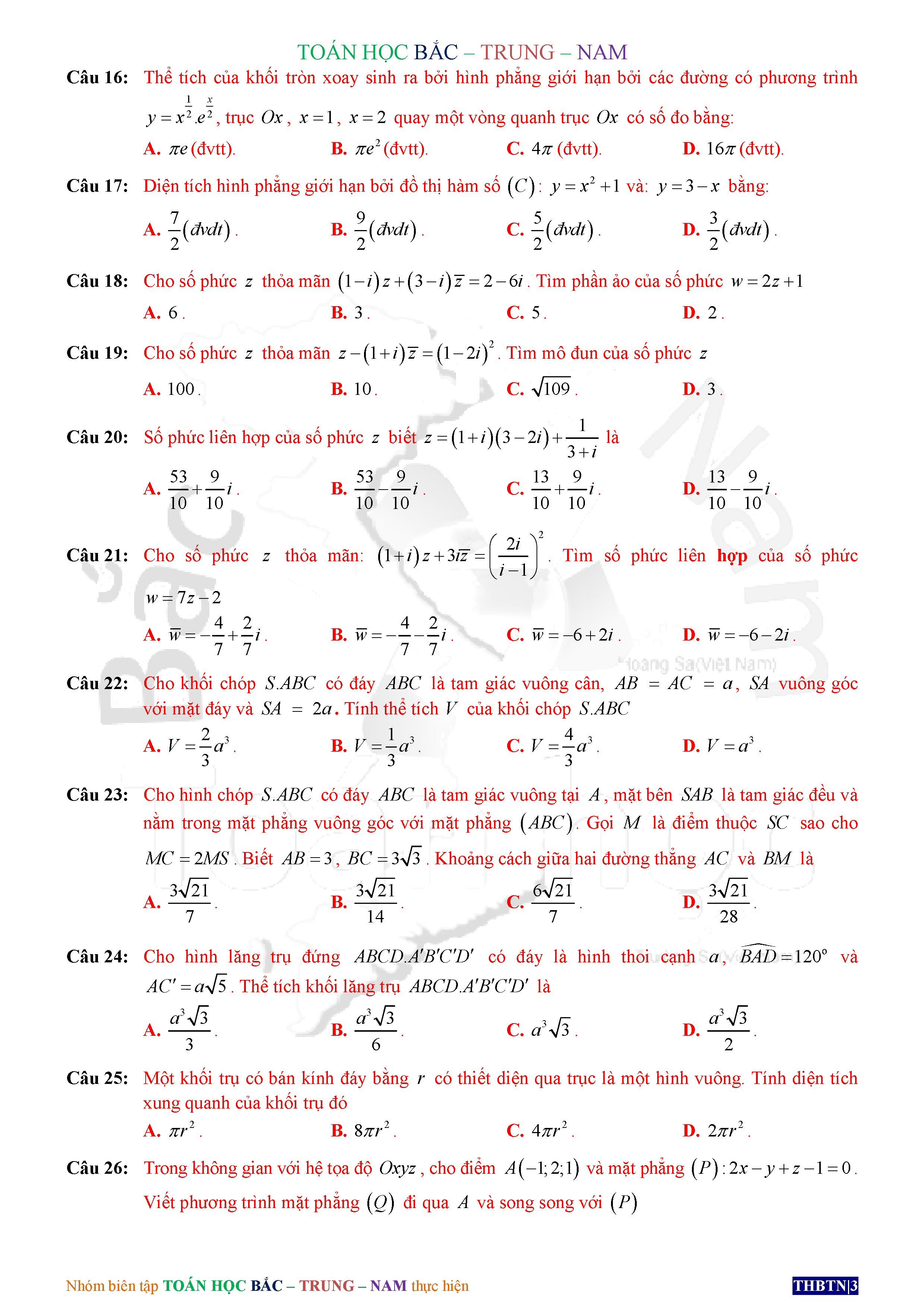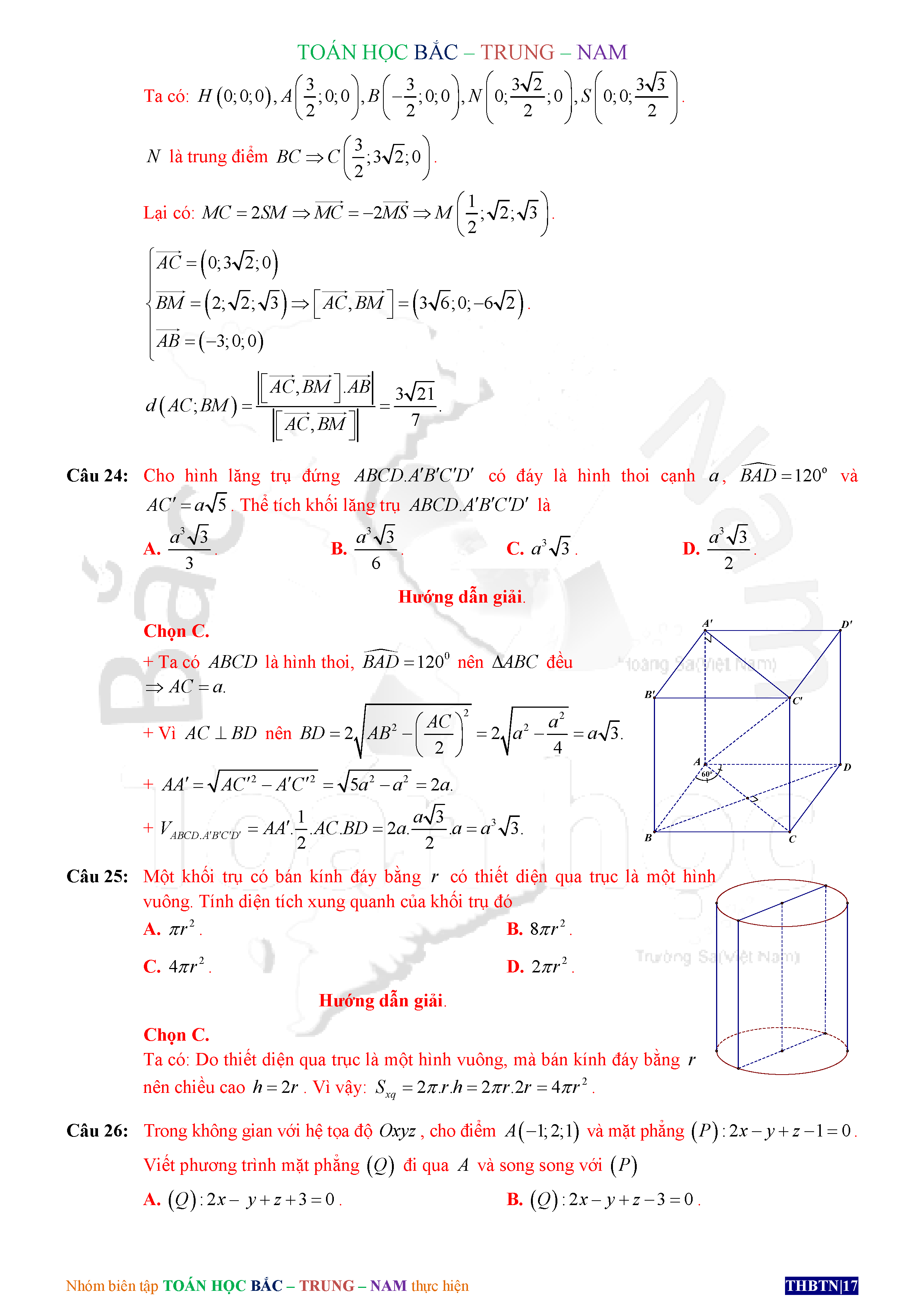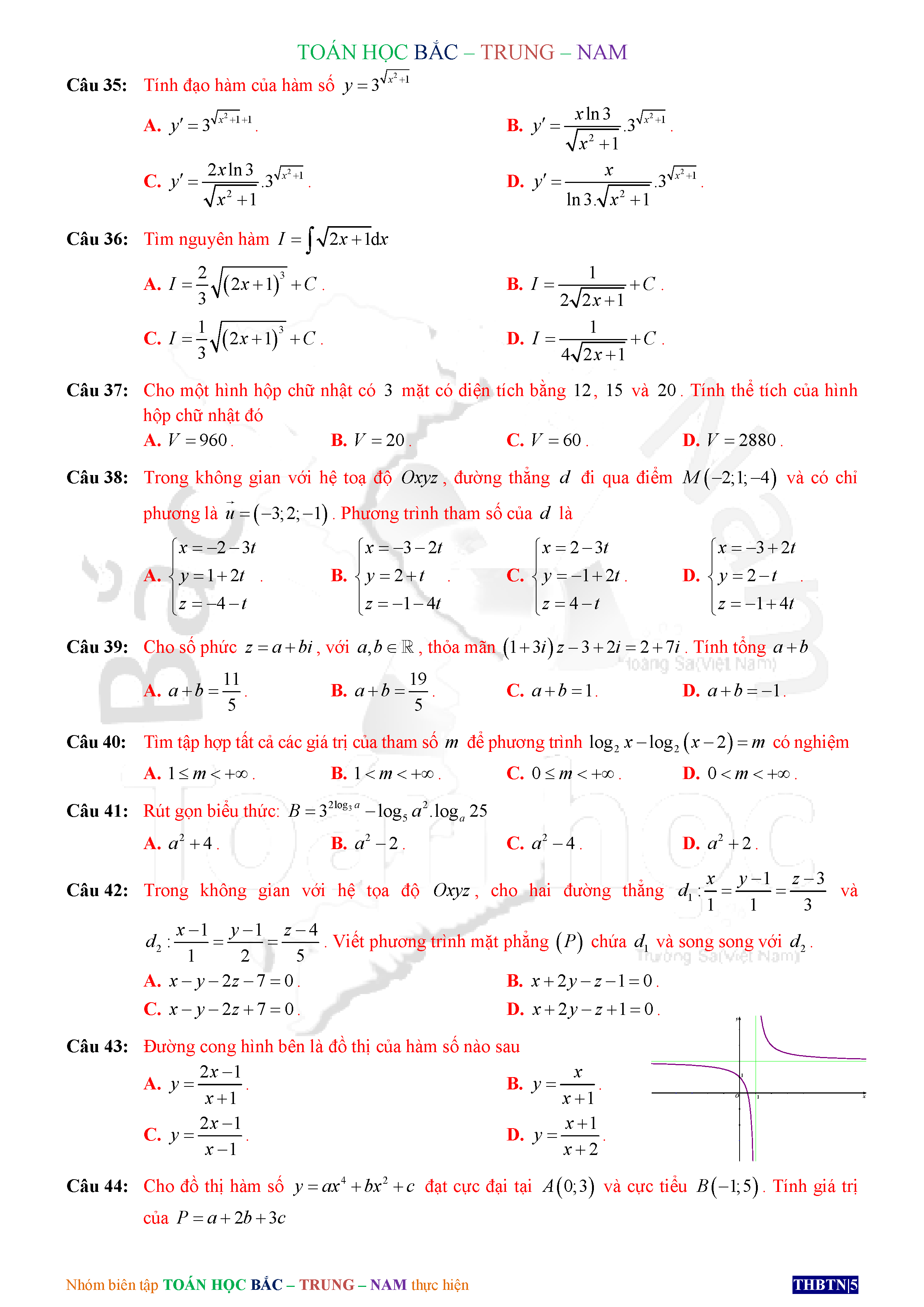 Đề thi thử THPTQG môn Toán năm 2017 trường GDTX Ninh Hoa