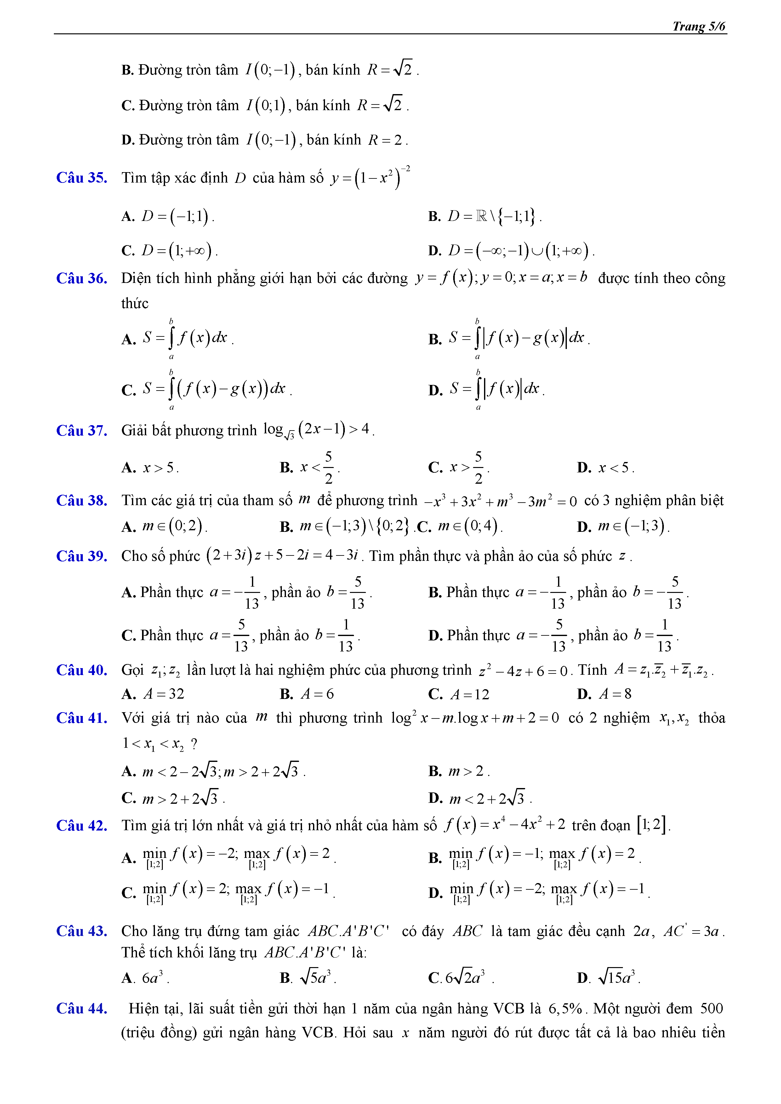 Đề thi thử THPTQG môn Toán năm 2017 trường GD nghề Nha Trang