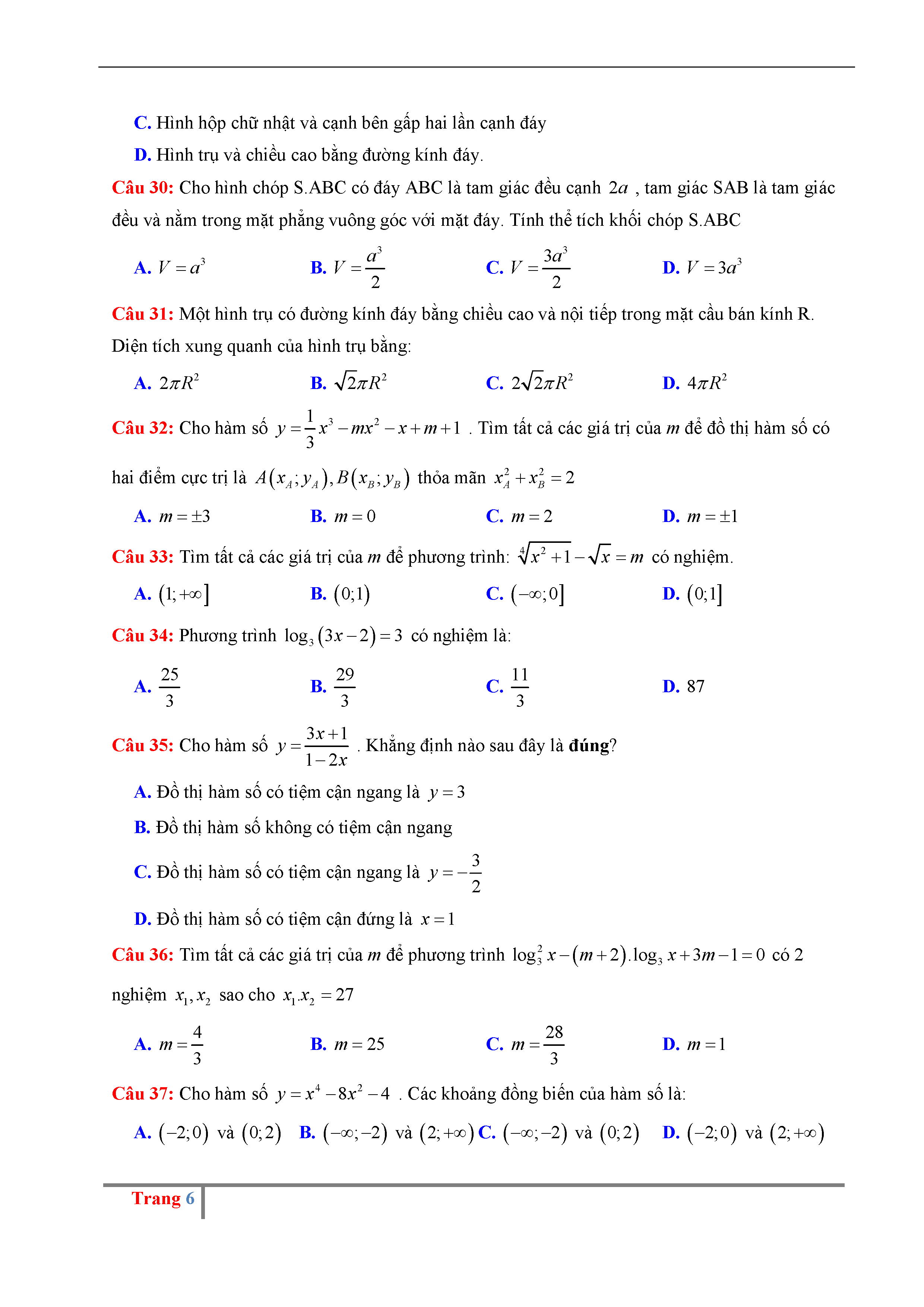 Đề thi thử THPTQG môn Toán năm 2017 trường chuyên Trần Phú