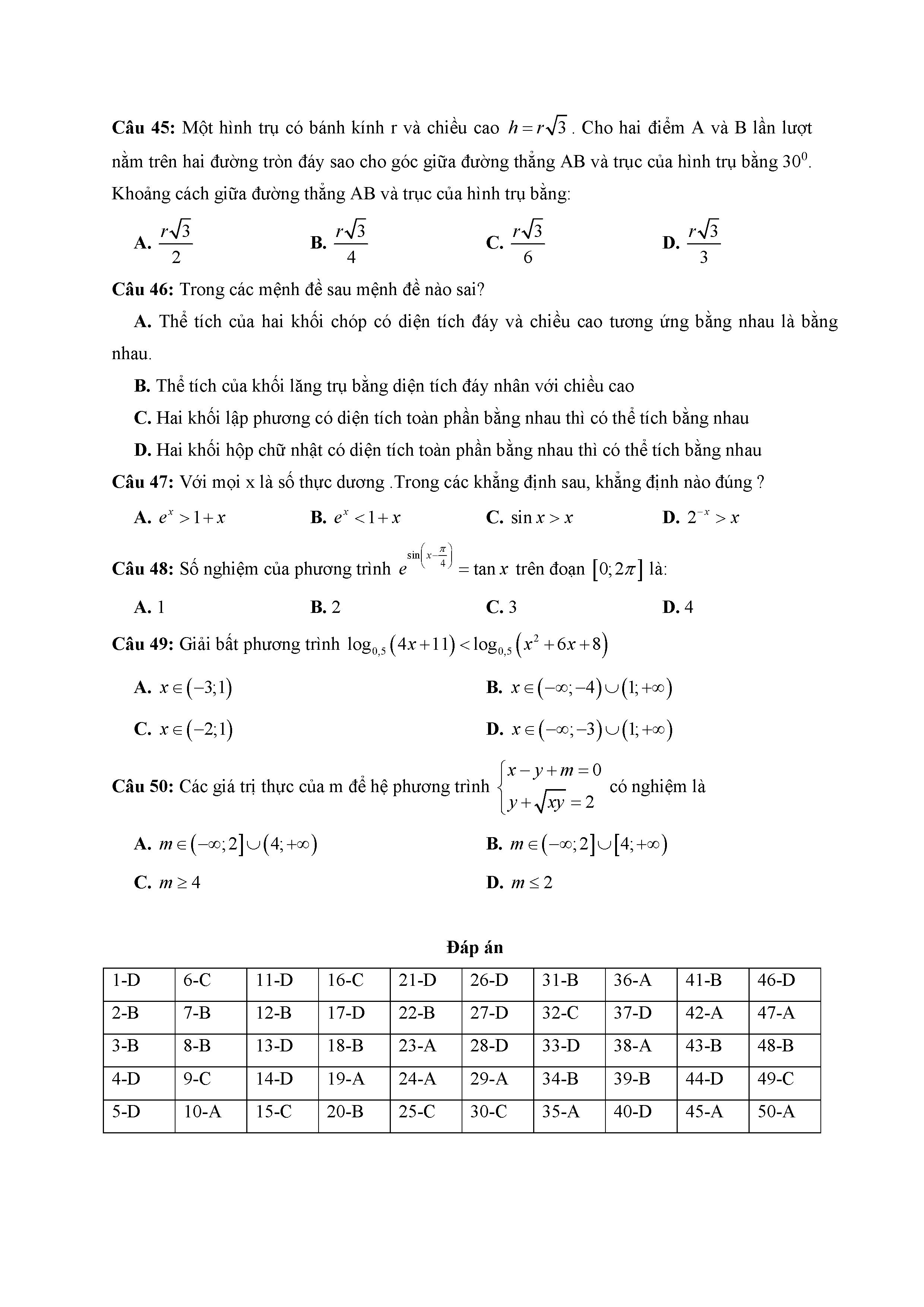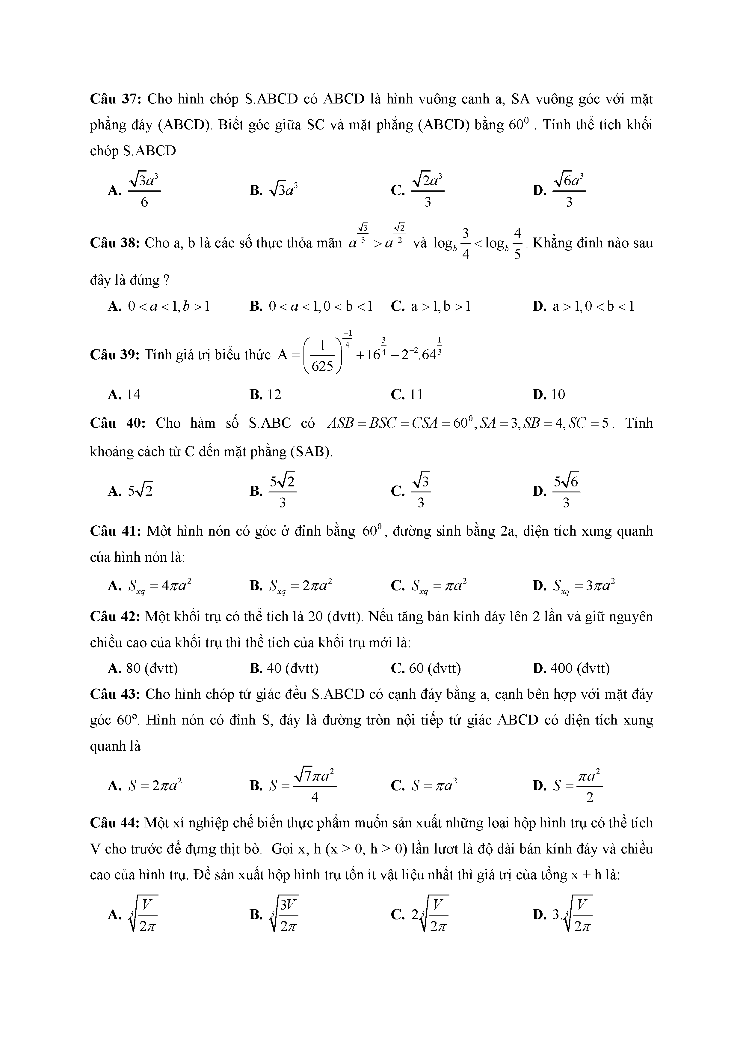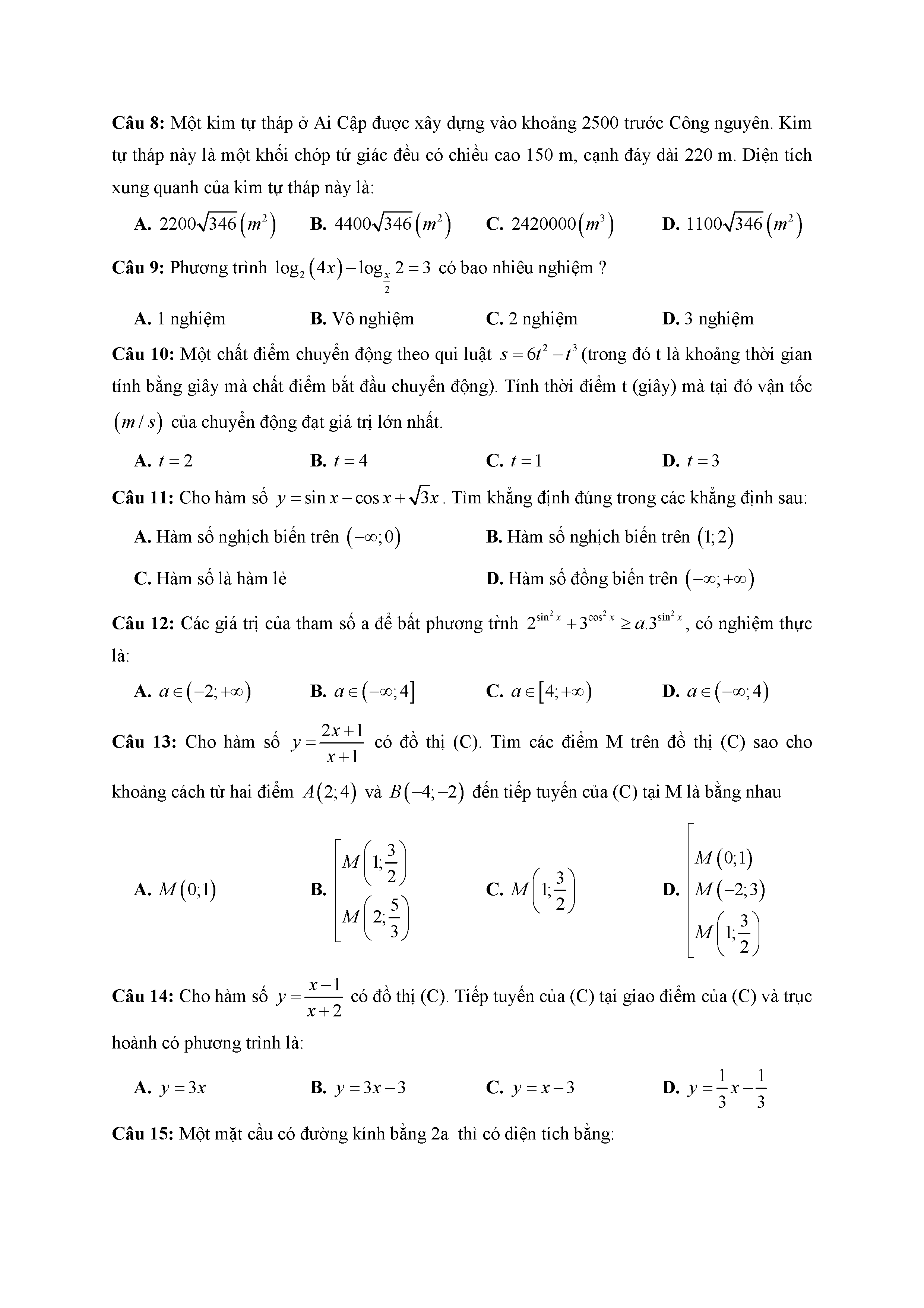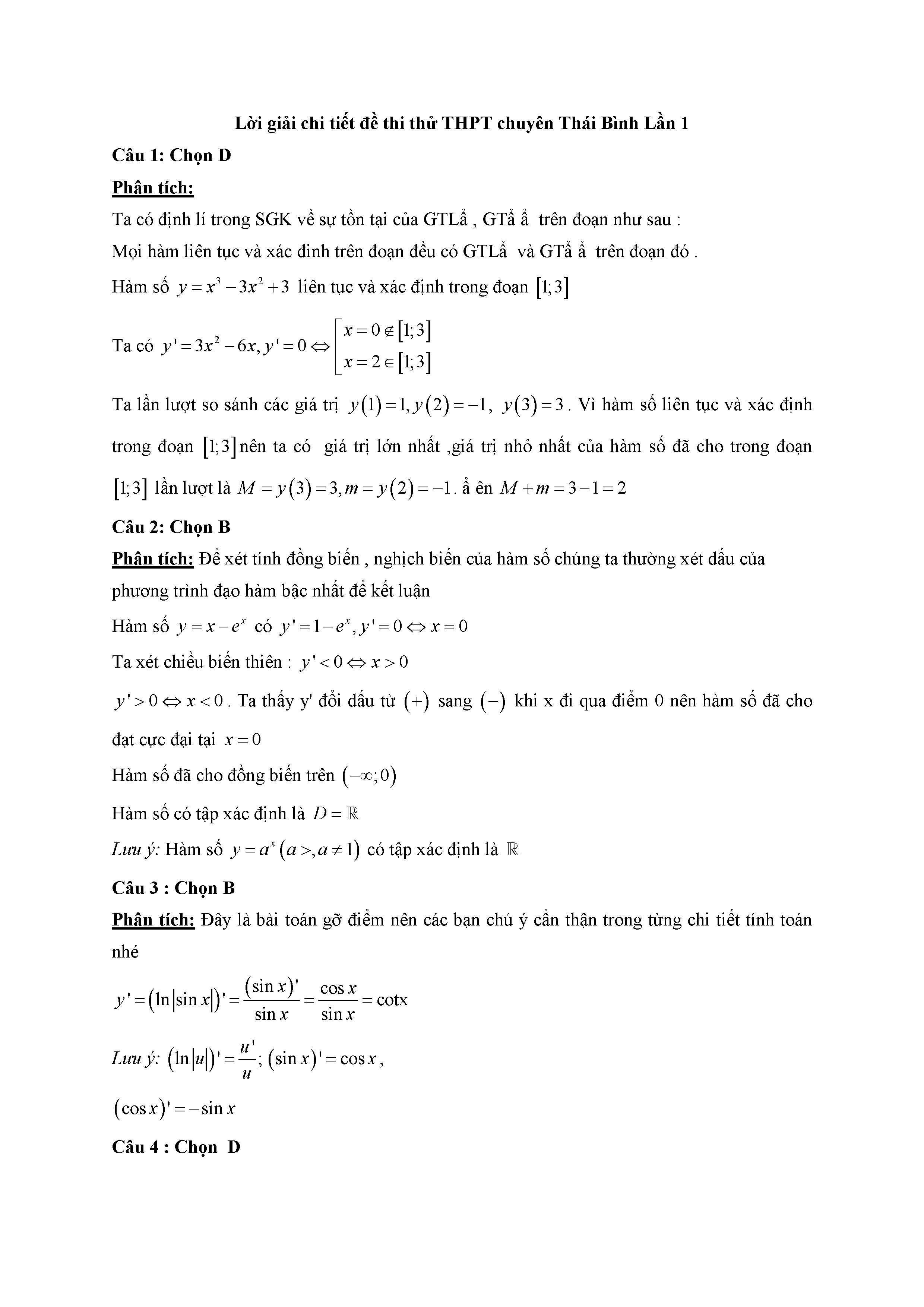 Đề thi thử THPTQG môn Toán năm 2017 trường chuyên Thái Bình