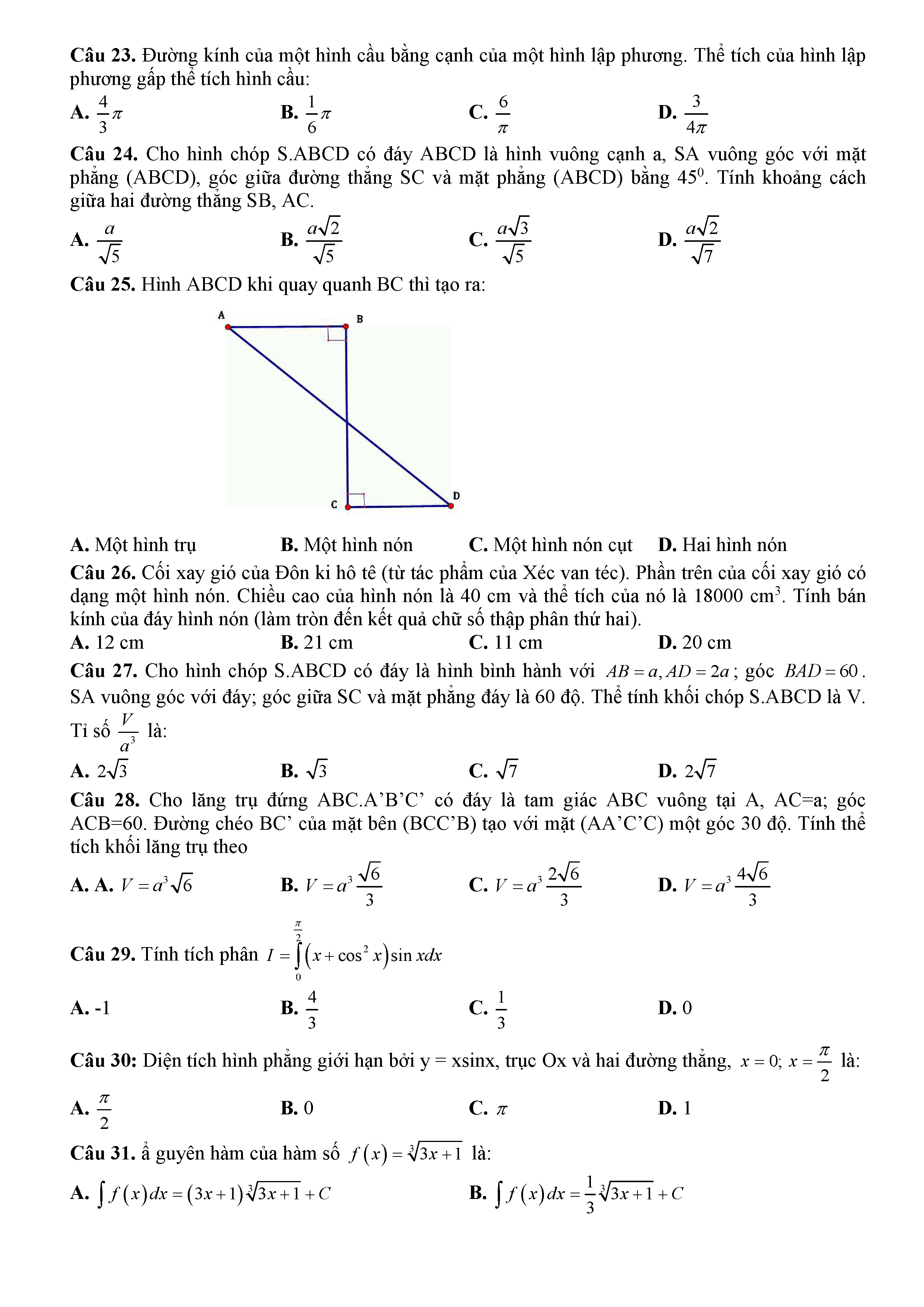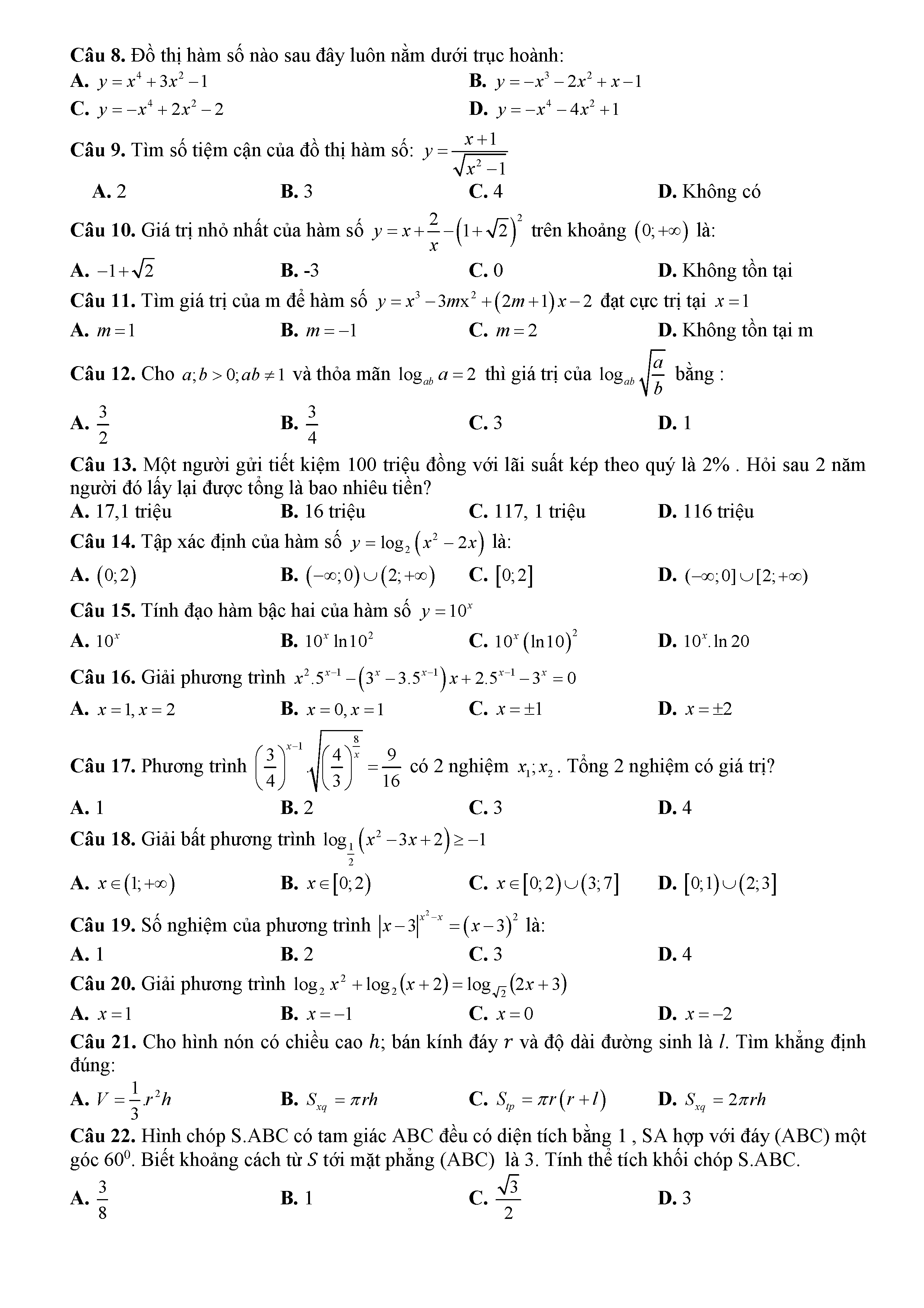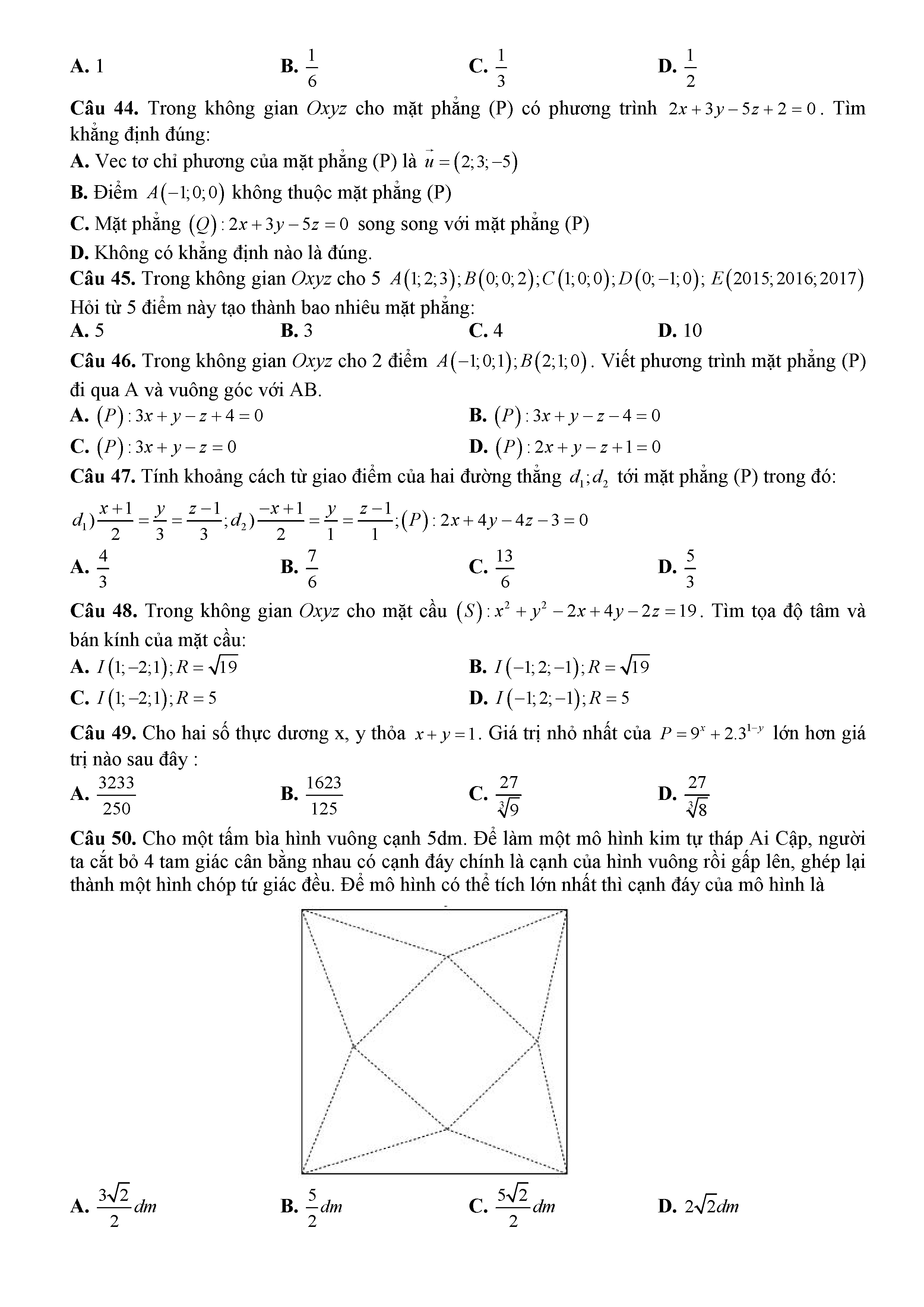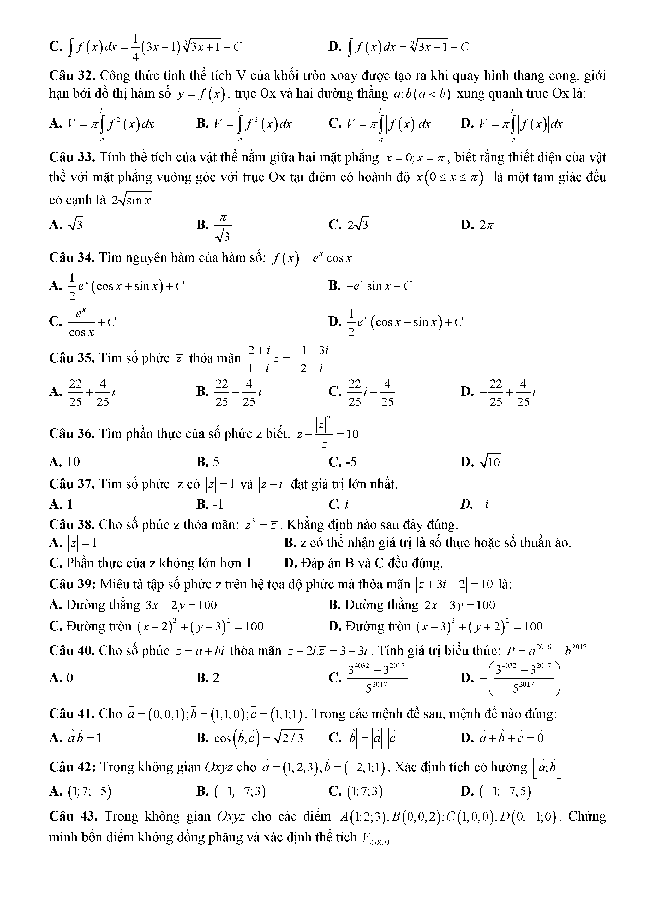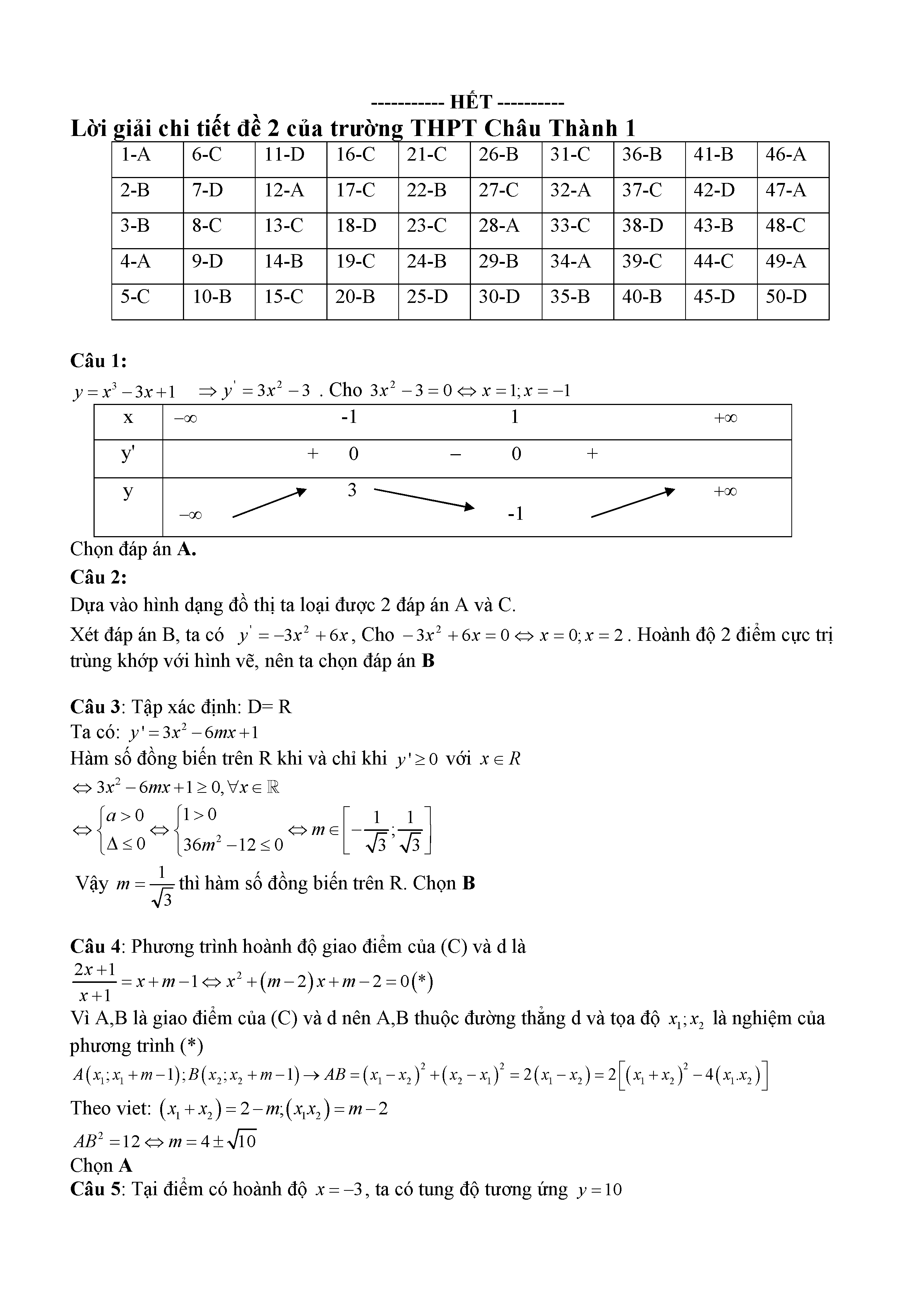 Đề thi thử THPTQG môn Toán năm 2017 trường Châu Thành 2
