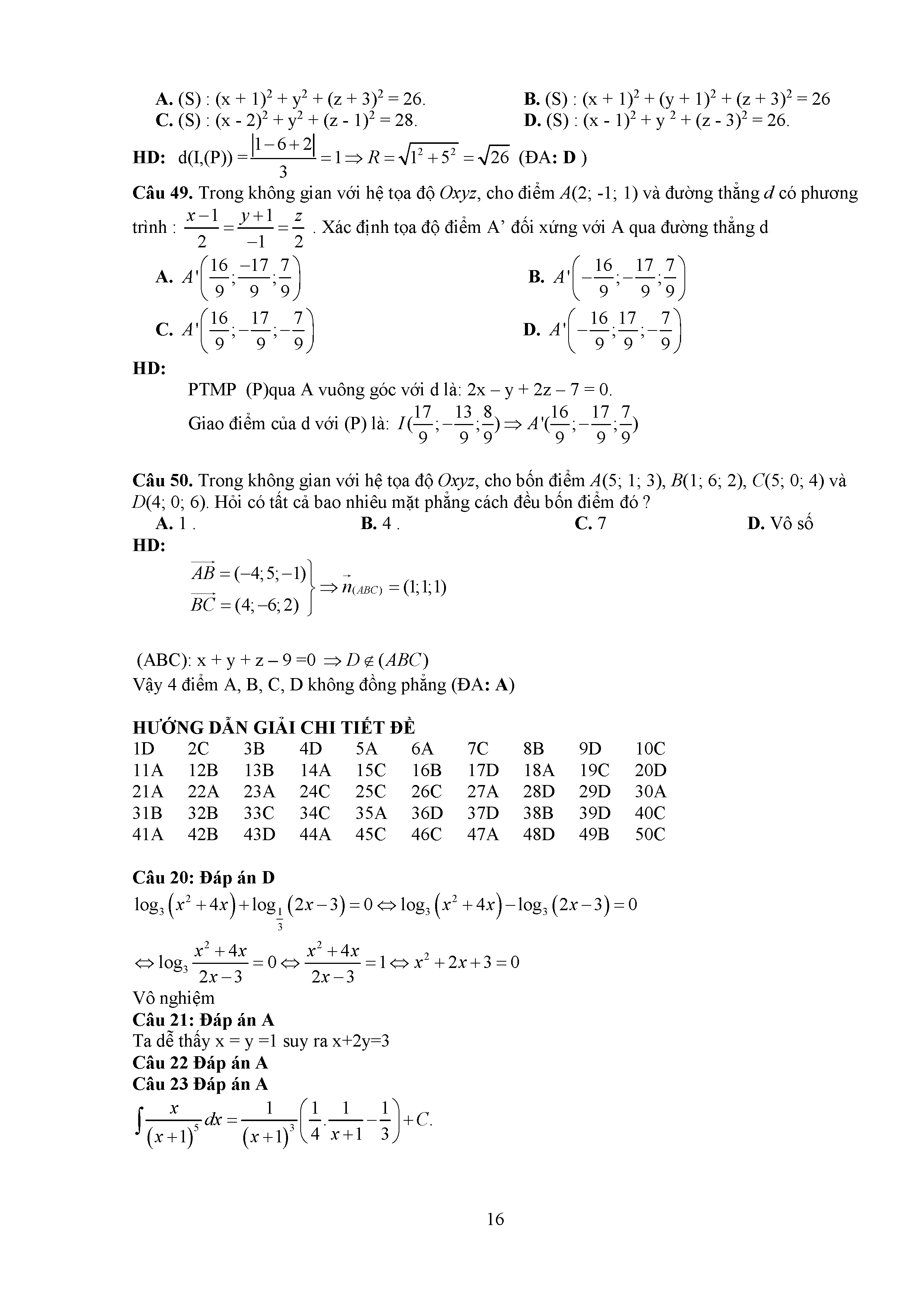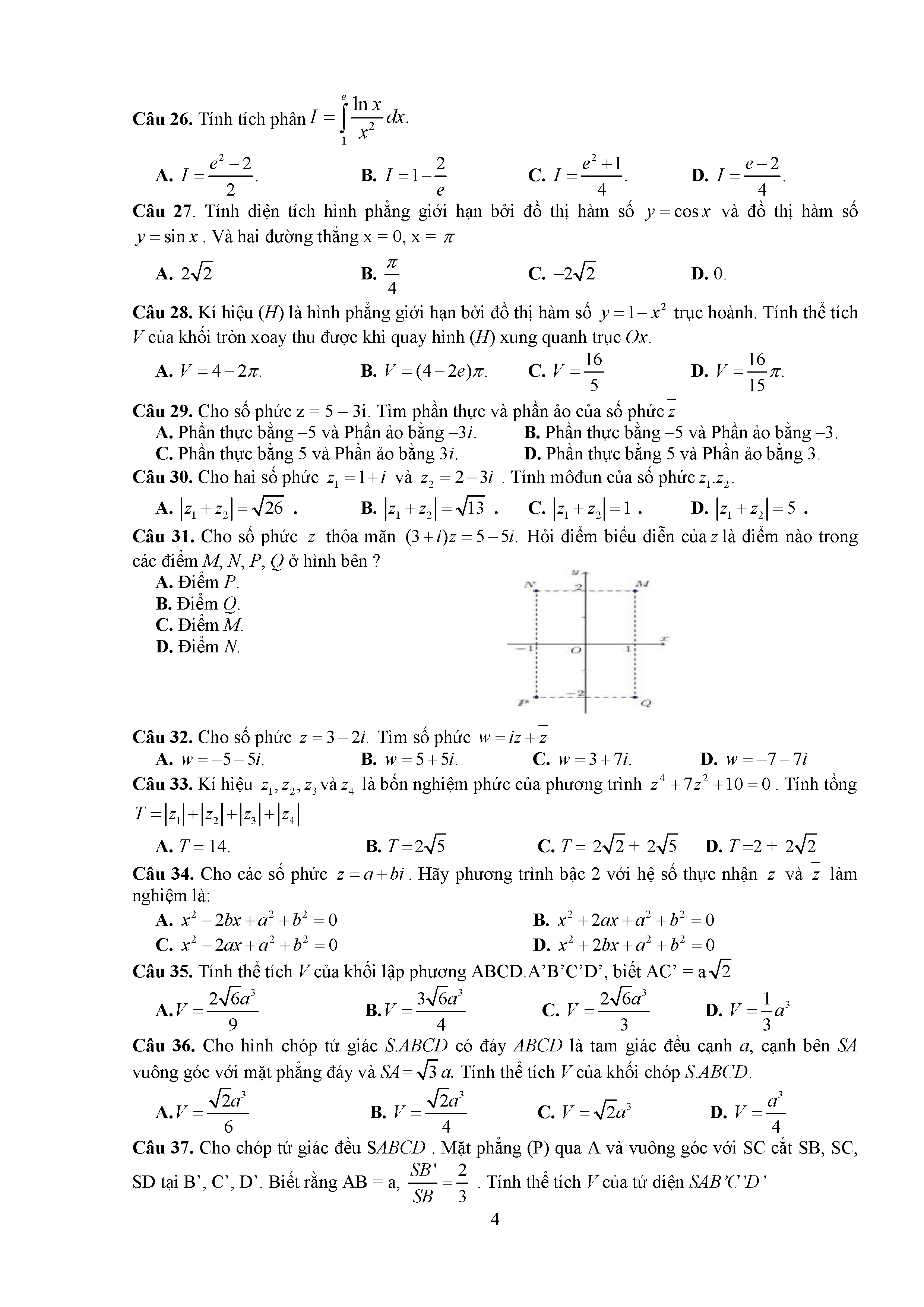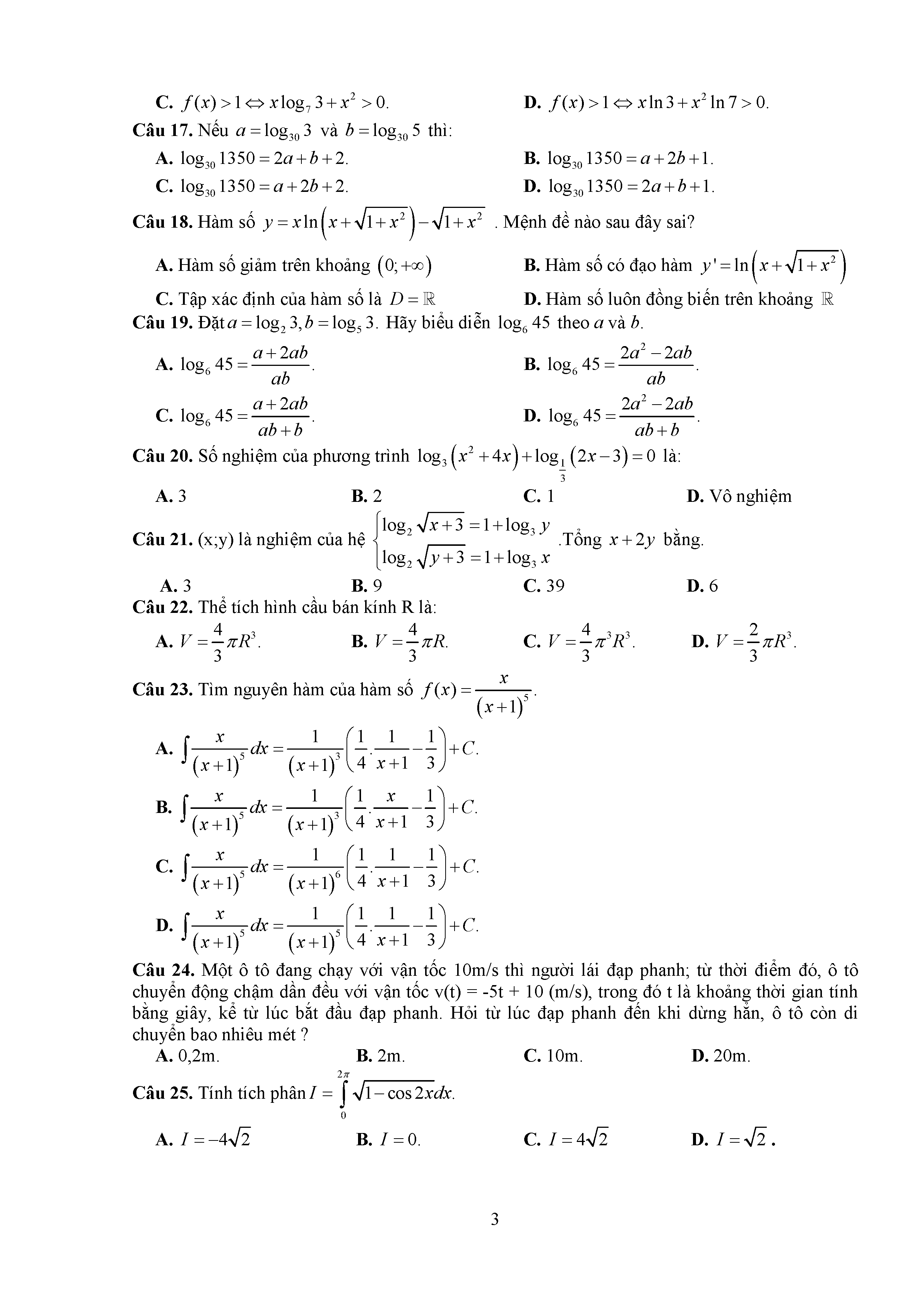 Đề thi thử THPTQG môn Toán năm 2017 Sở Tuyên Quang số 20