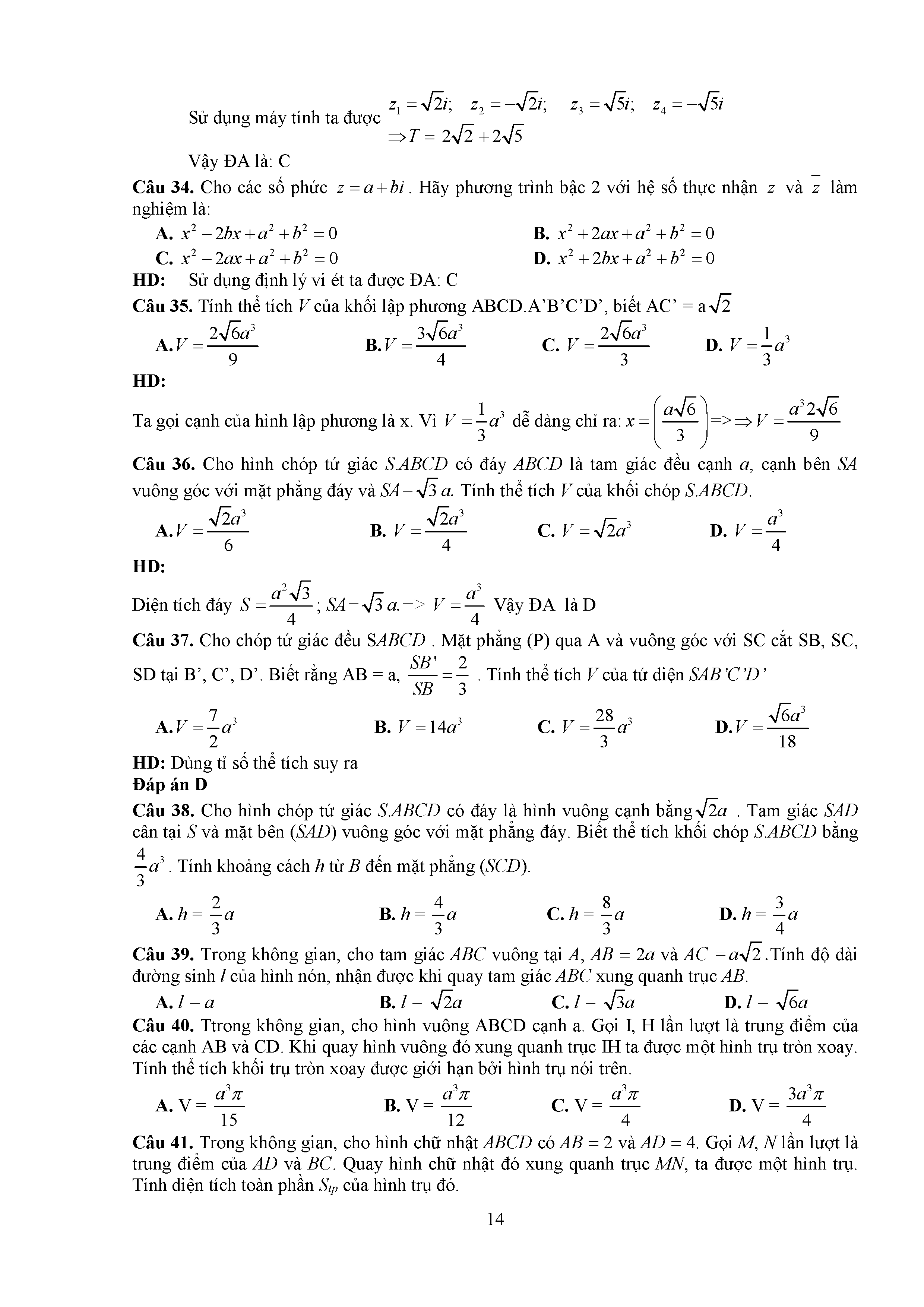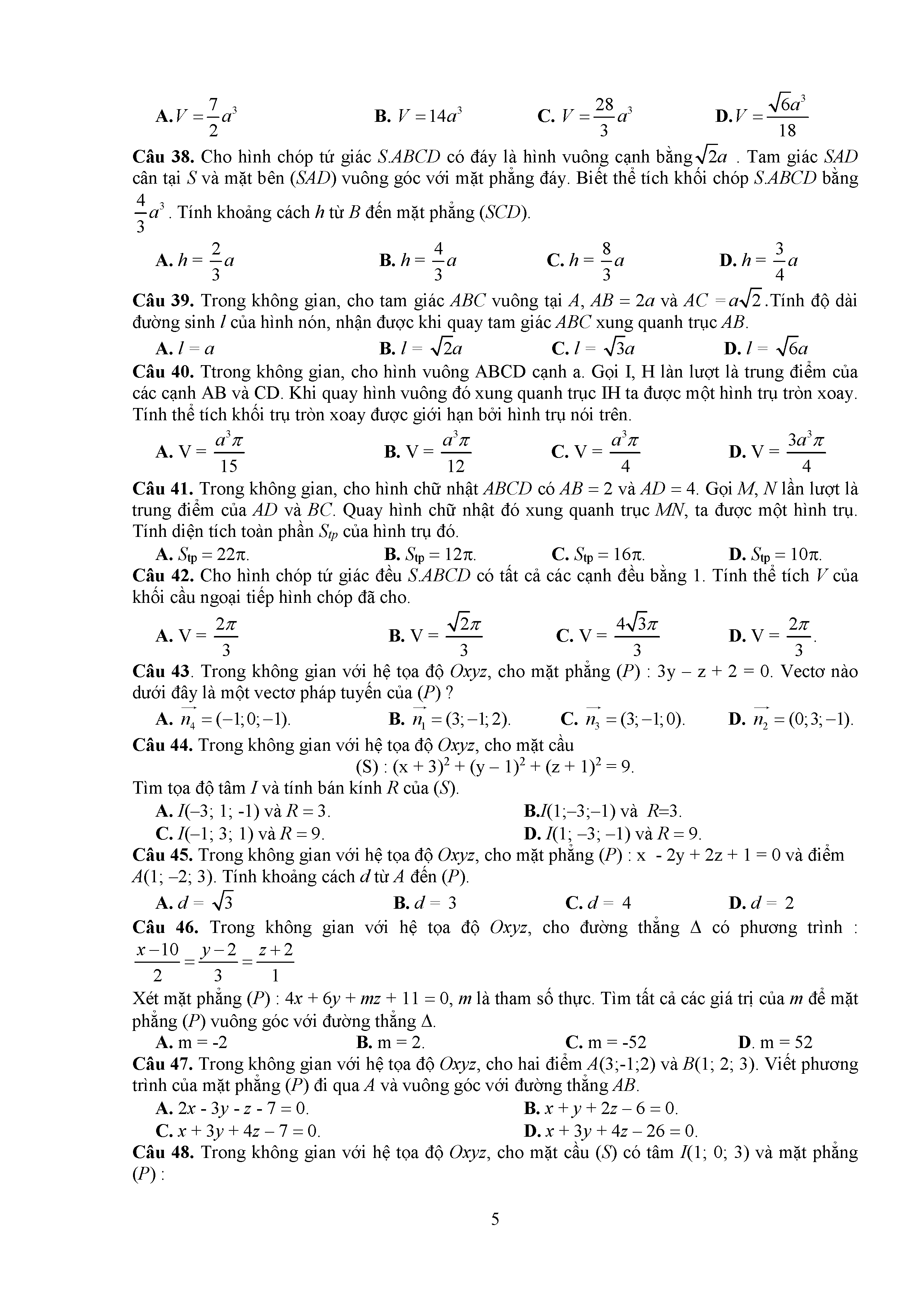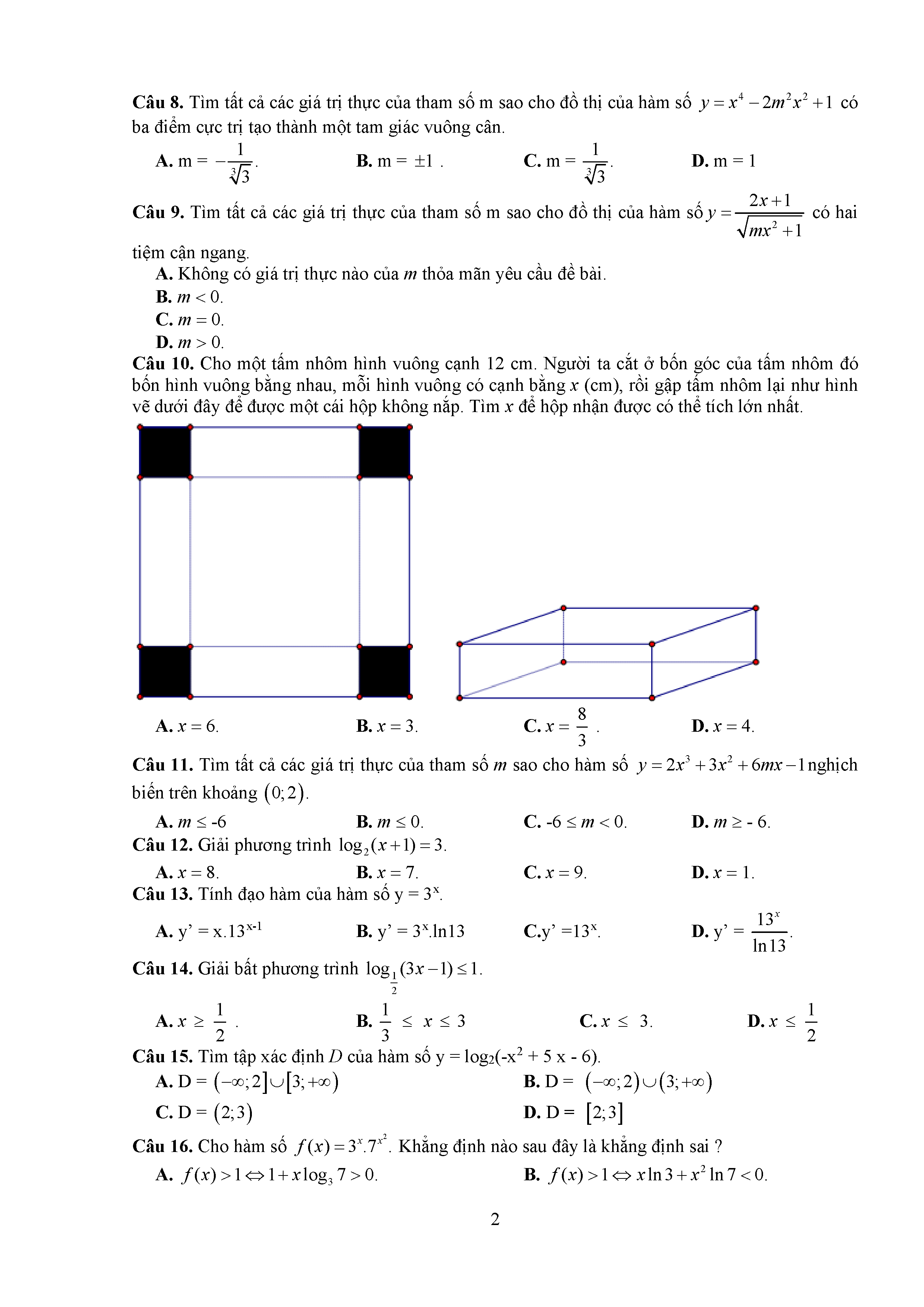 Đề thi thử THPTQG môn Toán năm 2017 Sở Tuyên Quang số 20