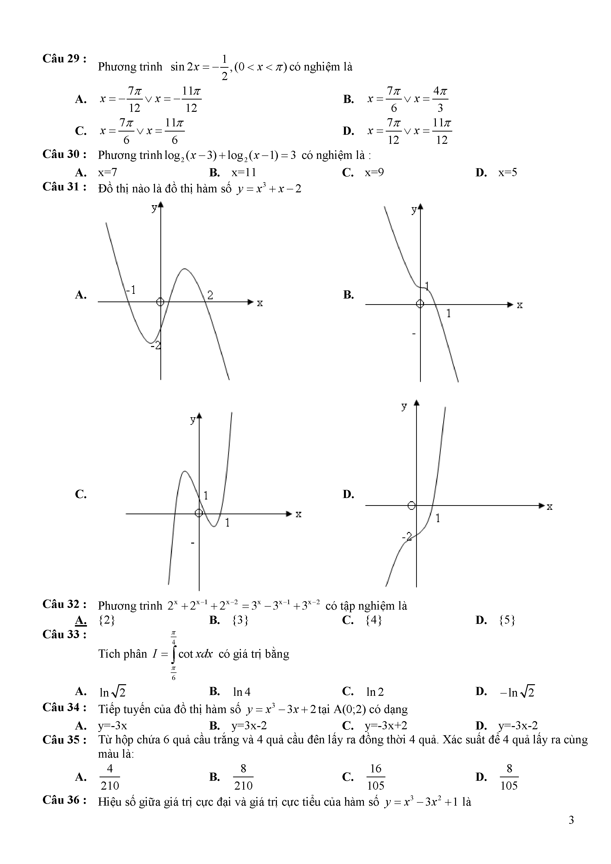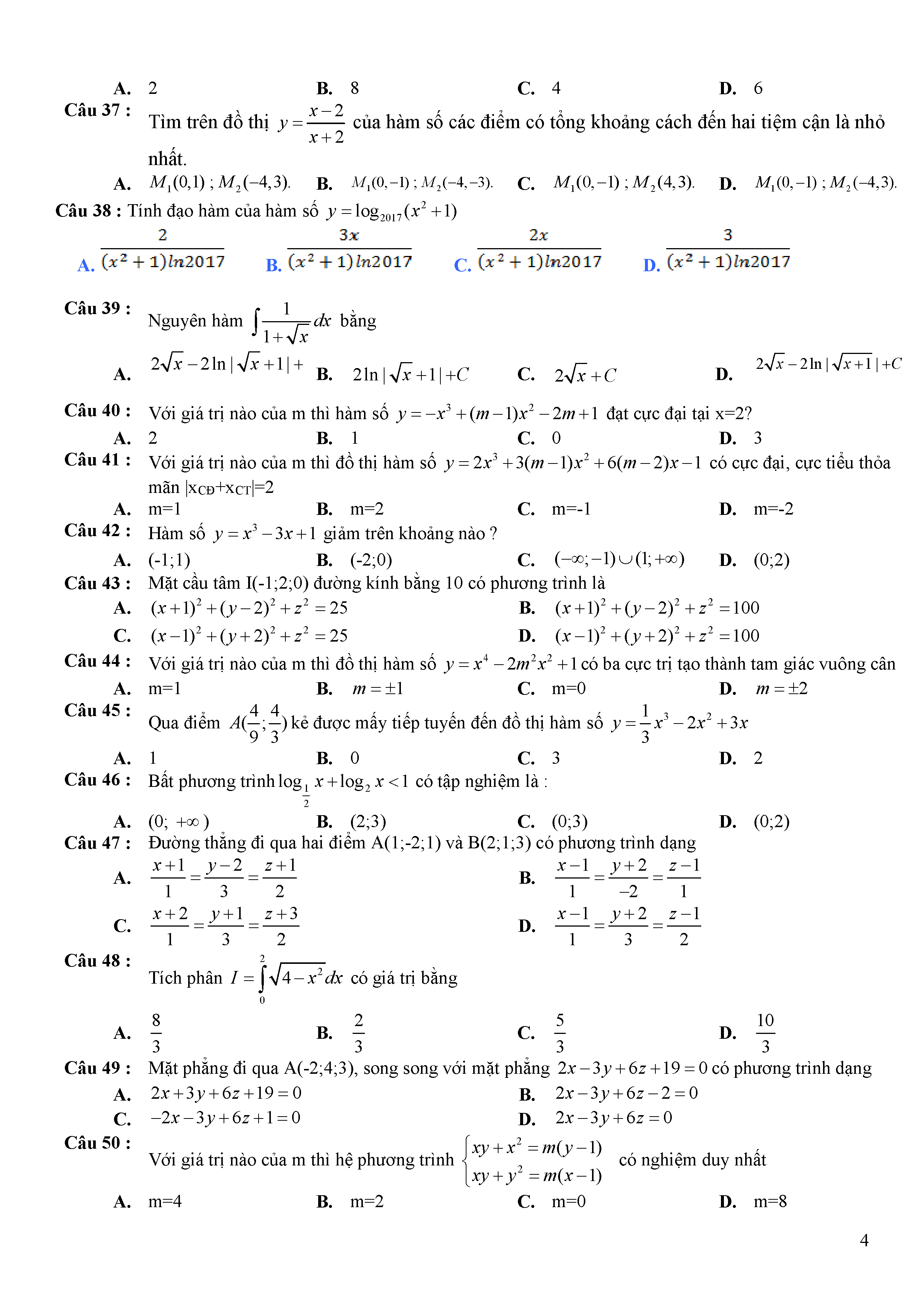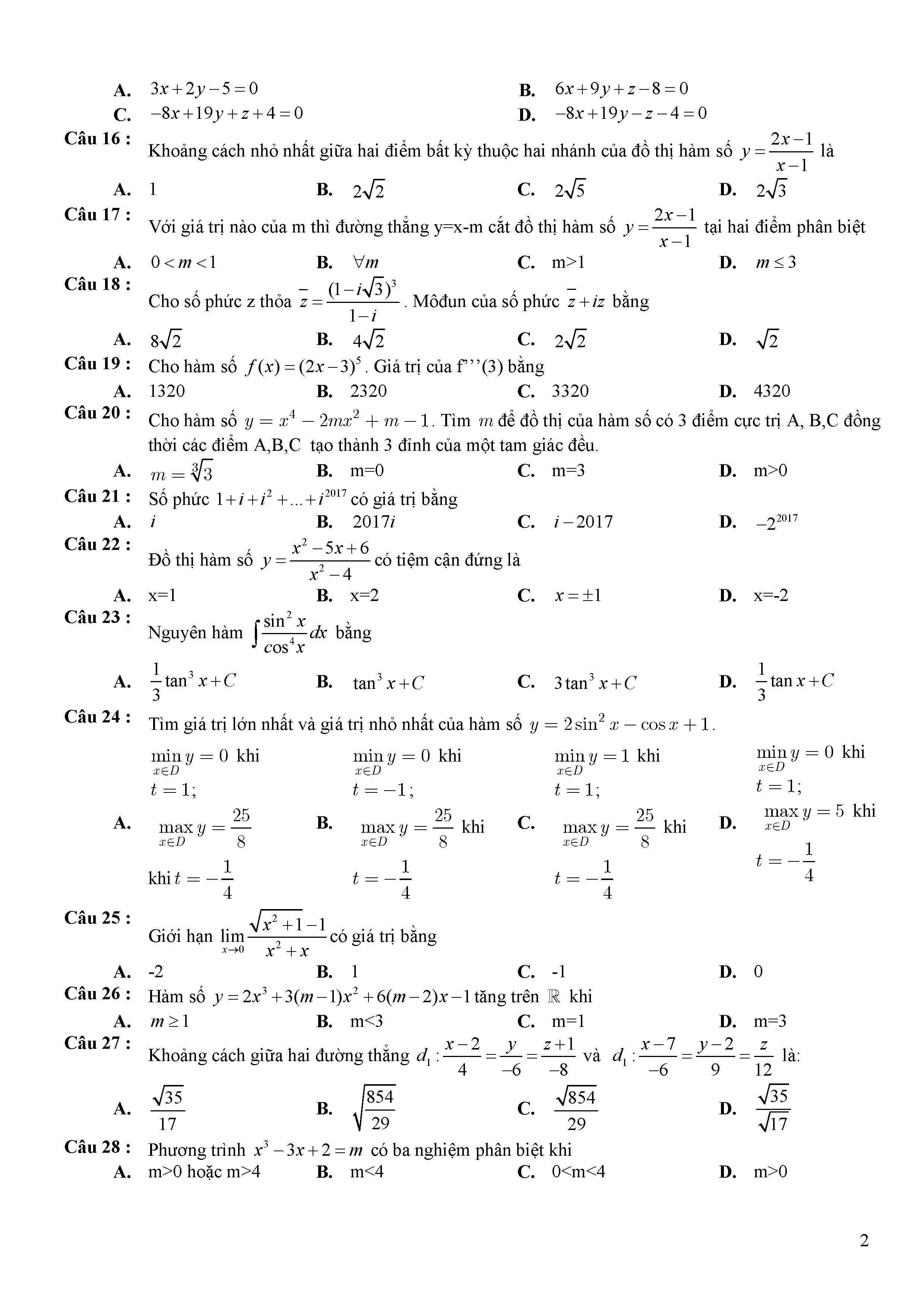 Đề thi thử THPTQG môn Toán năm 2017 Sở Tuyên Quang số 18