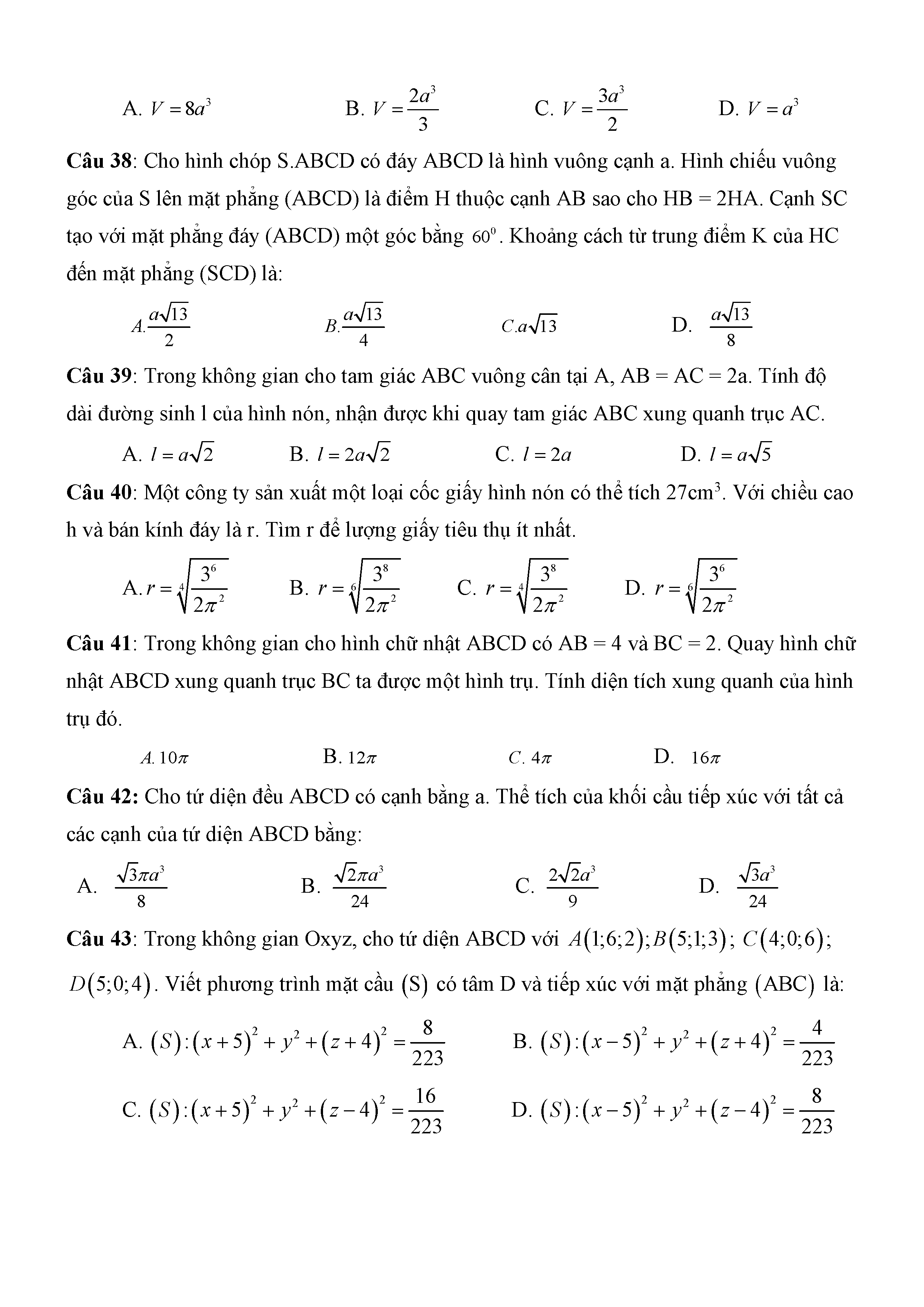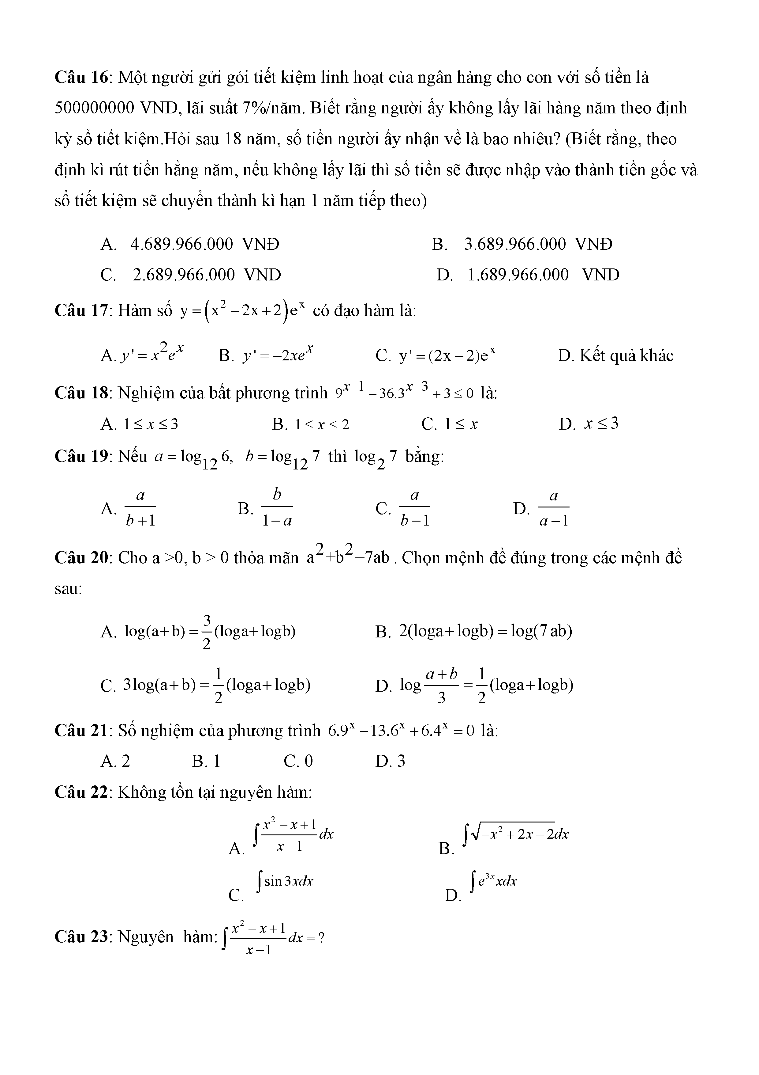 Đề thi thử THPTQG môn Toán năm 2017 Sở Tuyên Quang số 16