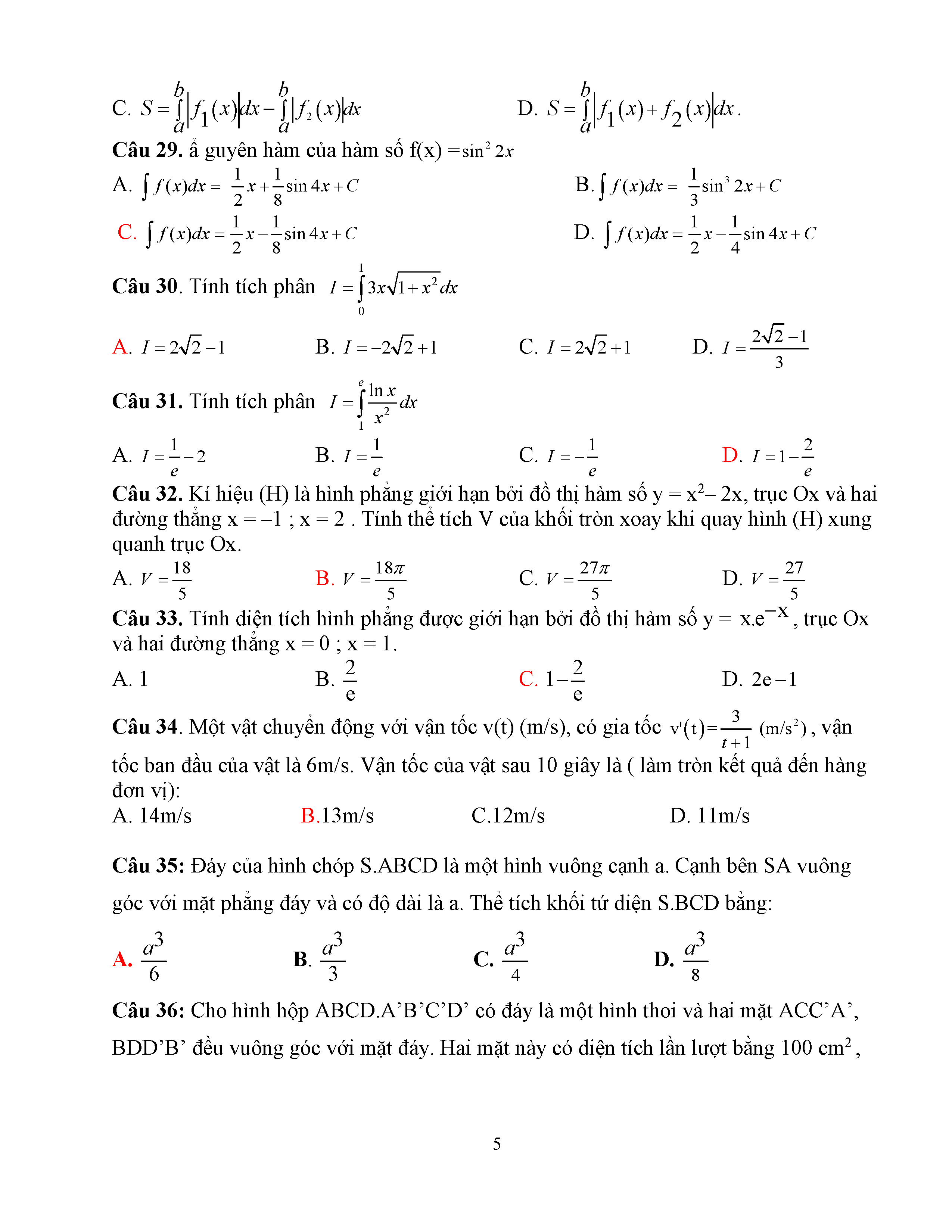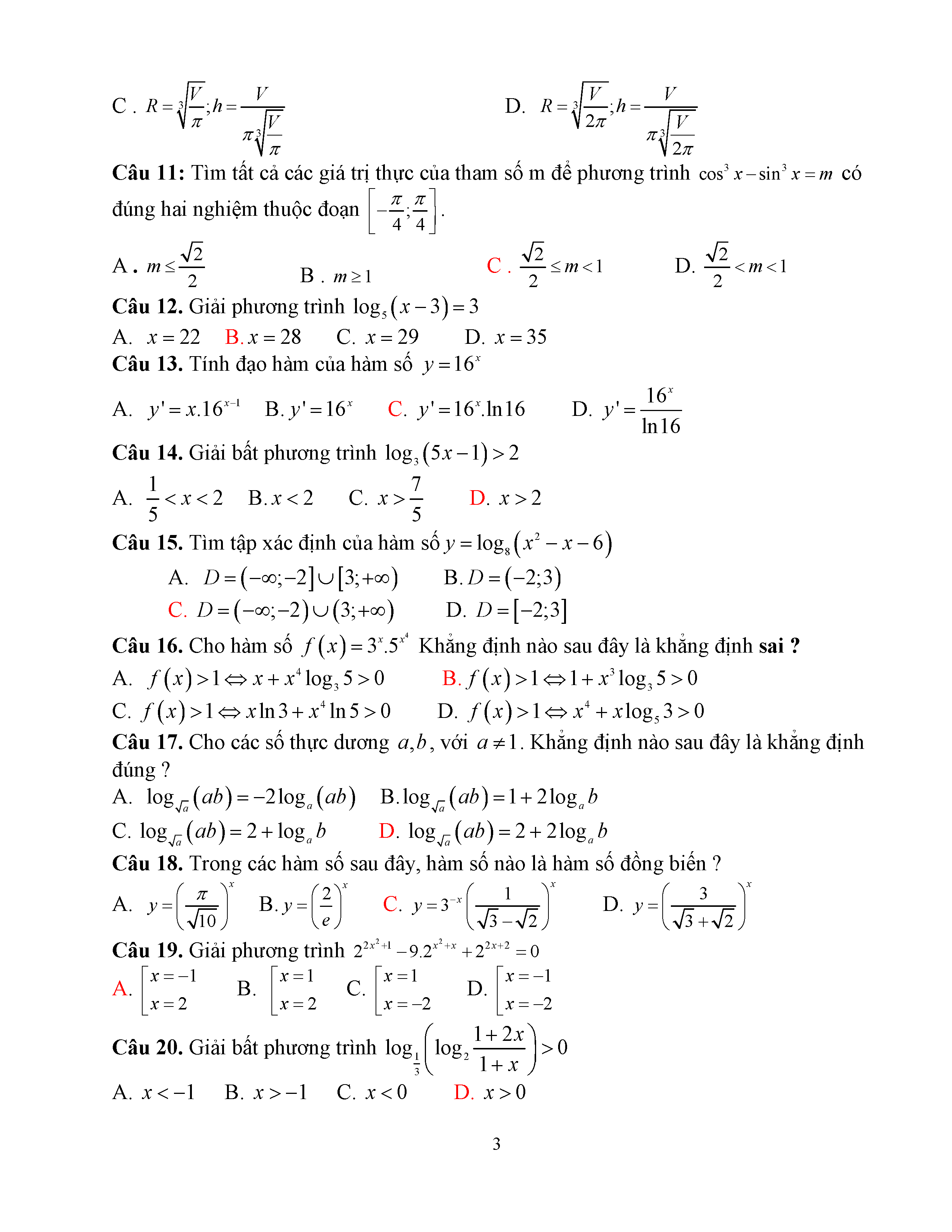 Đề thi thử THPTQG môn Toán năm 2017 Sở Tuyên Quang số 14