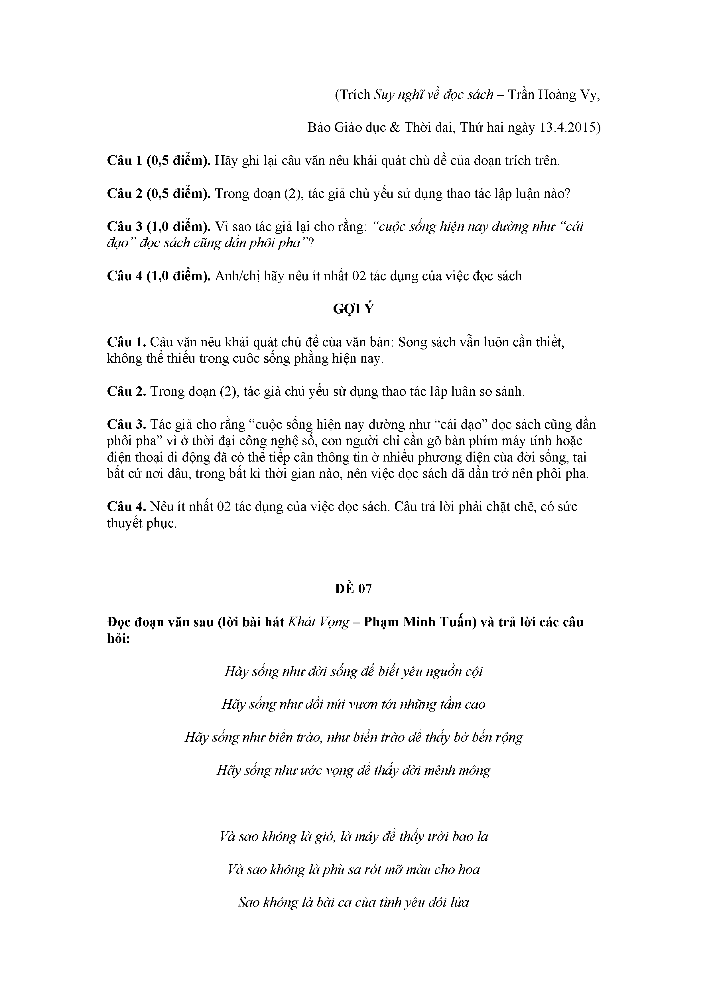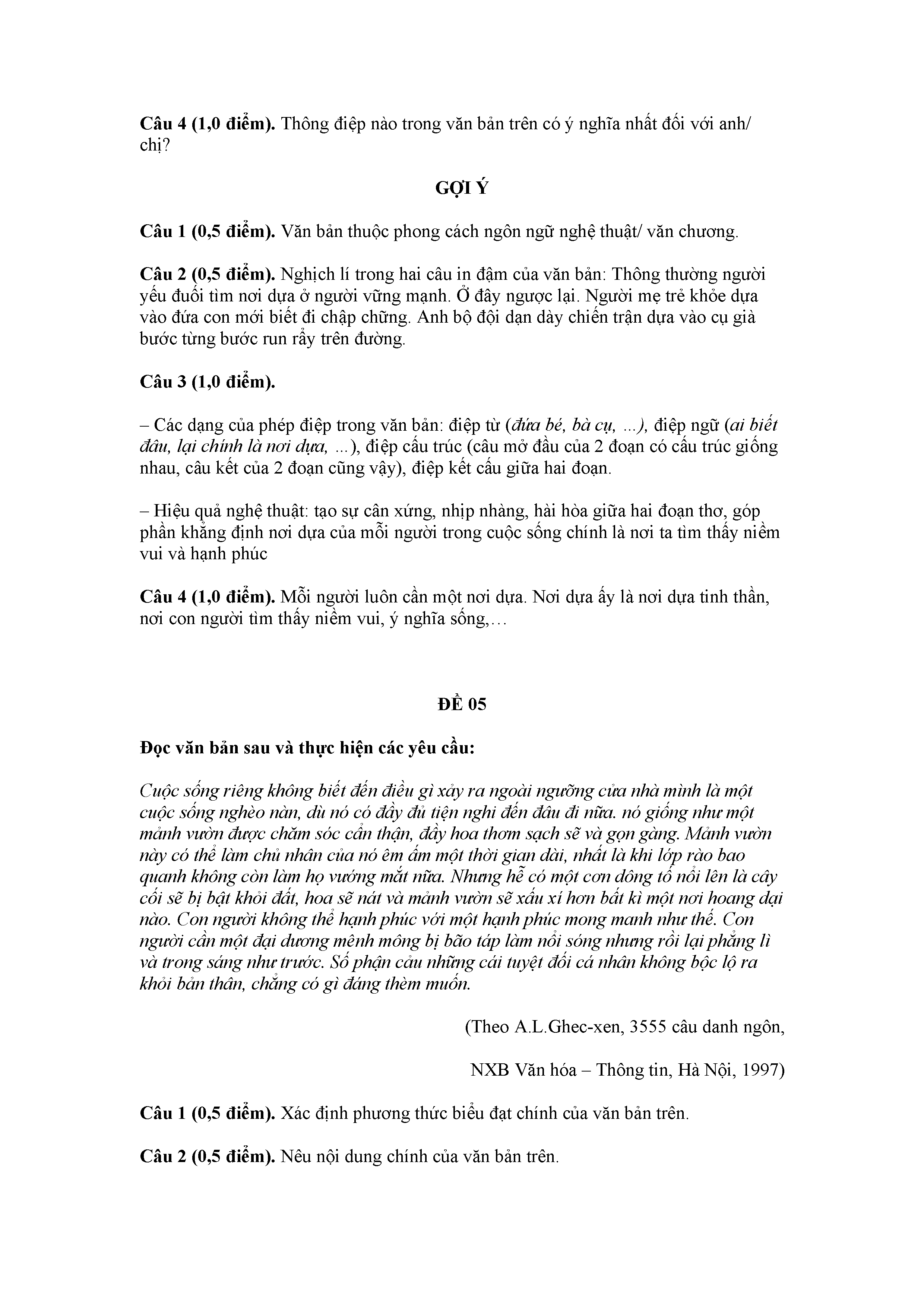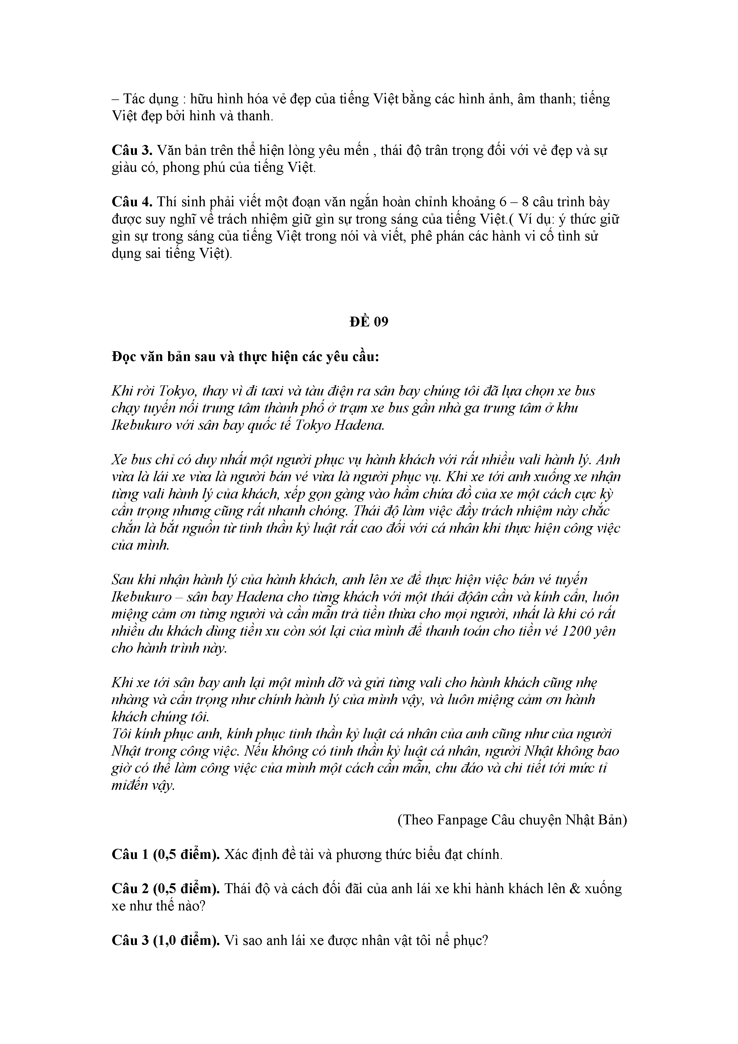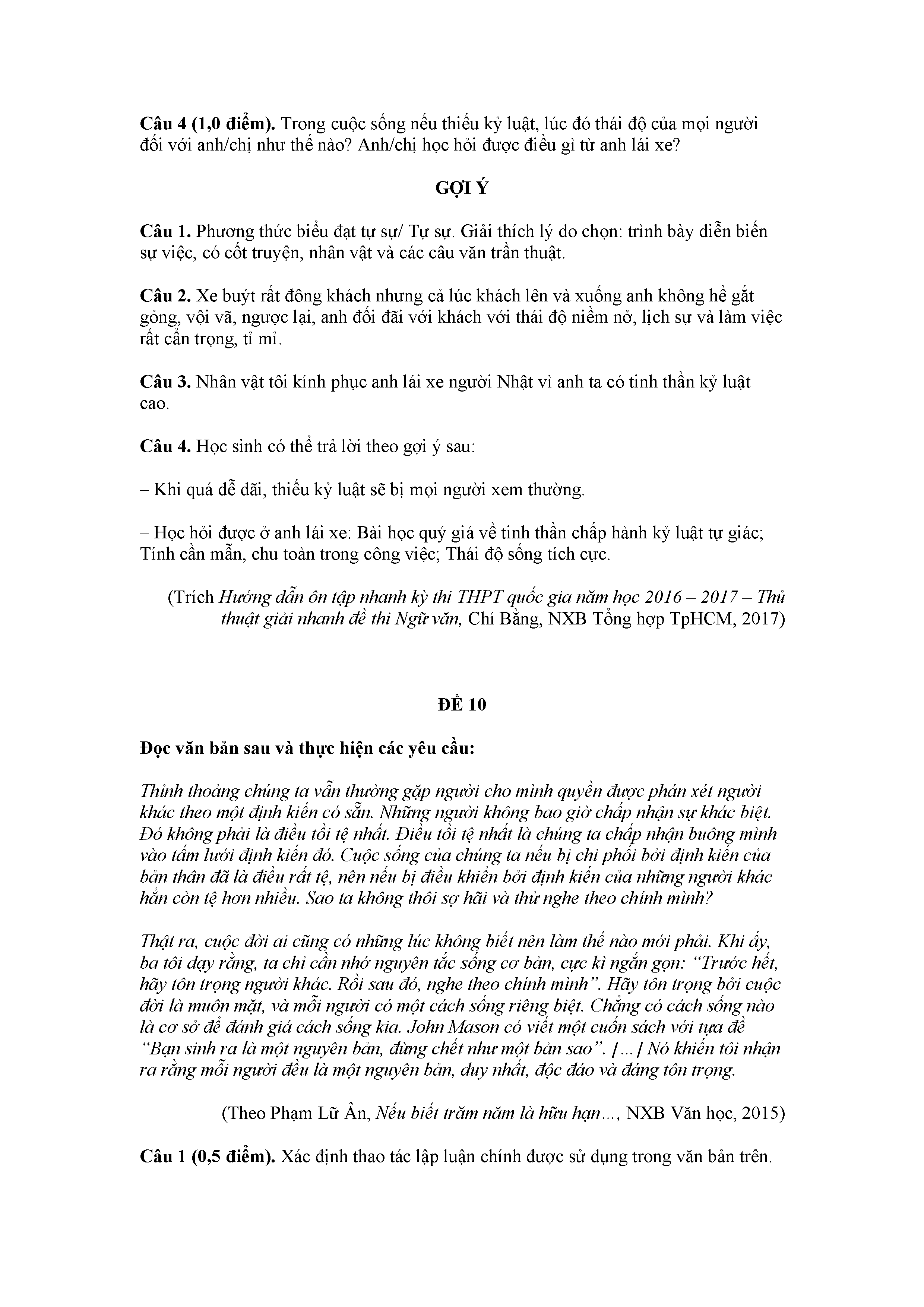 10 đề đọc hiểu môn Ngữ Văn theo cấu trúc đề thi THPT QG 2018