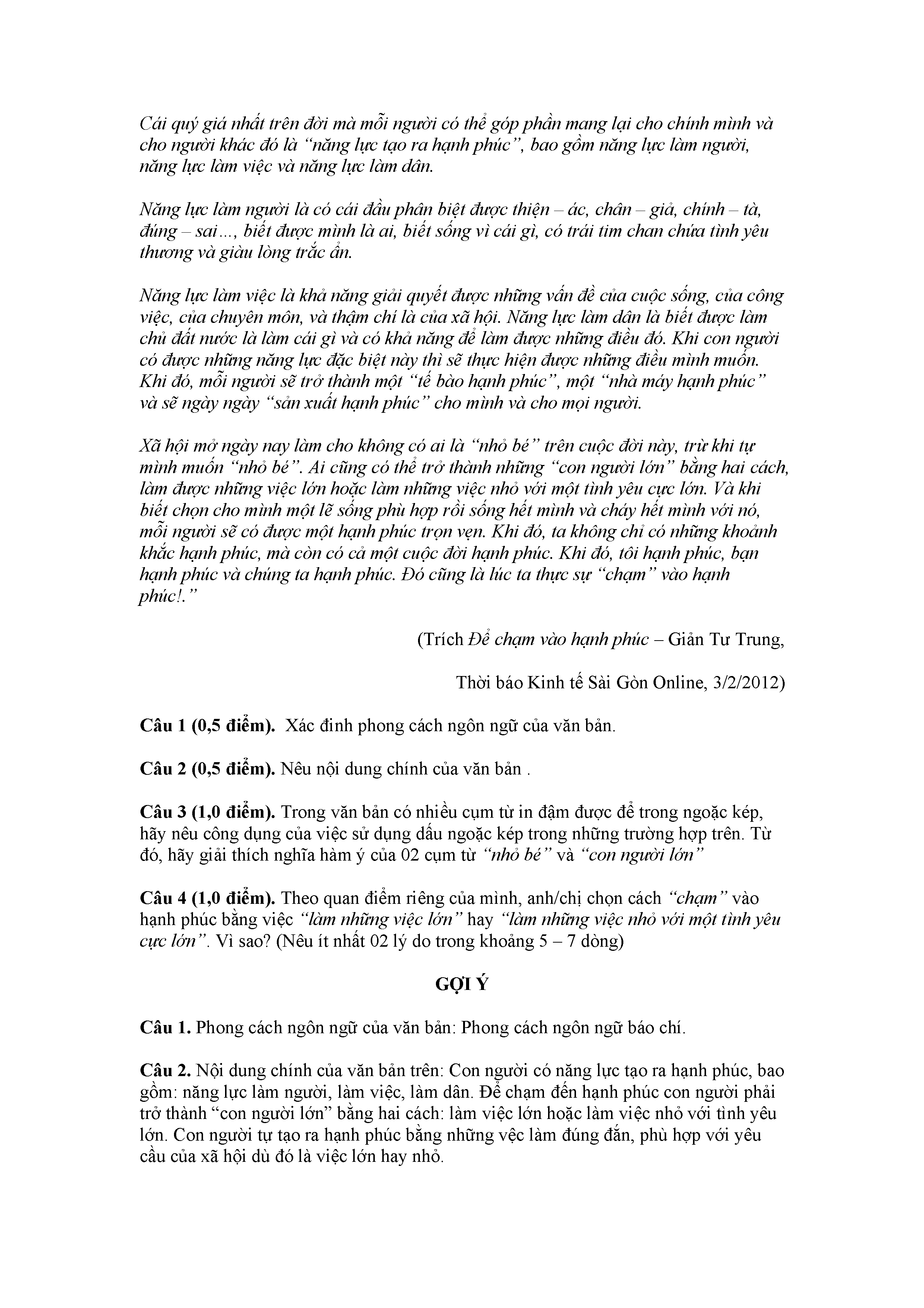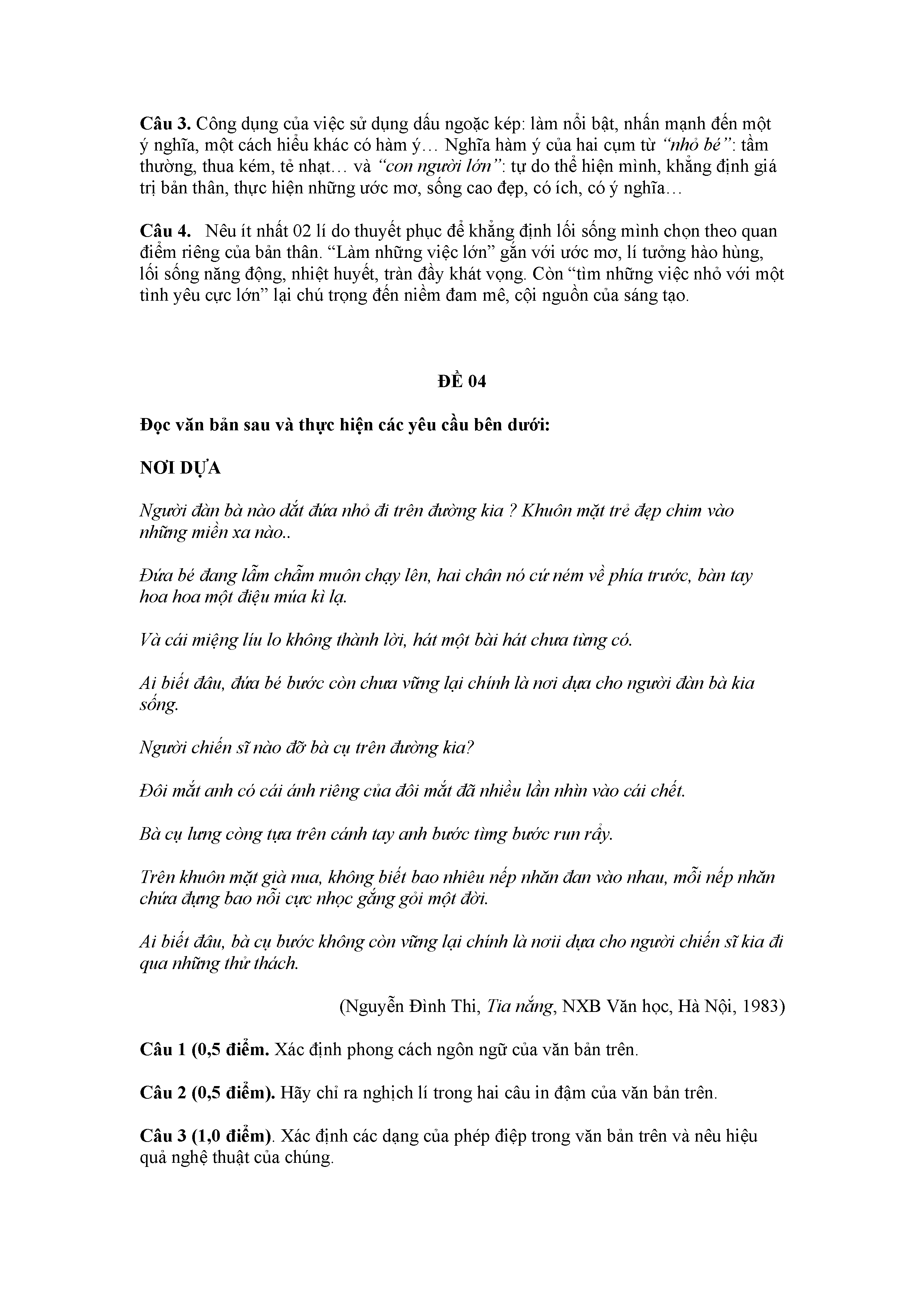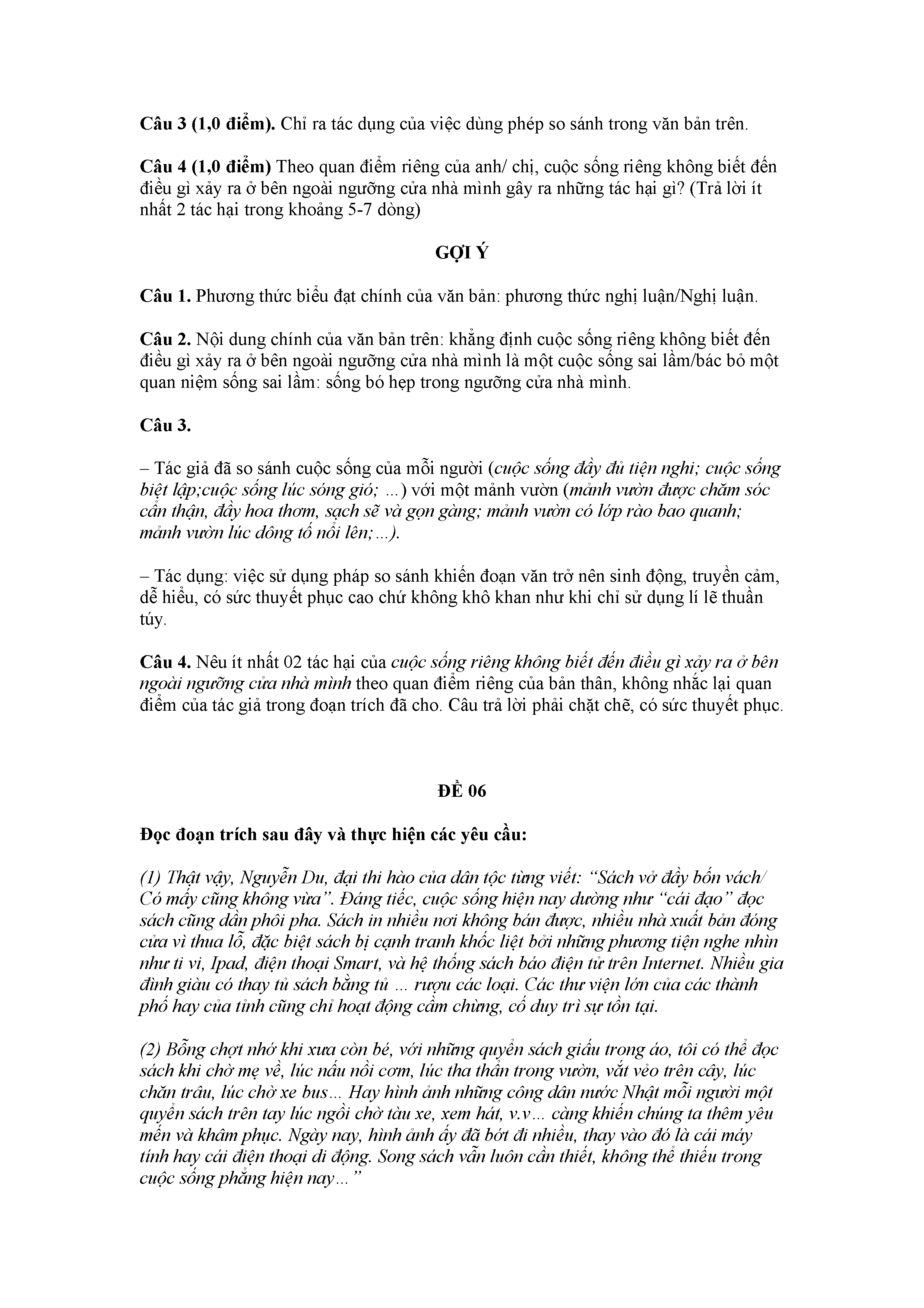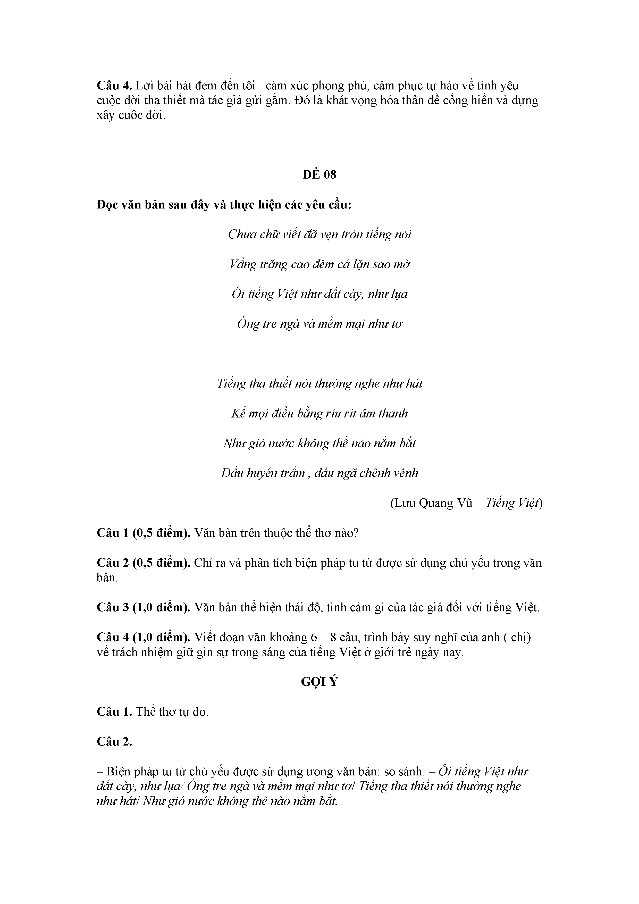 10 đề đọc hiểu môn Ngữ Văn theo cấu trúc đề thi THPT QG 2018