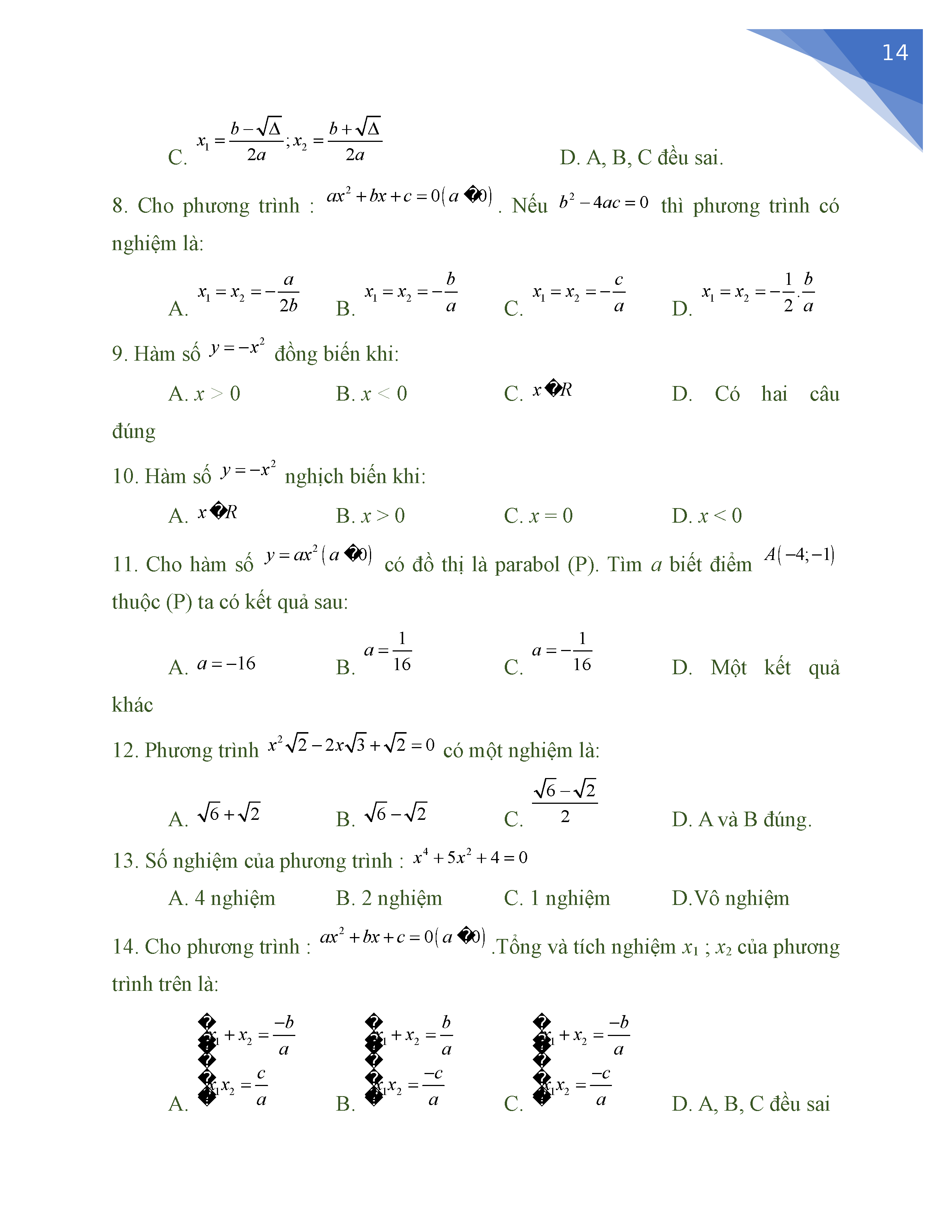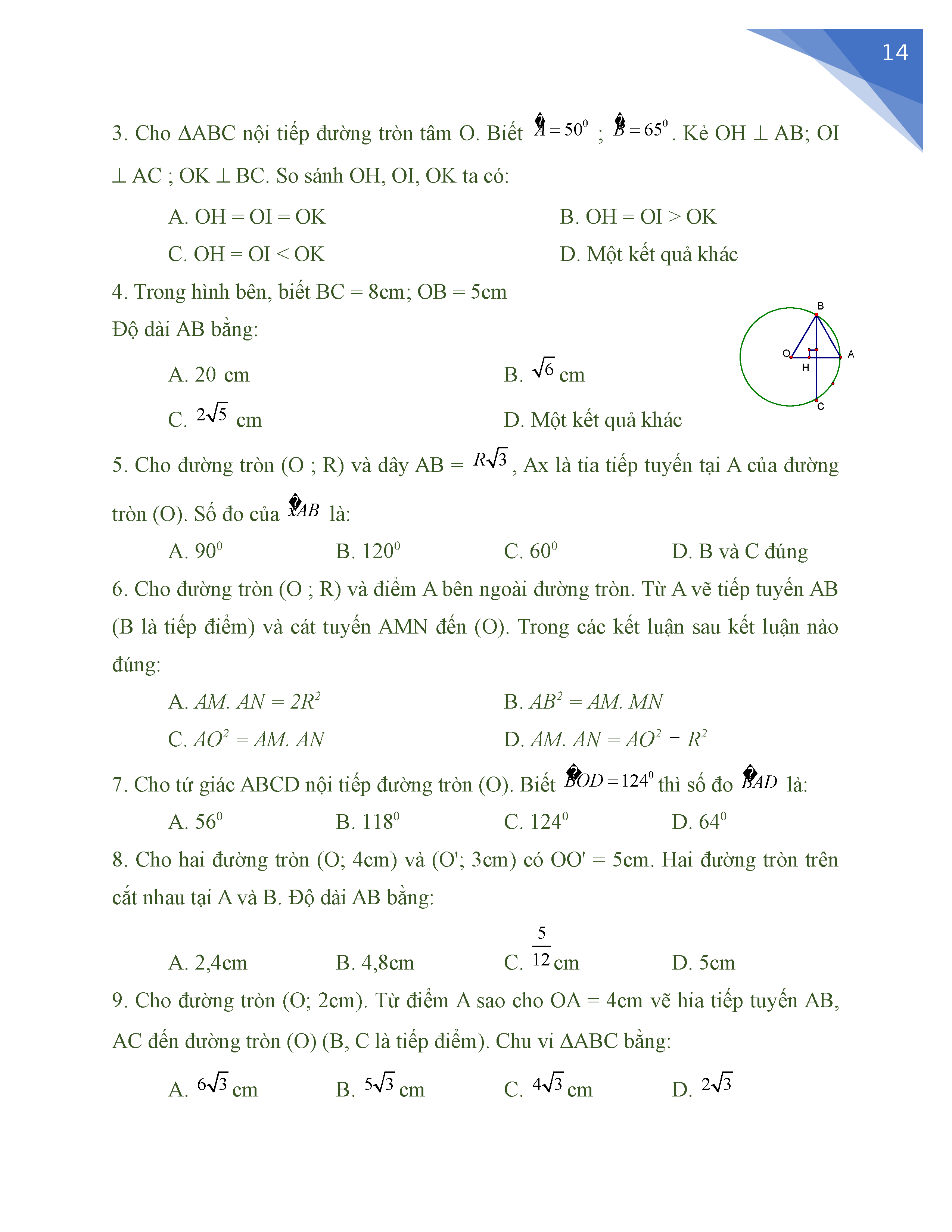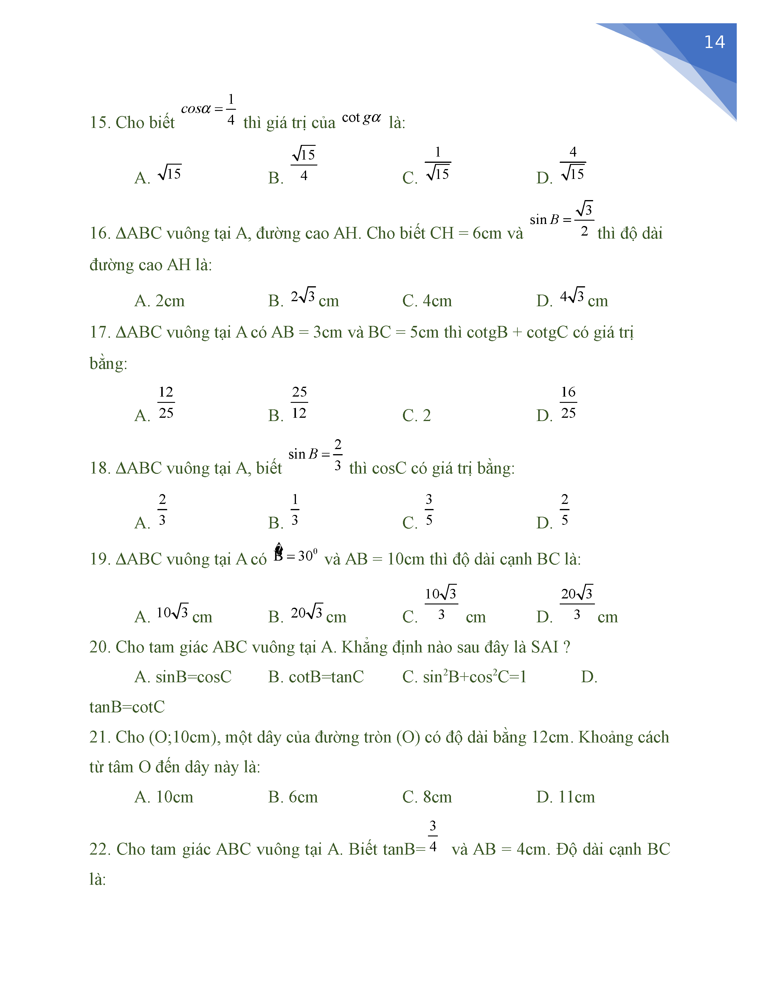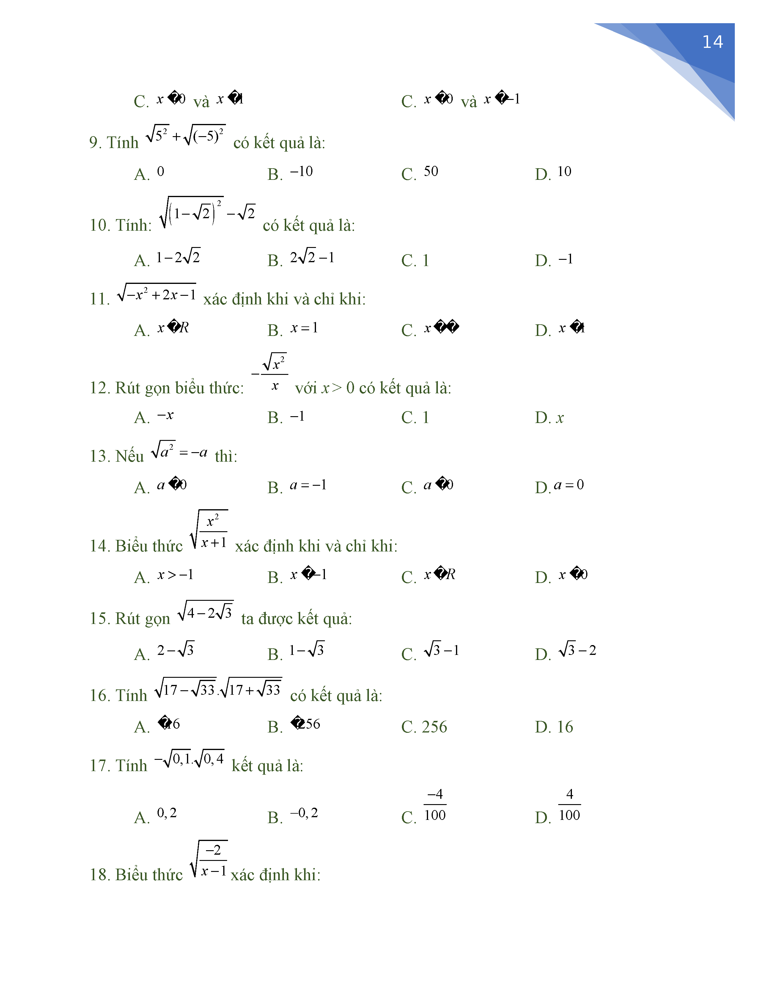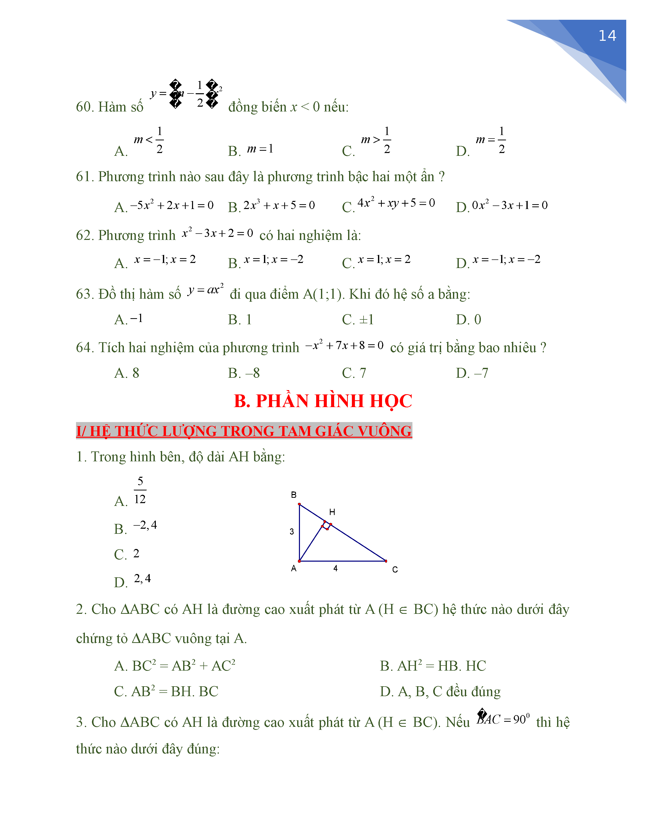 283 câu hỏi trắc nghiệm Toán 9 tuyển chọn