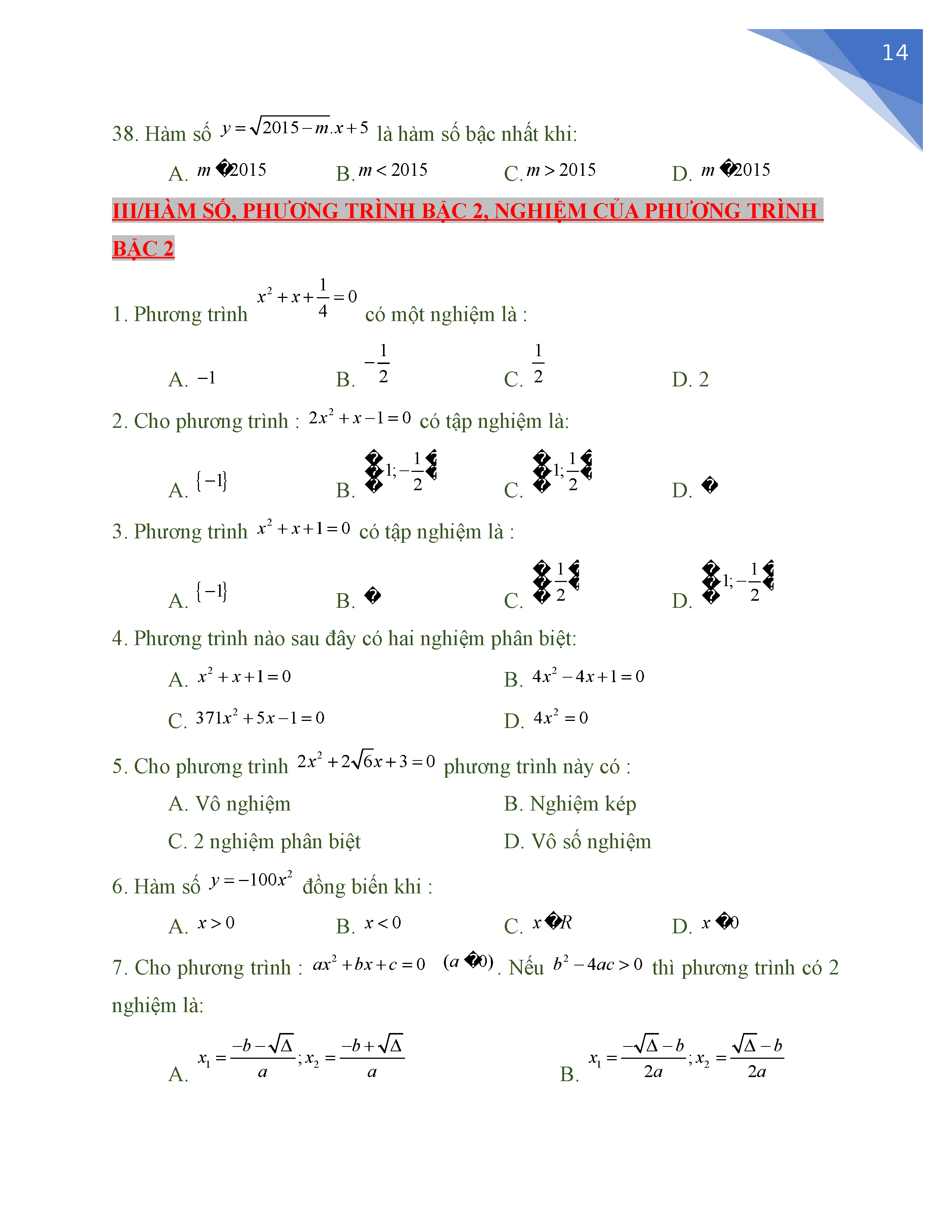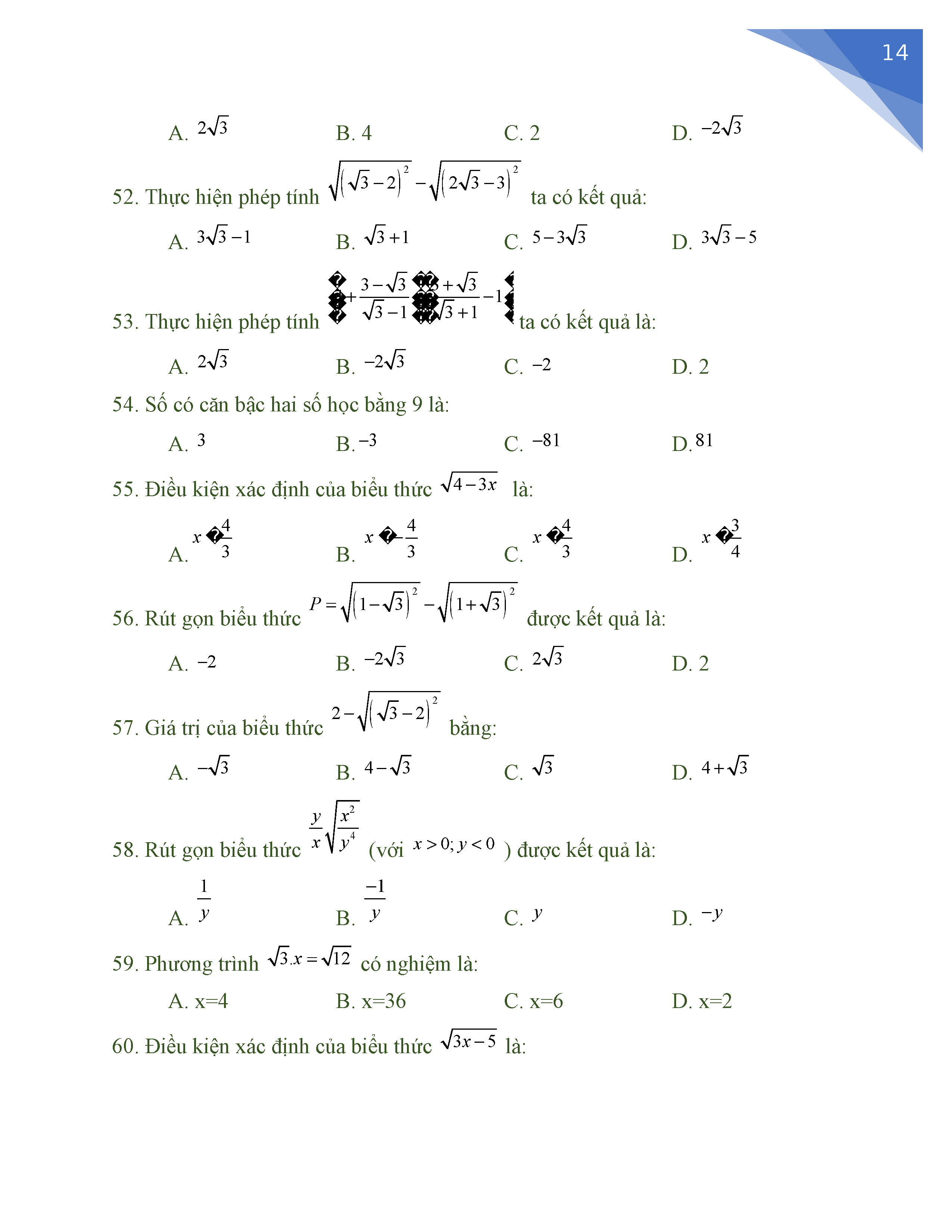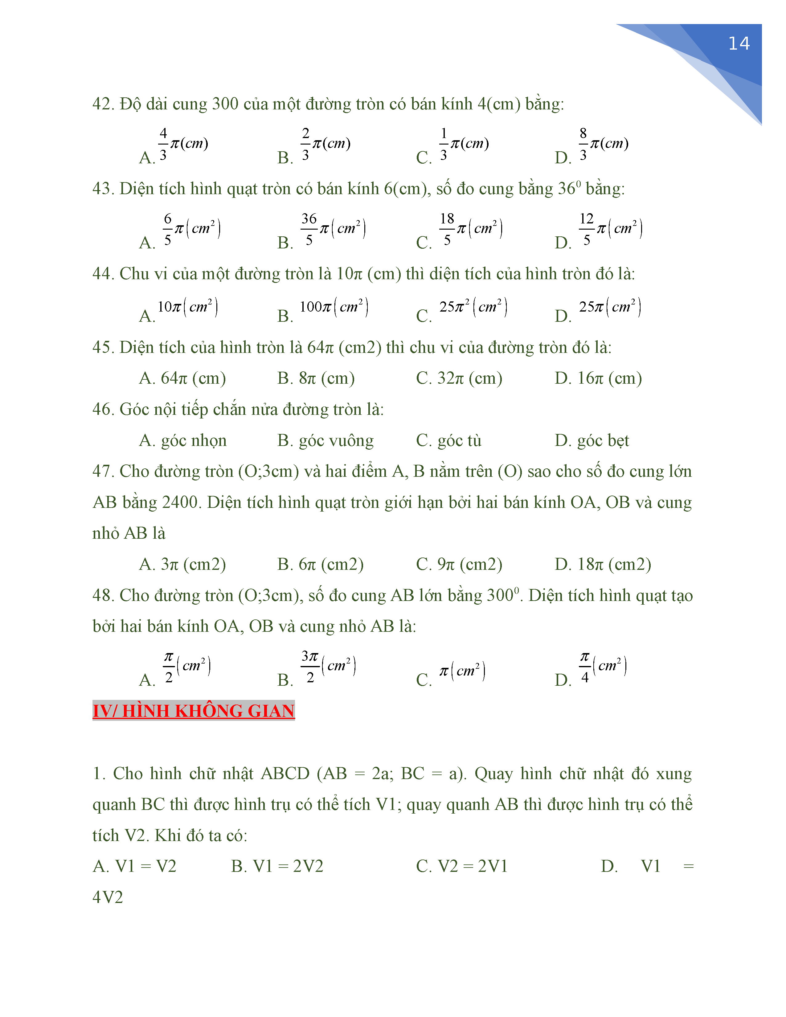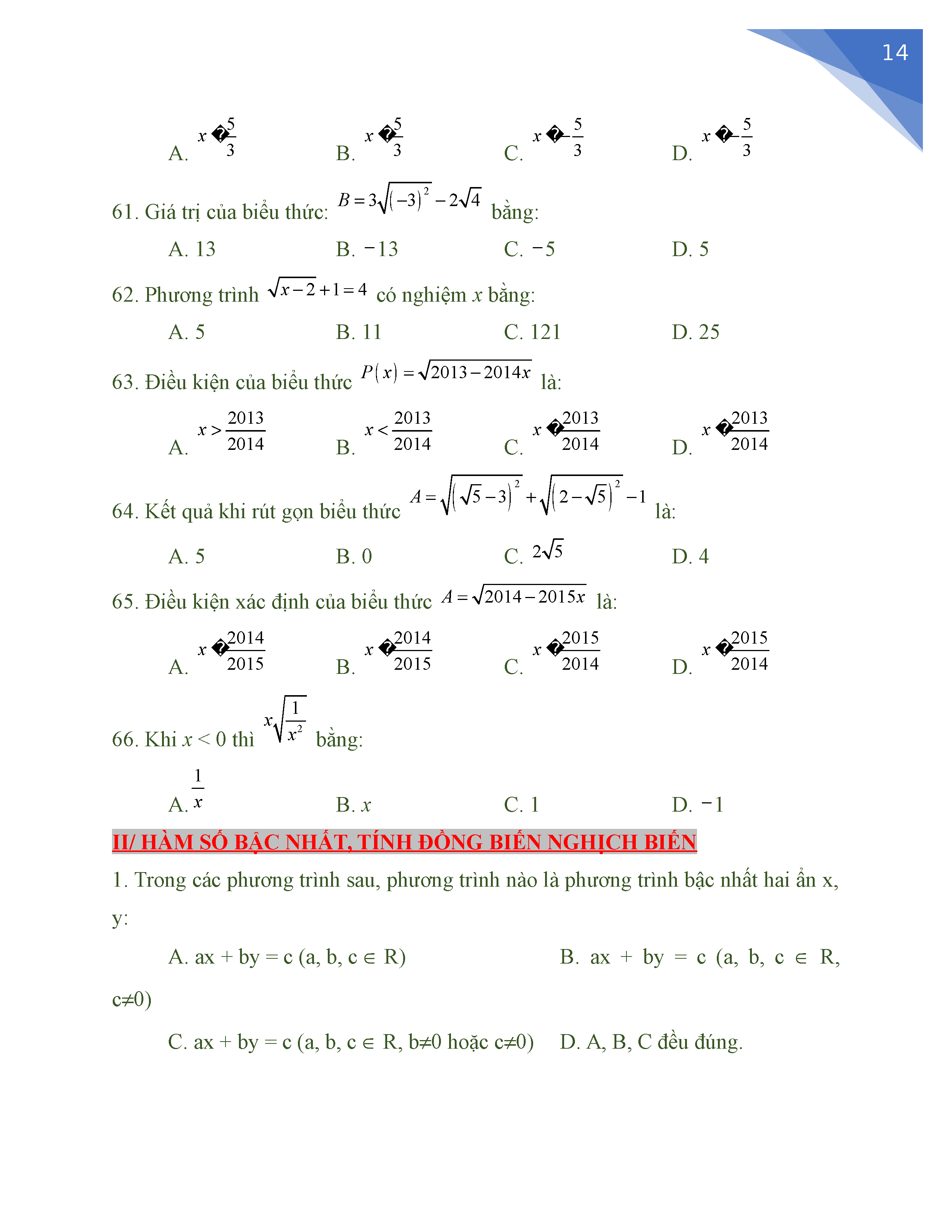 283 câu hỏi trắc nghiệm Toán 9 tuyển chọn