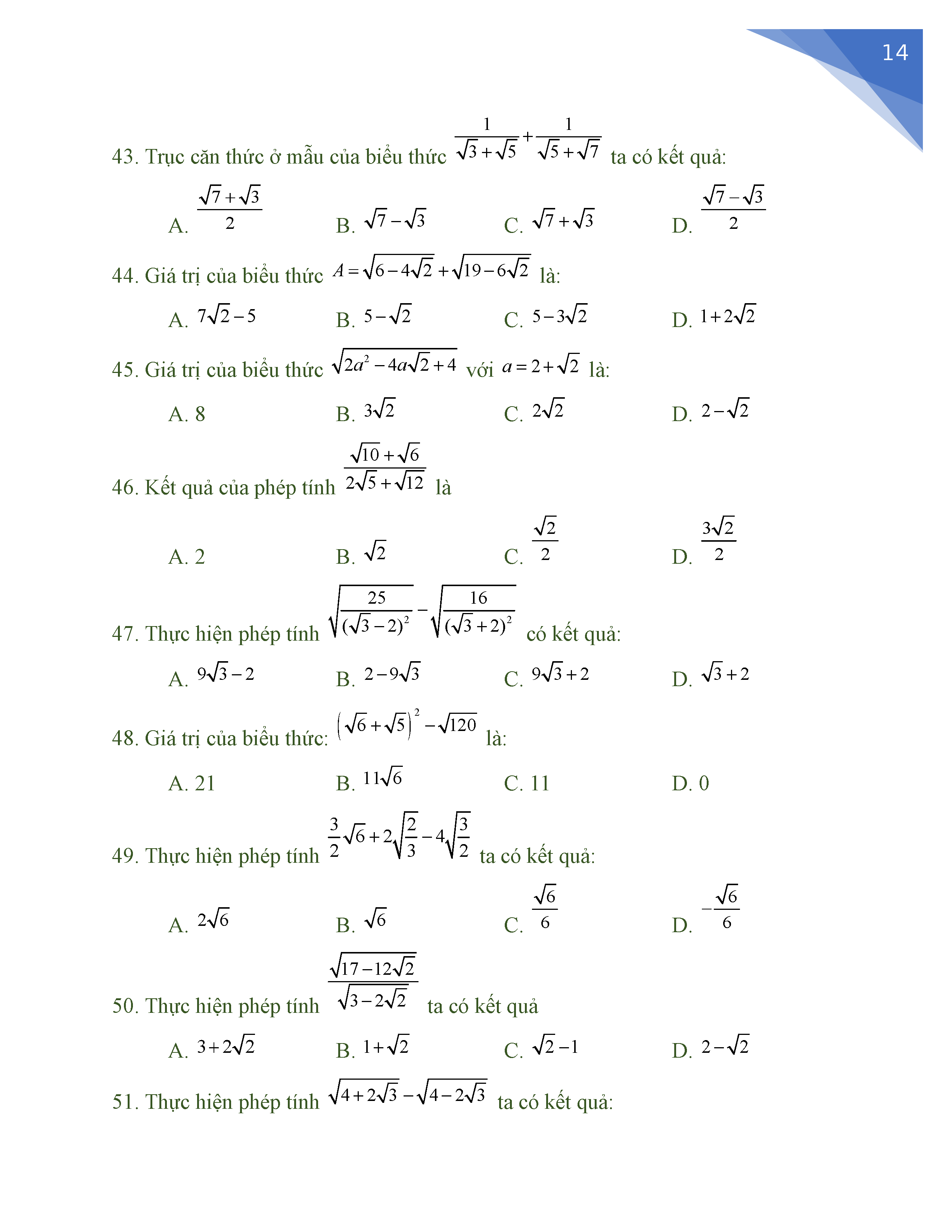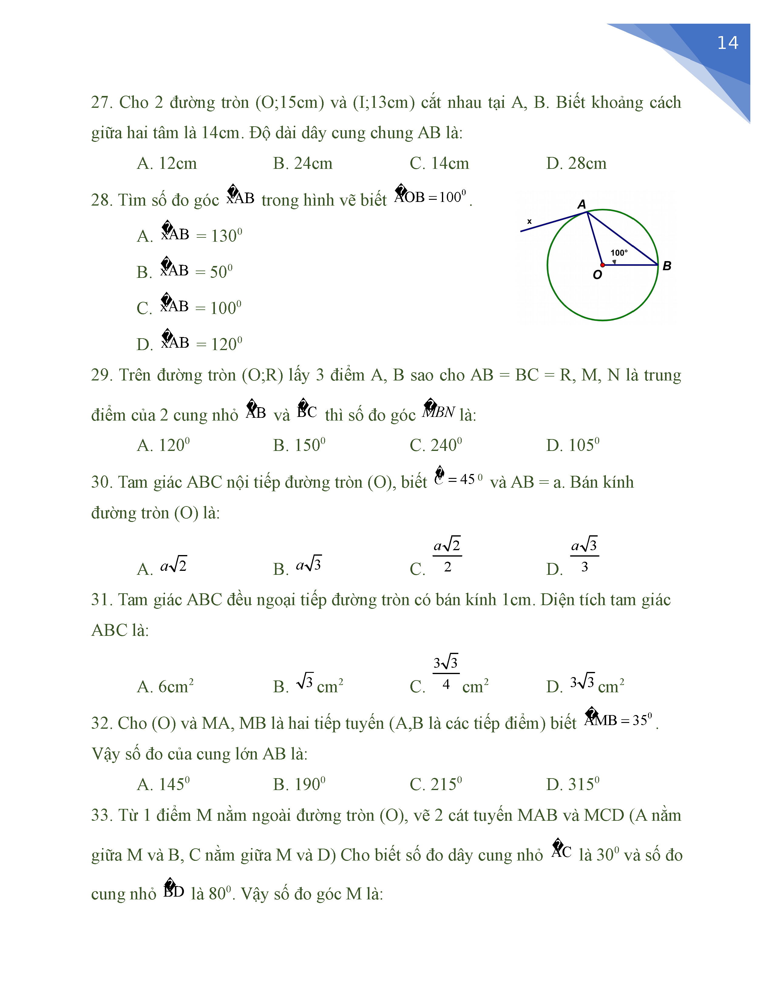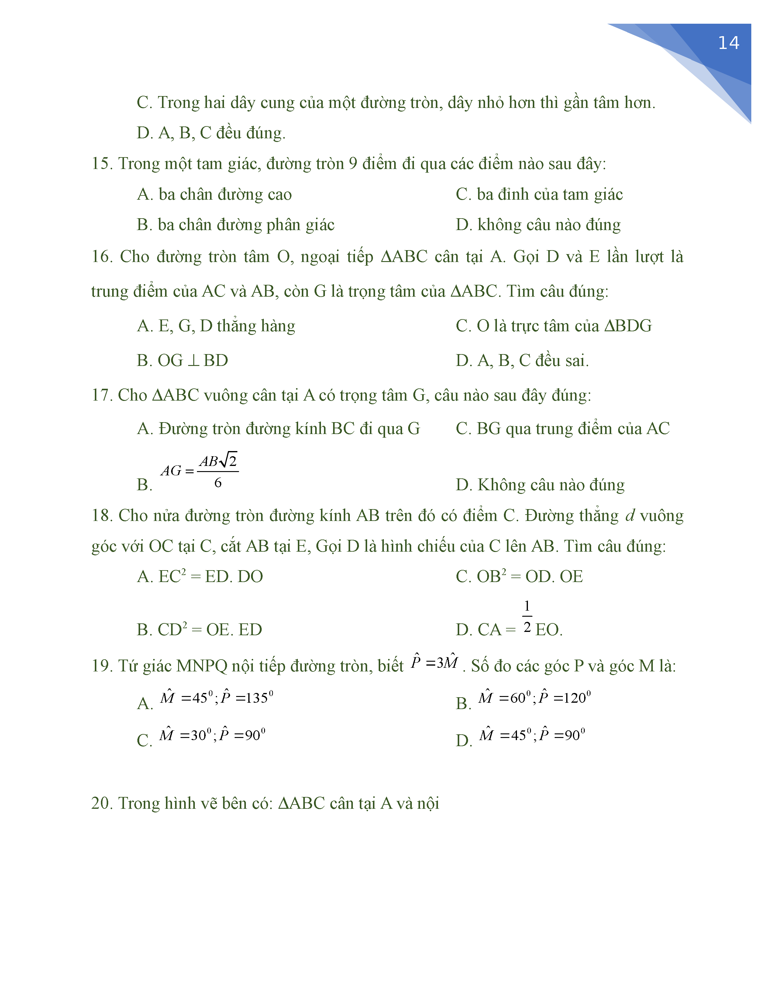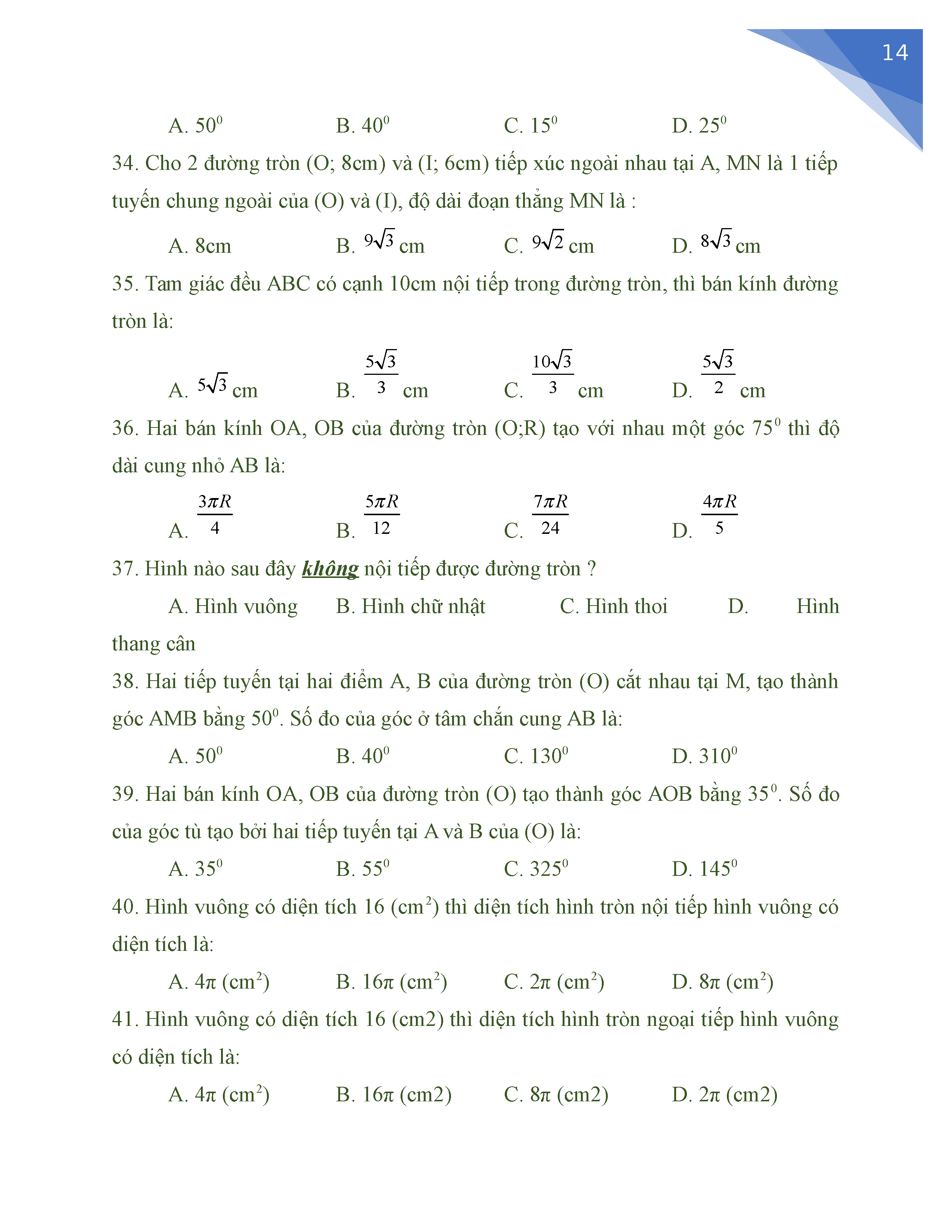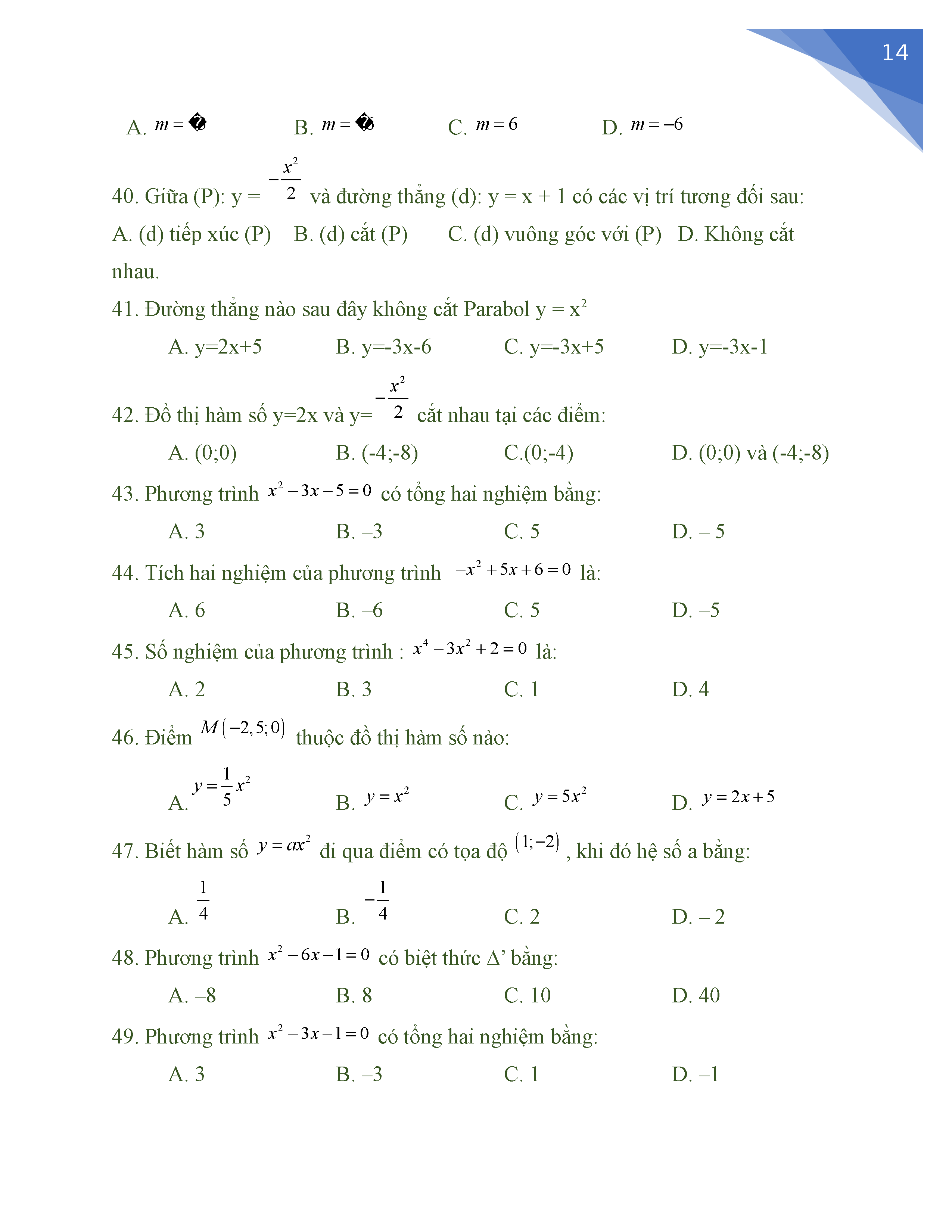283 câu hỏi trắc nghiệm Toán 9 tuyển chọn
