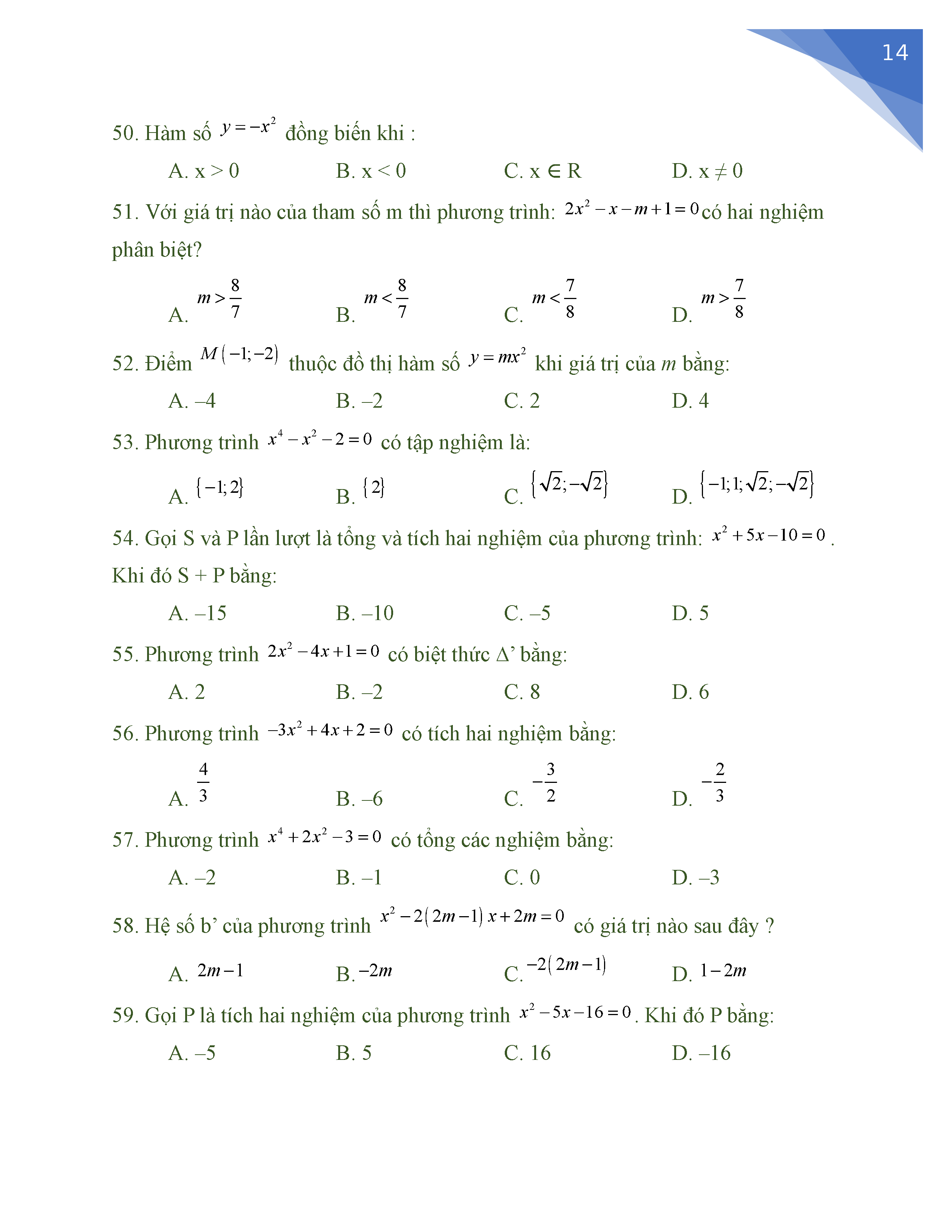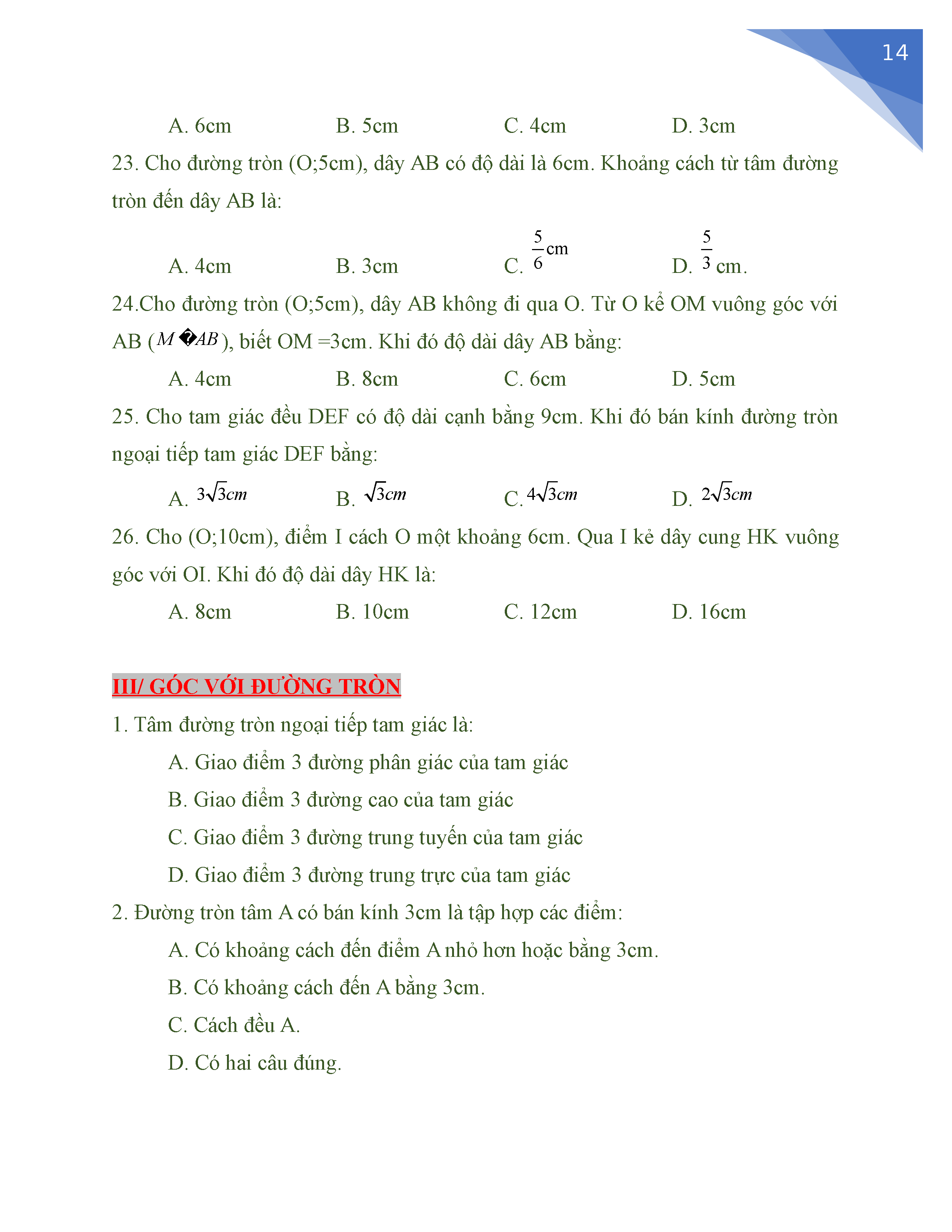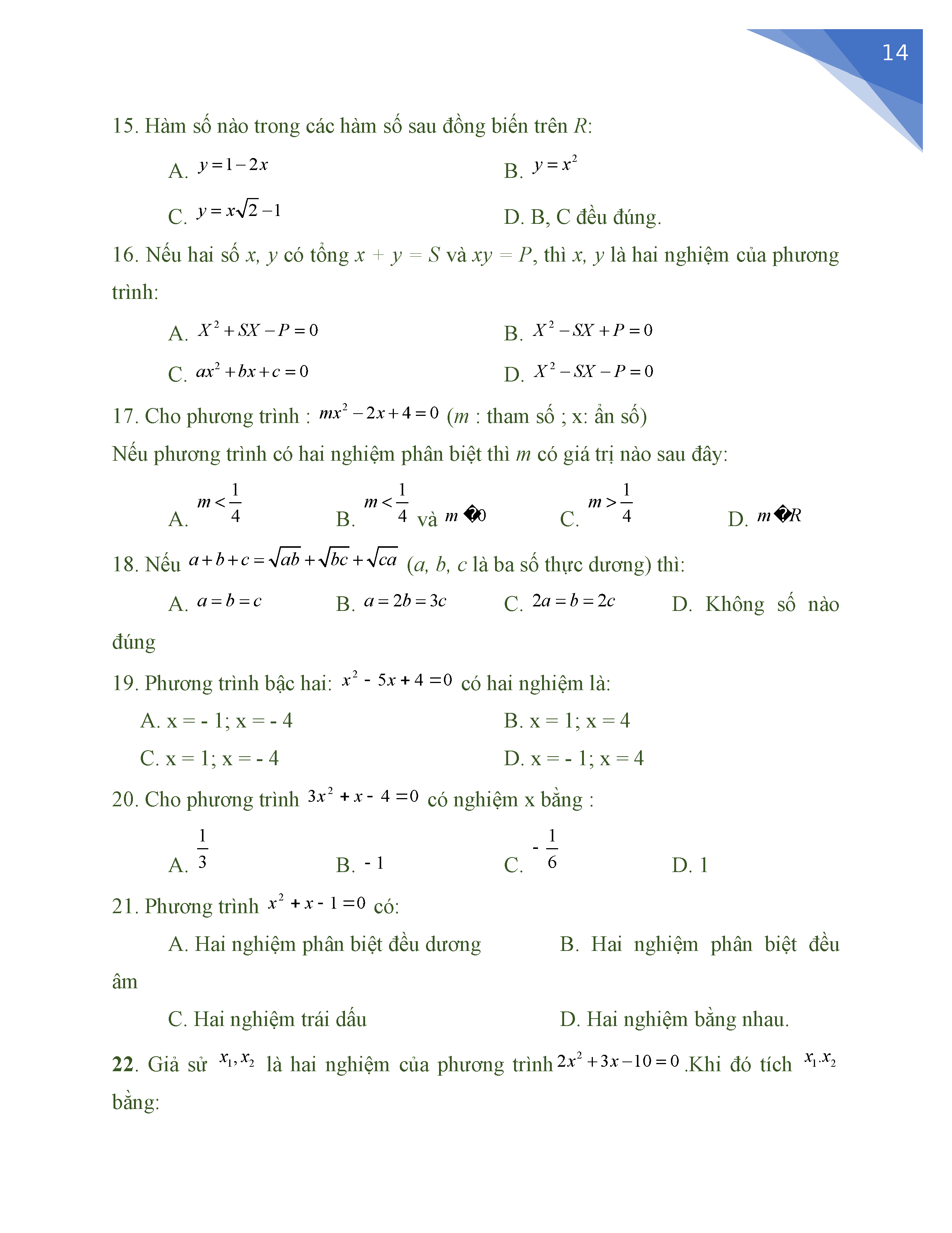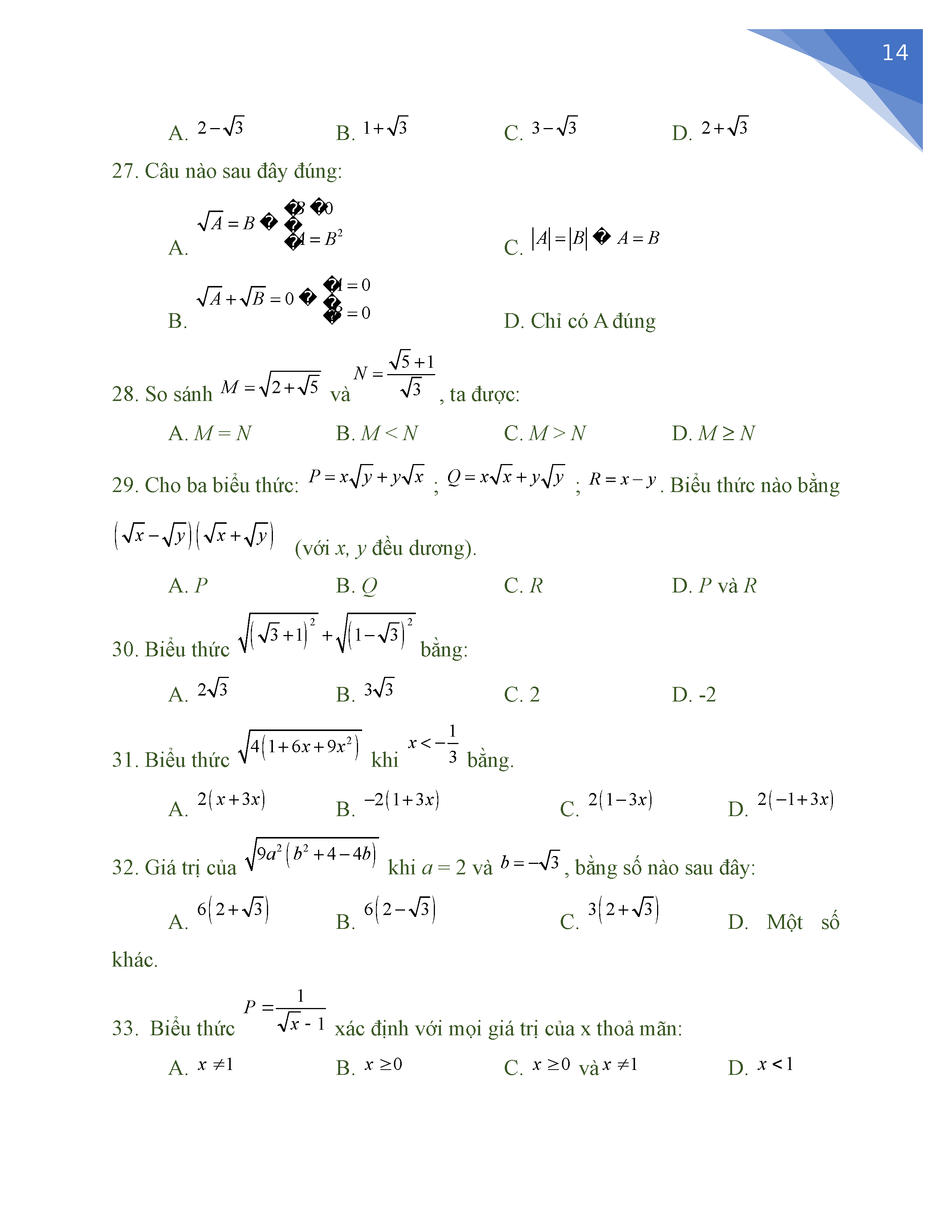 283 câu hỏi trắc nghiệm Toán 9 tuyển chọn