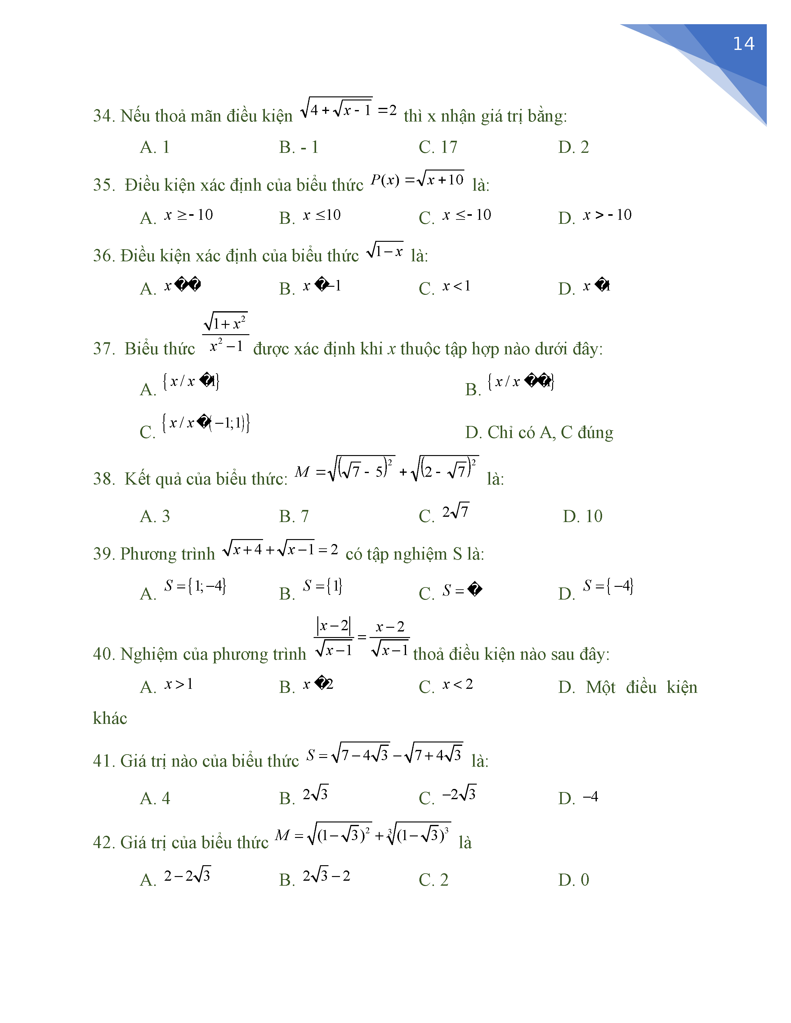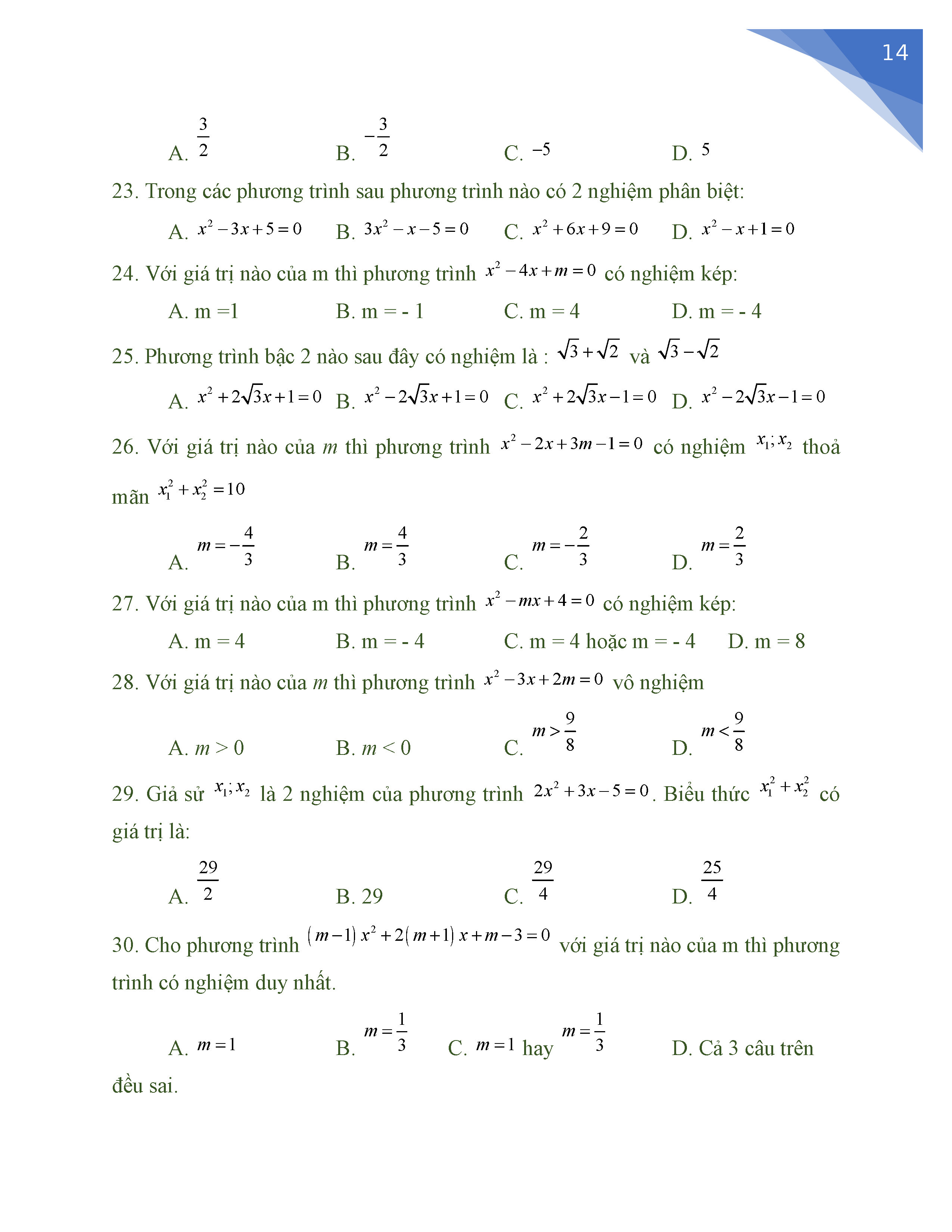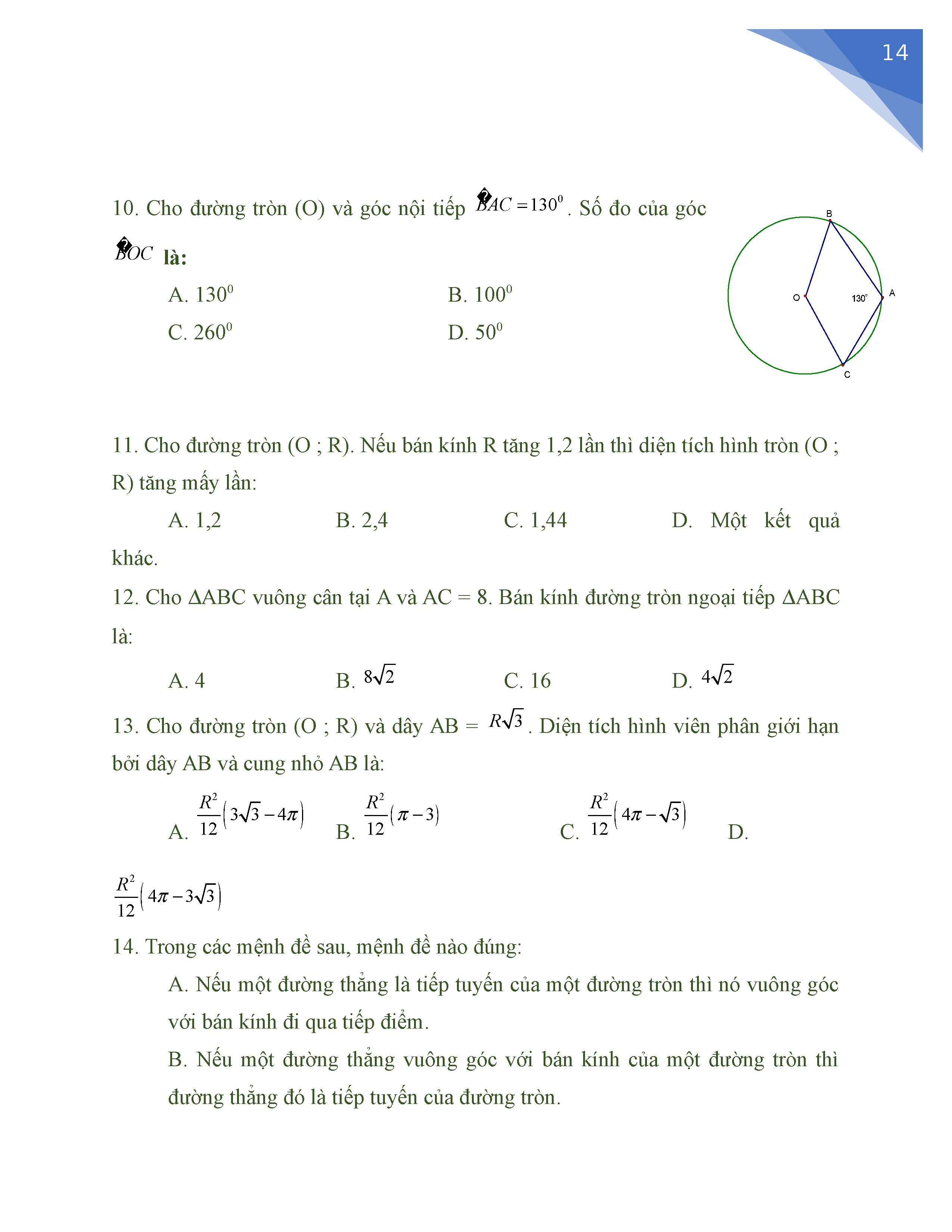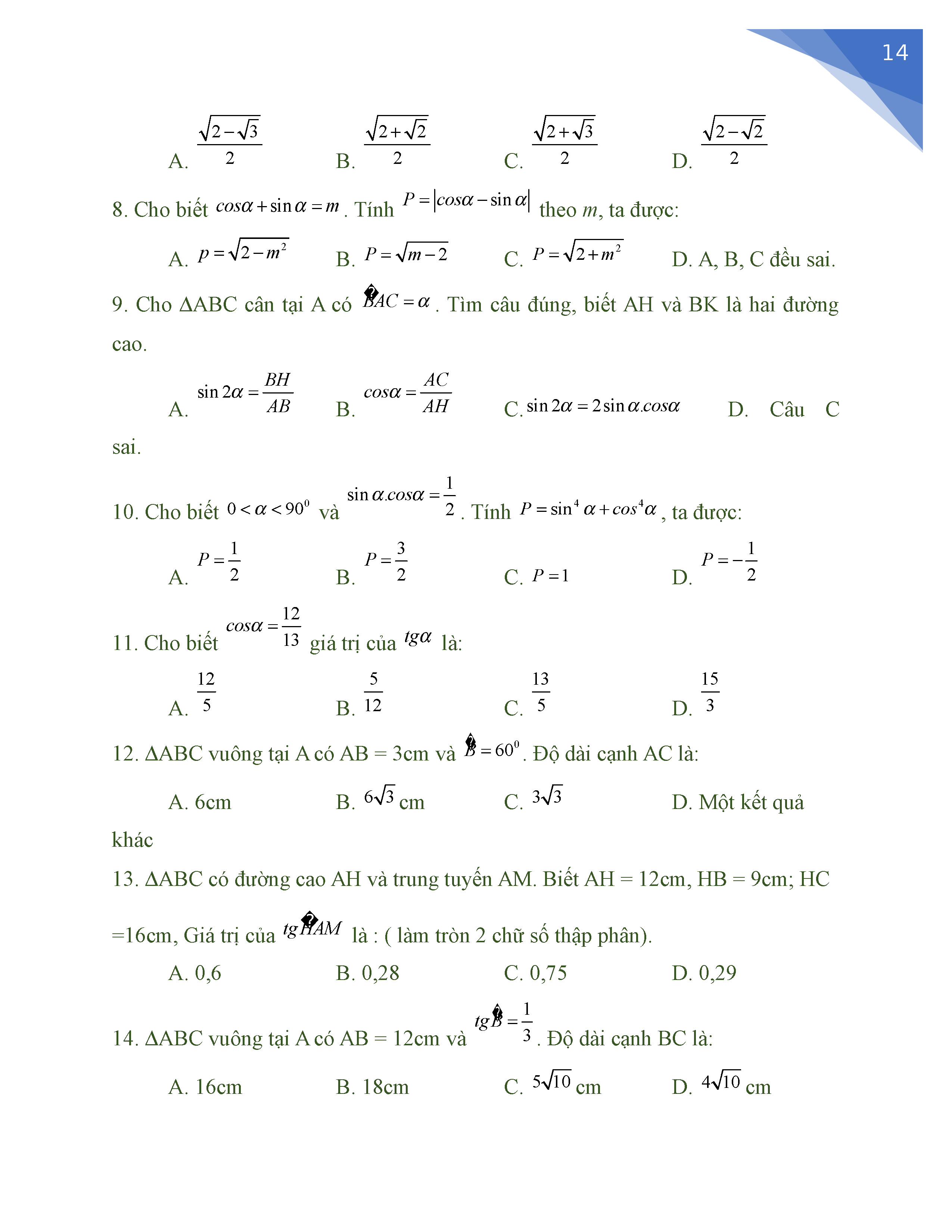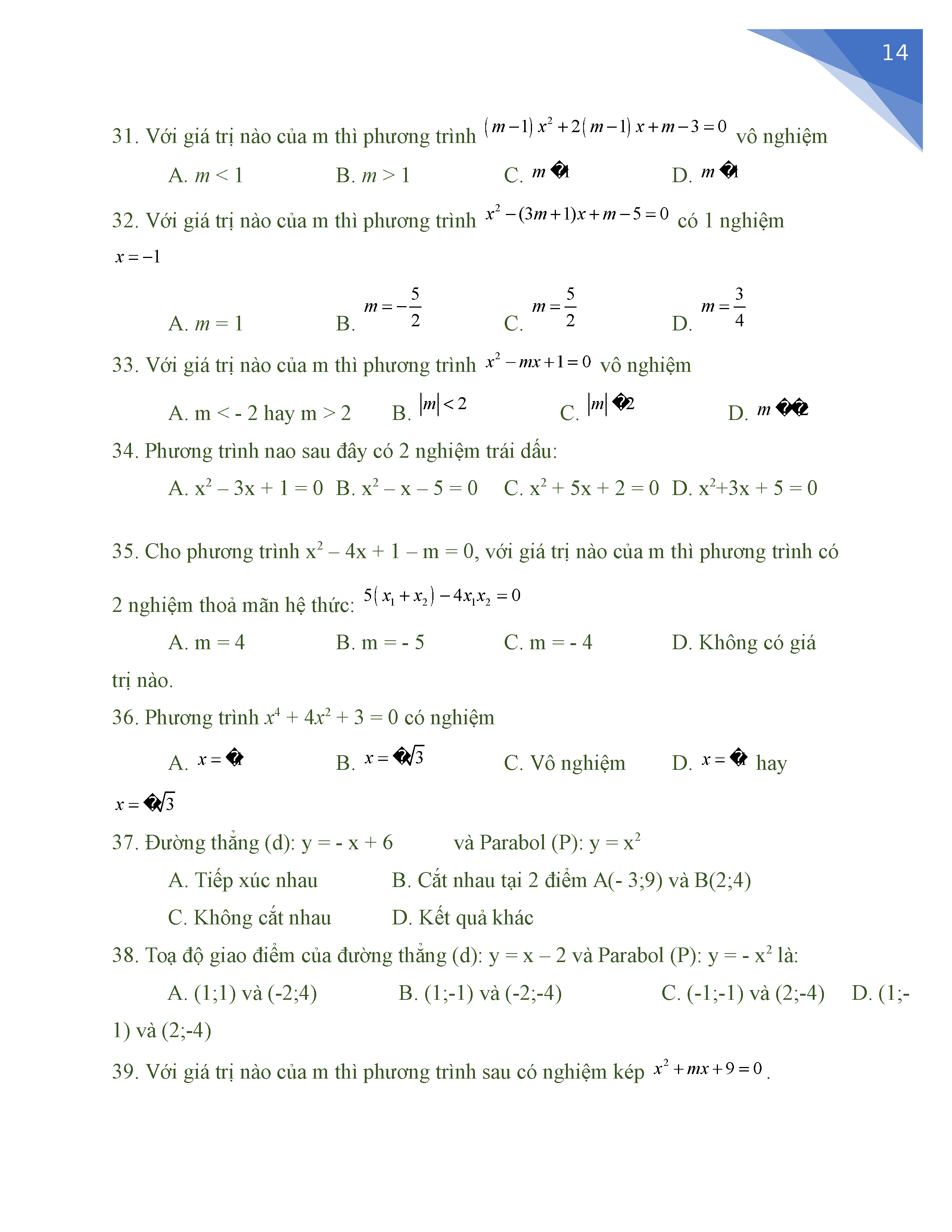 283 câu hỏi trắc nghiệm Toán 9 tuyển chọn