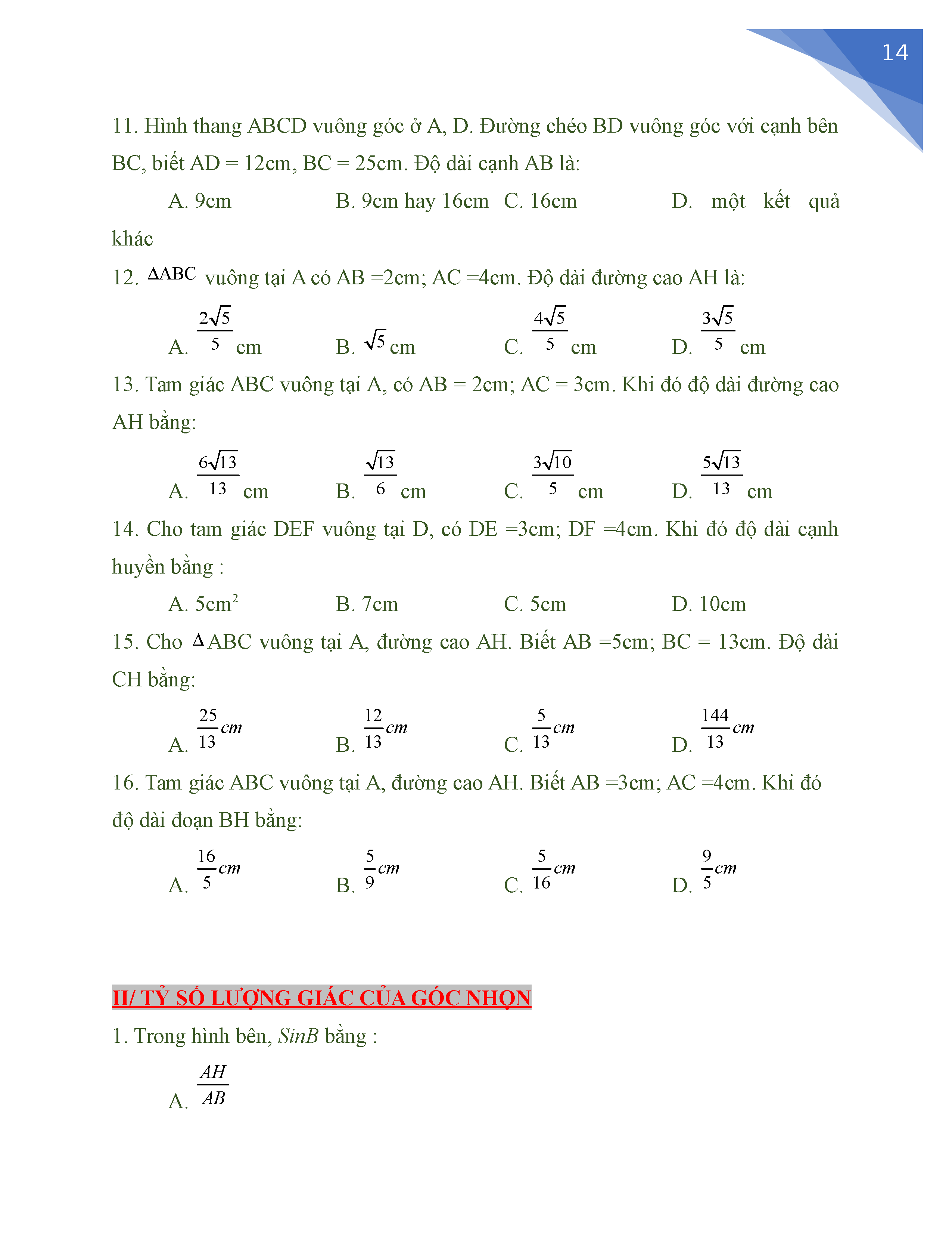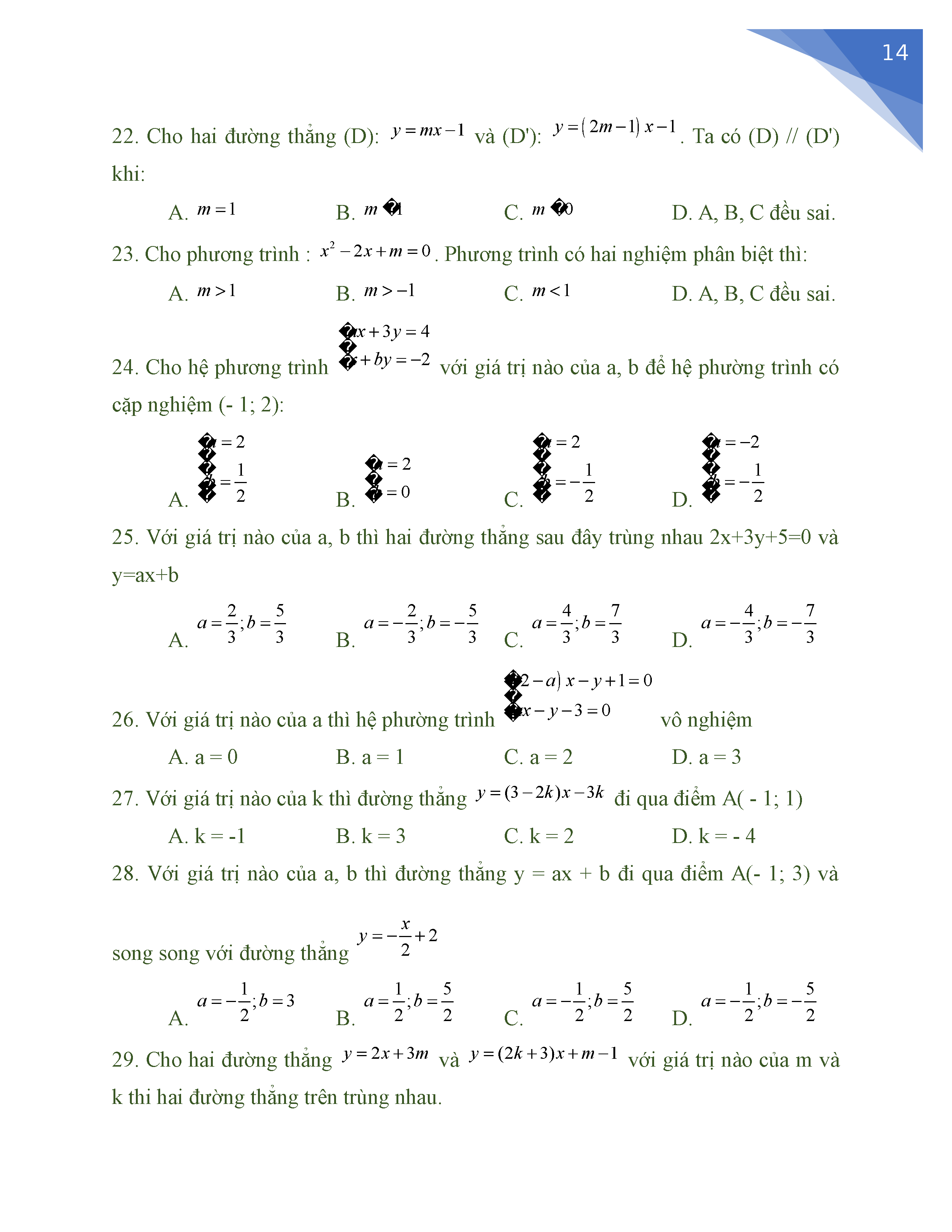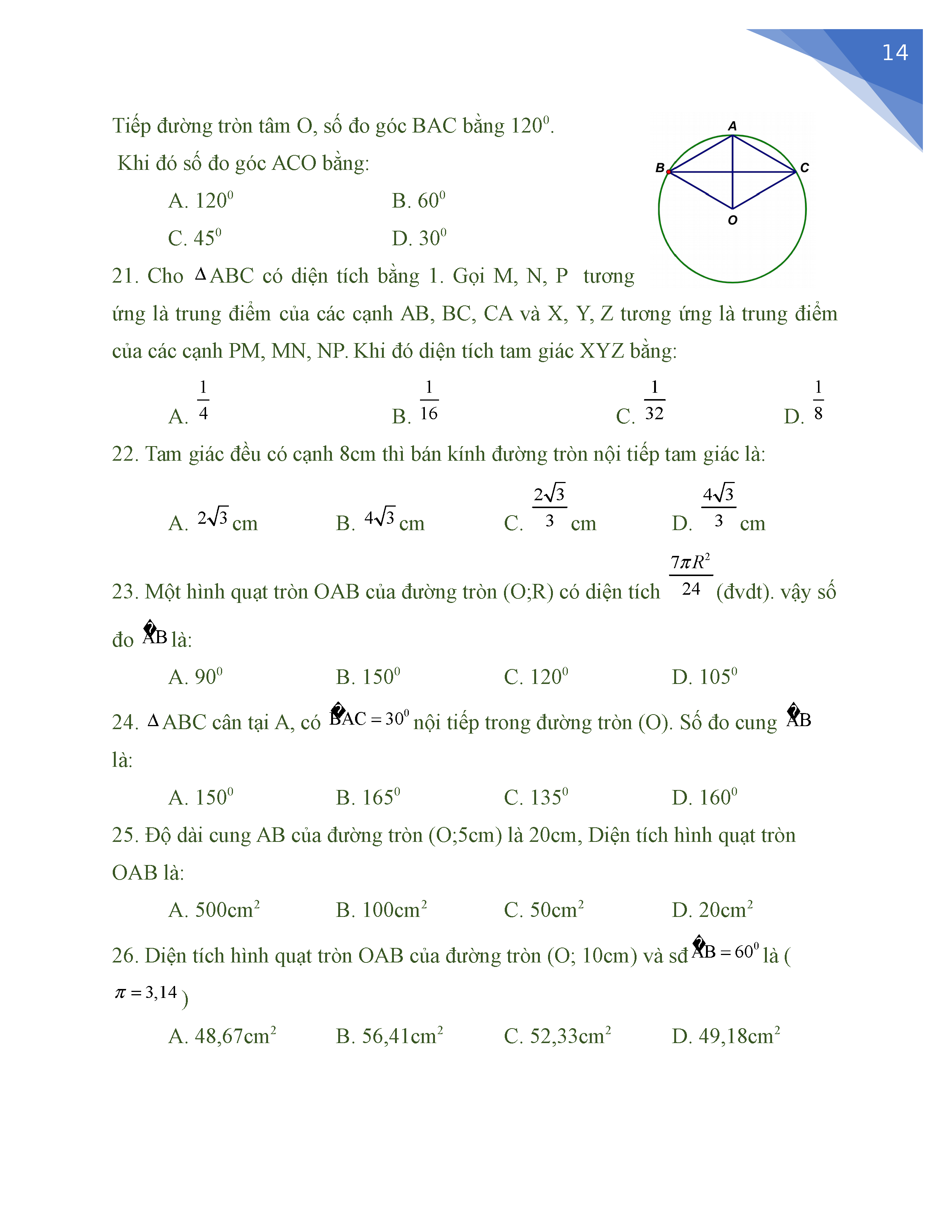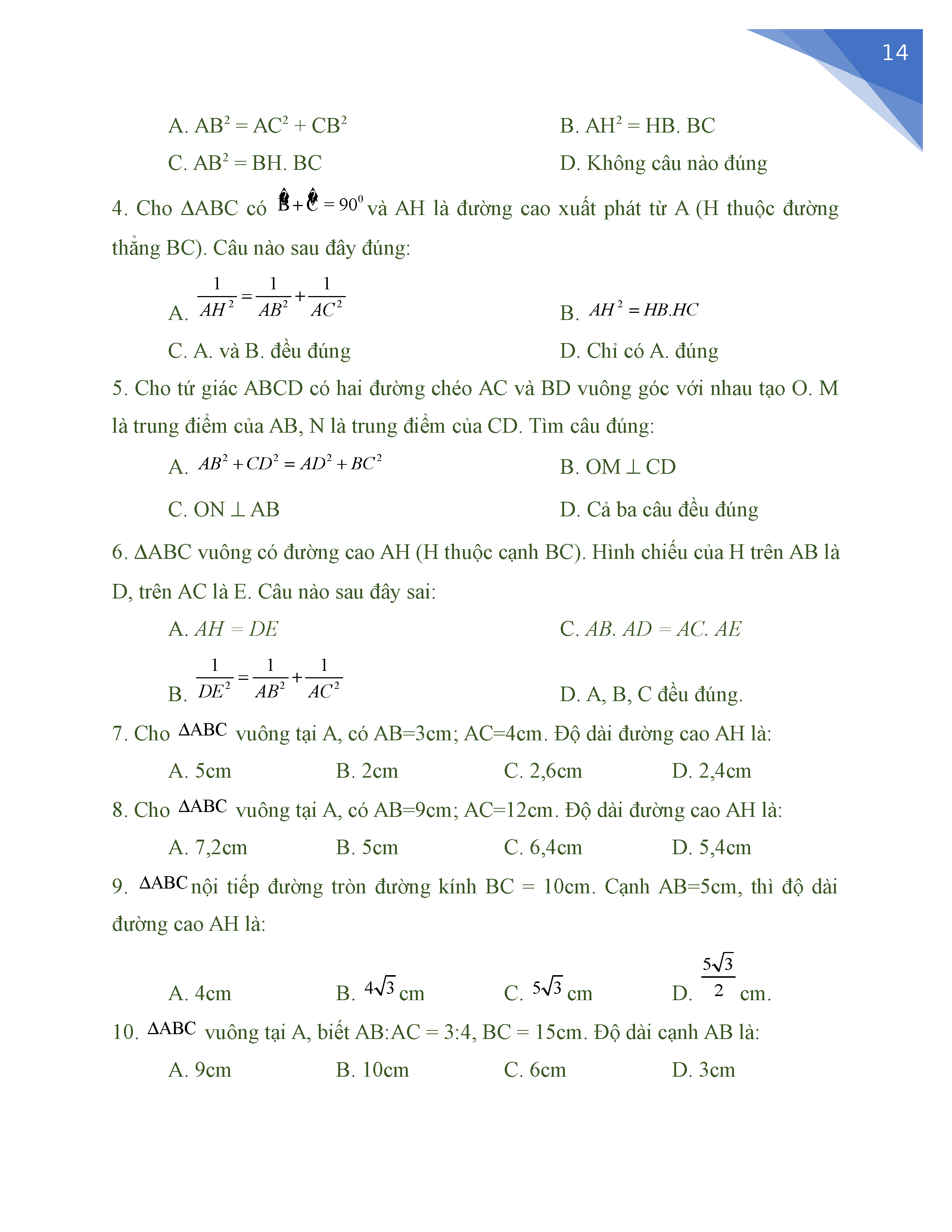 283 câu hỏi trắc nghiệm Toán 9 tuyển chọn