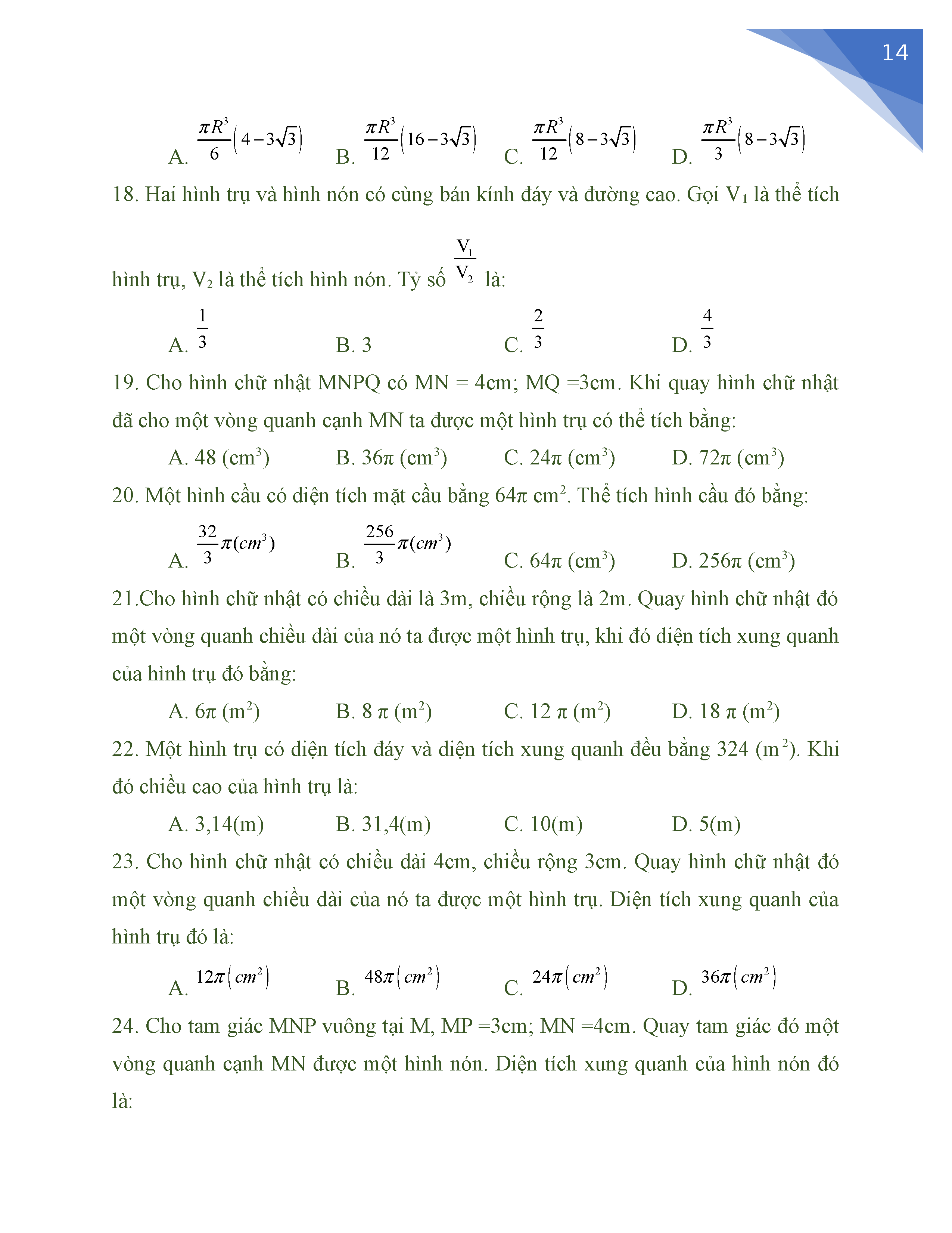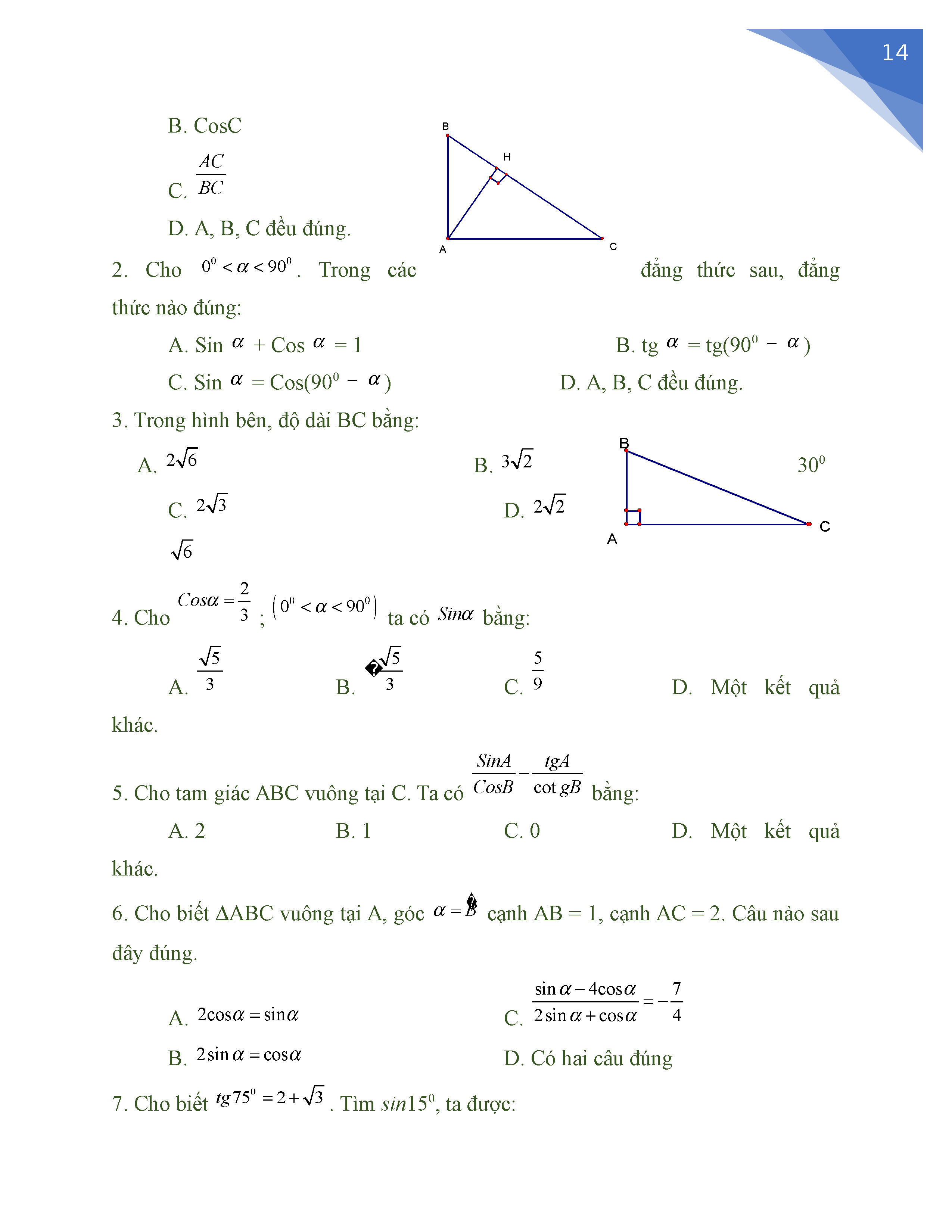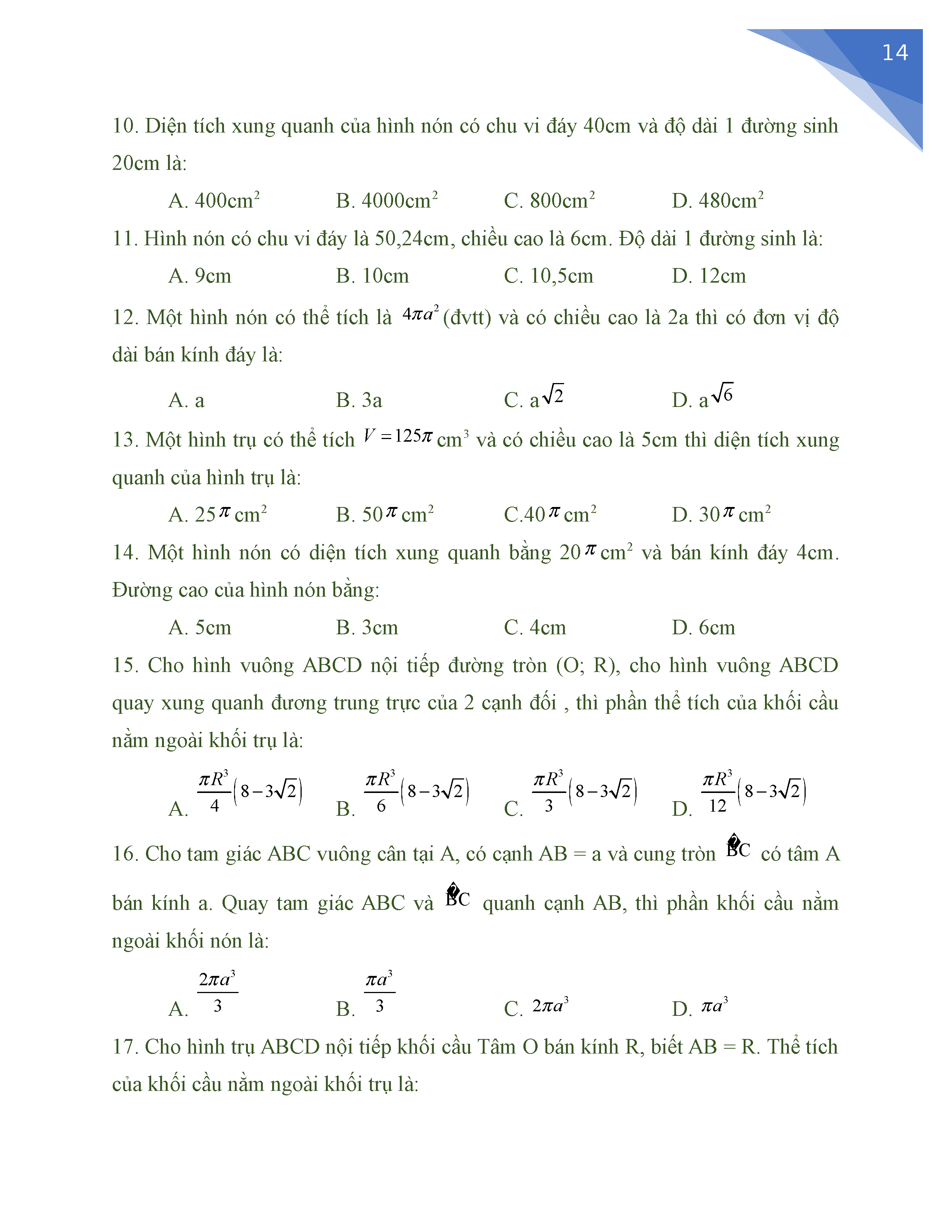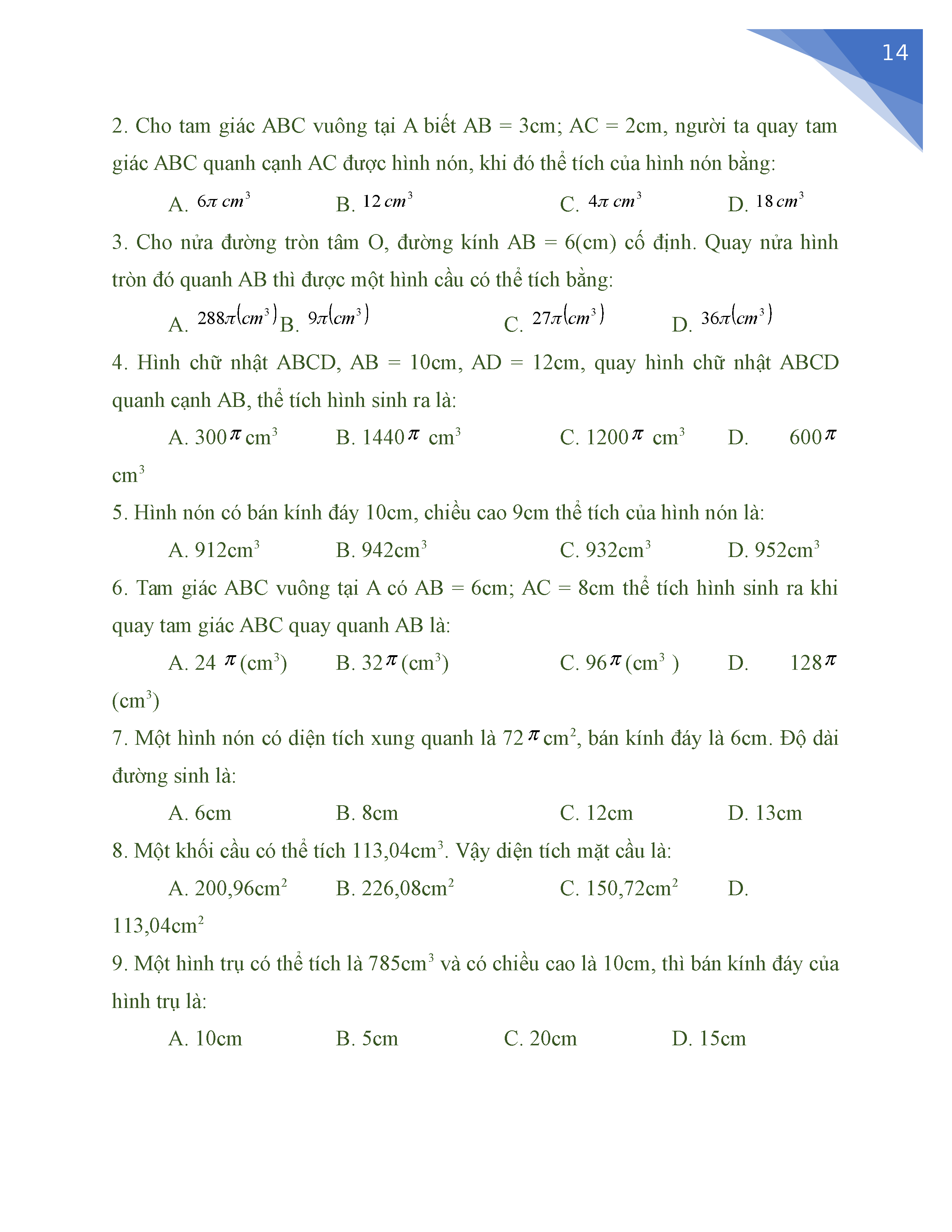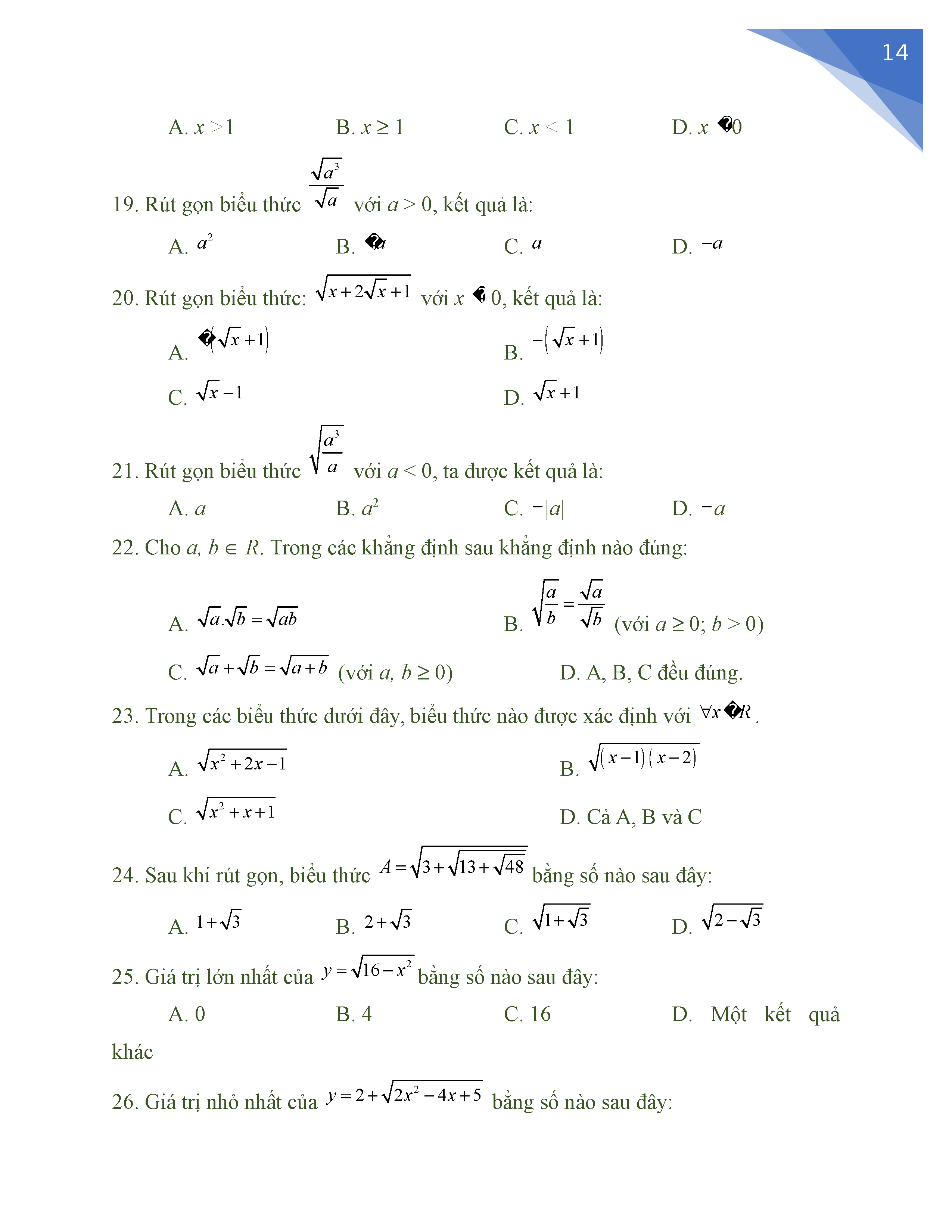 283 câu hỏi trắc nghiệm Toán 9 tuyển chọn