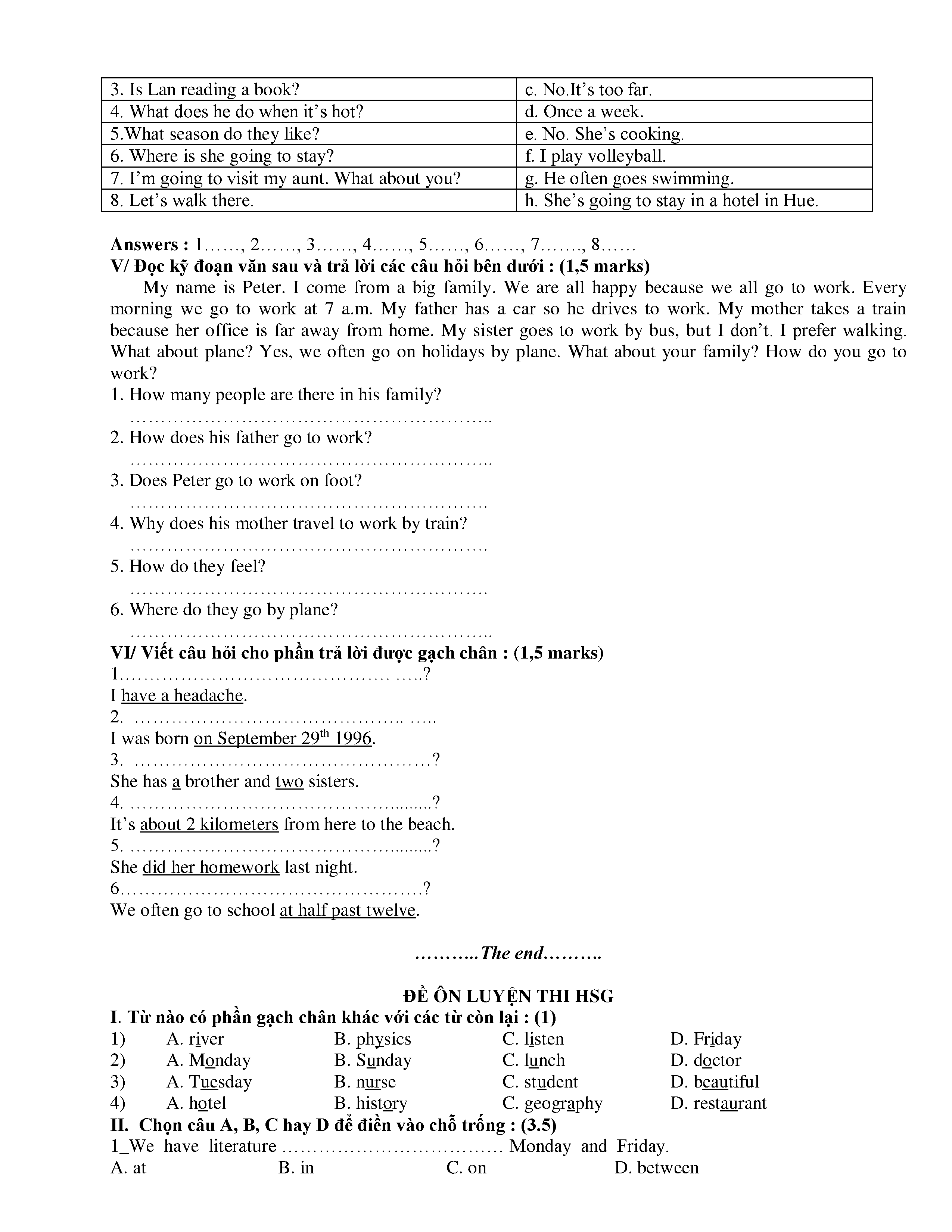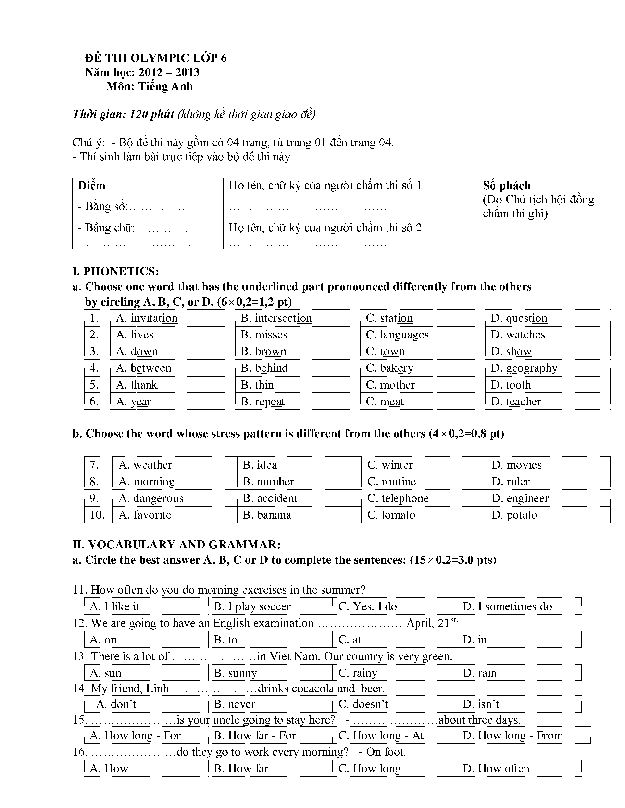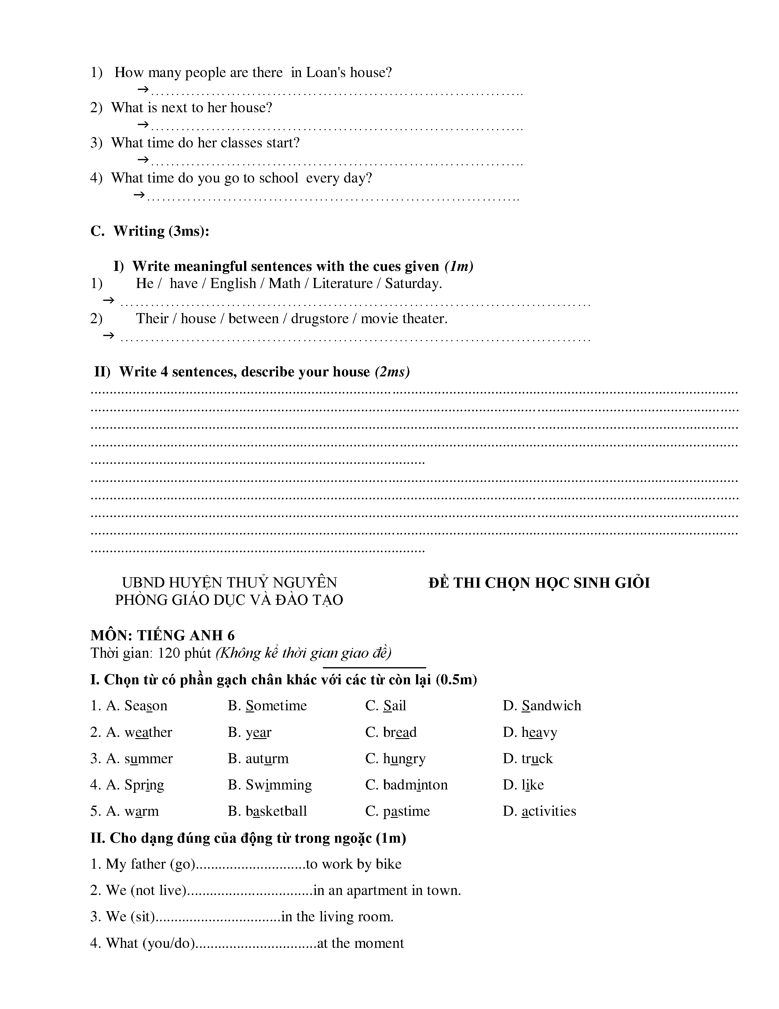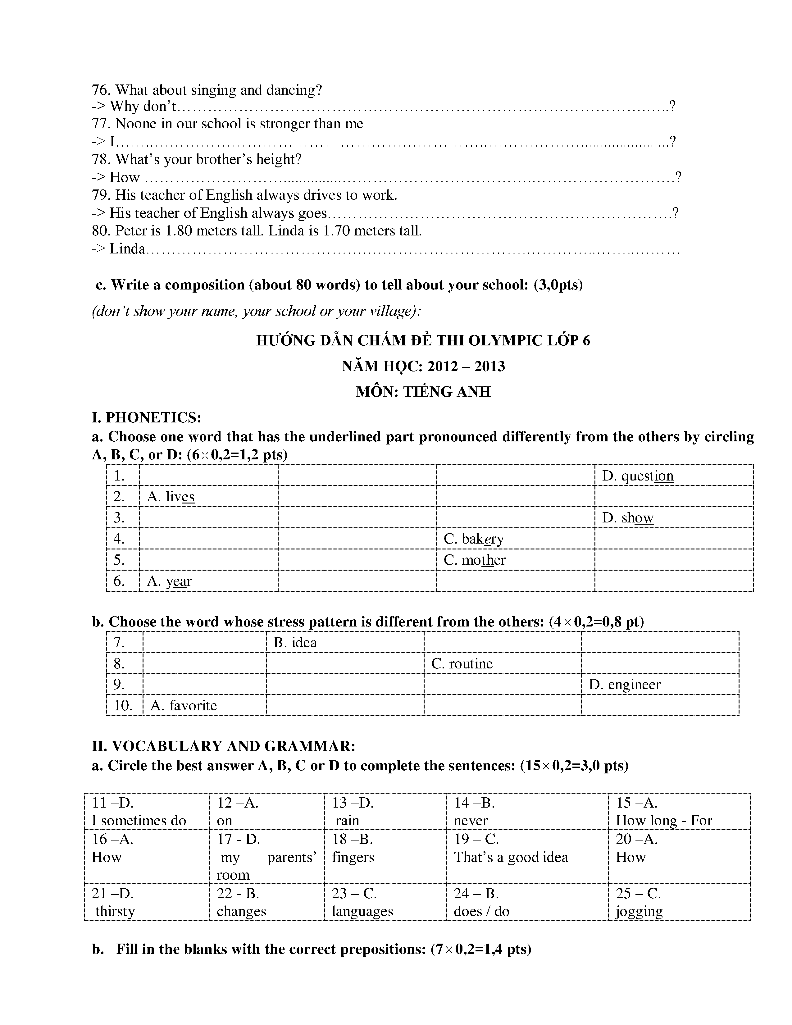 150 ĐỀ THI HSG TIẾNG ANH LỚP 6 (CÓ ĐÁP ÁN)