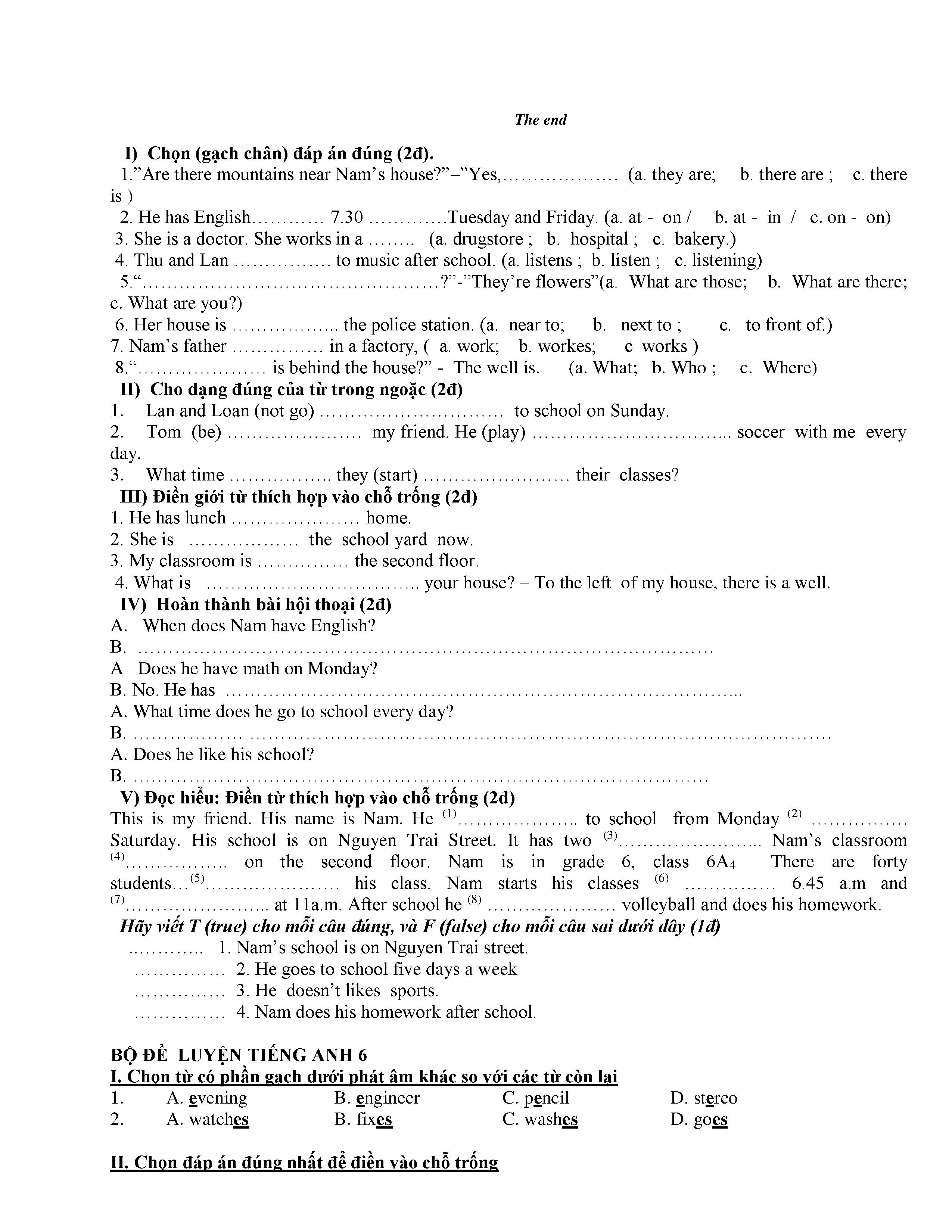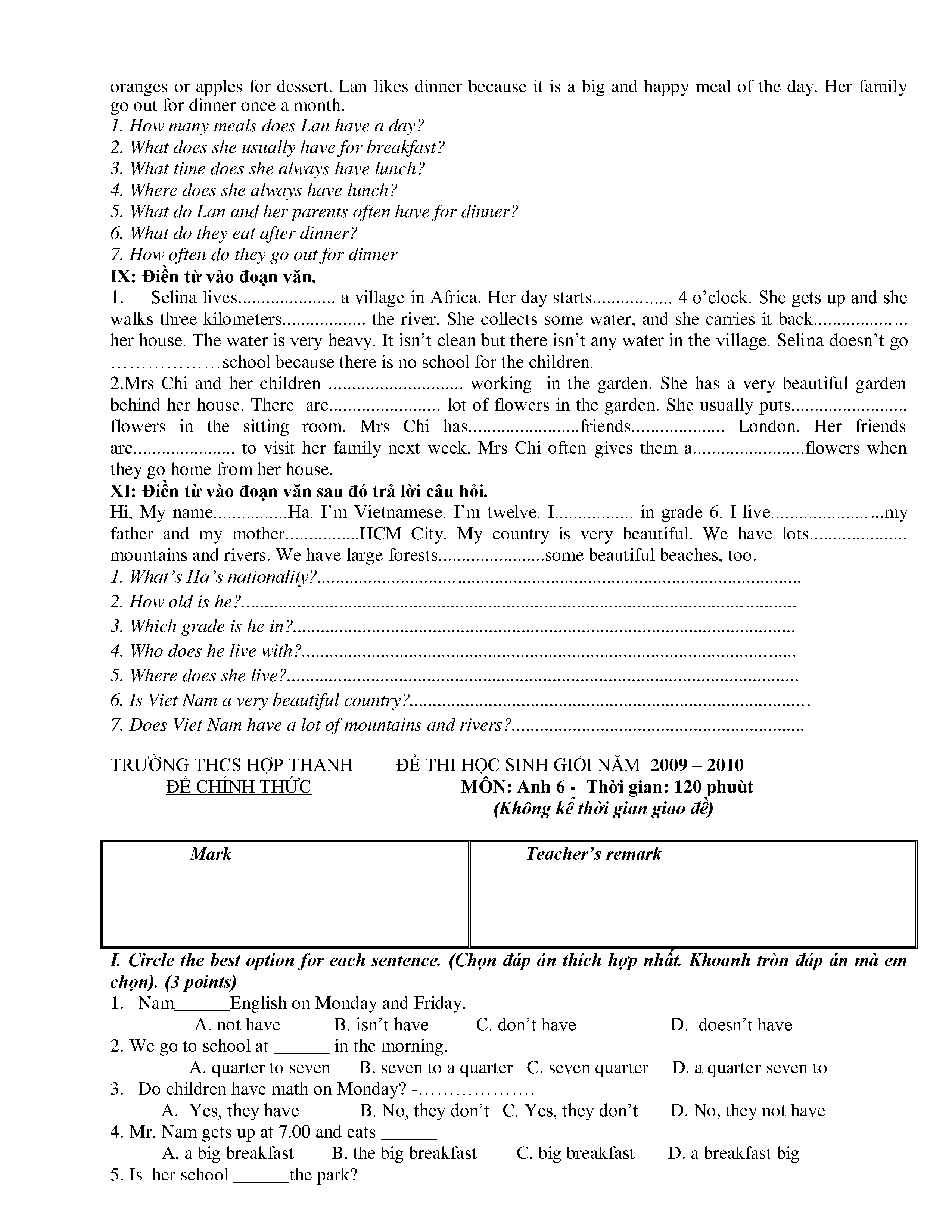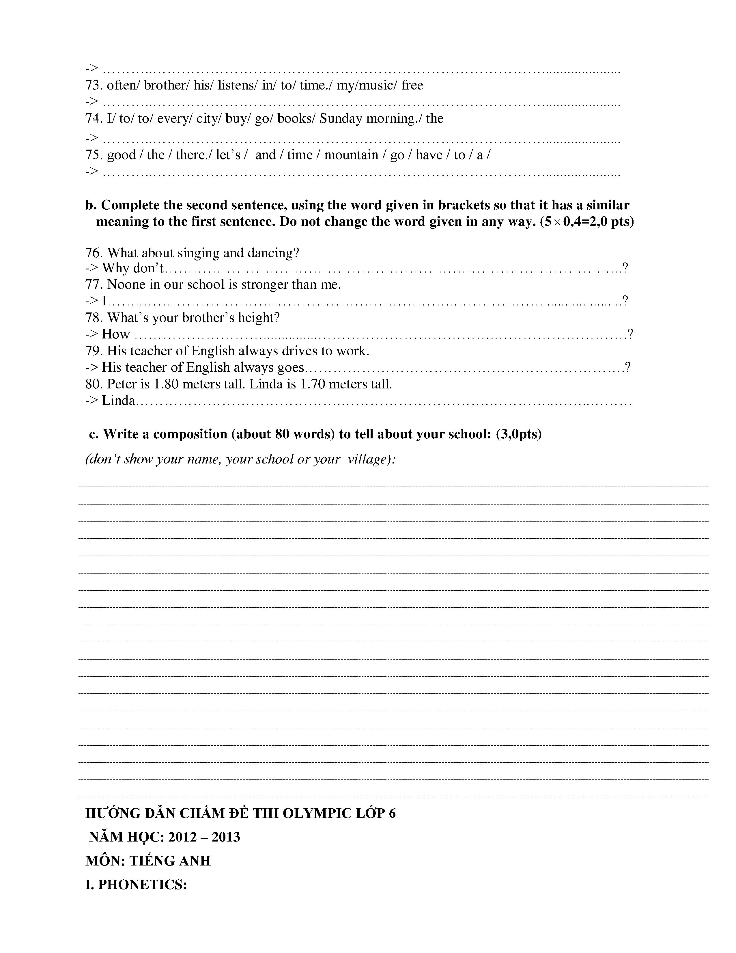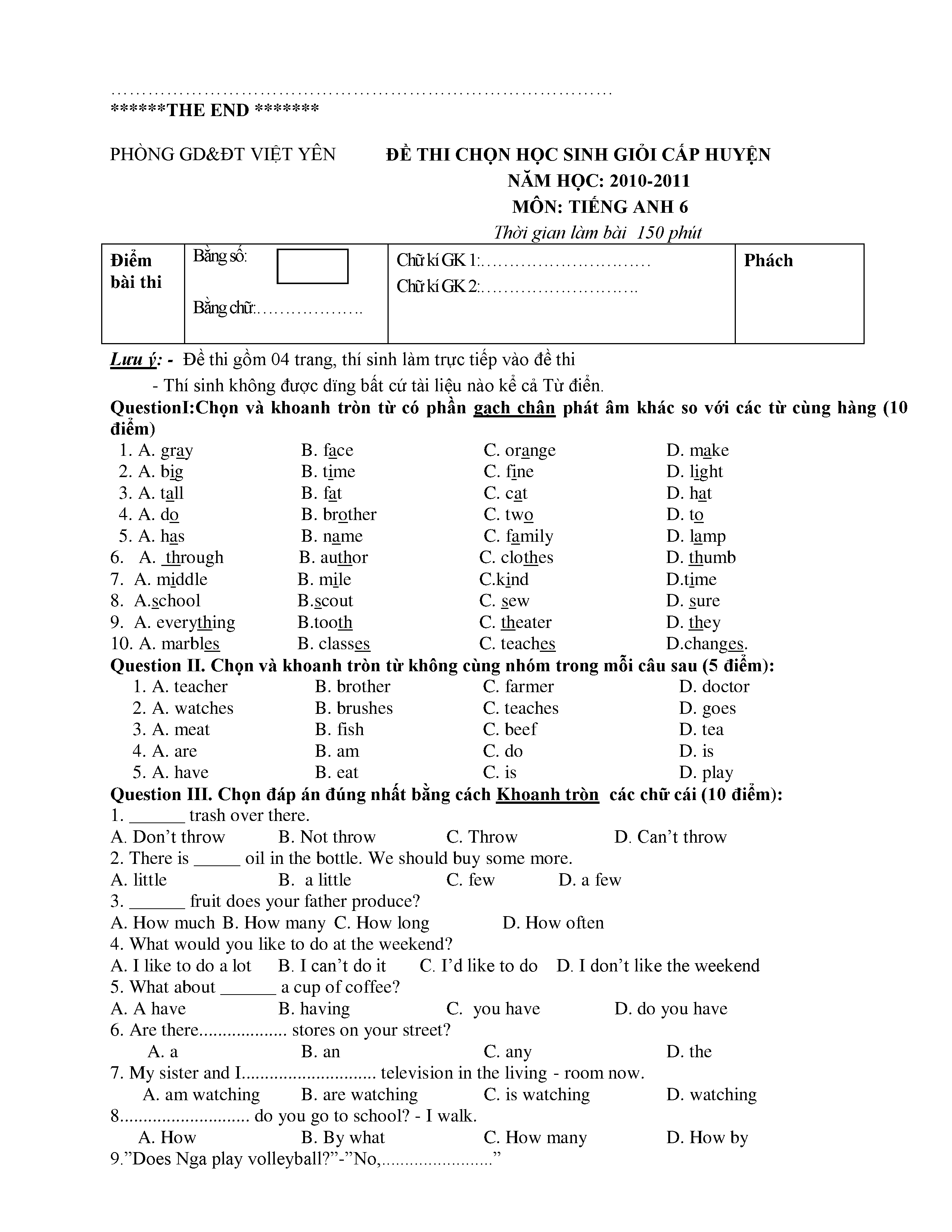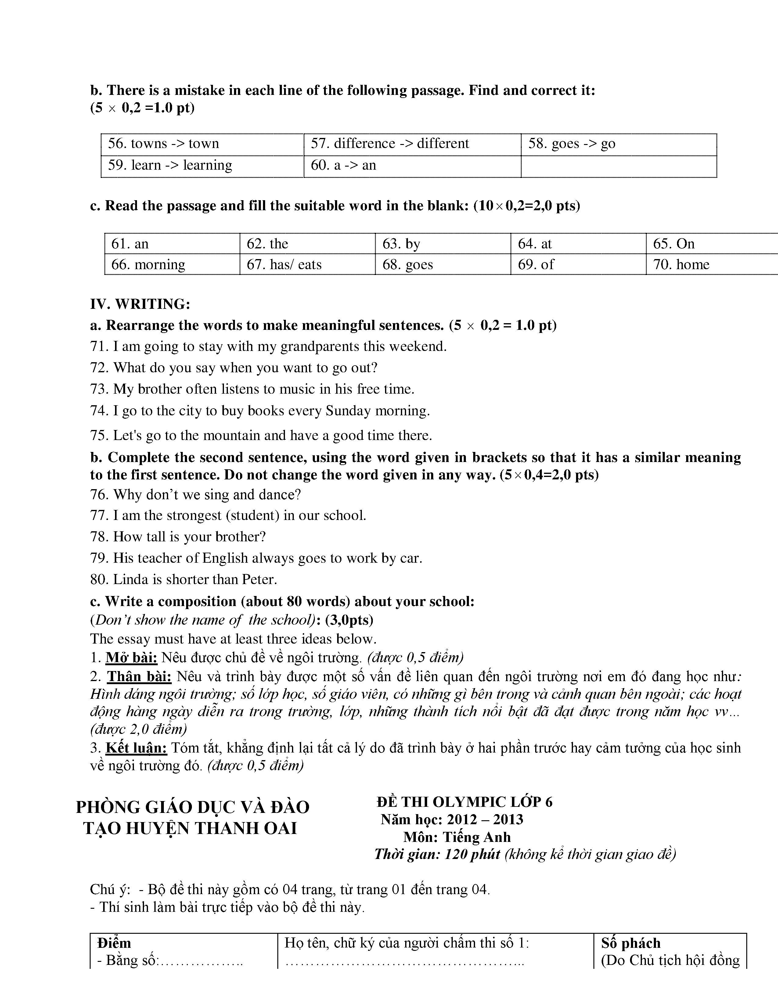 150 ĐỀ THI HSG TIẾNG ANH LỚP 6 (CÓ ĐÁP ÁN)