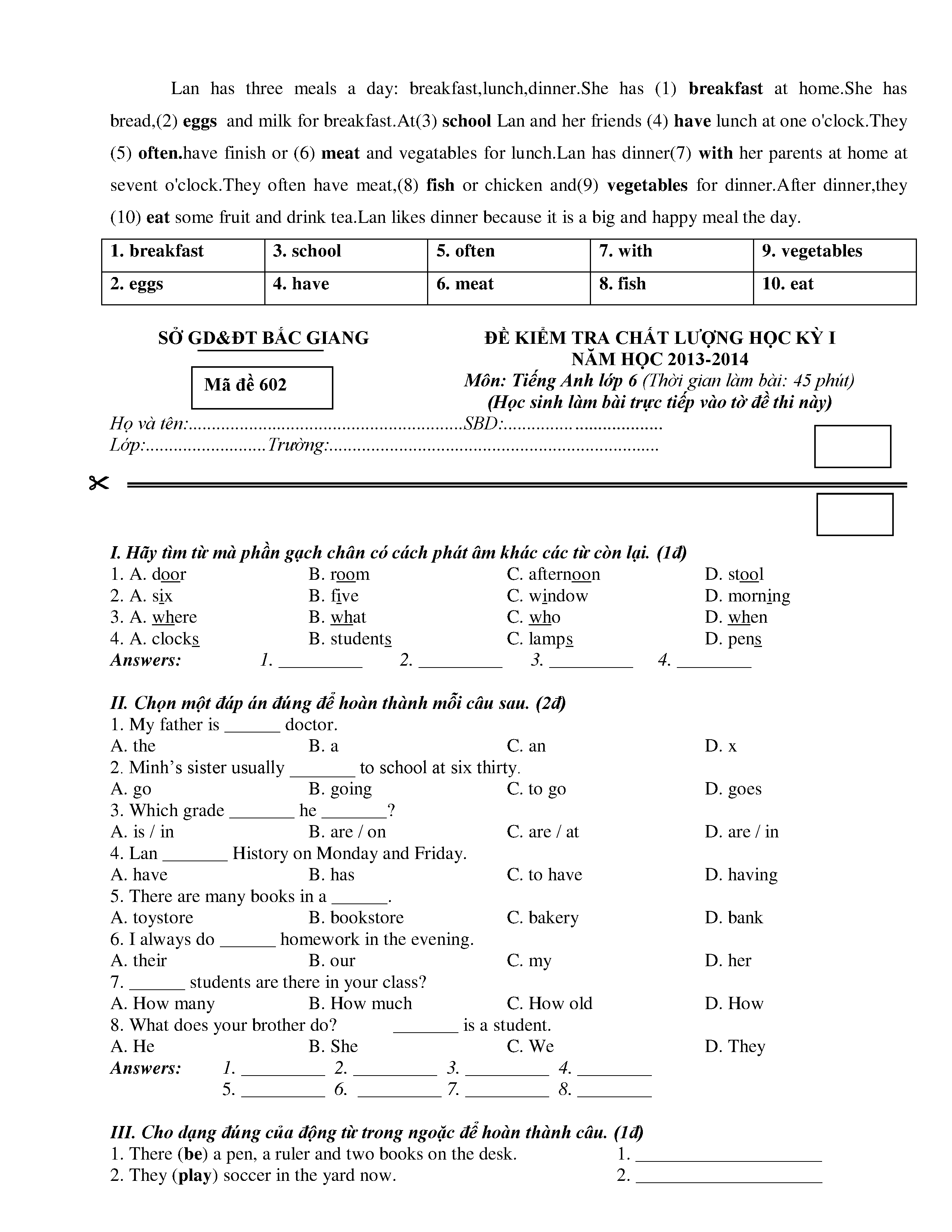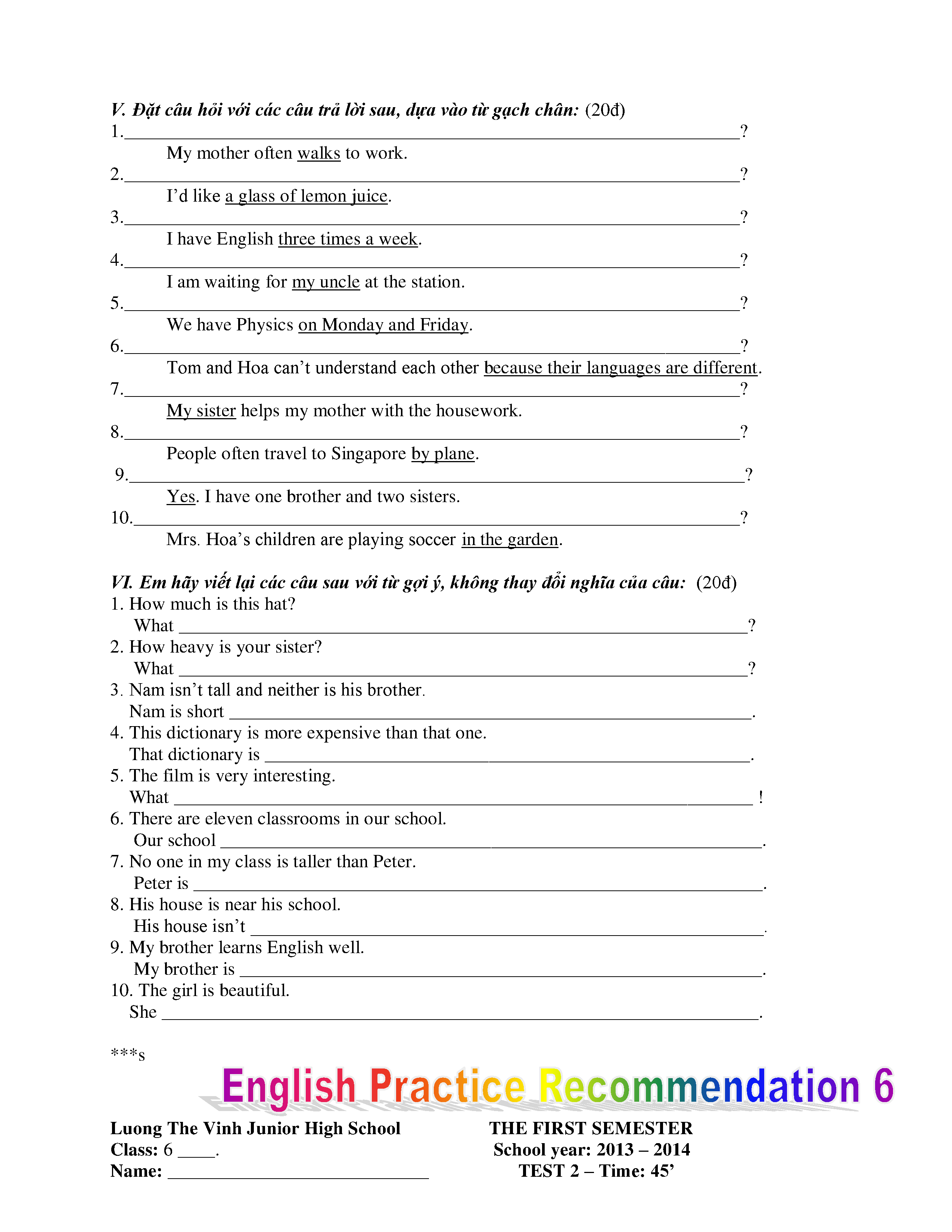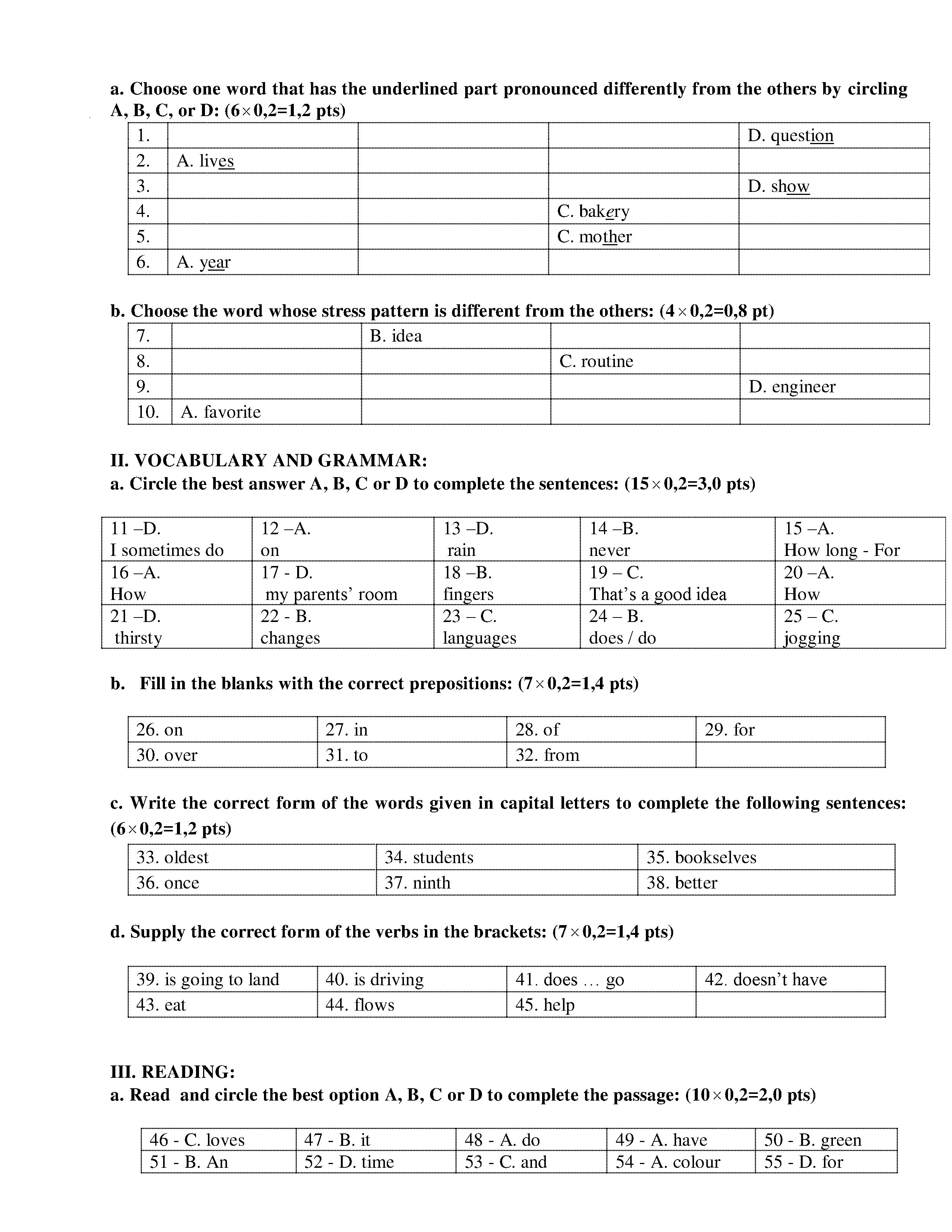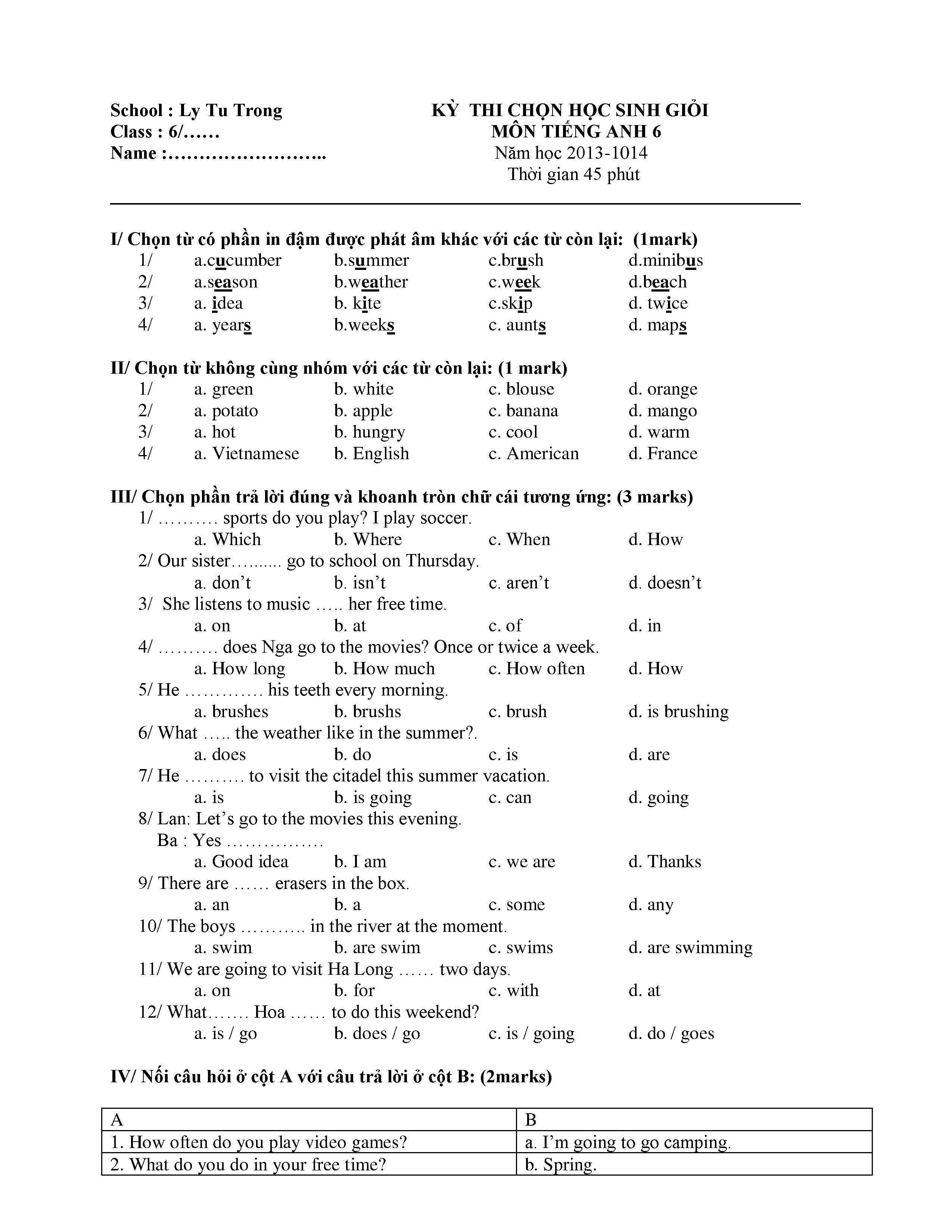 150 ĐỀ THI HSG TIẾNG ANH LỚP 6 (CÓ ĐÁP ÁN)