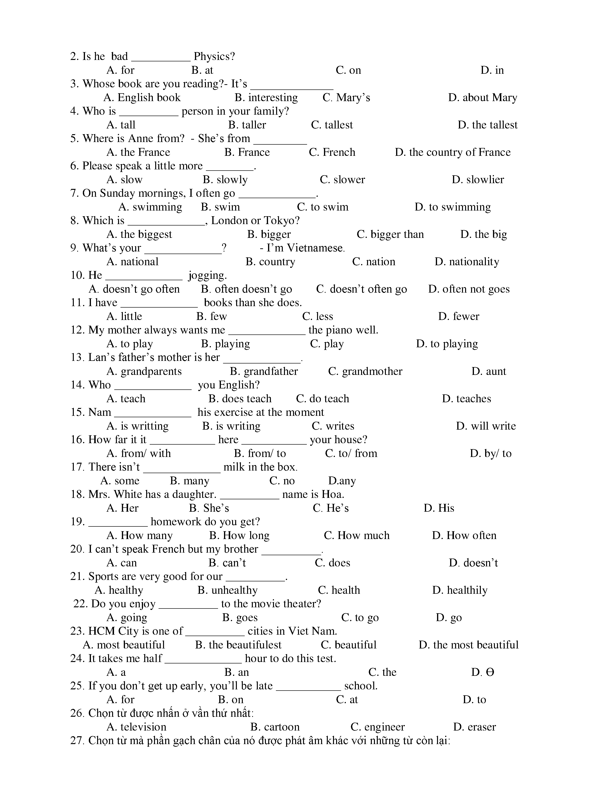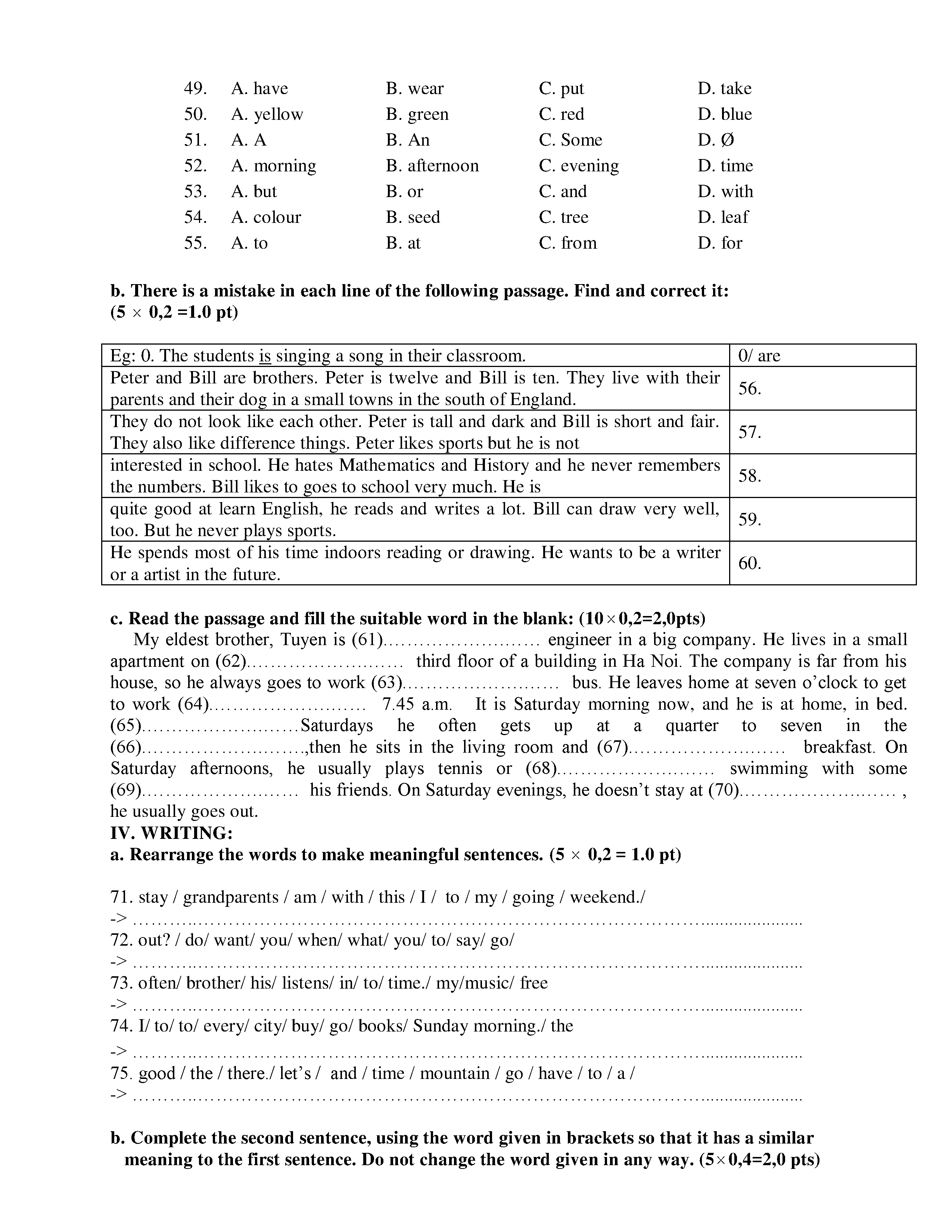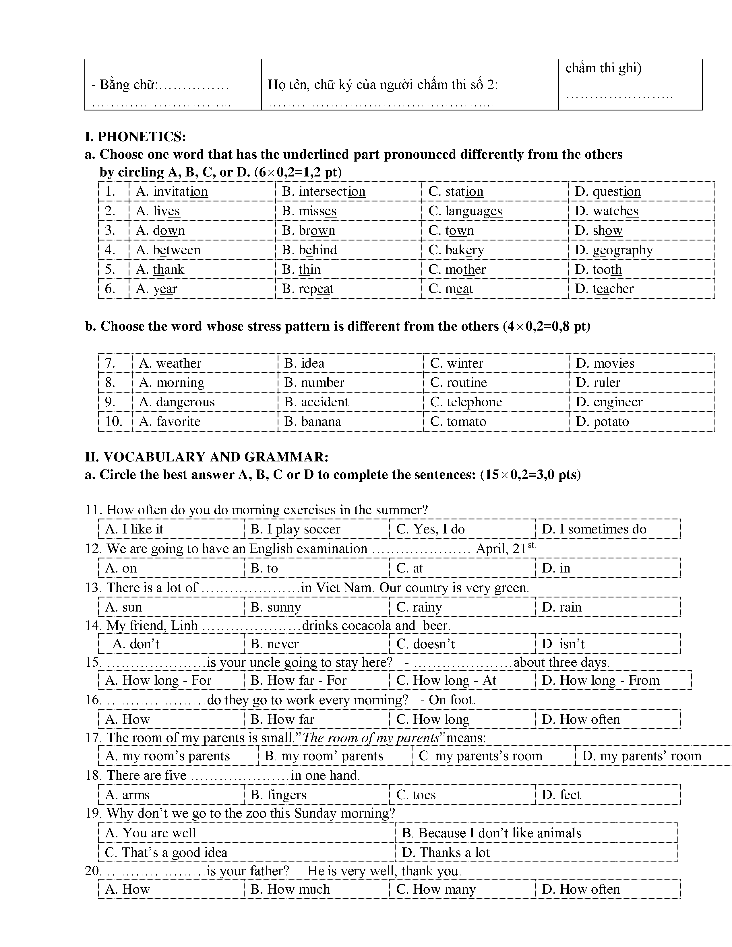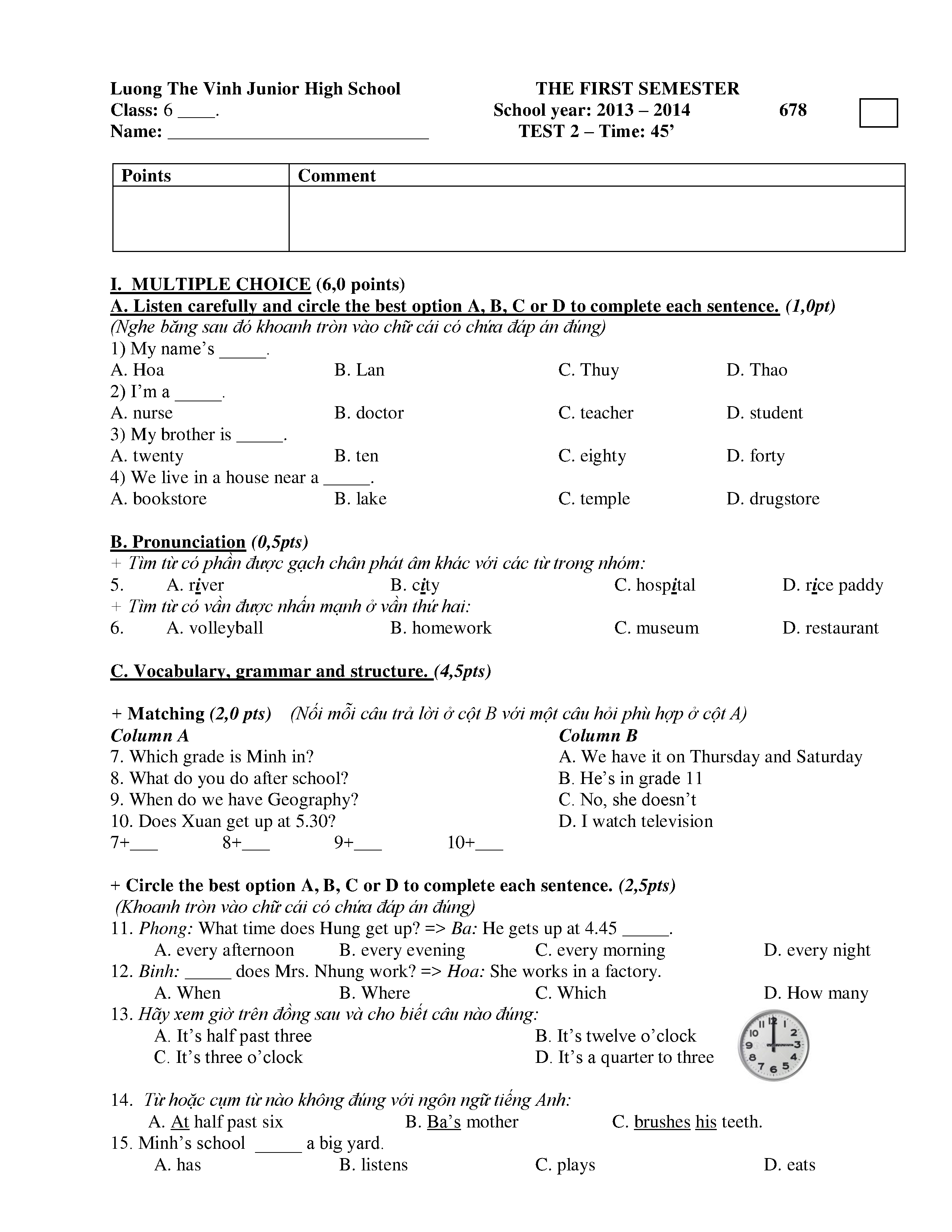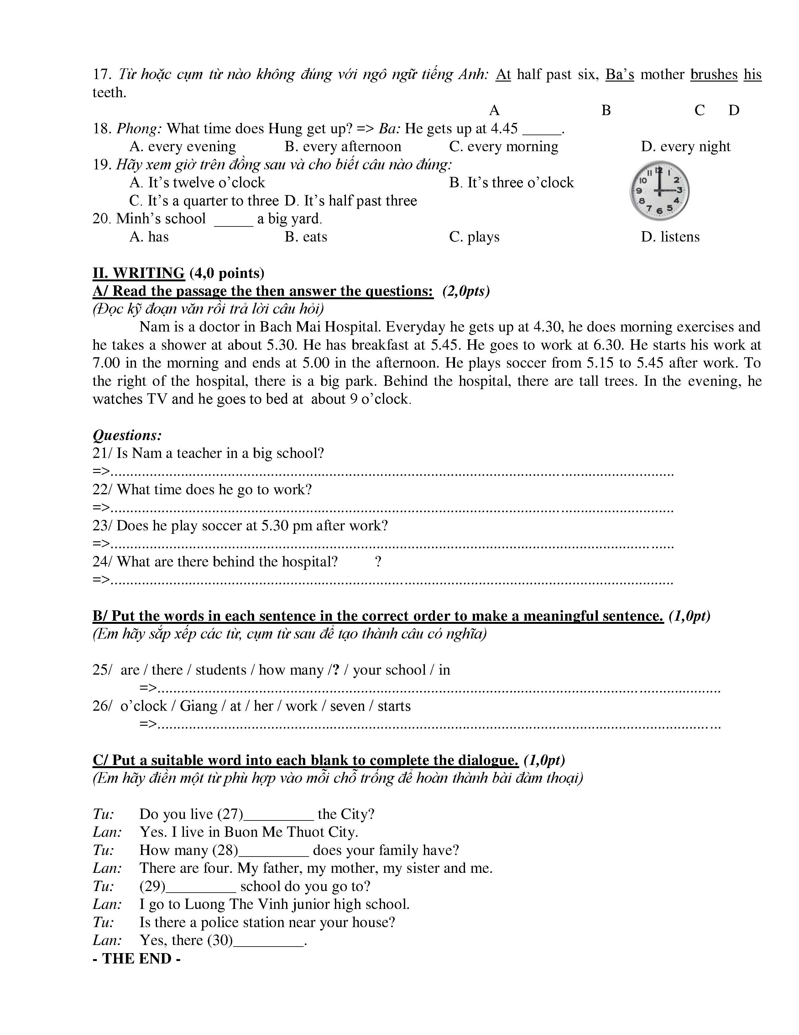 150 ĐỀ THI HSG TIẾNG ANH LỚP 6 (CÓ ĐÁP ÁN)