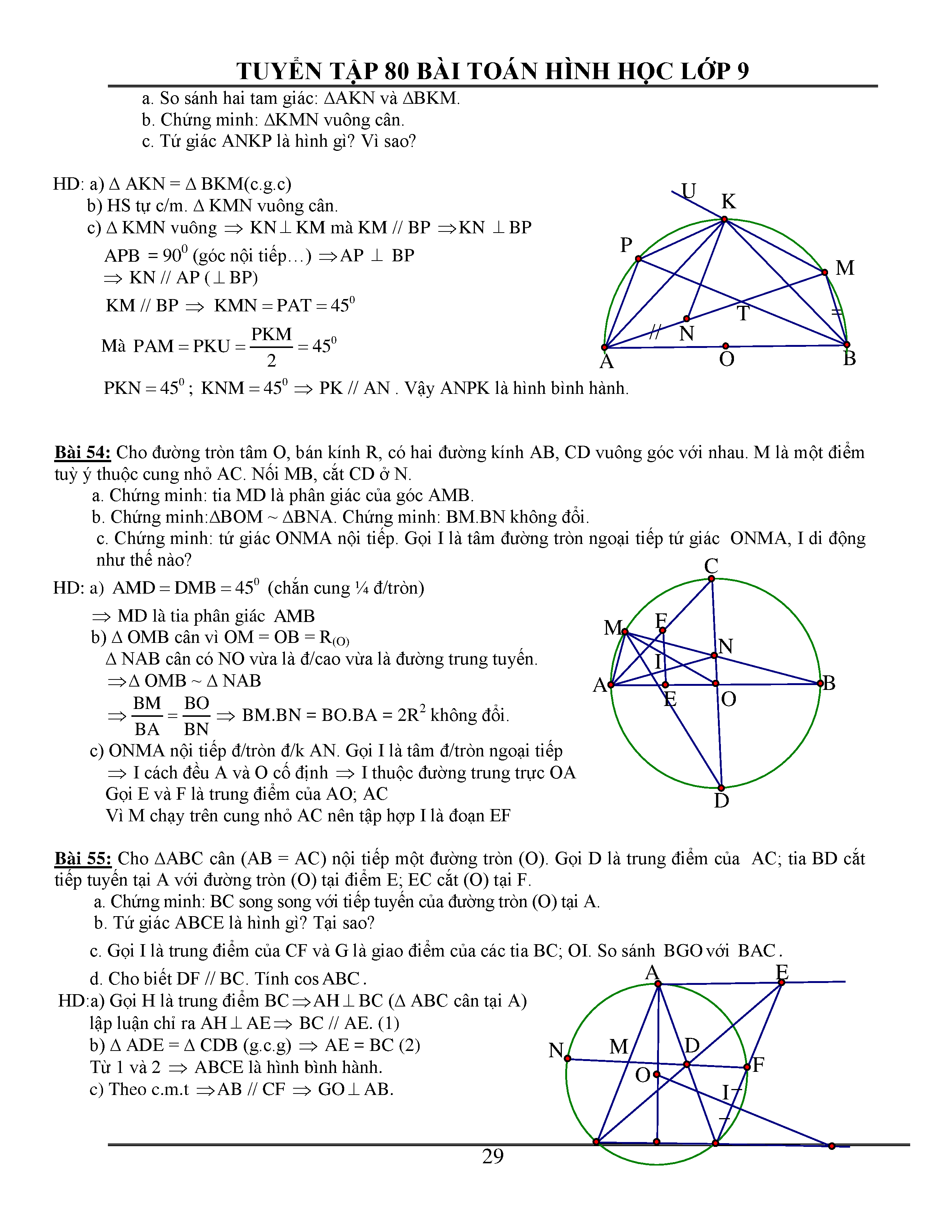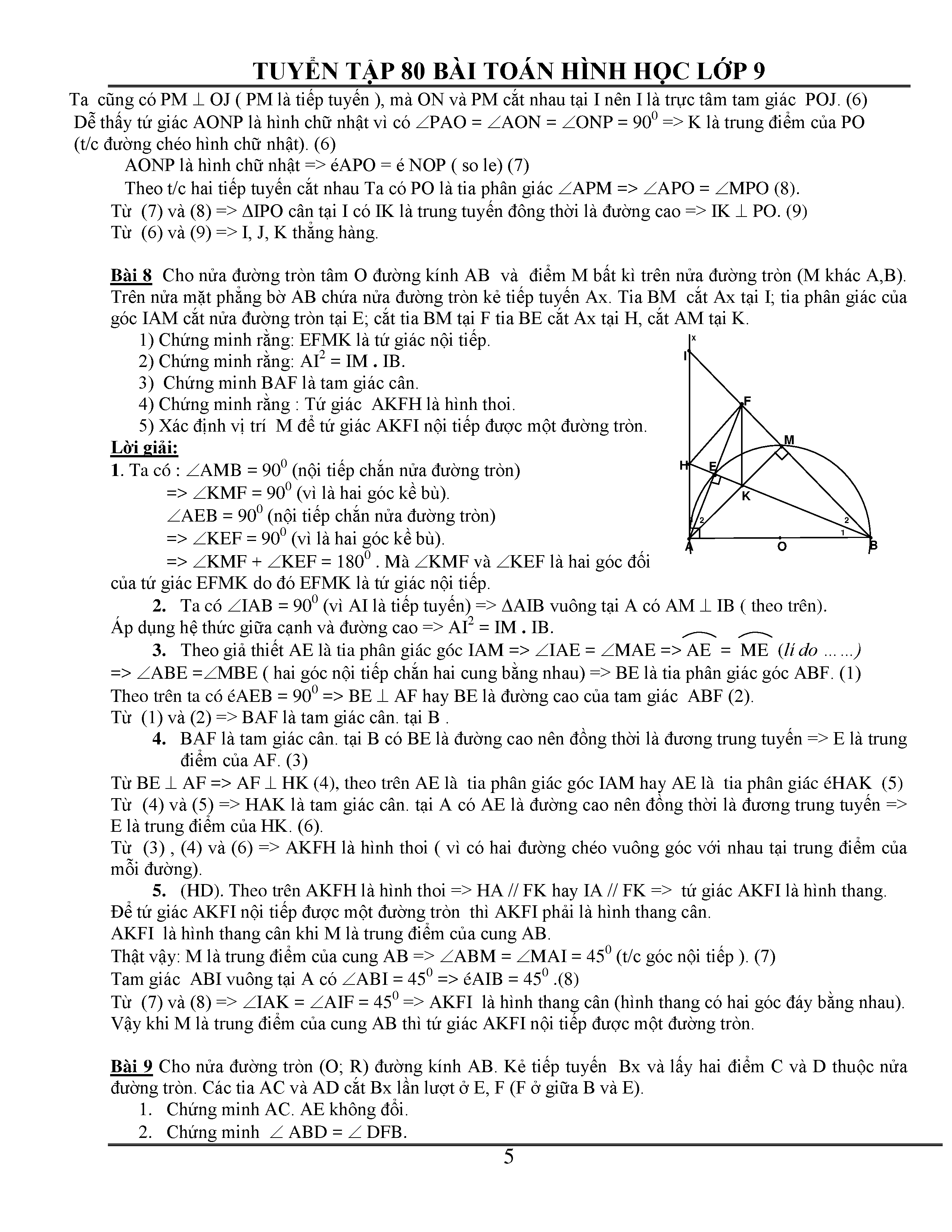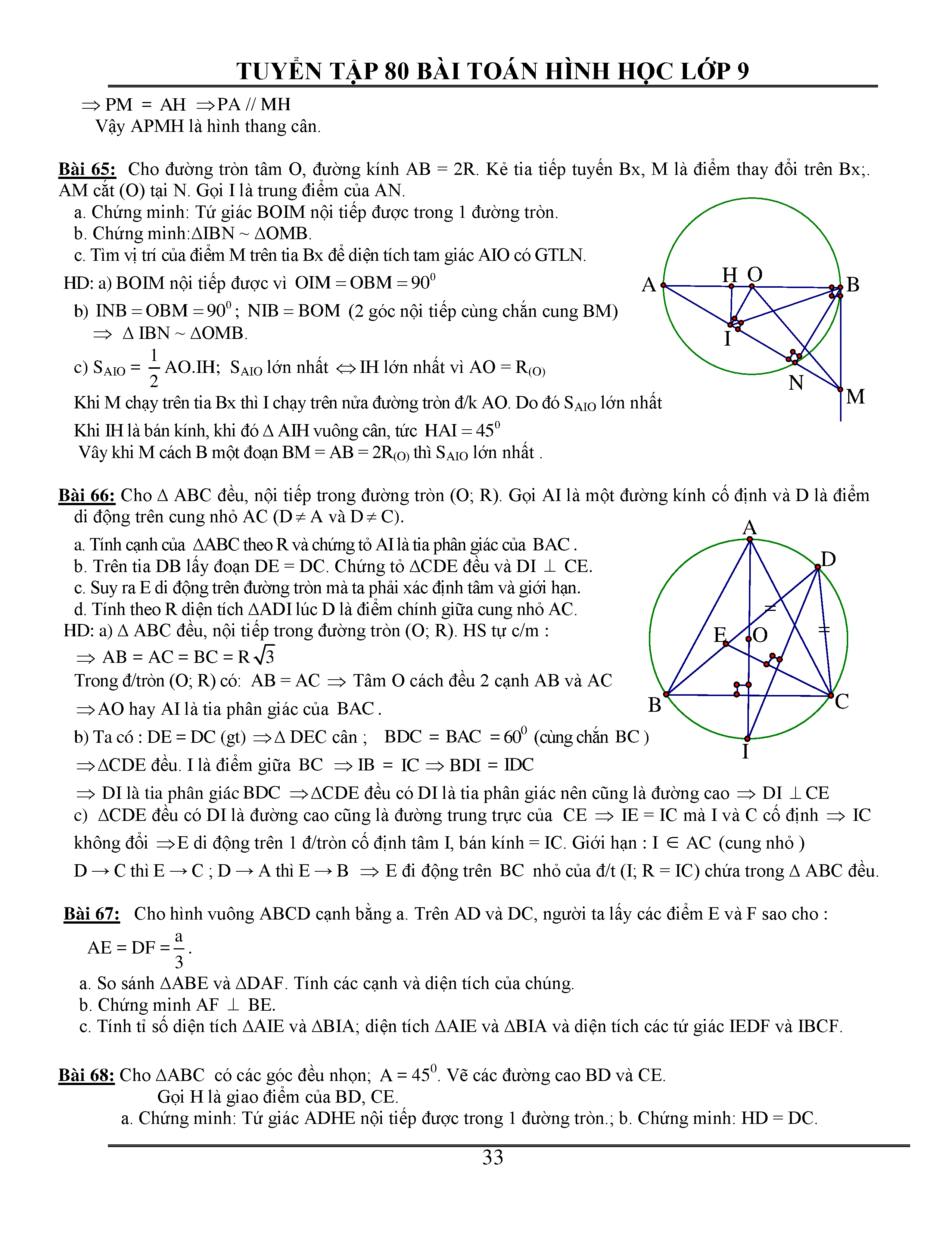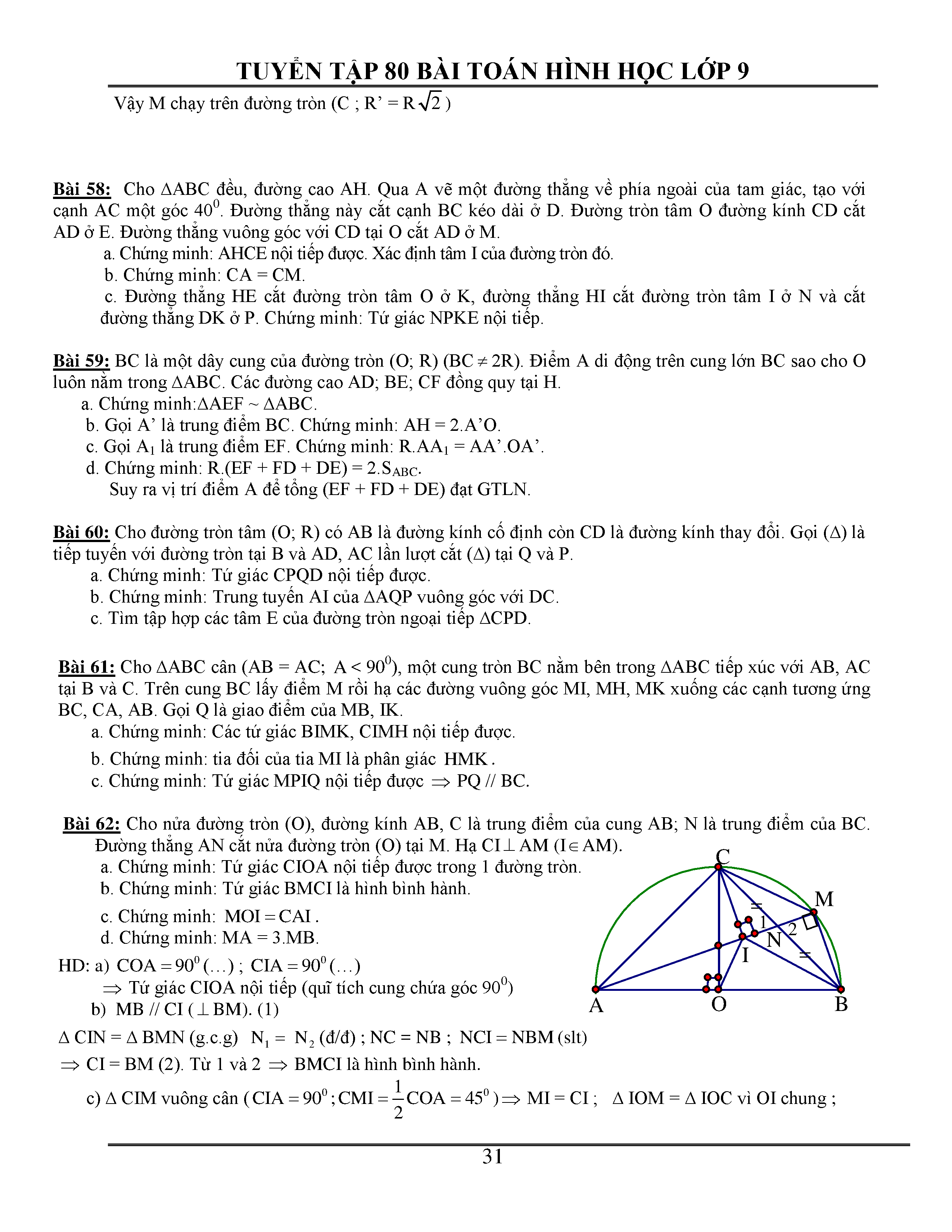 80 BÀI TOÁN HÌNH LỚP 9 TUYỂN CHỌN CÓ ĐÁP ÁN