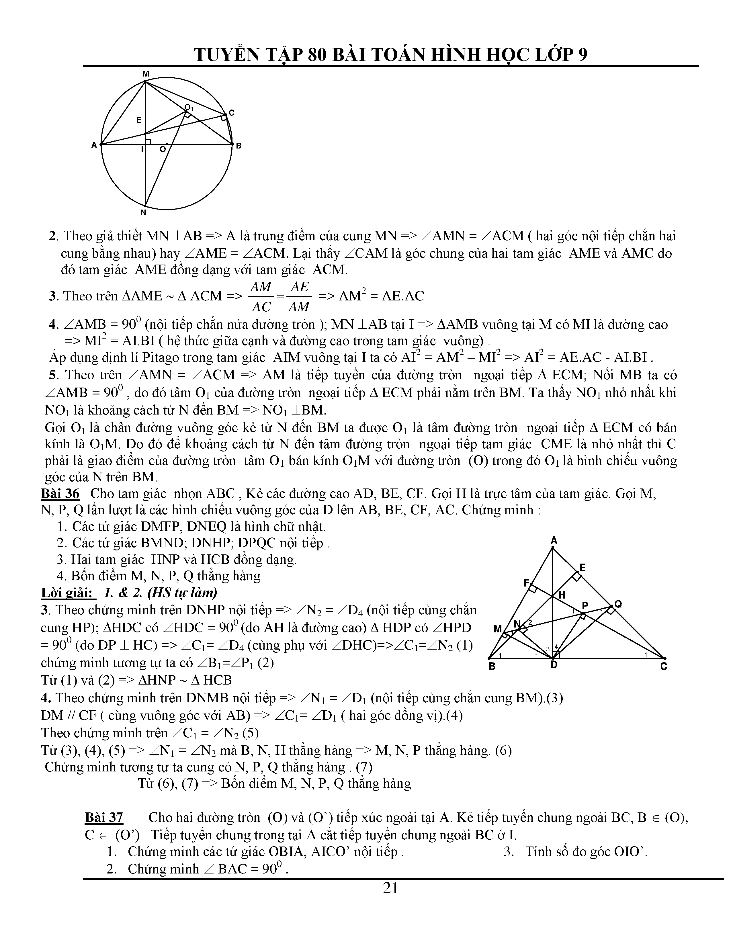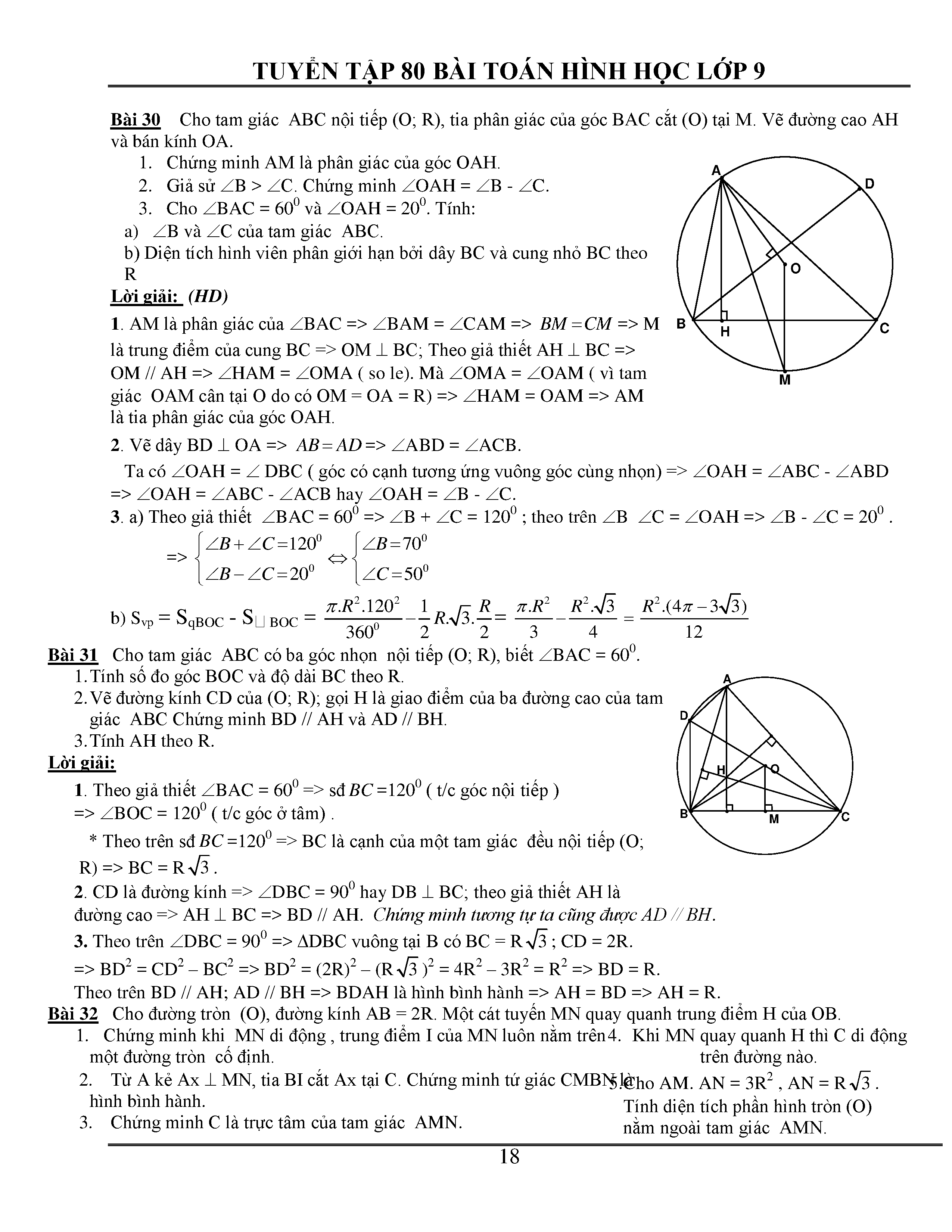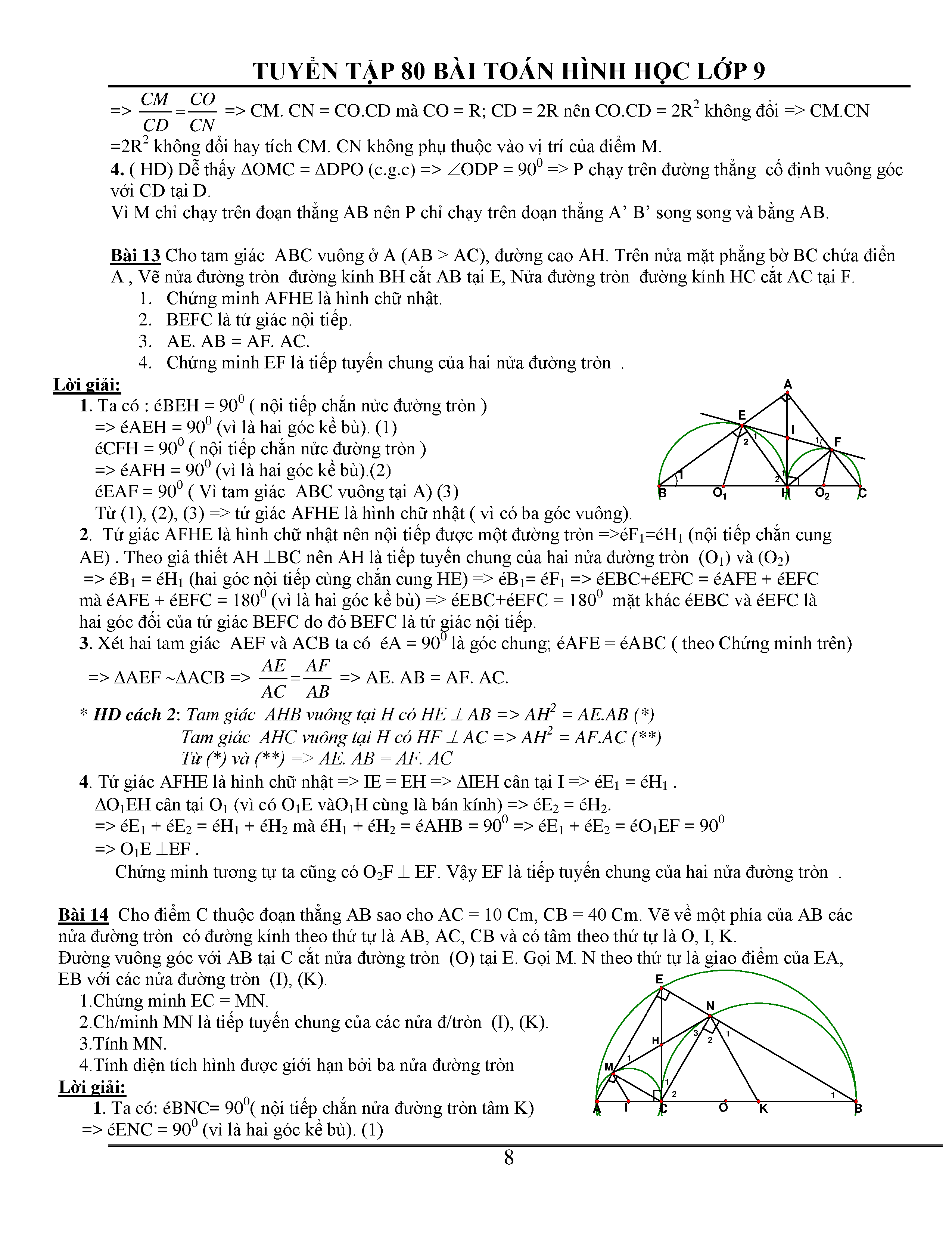 80 BÀI TOÁN HÌNH LỚP 9 TUYỂN CHỌN CÓ ĐÁP ÁN