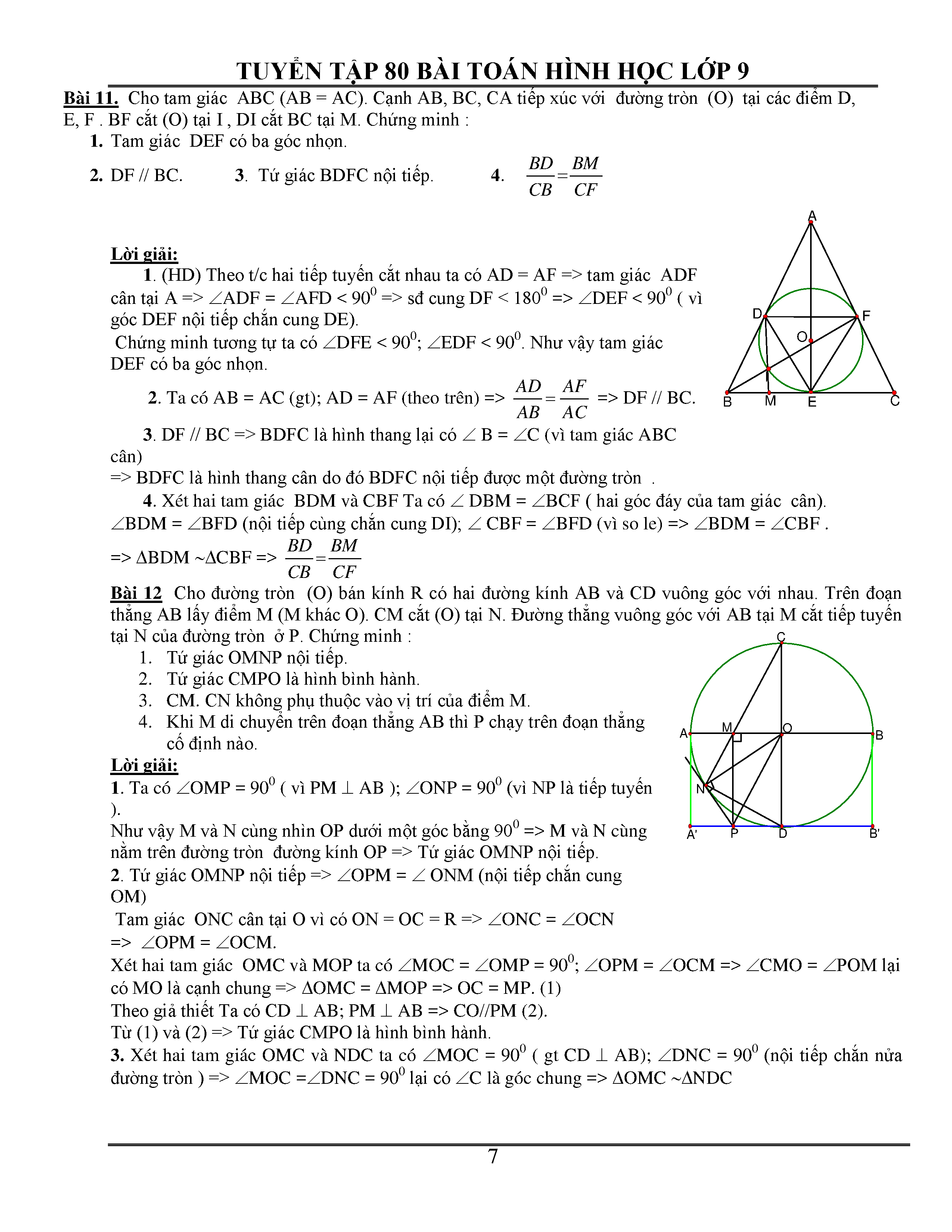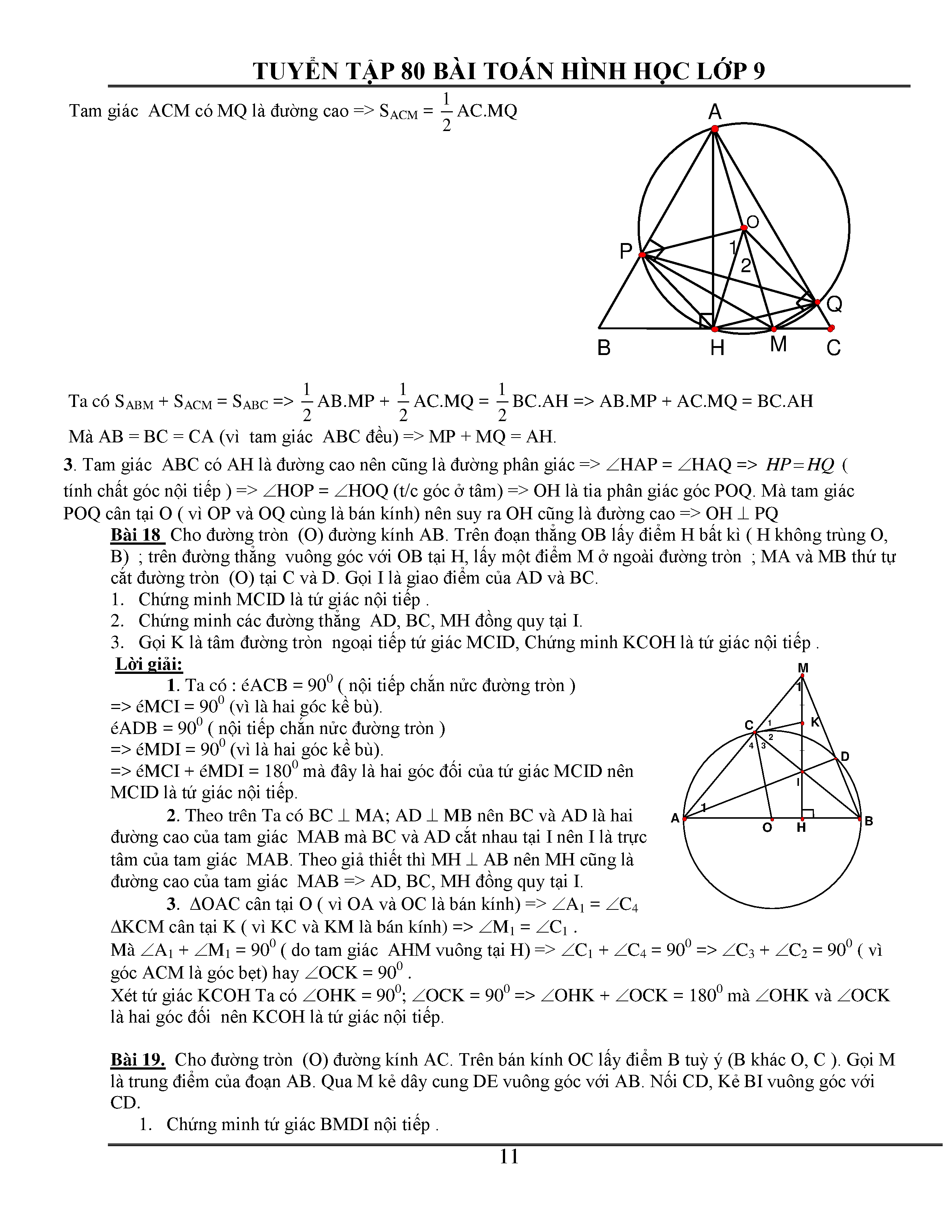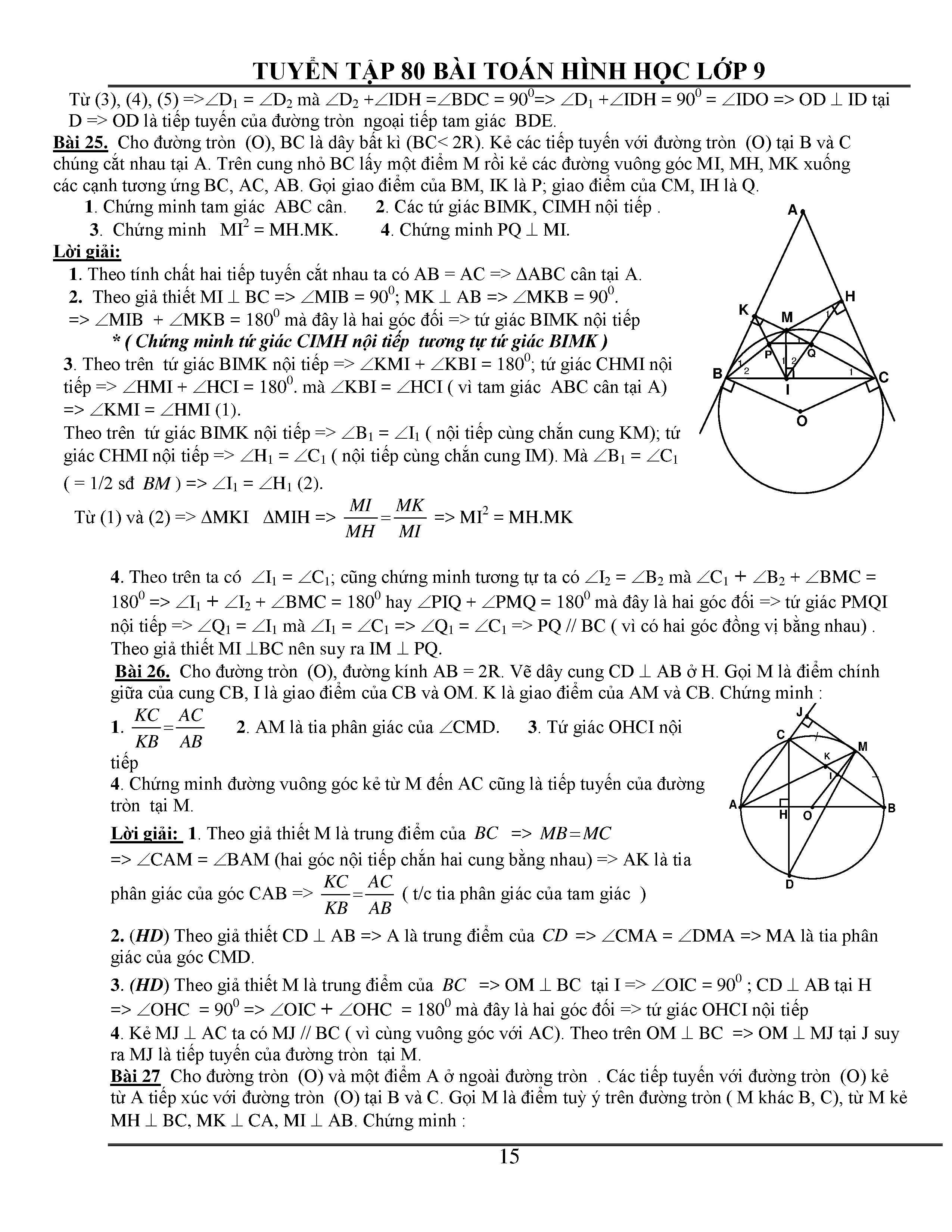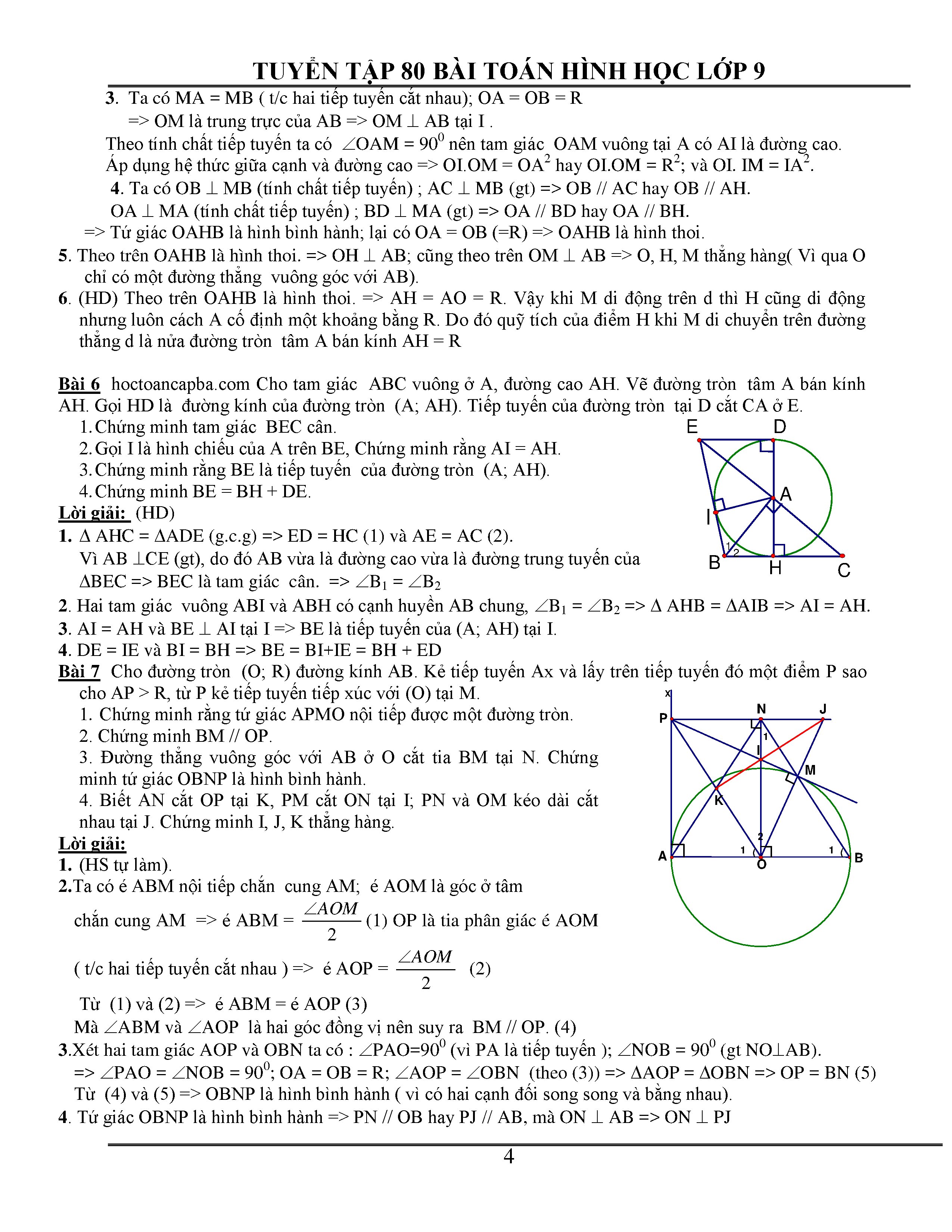 80 BÀI TOÁN HÌNH LỚP 9 TUYỂN CHỌN CÓ ĐÁP ÁN