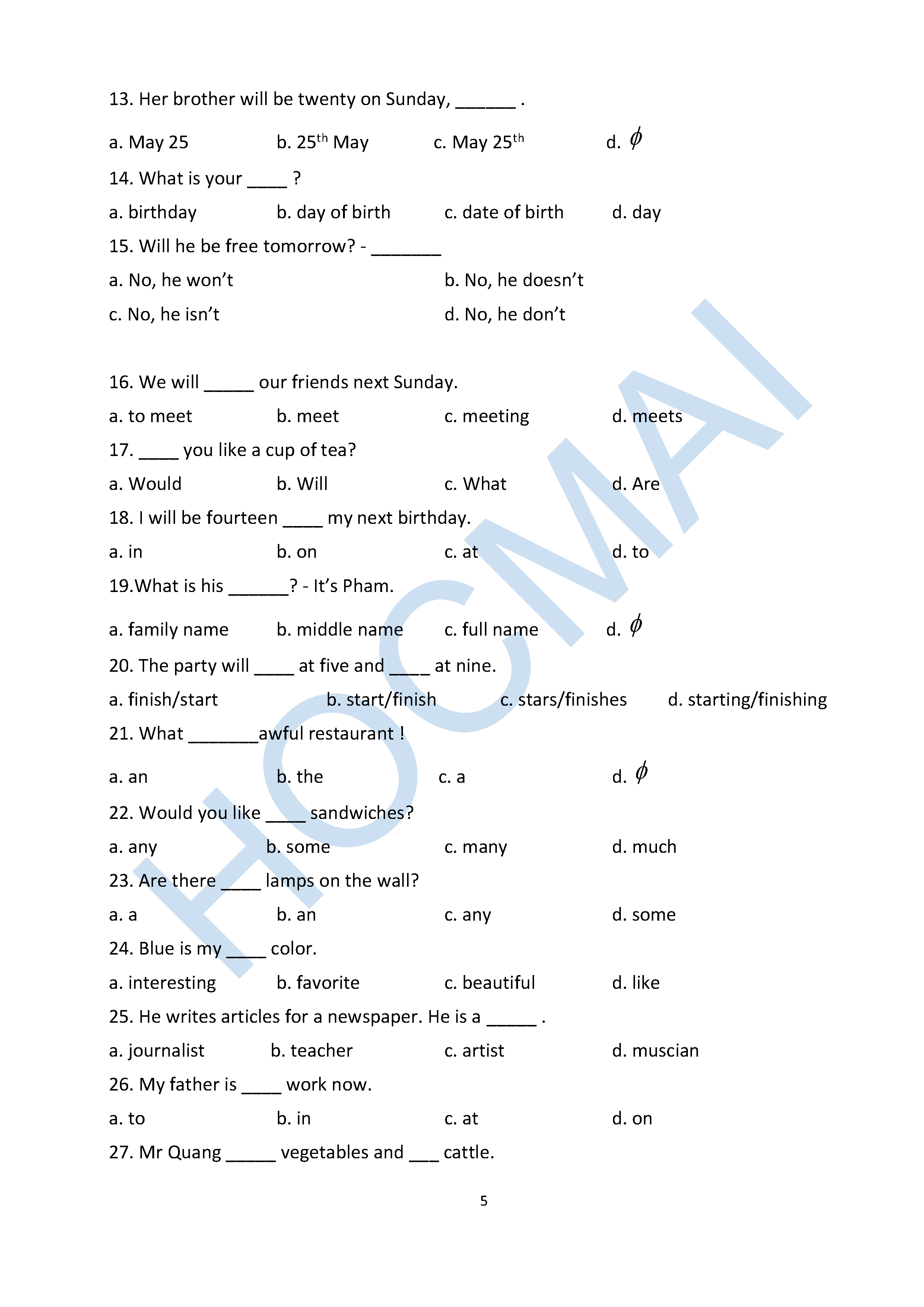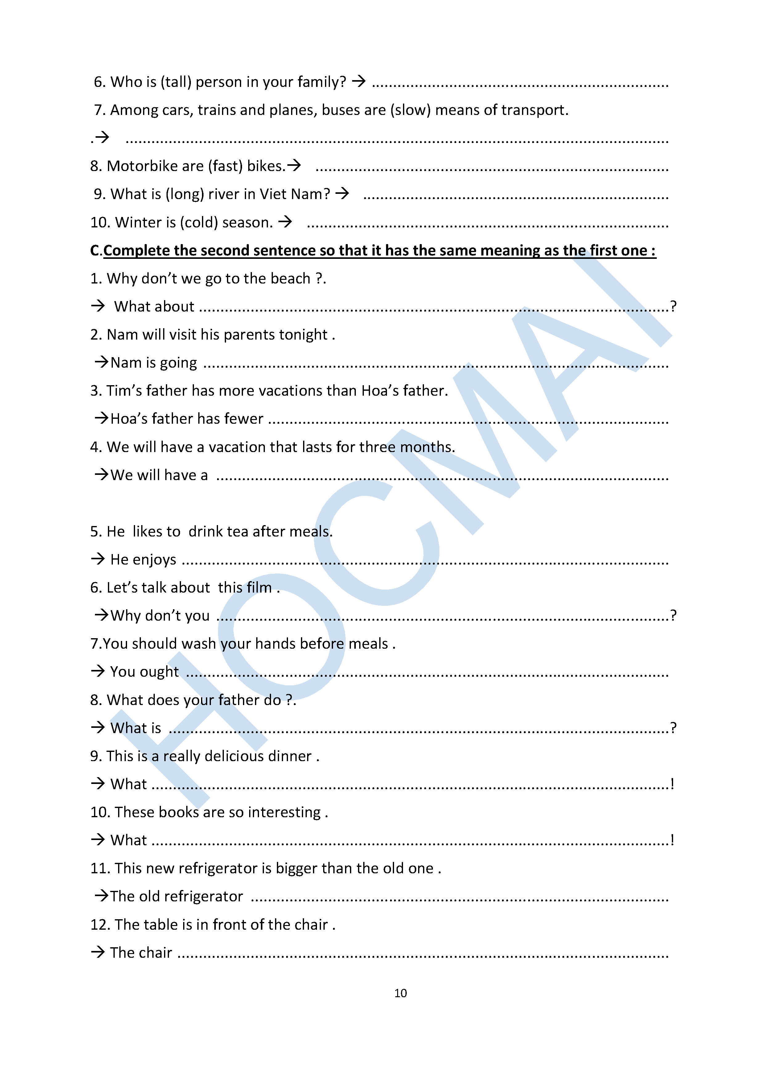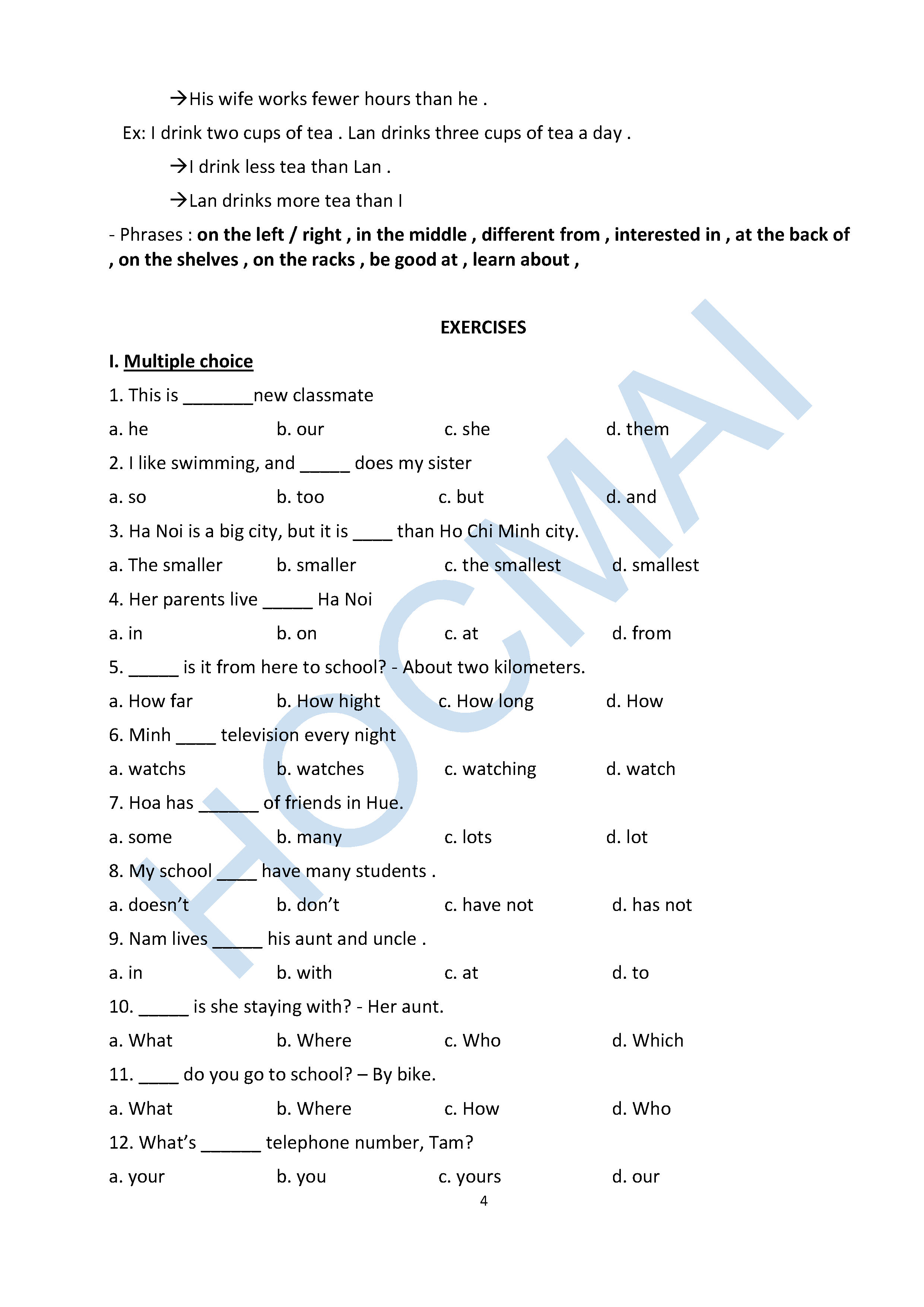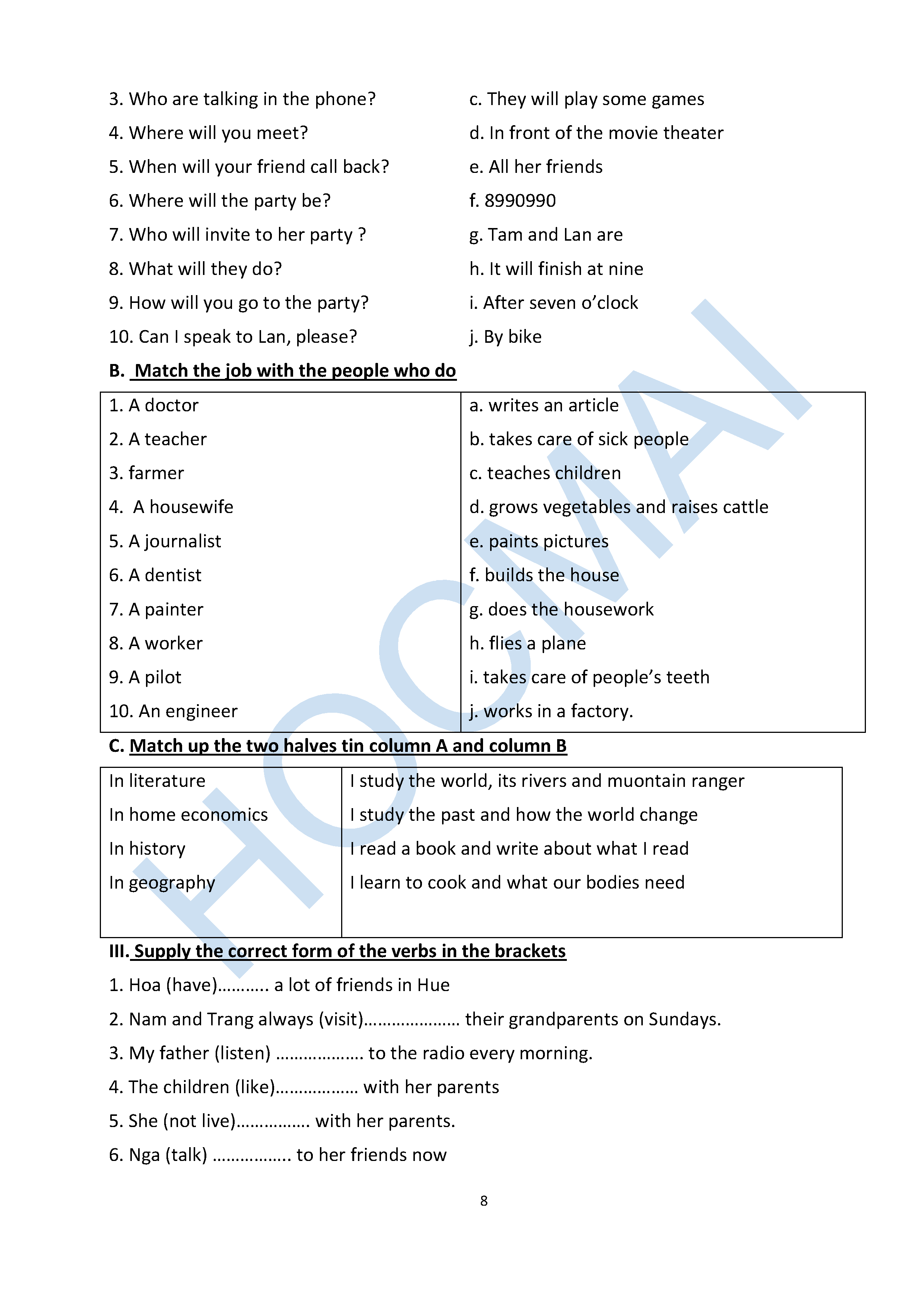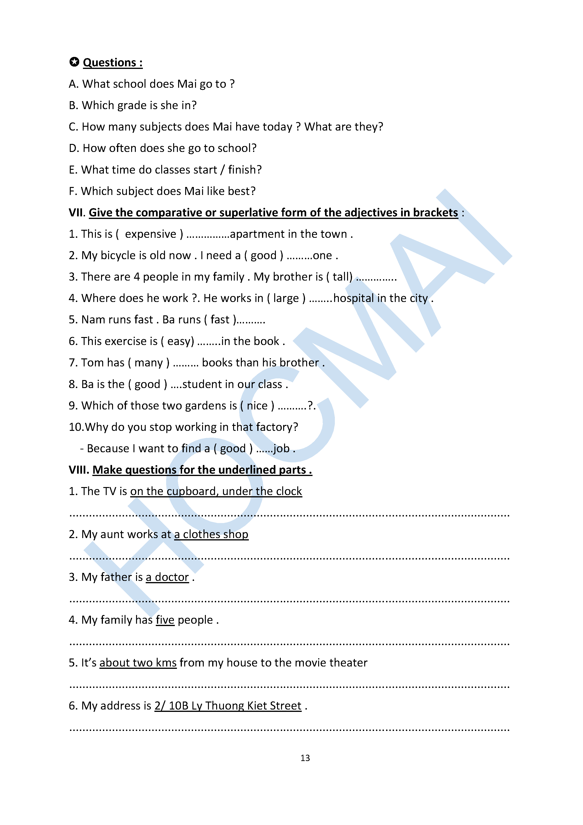 ĐỀ CƯƠNG ÔN THI TIẾNG ANH HỌC KÌ I