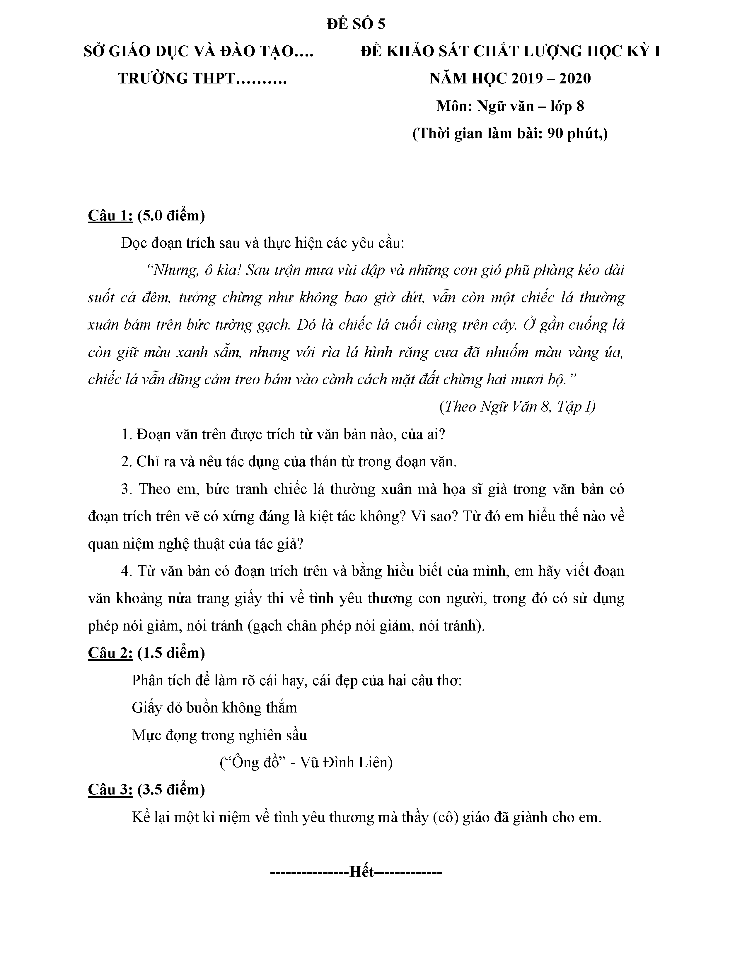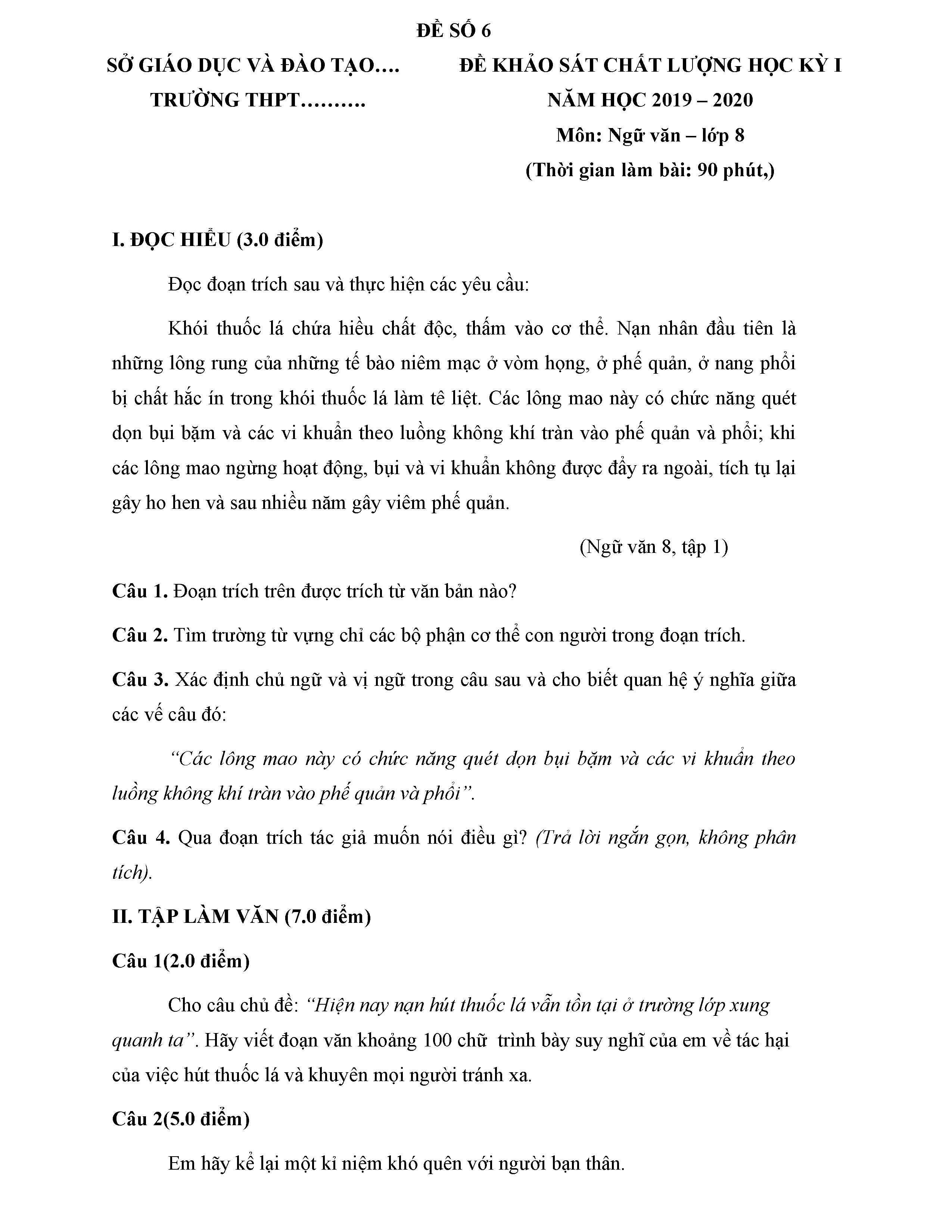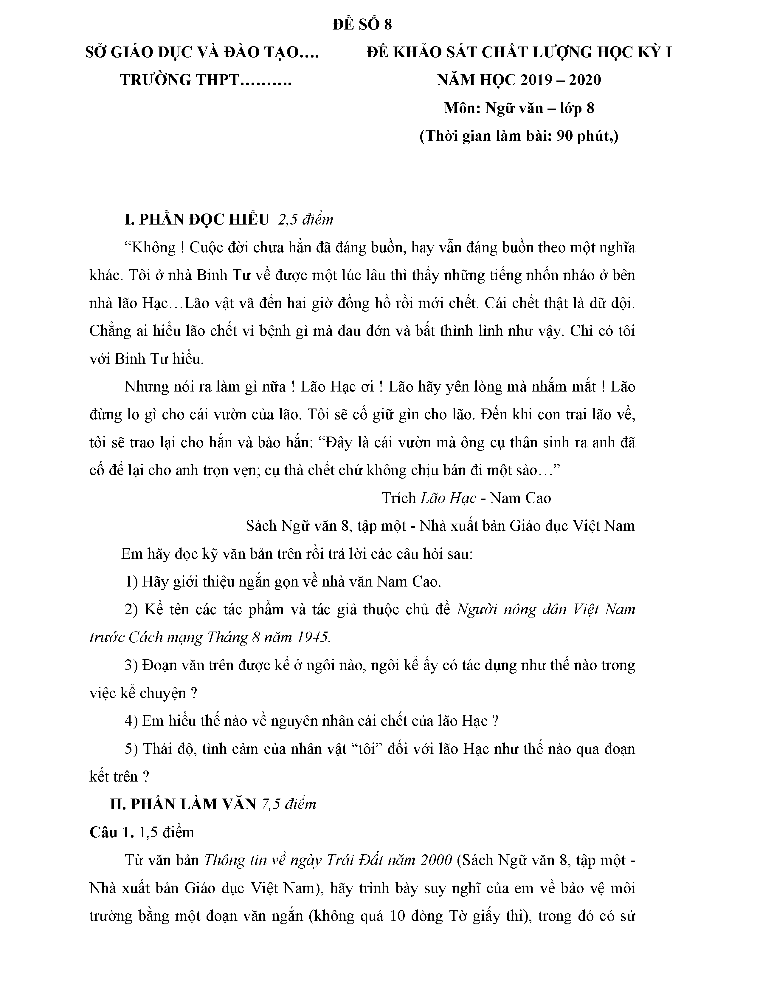 BỘ 8 ĐỀ THI HỌC KỲ 1 MÔN NGỮ VĂN LỚP 8