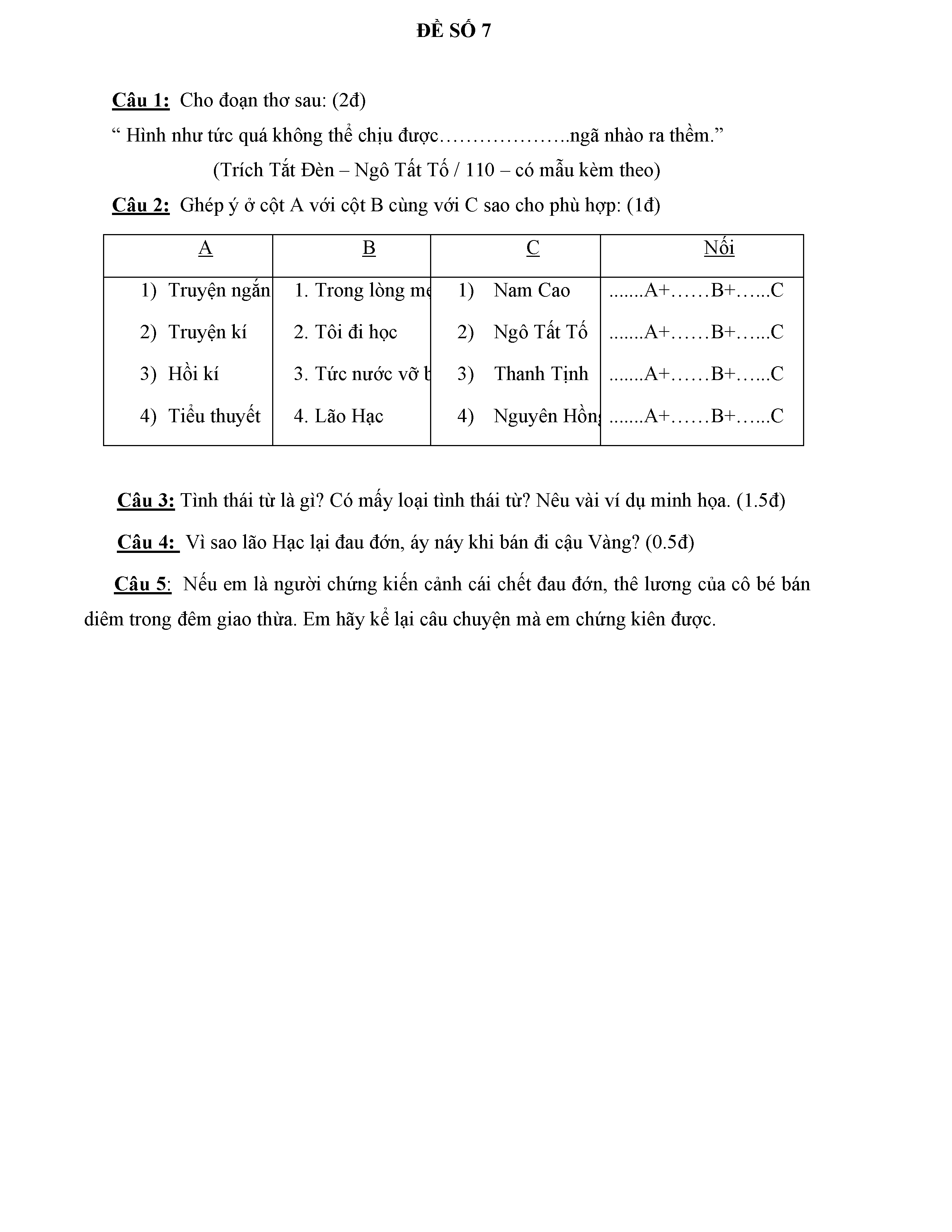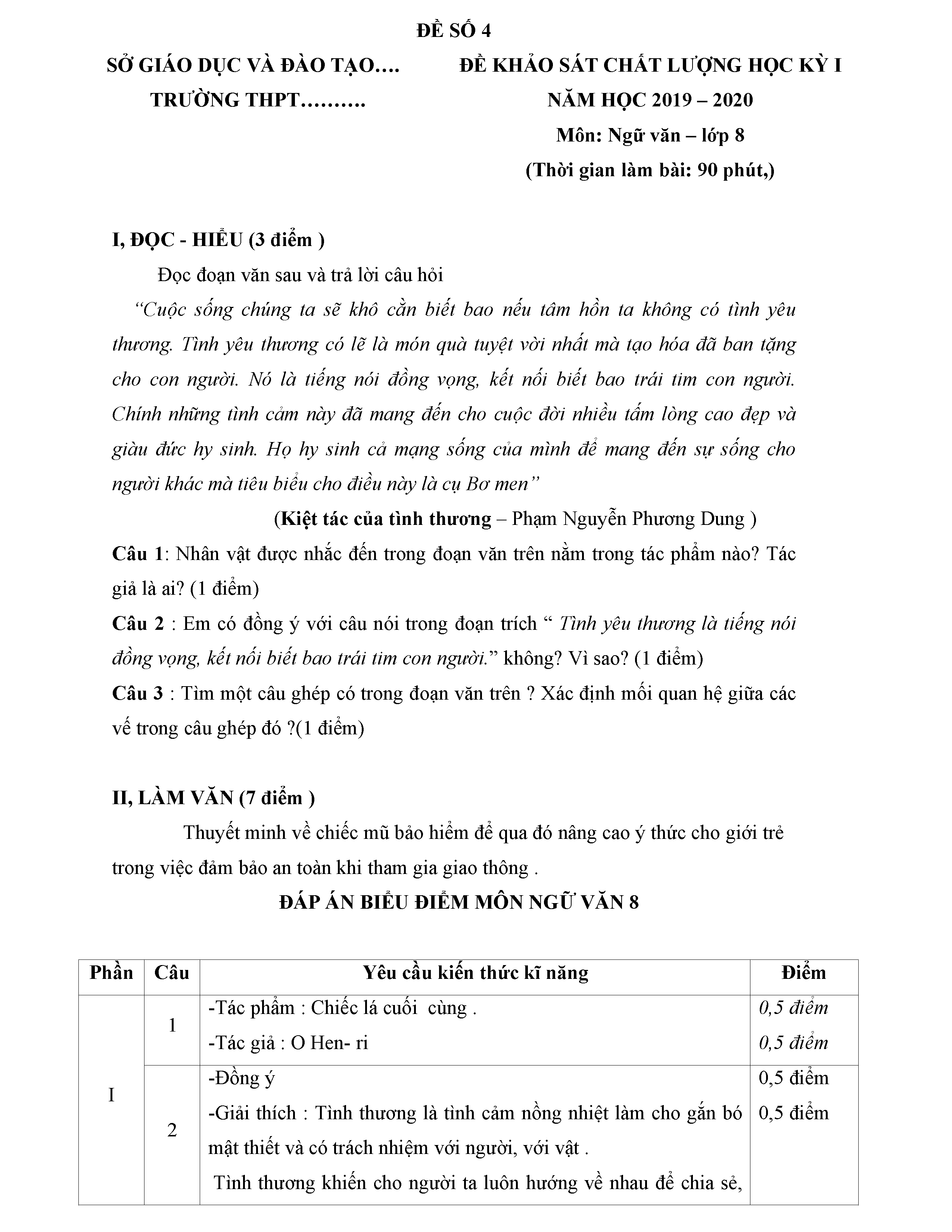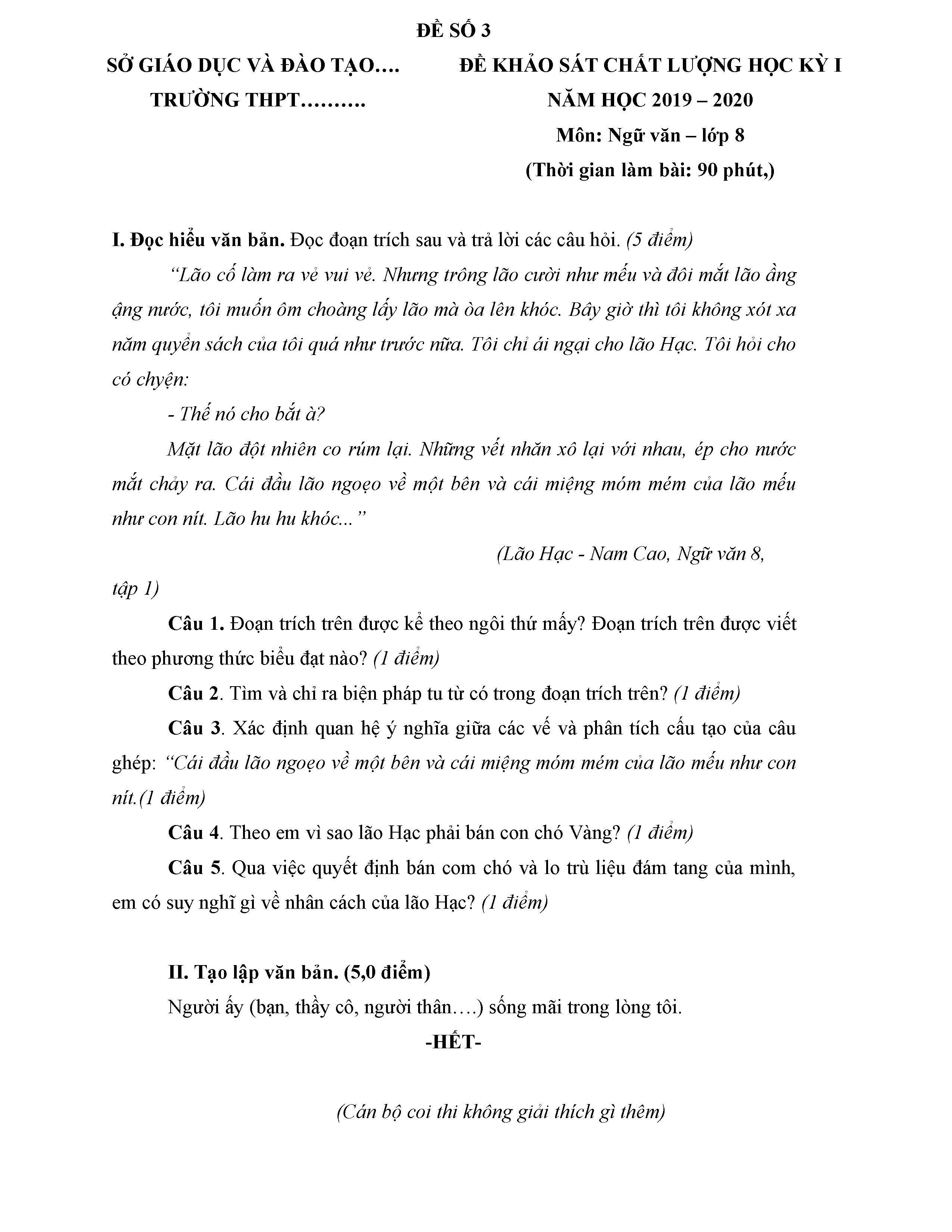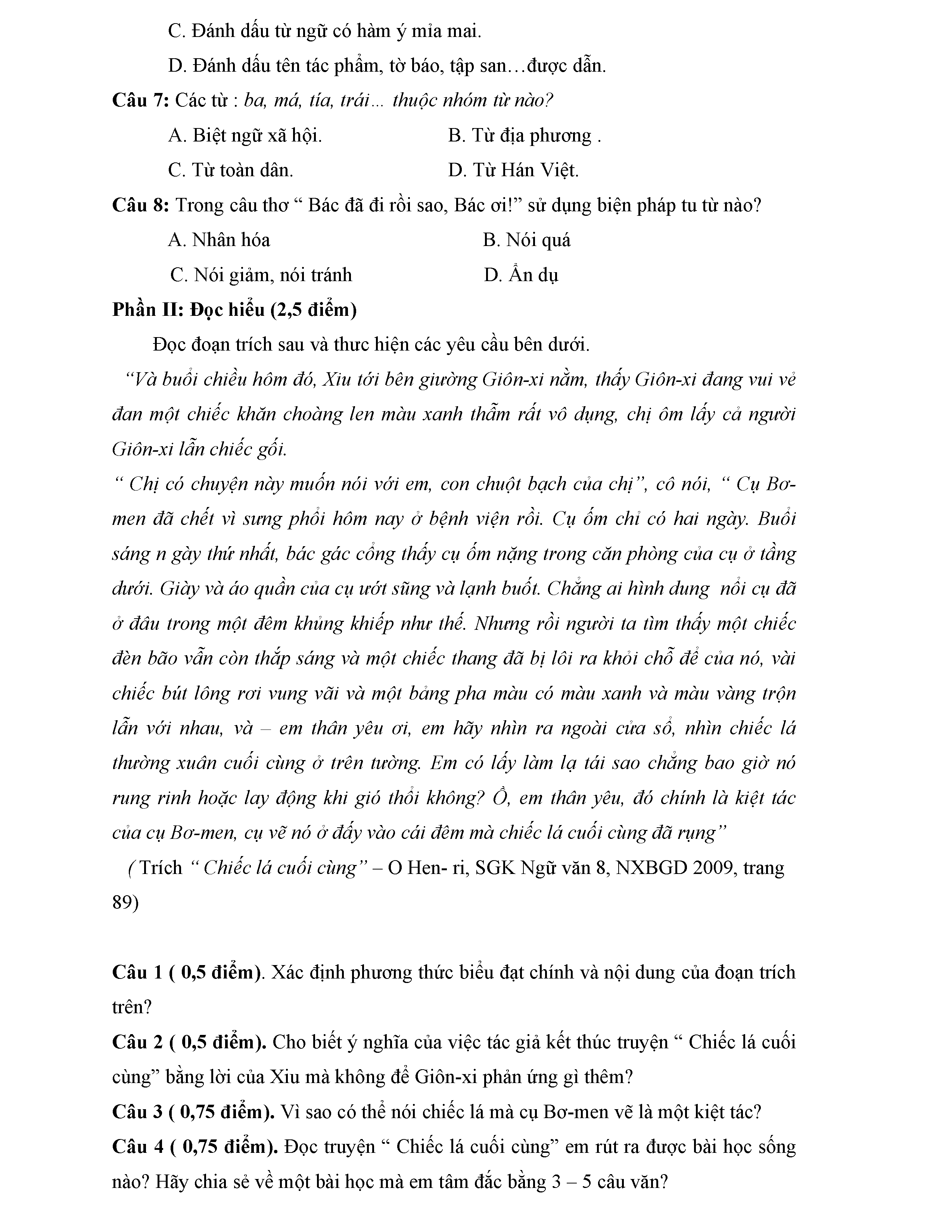 BỘ 8 ĐỀ THI HỌC KỲ 1 MÔN NGỮ VĂN LỚP 8