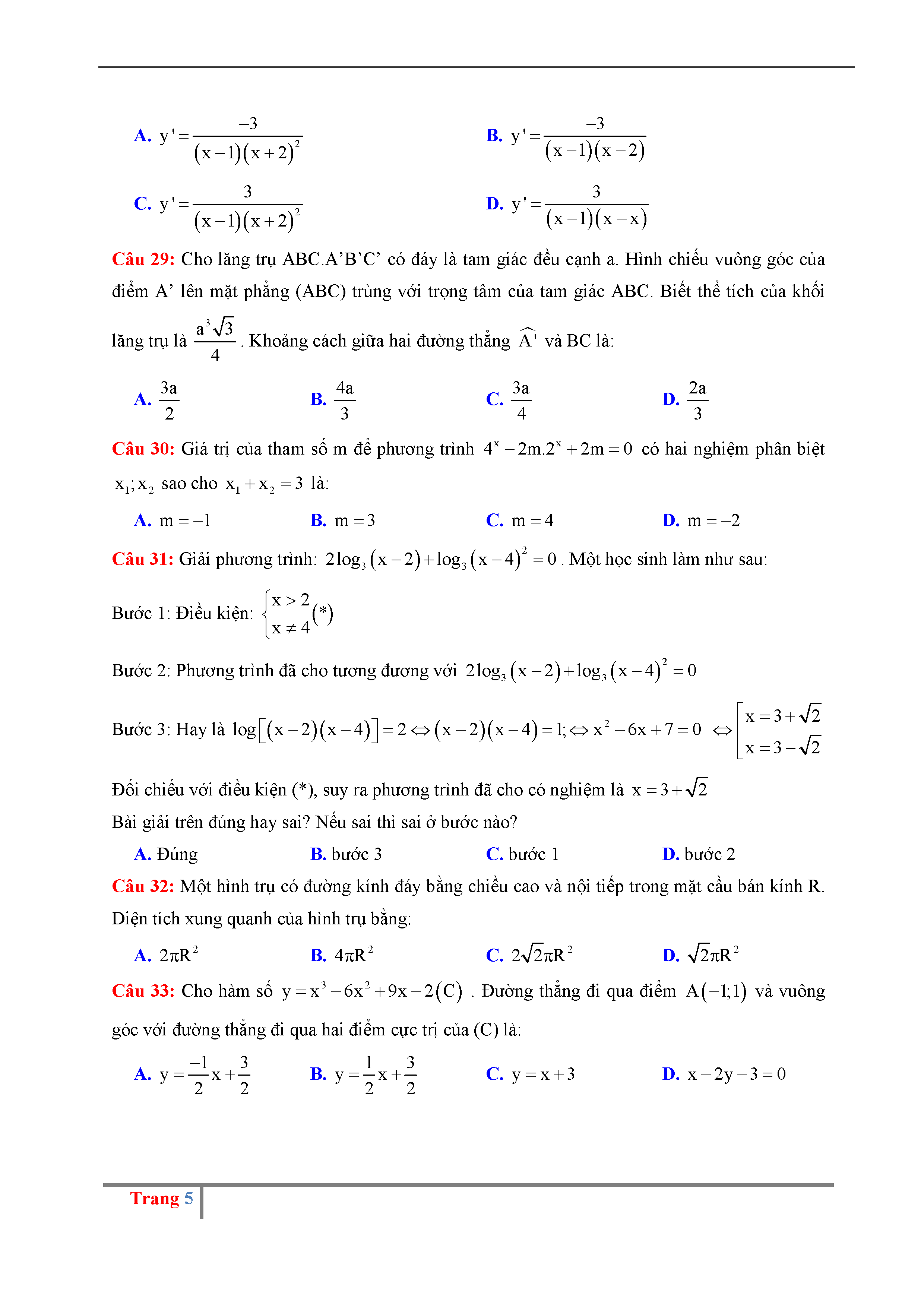 Đề thi thử THPTQG môn Toán năm 2017 trường chuyên Vĩnh Phúc